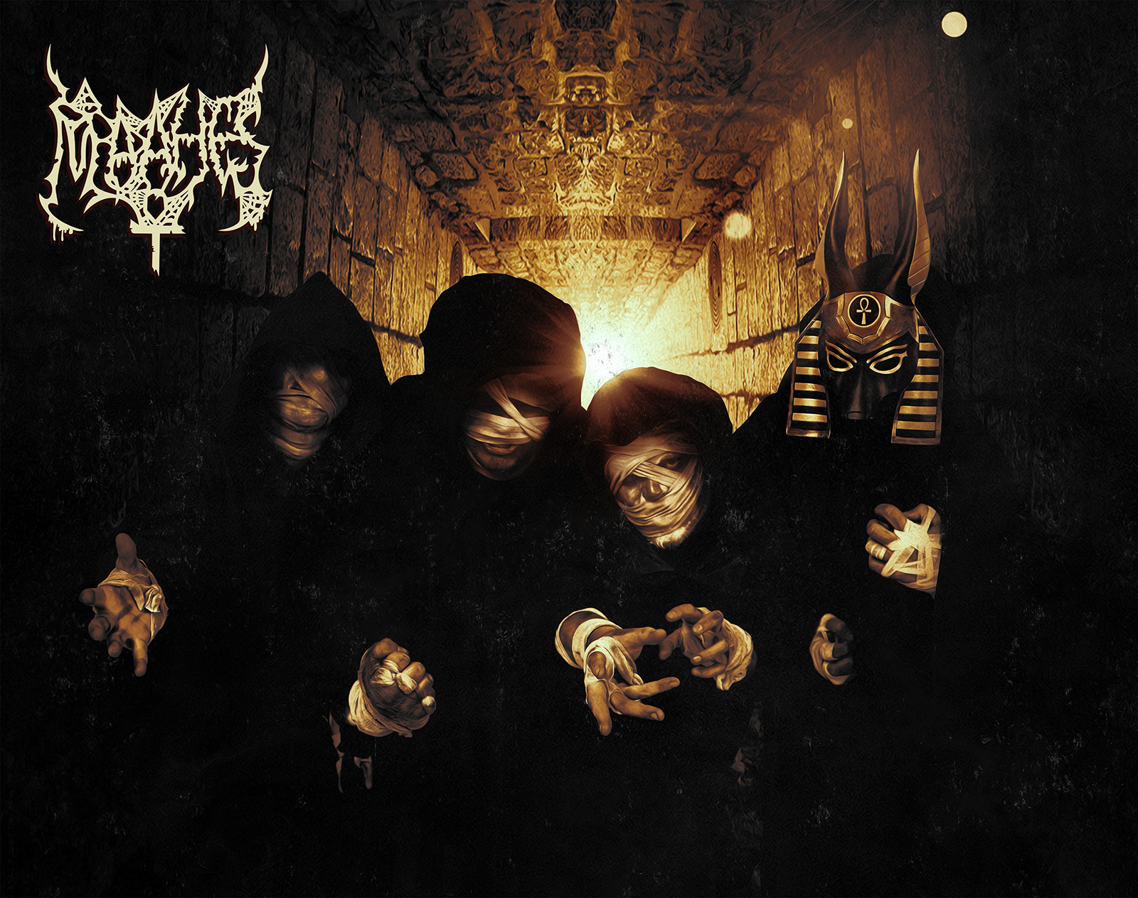 Eine steinerne Kammer. Geruch von Moder, Sand und Alter. Dunkelheit, Fackeln, verblassende Kunstwerke an den Wänden. Stufen führen tiefer in den Stein. 3000km vom Tal der Könige entfernt machte es sich anno 2015 eine Band zur Aufgabe, die Atmosphäre des alten Ägyptens musikalisch in einem klassischen Black Metal Gewand umzusetzen. Unter dem Banner des löwenköpfigen Gottes MAAHES (des Herren der Dunkelheit, der Winde und des Gemetzels) trat man aus den Katakomben hervor und war mit einer einzigartigen Bühnenshow bereits Gast auf Festivals wie dem Wolfszeit oder dem Ragnarök Festival.