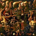 Ein entfernt an Boschs Höllenphantasien erinnerndes Artwork bei dem die Figuren jedoch hämisch gri…