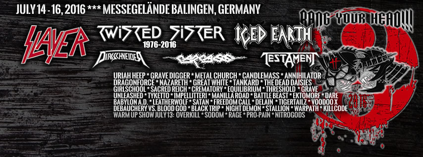 Als Co-Headliner werden DIRKSCHNEIDER (mit ihrem ACCEPT-Set), TESTAMENT und CARCASS fungieren. Und als Headliner werden ICED EARTH, SLAYER und zum letzten Mal TWISTED SISTER Balingen in Schutt und Asche legen.