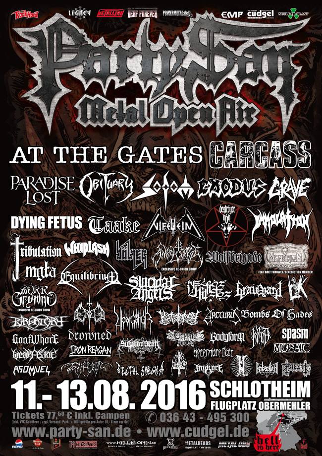 AT THE GATES, CARCASS, SODOM, MEMORIAM, GRAVE, TRIBULATION, NIFELHEIM, BÖLZER, LIK, SPASM, GRUESOME und viele mehr.