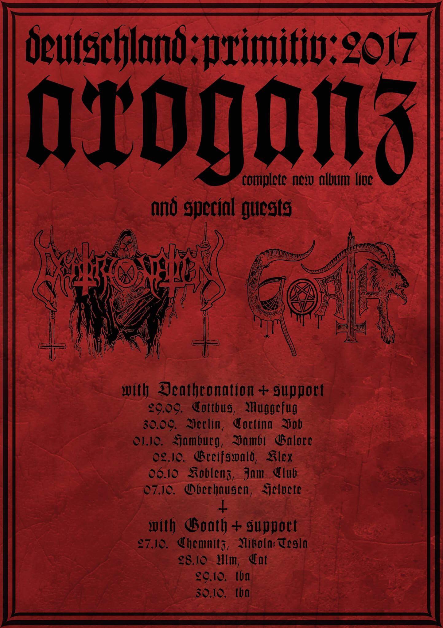 Am Sa., 28.10.2017 spielen ARROGANZ, SACROSCUM und GOATH im CAT in Ulm.
