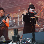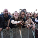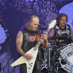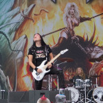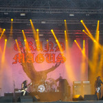 Als die drei Gestalten von GRAND MAGUS so in aller Seelenruhe auf der Bühne auftauchten, über die ein paar Rauchschwaden strichen, hatte sich der Himmel bereits wieder in tristes Grau gehüllt. Zur Einleitung lief “Gold And Glory“, Janne und Mats hoben kurz die Hände zum Gruß, fummelten noch ein bisschen an ihren Instrumenten herum, stimmten ein wenig nach, ließen langsam den Blick über das Areal schweifen. Hand ans Ohr, der Mob grölte und das erste tonnenschwere Riff zu “I, The Jury“ wurde angeschlagen. Das war die coolste Band des Festivals, definitiv! Hätten wir unser warmes Bier aus dem Auto mitgebracht und an den Bühnenrand gestellt, hätten wir es wohl nach dem Gig kalt wieder mitnehmen können. Auf irgendeine Weise passte hier alles zusammen. Selbst als es leicht anfing zu nieseln, konnte man dem, bei dieser melancholischen Grundstimmung, etwas abgewinnen. Die Ansagen waren meist kurz und monoton, dann kam das nächste Stück. Einmal jedoch erblickte Janne „JB“ Christoffersson (Gesang und Gitarre) den Werbeballon von WERA zwischen den Wolken und meinte nur trocken “Guckt mal ein fliegendes Kondom“, was zu Gelächter führte, da es sich um einen Schraubenzieher handelte. Als er das auch erkannte, entschuldigte er sich für seine versauten Gedanken, ohne eine Miene zu verziehen. Vom aktuellen Longplayer “Wolf God“ wurden zwei Titel zum besten gegeben, „“Dawn Of Fire“ und “Untamed“, der Rest war aus allem etwas. Mit “Kingslayer“ hatten sie die älteste Nummer im Gepäck. Hier bekam man Riff-Metal pur, ohne Schnick Schnack und ich weiß nicht warum, aber uns erinnerten diese drei Typen und vor allem die Art, wie sie agierten, unweigerlich an Lemmy und seine Spießgesellen, nur waren die hier nicht annähernd so laut.
