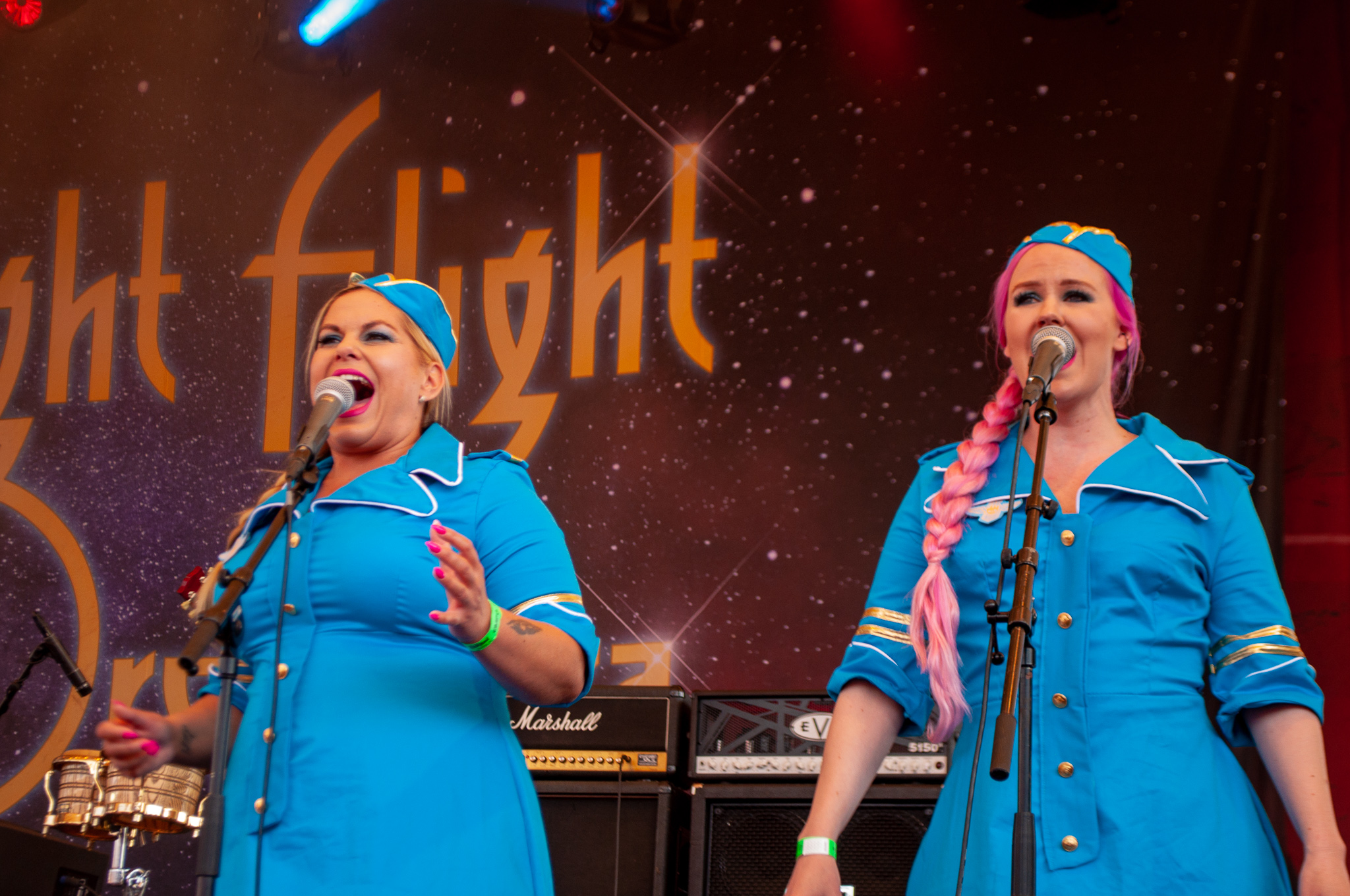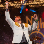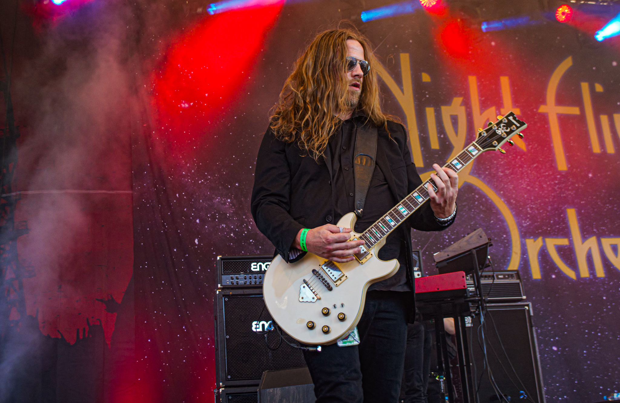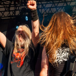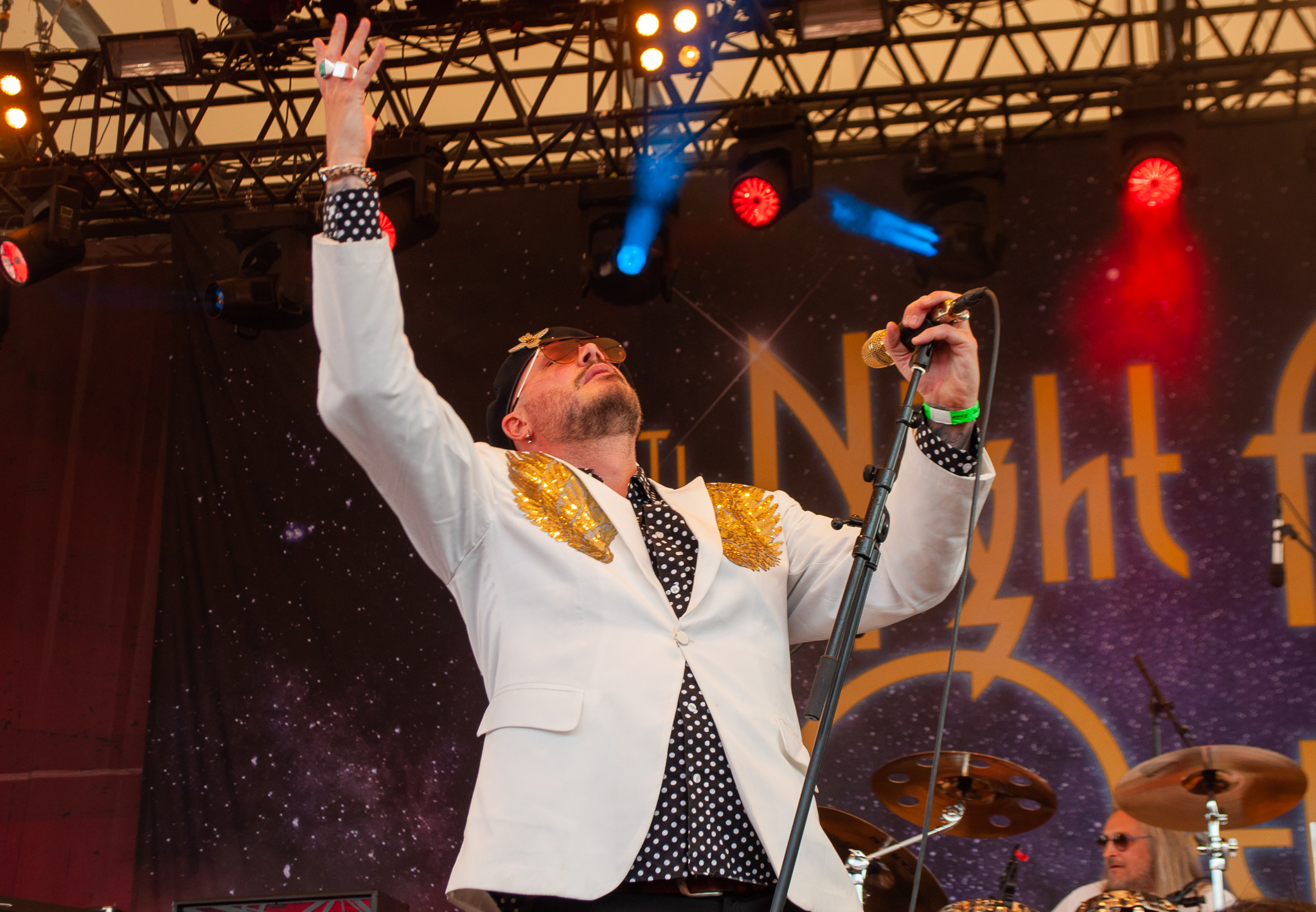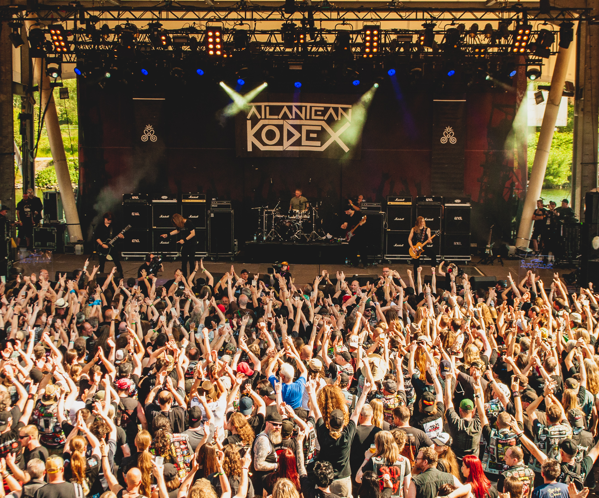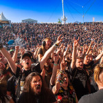 Fernab von Ballermann-Junggesellenabschieds-Tourismus gibt’s hier die für einen Rauschzustand ausreichende Dosis Heavy Metal. Ich reise Samstag an und werde auf dem Campingplatz entsprechend begrüßt: „hey du bist spät, du hast schon voll viel verpasst“. Die Festivalbesucher konnten sich am Vortag die Gehörgange bereits von Kapellen wie NIFELHEIM, AXXIS, HEATHEN und SACRED REICH freipusten lassen. Den Zeltaufbau versüßt mir der griechische Psychedelic Folk Rock von VILAGERS OF lOANNINA CITY, welcher vom mit gegrilltem Fleischgut verfeinerte Sommerwind über den Platz getragen wird. Höchste Zeit für ein kühles Pils und es geht, vorbei an dem reichhaltigen Angebot der Merch-Stände, ins Amphitheater, wo ATLANTEAN KODEX loslegen. Die Bayern klingen ein wenig nach ICED EARTH und können das Publikum mit klassischen Heavy Metal-Songs wie „Twelve Stars and an Azure Gown“ und „The Atlantean Kodex“ begeistern. Die Sonne scheint, die Stimmung ist gut und nach nur kurzem Umbau laden THE NIGHT FLIGHT ORCHESTRA ein, die verstaubten Stiefel aufzuziehen und in die Tanzschühchen zu schlüpfen. Die Truppe um den schwedischen SOILWORK-Fronter Björn Strid hat Arena Rock und zuckersüße Wohlfühlhymnen am Start. Das Projekt begann als spontane Schnapsidee und inzwischen veröffentlichte die Band ihr sechstes Studioalbum „Aeromantic 2“. Songs wie „White Jeans“ und „West Ruth Ave“ machen Laune, die Mucke ist aber auch ziemlich kurzweilig und seicht mit poppigen Disko-Einflüssen. Das Amphitheater ist in Bierlaune, das Tanzbein wird geschwungen und die Polenese ist auf dem Weg nach Blankenese.