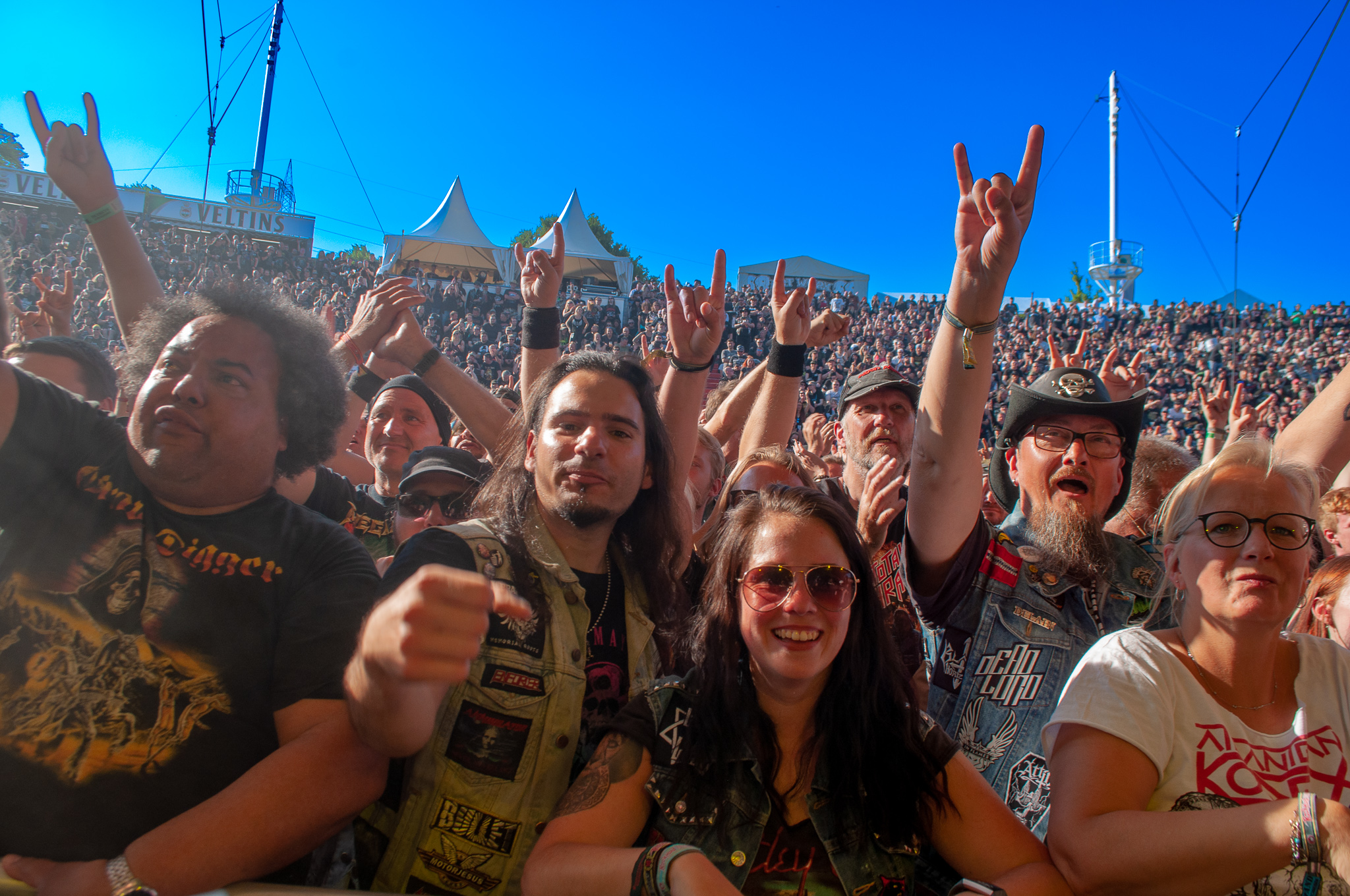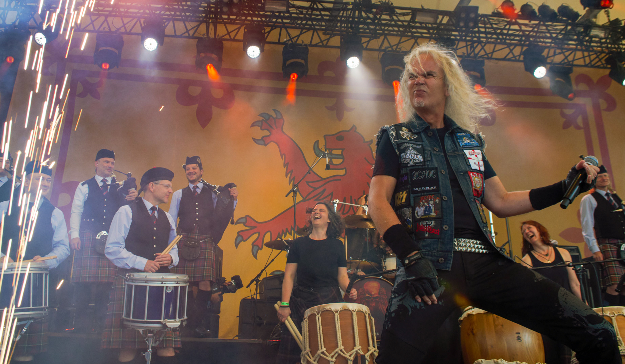 Mit GRAVE DIGGER wird es bodenständiger und die Truppe hat nicht nur eine Dudelsack- und Trommelkombo, sondern auch reichlich gute Laune mitgebracht. Nach „The Dark of the Sun” und “Excalibur” heist es “The Clans Will Rise Again”. Frontmann Chris Boltendahl und Gitarrist Axel Ritt posen um die Wette. „Lions of the Sea”, „The Ballad of Mary”, “The Heart of Scotland”, “Highland Farewell”: eine Setlist, wie ein Geschichtsbuch. Der Auftritt mündet in den Highlights “Rebellion (The Clans Are Marching)” und natürlich “Heavy Metal Breakdown”.