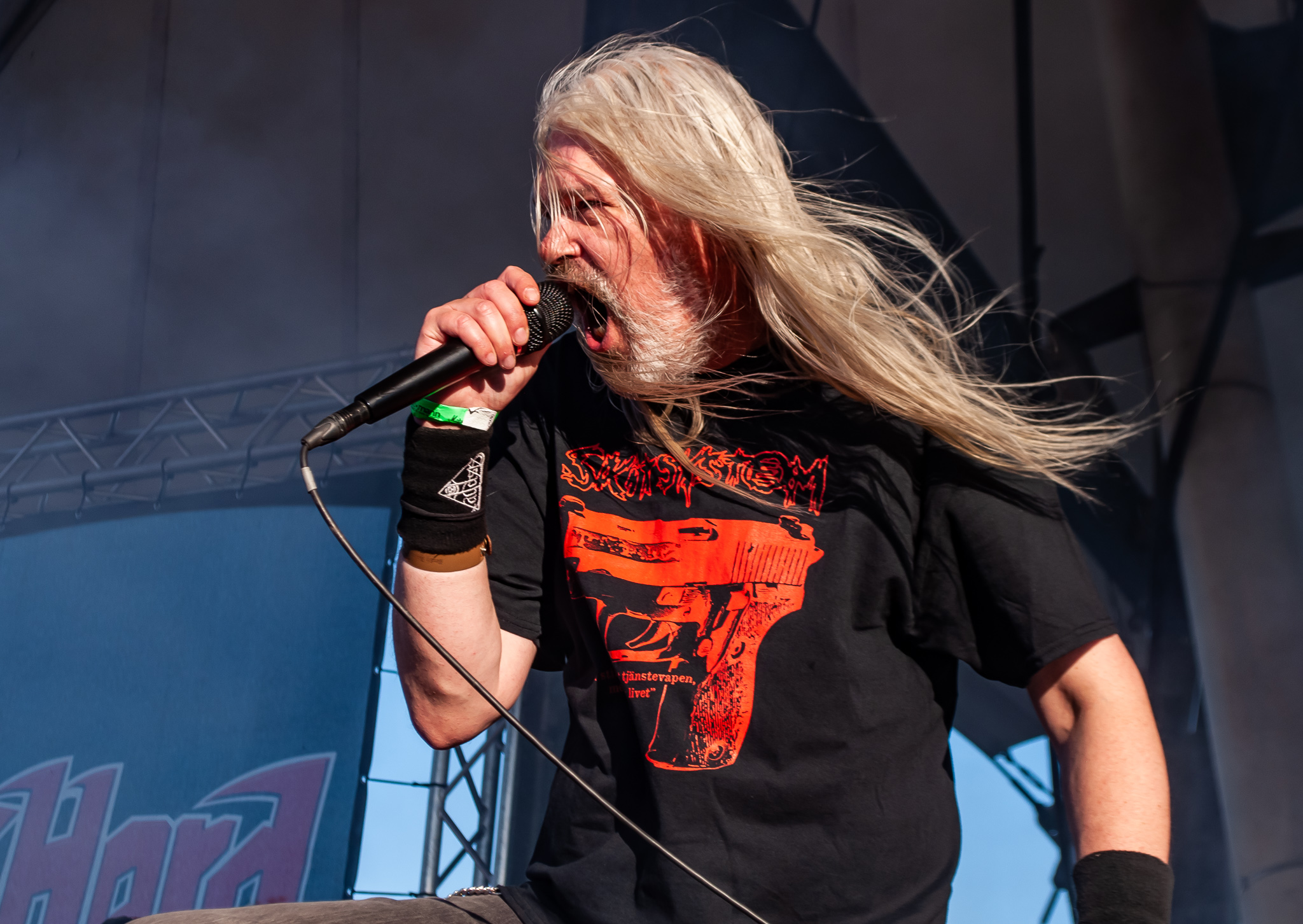 Das ROCK HARD konnte aber einen guten Ersatz herbeischaffen und das in kürzester Zeit: ASPHYX bringen etwas deftige Härte ins Billing des Festivaltages. Zudem präsentieren sich die Niederländer durchaus sympathisch und Sänger Martin van Drunen bezieht Stellung zum Ukraine-Krieg und lädt das Gelsenkirchener Publikum zum gemeinsamen „Putin – Hurensohn“-Sprechchören ein. Kriegsthematisierender Death Metal muss keineswegs kriegsverherrlichend sein. Die Band startet mit „Botox Implosion“ und stampft mit Tracks wie „Wasteland of Terror“ und „Necroceros“ alles in Grund und Boden. Besonders stark werden ASPHYX, wenn der grollende Doom regiert. Mit dem Nackenbrecher „Last One on Earth“ schließen sie den Gig ab.