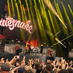 Heute wird den Leuten viel Bombast geboten: Bands der Marke NIGHTWISH mit Frauengesang und einem lieblichem Keyboardteppich stehen auf dem Programm. Gegen 16 Uhr begeistern die Schweizer Folk Metaler ELUVEITIE die zahlreichen Zuschauer vor der Mainstage 2. Acht Leute und allerhand Instrumente sind auf der Bühne und Sänger Chrigel Glanzmann (oder ist es Torsten Sträter?) führt durch das keltisch angehauchte Liedgut („A Rose of Epona“, „Làppel des Montagnes“...). Die Sonne ist zurück in Clisson und das ist gut so! Nebenan geht’s weiter mit MYLES KENNEDY. Er ist inzwischen ohne SLASH unterwegs und spielt Hardrock mit Einflüssen von Country und Singer/ Songwriter und beweist wiedermal, dass er ein guter Musiker und Sänger ist. Heute konzentriert er sich vor allem auf Songs des 2021er Albums „The Ides of March“. EPICA starten ihr Set, ich nehme reis aus und komme zu AIRBOURNE zurück: Sie sind „Ready to Rock“. Es ist herrlich mit welcher Spielfreude die Australier zu Werke gehen. Joel O’Keeffe zeigt sich gewohnt bewegungsfreudig und ist gut drauf. Die Bühne ist in Rubinrot getaucht, Bier fliegt durch die Luft und es wird geschwitzt: „“Breakin`Outta hell“, „Raise the Flag“, „Runnin`Wild“… .