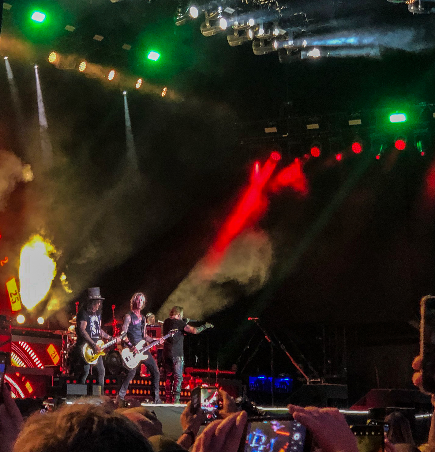 Beim ersten belgischen Bier lassen wir uns mit den letzten Songs von TOM MORELLO berieseln. Man kennt den Gitarristen vor allem von RAGE AGAINST THE MACHINE, also darf „Killing in the name of“ als letzter Song nicht fehlen. Dann folgen EPICA, der richtige Zeitpunkt weiterzuziehen. Bevor die Stimmung zu sonnig wird, geht’s rüber ins Zelt zu den schwedischen Schwarzmetallern von MARDUK. Unerbittliches Black-Metal-Geknüppel ist immer eine feine Sache und bei MARDUK gibt’s das zu Genüge. Nach „Panzer Division Marduk“ macht Sänger Daniel „Mortuus“ Rostèn samt Kollegium Feierabend. Ein bisschen Abwechslung schadet nicht, daher geht’s zu AGNOSTIC FRONT auf die Jupiler Stage. Der New Yorker Hardcore-Vorreiter geben Knallgas und es heist “From the East Coast, to the West Coast ... gotta gotta gotta go!”. ARCH ENEMY zocken im Anschluss auf der North Stage, vor der es sich inzwischen gut gefüllt hat, und haben Hits wie “The Eagle Flies Alone” und „Nemesis“ dabei. Ihr Melodic Death Metal-Szene ist zwar eine Spur vorhersehbar, aber macht sich heute wirklich gut. Der blauhaarige Wirbelwind Alissa White-Gluz fegt über die Bühne und vor allem die Gitarristen Chris Amott und Jeff Loomis wissen zu überzeugen. Nun entscheiden: Alternative Rock mit ALTER BRIDGE oder Göteborger Death-Metal von AT THE GATES. Ab zu AT THE GATES im Maquee. “Slaughter of the Soul”, “World of Lies”, “Nausea”: alles super! Das festival-typische “sich entscheiden müssen” ist zwar ein Luxusproblem, aber manchmal wäre man gerne an mehreren Orten gleichzeitig. MY DYING BRIDE sind durchaus lohnenswert, aber Tobias Forge und seine Nameless Ghouls will ich nicht verpassen: GHOST spielen um 20:30 Uhr ihren Co-Headliner-Gig. Sie starten wie auf der ganzen „Impera“-Tour mit „Kaisarion“, es folgen „Rats“, „Faith“ und „Spillways“. Der laue Sommerabend und die Live-Performance der Schweden verbreiten gute Stimmung im Publikum. Es reihen sich Hit an Hit: „Year Zero“, „Mary on an cross”, “Mummy Dust”, “Dance Macabre” und natürlich der Ohrwurm „Square Hammer“. Direkt nebenan übernimmt der zweite Headliner des ersten Festivaltages: GUNS N ROSES legen mit dem Klassiker „It's So Easy“ los. Weiter geht’s mit einer teilweise überraschenden Setlist: das quasi unbekannte „Bad Obsession“, „Slither“ von VELVET REVOLVER und „Reckless Life“ vom 1985er „Lies“-Album. Das ist eher Material für den eingefleischten Gunners-Fan, als für die breite Festivalmeute. Zwar ist Axls Stimme nicht mehr so frisch, er ist auf der Bühne aber agil und viel in Bewegung. Zu „Welcome to the Jungle“, „Estranged“ und „You could be mine” steigt noch einmal die Stimmung, die Show hat aber seine Längen. Apropos Länge: Erst nach Song Nummer 28 (!), nämlich „Paradise City“, ist nach beinahe 3 Stunden Schicht im Schacht. Wer noch nicht müde ist, kann entweder zur Coverband BIZKIT PARK oder bei DJ Carl bis zum Morgengrauen die Hüften schwingen.