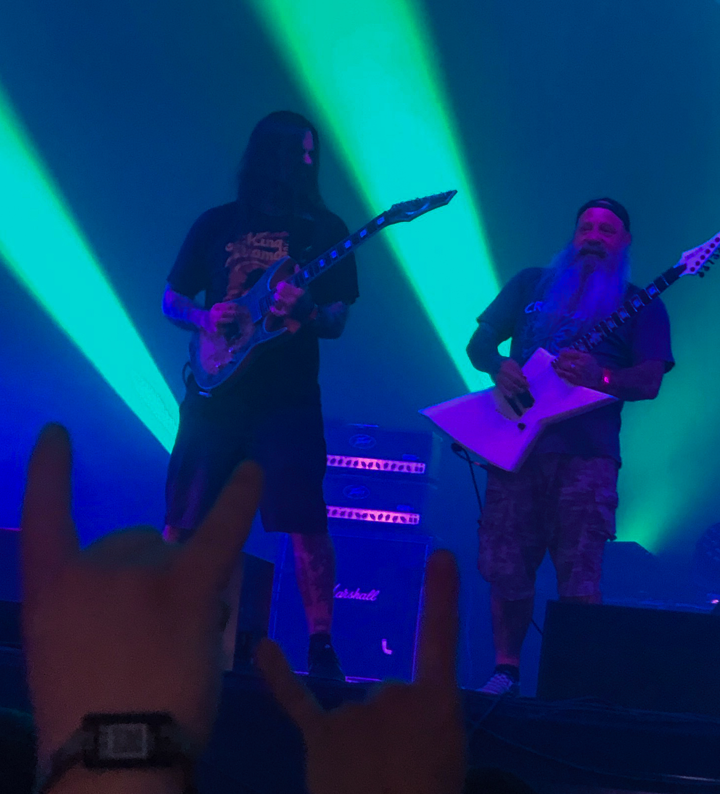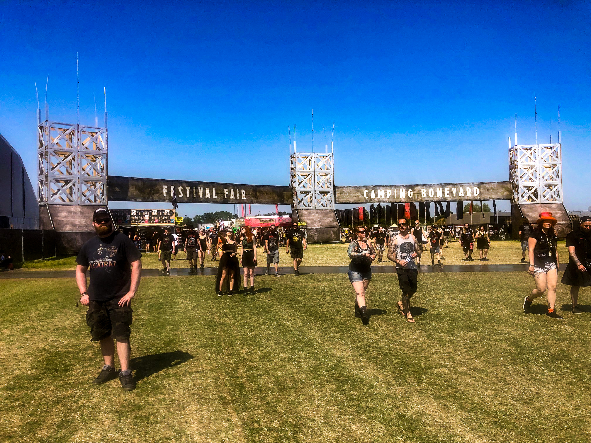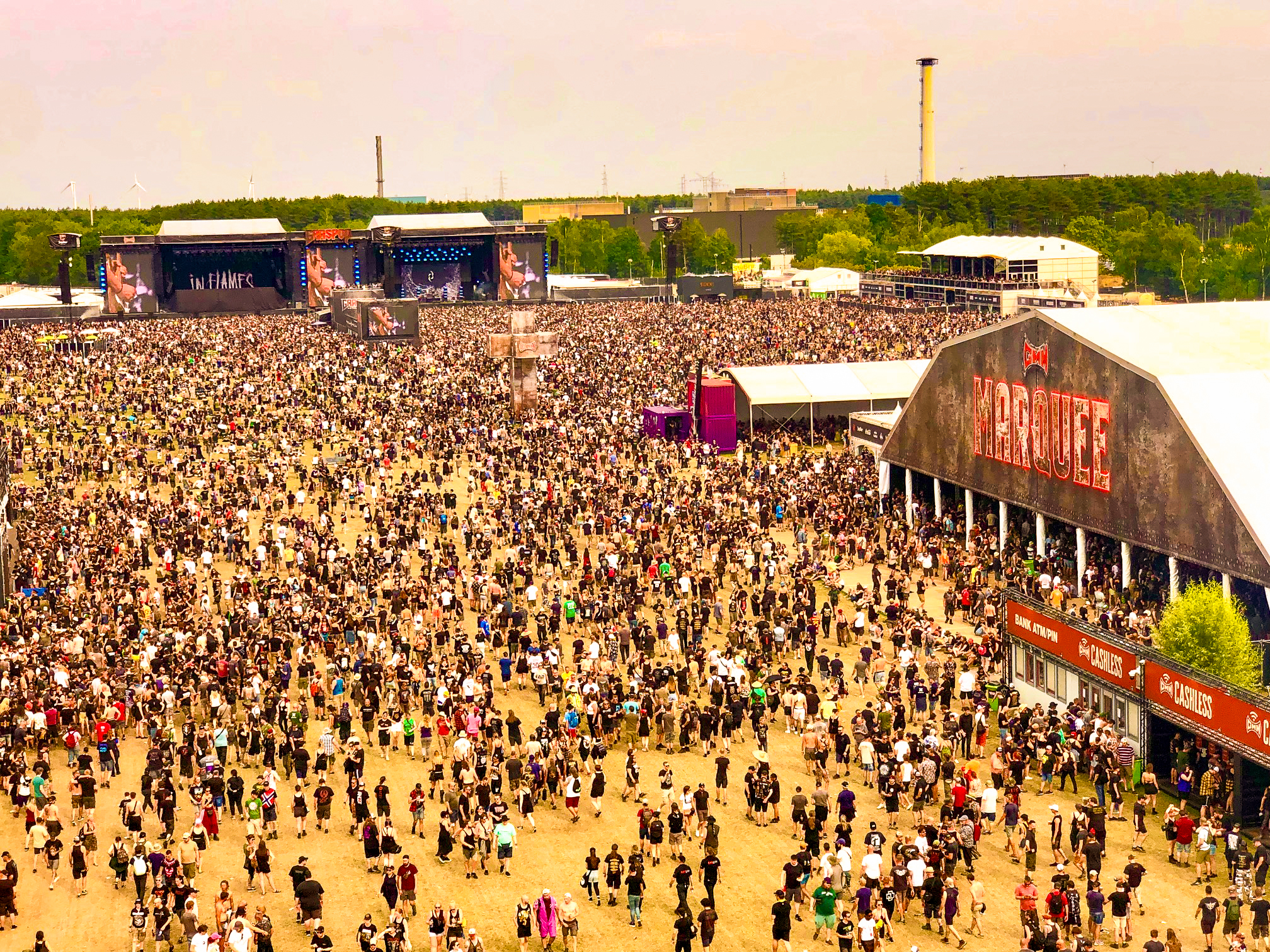SKINDREAD wären wahrscheinlich nicht uninteressant, Duschen ist aber auch nicht verkehrt. Wir starten die Bühnenaction mit I PREVAIL auf der South Stage, viele kennen die Band von ihrer Coverversion von Taylor Swifts "Blank Space". Der durchaus honigsüße Gesang von Brian Burkheiser ist für mich schwer verdaulich. Mal sehen wie es mit THE GHOST INSIDE weitergeht. Musikalisch auch nicht so meine Baustelle, aber trotzdem ist es toll zu sehen, dass die Band wieder am Start ist. Es kam kürzlich zur emotionale Reunion; ihr Tourbus stieß 2015 mit einem Traktor zusammen, beide Fahrer wurden getötet und die Bandmitglieder verletzt, Schlagzeuger Andrew Tkaczyk verlor ein Bein. Trotzdem sitzt er heute wieder am Drumkit. So erhält die Band vom belgischen Publikum nachdem der letzte Song „Aftermath“ verklungen wurde, verdienter Maßen viel Applaus. Nachdem die Shirt-Patch-Tattoo-Shoppingmeile besichtigt wurde, geht’s zu IN FLAMES. Sie starten ihr Set mit „The Great Deceiver“ vom neuen Album und legen mit „Everything's Gone“ und „Darker Times“ nach. Viele Crowdsurfer gleiten übers Publikum. Die Setlist ist für mich persönlich relativ bitter, aber das ist sicher Geschmackssache. SOEN zocken um kurz nach 19 Uhr im Metal Dome, in dem es inzwischen ziemlich heiß geworden ist. Ihr Stil beinhaltet Elemente von TOOL und OPETH, ihre Prog-Rock-Songs wie „Antagonist“ und „Lotus“ machen Bock. Knapp eine Stunde später legen RANCID los und bieten den Leuten Punk-Rock aus Kalifornien. Die Truppe ist gerade auf Europatour und hat ein langes Set mit vielen Songs im Gepäck und die Meute legt zu „Time Bomb“ und „Ruby Soho“ ein Tänzchen hin. Selbstverständlich geht’s um 21 Uhr zu PANTERA“! Auch wenn wichtige Teile der Band fehlen, möchte ich die Möglichkeit die alten Hits live zu erleben keineswegs verpassen. Bekanntlich haben Phil Anselmo und Rex Brown Zakk Wylde und Anthrax' Charlie in die Band geholt und ihr Sound knallt ordentlich. Der barfüßige Anselmo entert zu „A New Level“ die Bühne, dann reihen sich Kracher an Kracher: „Becoming“, „I`m broken“, „This Love“, „5 Minutes Alone“. Zakk Wylde bringt das Material gut rüber, immer wieder wird an die verstorbenen Bandmitglieder „Dimebag“ Darrell und Vinnie Paul Abbott erinnert. Phil Anselmo ist nicht so bewegungsfreudig wie früher, aber macht einen guten Job und wirkt nicht so fertig, wie es vor einigen Jahren der Fall war. Nach „Fucking Hostile“, „Walk“ und „Cowboys From Hell“ ist der Auftritt nach 1:15 Stunden vorbei. Das Ohrwurm-Riff von „Walk“ wird mich wohl noch im Traum begleiten.