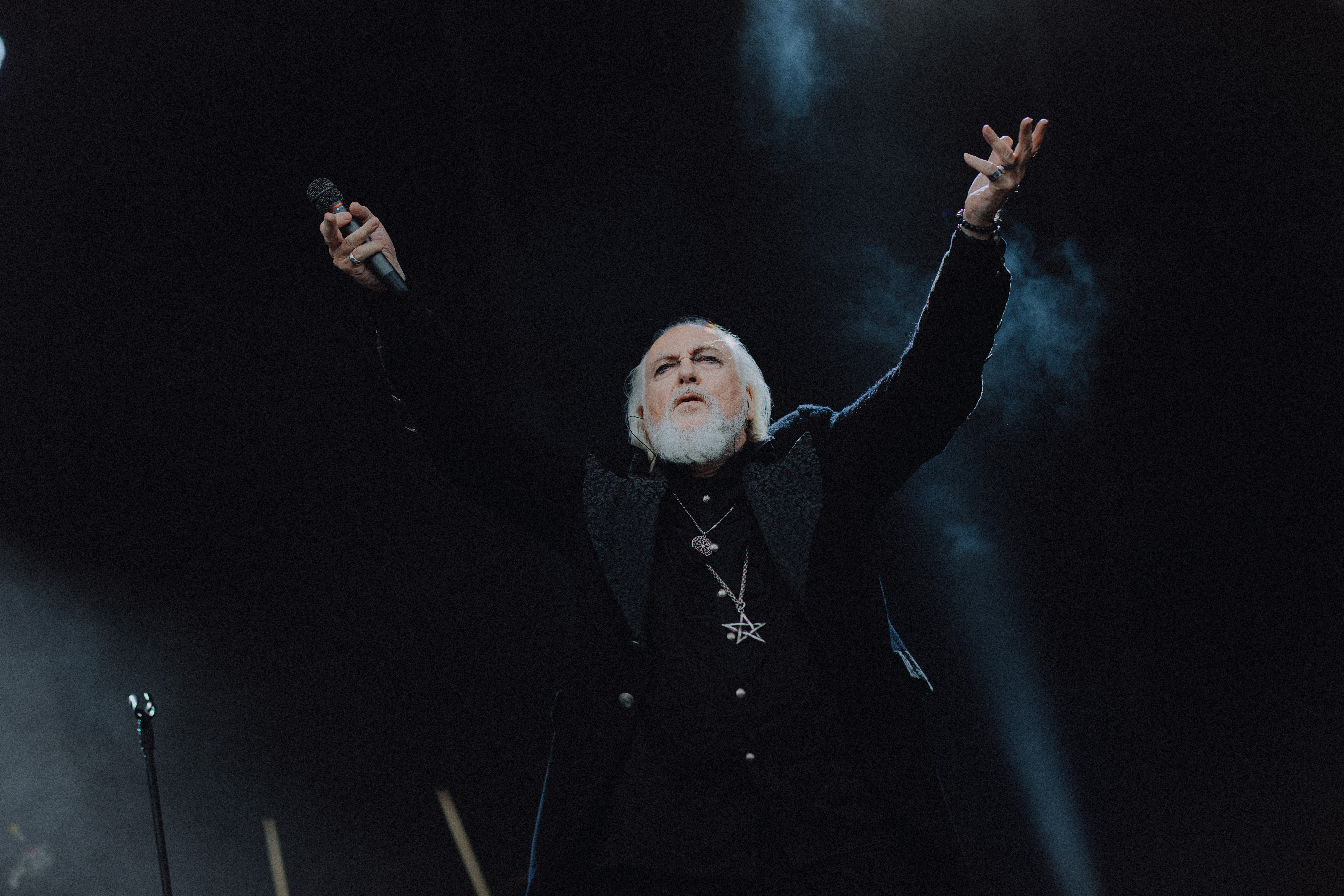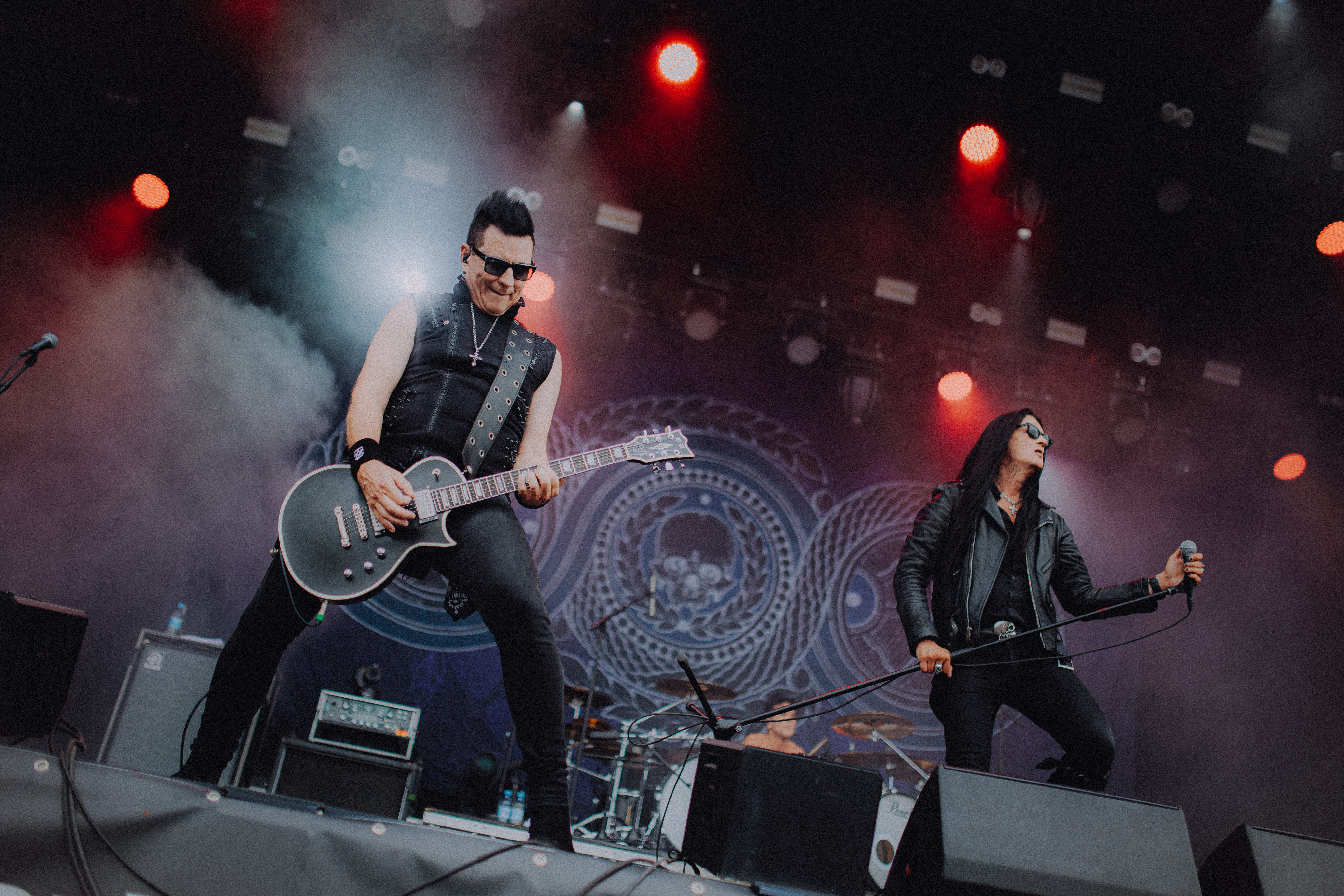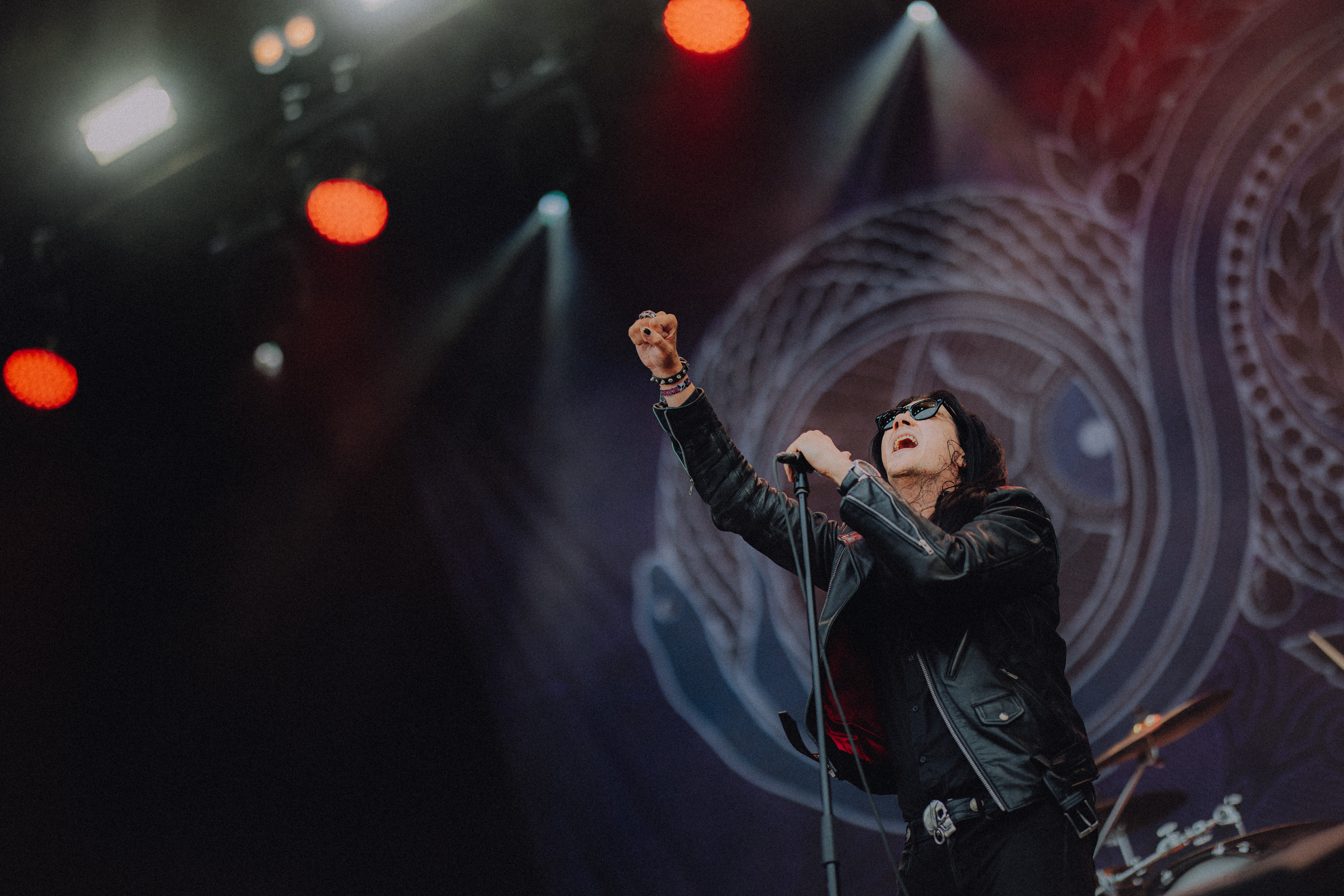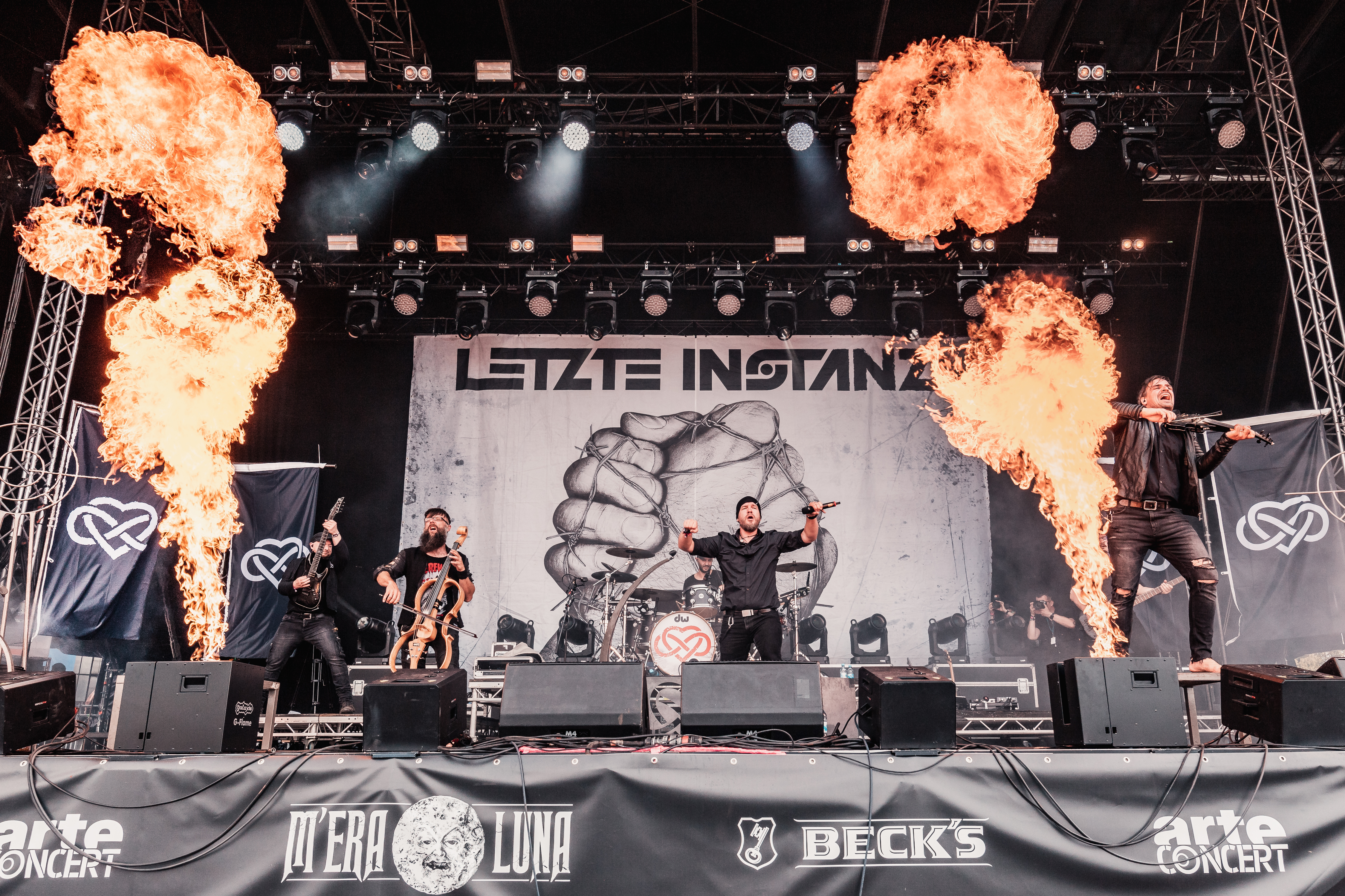 LETZTE INSTANZ legten mit Cello und viel Energie los und brachten das Publikum schon mit dem Opener „Ehrenwort“ auf Trab. Wie so viele Bands dieser Tage brachten auch die Dresdener ihre Dankbarkeit darüber zum Ausdruck, schon so lange Teil des M ´era Luna-Zirkus sein zu dürfen: „Wir haben überlegt, wann wir das erste Mal hier waren – das war 2000. Danke, dass ihr uns so lange begleitet! Wer war denn damals schon da?“ Kurze Pause. Dann, grinsend aufgrund der zurückhaltenden Reaktion des Publikums: „Ah, der eine oder andere ist schon gestorben!“ Die Menge vor Ort erwies sich dann aber doch noch als recht lebendig und feierte Songs wie „Enzündet Die Feuer“ und „Wir Sind Eins“ fleißig mit. Rockig weiter im Programm ging es auch mit THE 69 Eyes, allerdings erst mit einer knappen Viertelstunde Verspätung (Déjá-vu, Déjá-vu: hatten wir das nicht vor ein paar Jahren schon mal?). Die Finnen – übrigens ebenfalls schon lange Teil der M ´era Luna- Community – betraten die Bühne zu Klängen von ELVIS, was in manch einem Fan vermutlich glückliche Erinnerungen an die kleine Reihe von Akustikkonzerten vor etlichen Jahren heraufbeschwor, die auch sehr gelungene ELVIS-Cover in ihrem Set beinhaltet hatten (wäre das nicht auch mal wieder was für die Zukunft?). ELVIS gab es während des Konzerts diesmal zwar nicht auf die Ohren, dafür aber etliche Bandklassiker: „Devils“, „Feel Berlin“; „Gothic Girl“ und „Brandon Lee“ kredenzten feinen Goth´n´ Roll, bevor die Helsinki Vampires sich mit dem inzwischen schon traditionellen Rauschmeißer-Kracher „Lost Boys“ verabschiedeten.