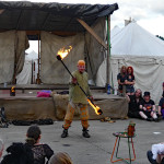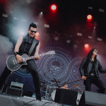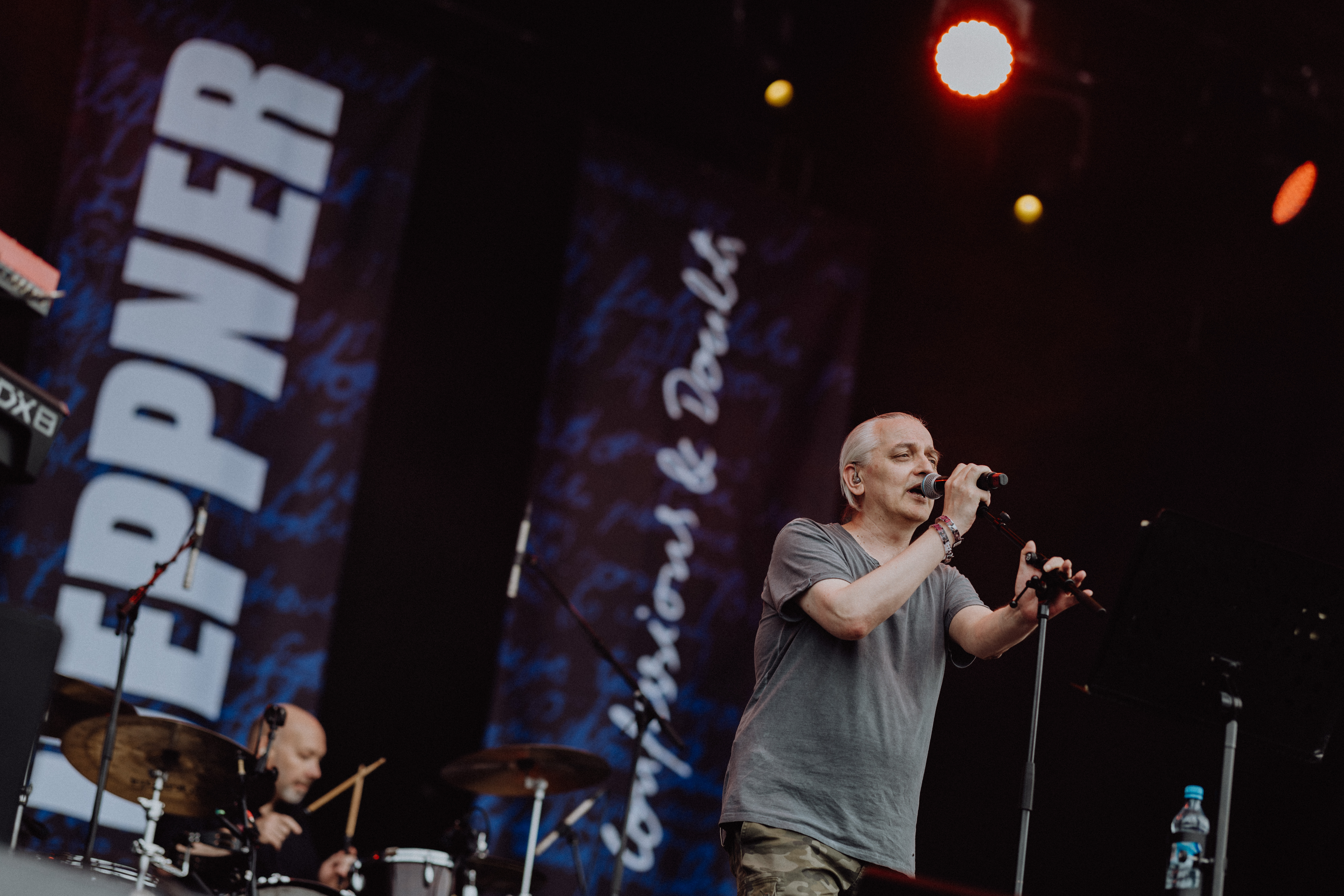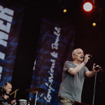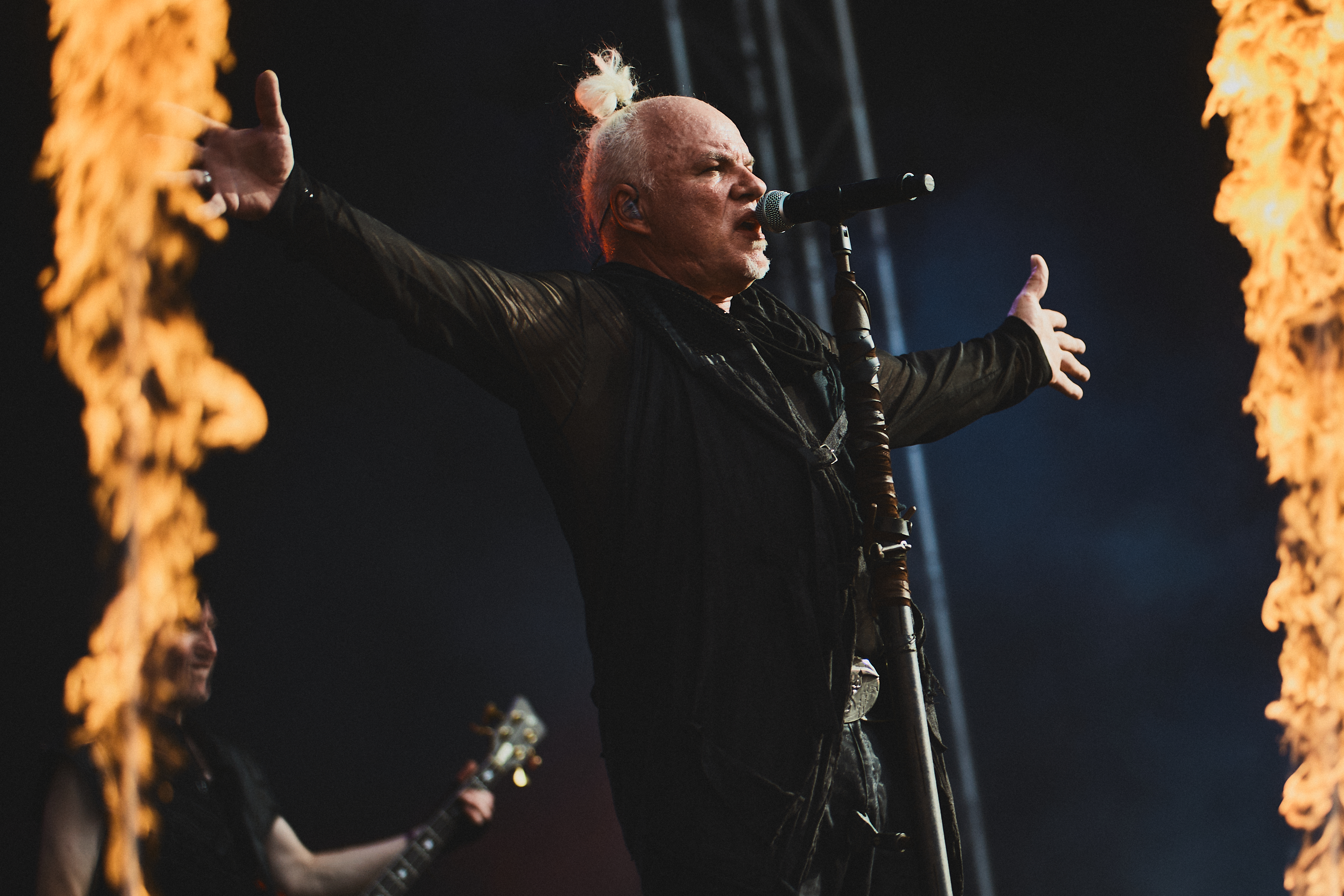 Um 16: 30 Uhr übernahm PETER HEPPNER die Bühne (ein Gastspiel hatte er ja schon gestern gegeben) und lieferte, beginnend mit „Alleinesein“, einen Querschnitt durch sein Schaffen ab, der sowohl seine Zeit mit WOLFSHEIM als auch seine Solo-Werke abdeckte und in dem natürlich auch der WOLFSHEIM-Hit „Kein Zurück“ nicht fehlen durfte. Die Stimmung vor der Main Stage war entspannt, man war teilweise schon etwas mitgenommen vom ersten Festivaltag und viele nutzen die etwas ruhigeren Klänge, um sich auf Bierbänken und Picknickdecken zurückzulehnen und ein wenig zu erholen. Weniger gemütlich ging es stattdessen an der Club Stage zu, auf der AGONOIZE, entgegen vorheriger Befürchtungen und zur großen Freude manch eines Fans, diesmal wieder nach Herzenslust mit Kunstblut herumspritzen durften. Wer dabei in den vorderen Reihen gestanden hatte, war hinterher unschwer zu erkennen. Auf der Main Stange ging es unterdes zurück ins Mittelalter: SUBWAY TO SALLY hielten, von Pyrotechnik untermalt, Hof und brachten das Publikum mit „Eisblumen“, „Sieben“, „Kleid Aus Rosen“ und „Tanz auf dem Vulkan“ auf Touren. Apropos tanzen: Stolz war die Band verständlicherweise auch, denn wie Sänger Eric Fish vor „Veitstanz“ so schön bemerkte: „Es ist schon cool, wenn man ein Lied geschrieben hat, nach dem inzwischen Discos benannt sind!“