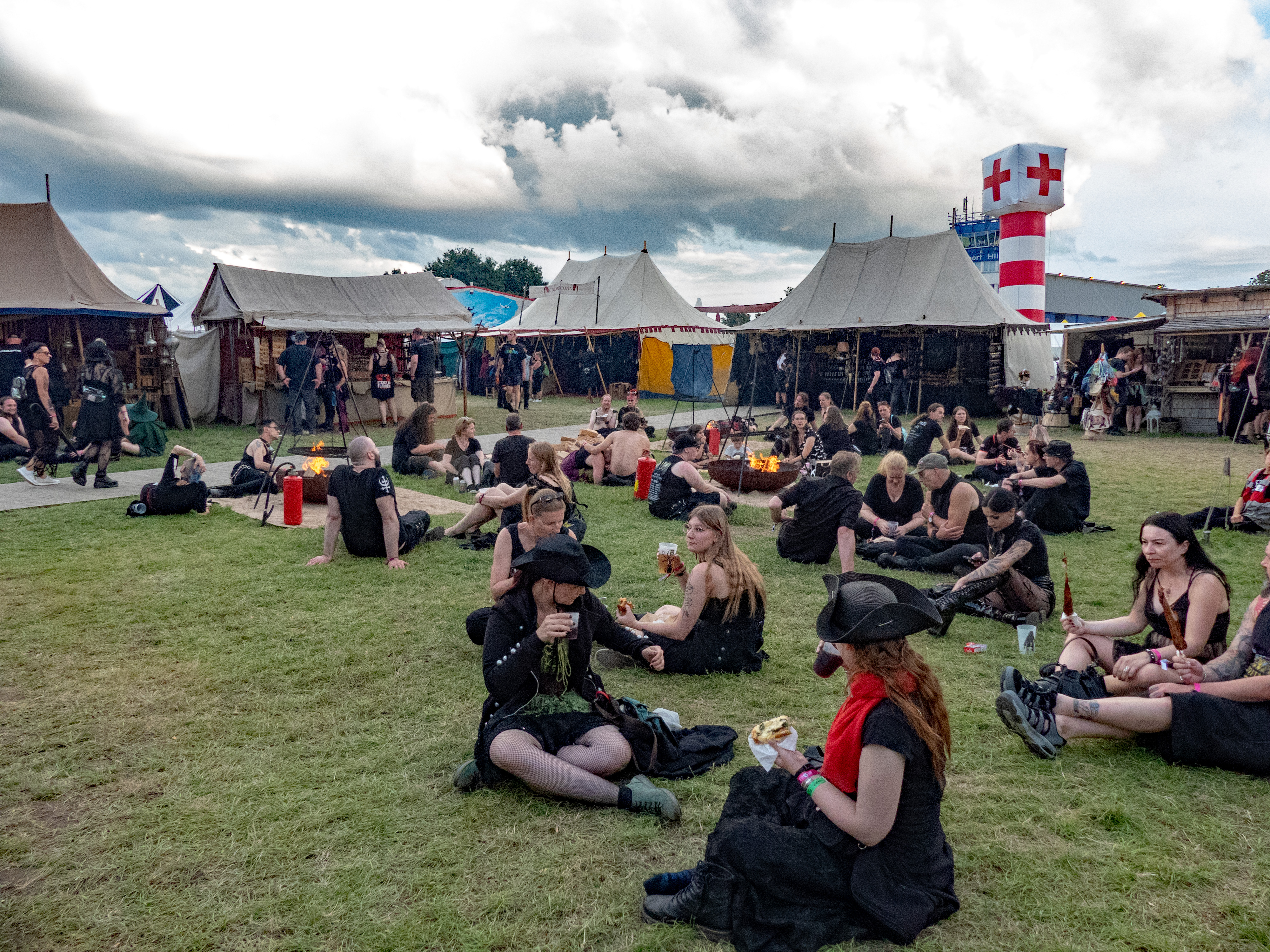 Ein Festivalbericht ist dem Ziel verpflichtet, ein Bild des Geschehens vor Ort zu entwerfen und, soweit möglich, dessen Stimmung einzufangen, und zwar für Daheimgebliebene wie für Besucher gleichermaßen. Was daher an dieser Stelle auch ausdrücklich Erwähnung finden muss, ist ein Umstand, der das M´era Luna klar aus der Masse heraushebt und gefühlt wirklich zu etwas Besonderem macht: das ganze Festival ist geprägt von einer Höflichkeit, Toleranz und gegenseitigen Rücksichtnahme, die nicht nur auf Festivals ihresgleichen sucht. Hier wird nicht gepöbelt, gedrängelt, ausgegrenzt oder blöde angemacht. Diversität, Body Positivity, Inklusivität, Toleranz – all die Dinge, um die an anderer Stelle ein irrsinniger Wirbel mit oft fragwürdigem Ergebnis gemacht wird, werden hier einfach mit stilschweigender Selbstverständlichkeit und ohne großes Bohei gelebt, ein jeder darf hier sein wie er nun mal ist und nach seiner Fasson glücklich werden. Im Herzen ist die Schwarze Szene ziemlich bunt: jeder wird gleichermaßen respektvoll behandelt, unabhängig von Alter, Geschlecht / Gender, ethnischer, kultureller oder religiöser Zugehörigkeit, Kleidergröße, Erscheinungsbild oder Musikgeschmack, und das ganz ohne Vorschriften oder Schwingen der Moralkeule. Es herrscht die unausgesprochene Übereinkunft, dass alle sich wohlfühlen sollen und nach dieser Maxime verhält man sich auch. Vielleicht braucht die Welt einfach ein bisschen mehr M´era Luna?