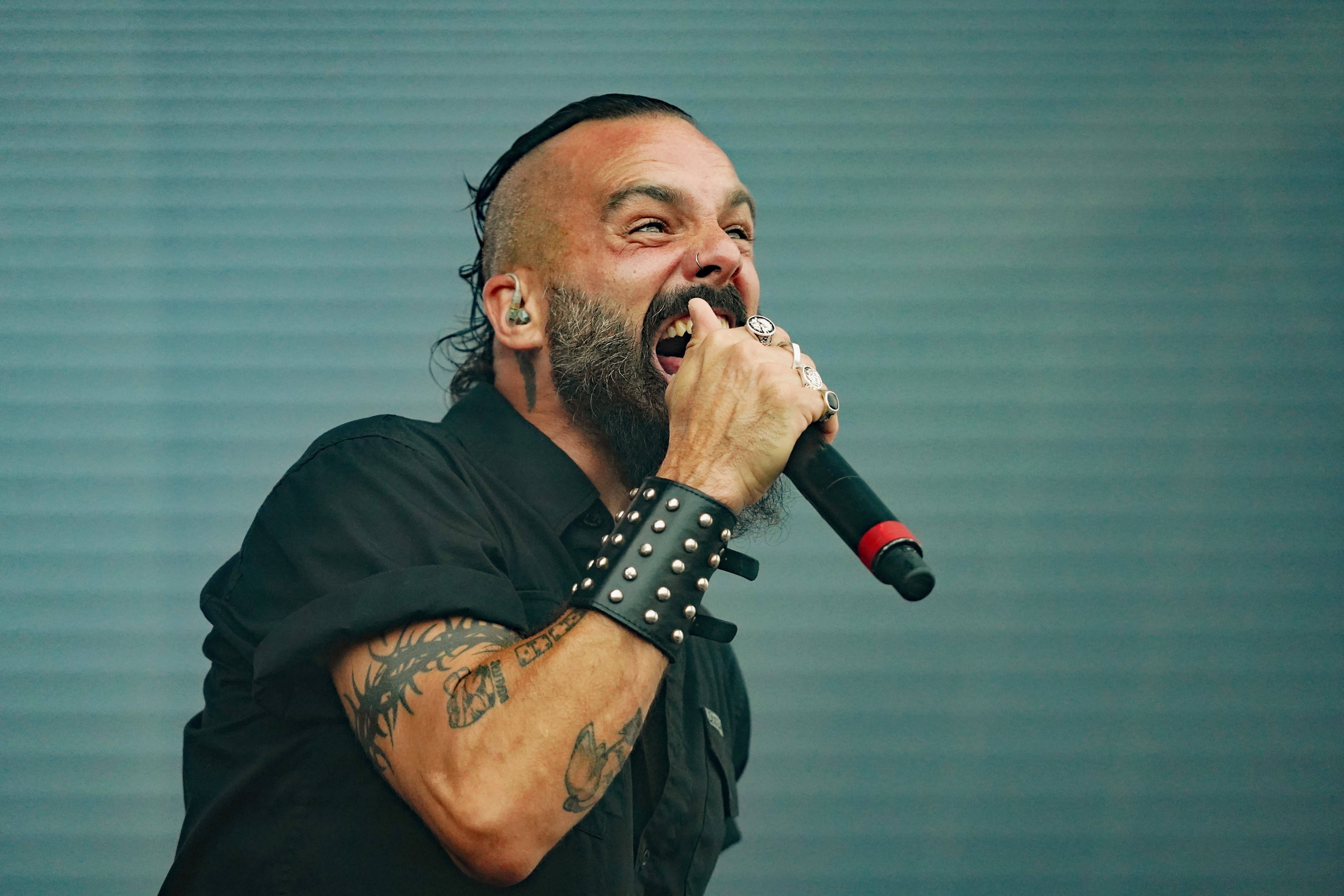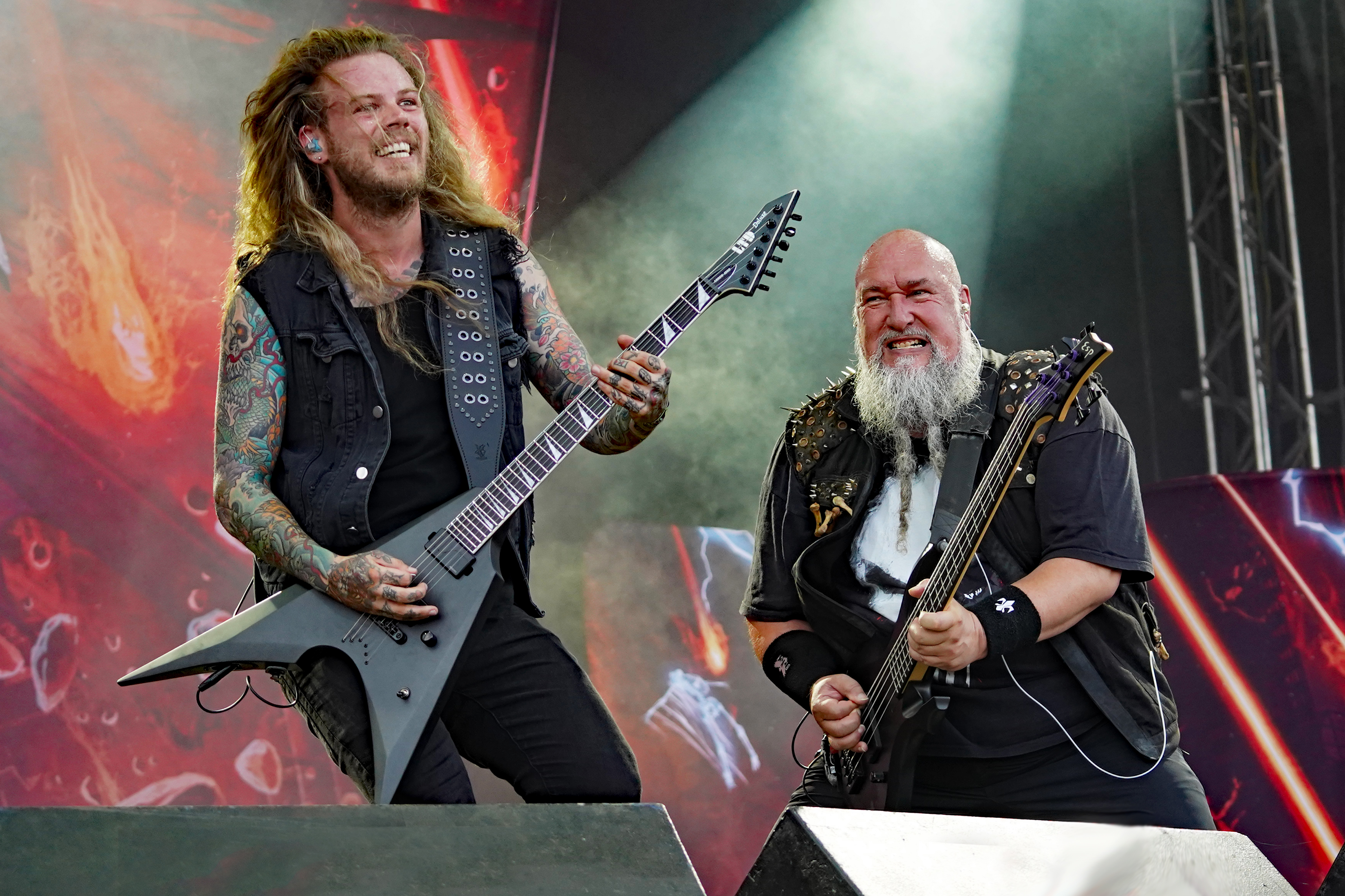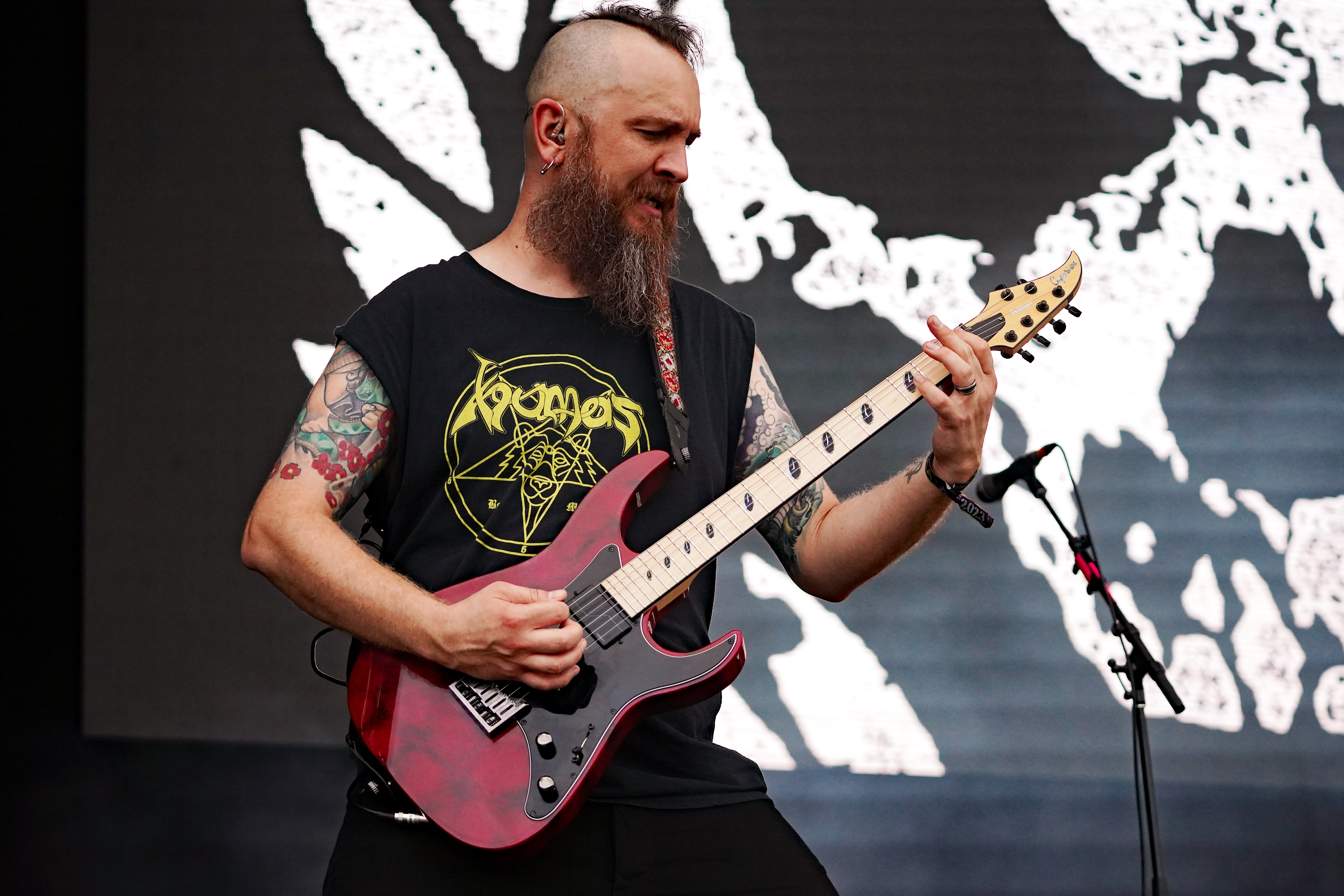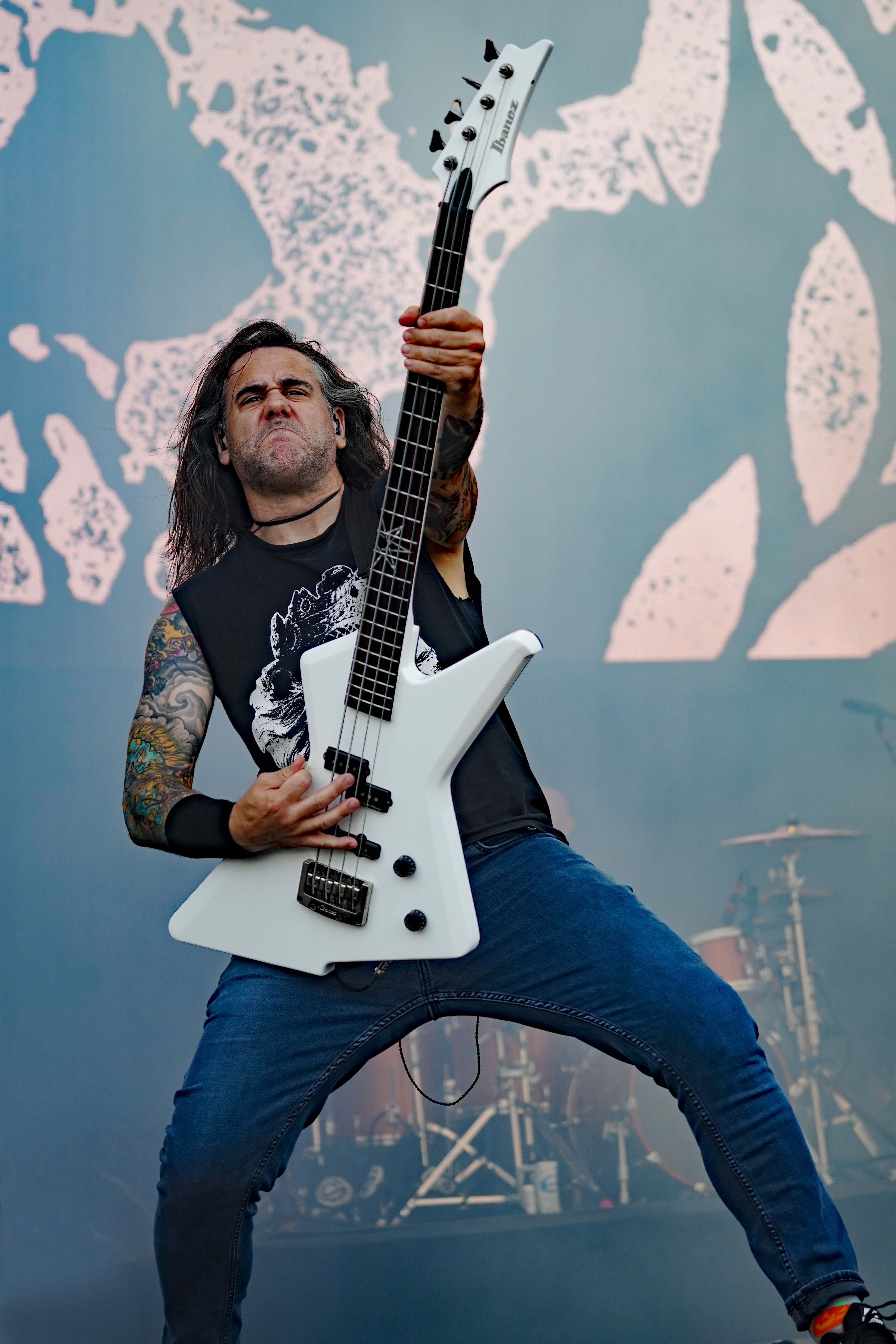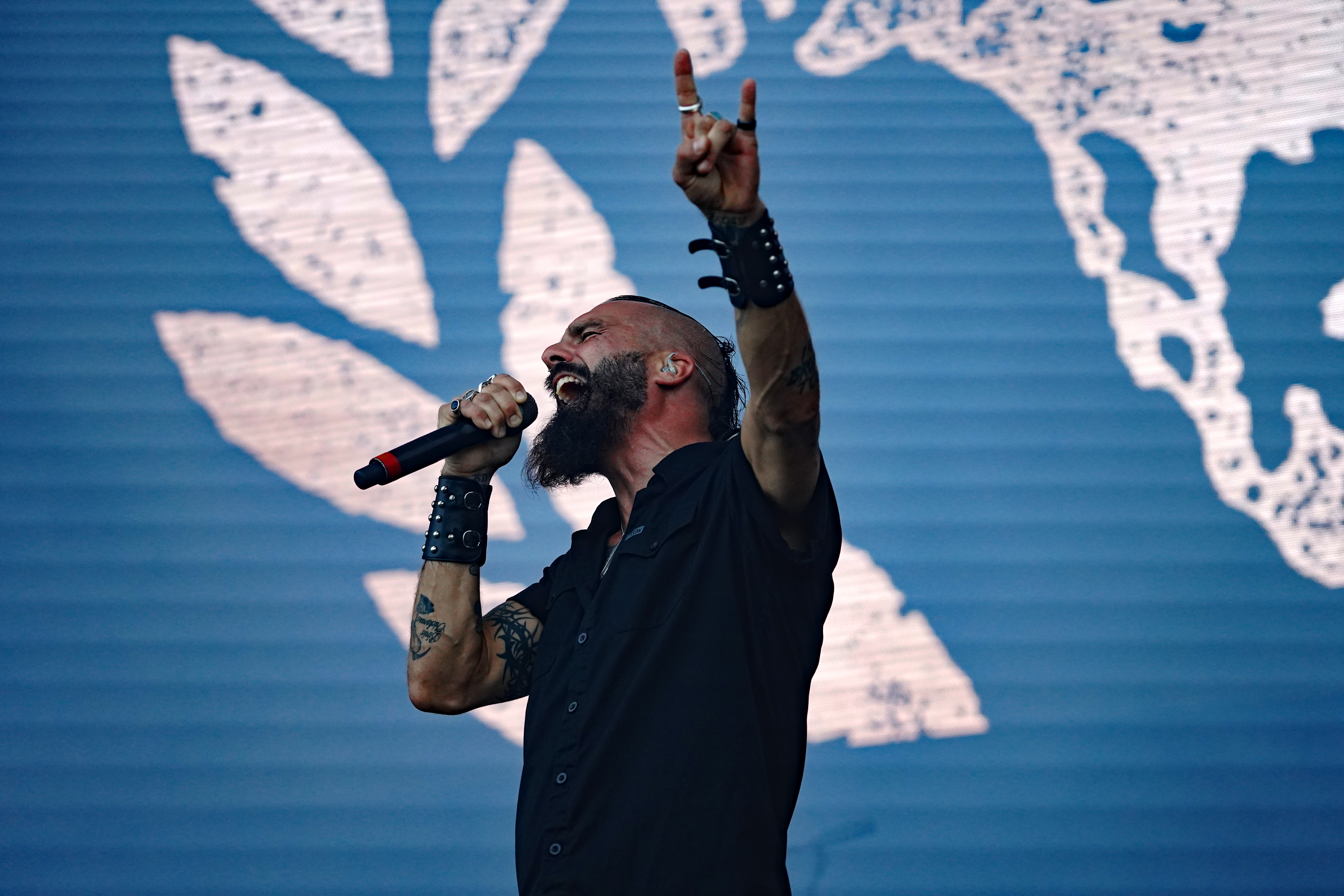 Für uns starteten RAGE auf der T-Stage den samstäglichen Konzertreigen mit einem Sack voll altem Zeug. Ich hatte mich darauf gefreut, die Rabauken aus Herne endlich mal wieder live zu erleben. Gerade die letzten beiden Longplayer hatten es mir angetan. Obwohl ich ein Fan der ersten Stunde war, spricht mich aktuell der nicht mehr ganz so hohe Gesang von „Peavy“ enorm an. Wie auf der eigenen Homepage angekündigt, rocken die Jungs gegenwärtig wieder als Trio, da sich Stefan Weber (Gitarre seit 2020) eine Auszeit aus persönlichen Gründen auf unbestimmte Zeit genommen hat. “Resurrection Day“ leitete das Set erwartungsgemäß mit Vollgas ein. Es sollte allerdings der einzige Song aus den neueren Veröffentlichungen bleiben. Gemäß dem klassischen Dreier-Line-Up wurde der Rest der Show überwiegend mit Material aus den 90ern bestritten. Sowohl die Musikanten, die fast unentwegt grinsten, als auch das Publikum, das u.a. allerlei bizarres Getier mit sich führte (z.B. einen präparierten Dachs!!!), waren mit ordentlich Begeisterung bei der Sache, so daß der Platz vor der Bühne zeitweise in einer Staubwolke verschwand. Gerade zum Ende hin ging mit “Straight To Hell“, der Nummer aus “Der Schuh des Manitu“, “Don't Fear The Winter“, meinem persönlichen Lieblingstrack (...ja die 80er waren auch vertreten) und “Higher Than The Sky“ so richtig die Post ab. Meister Grimbart wäre vor Freude sicher auch umhergesprungen, wäre er noch lebendig gewesen.