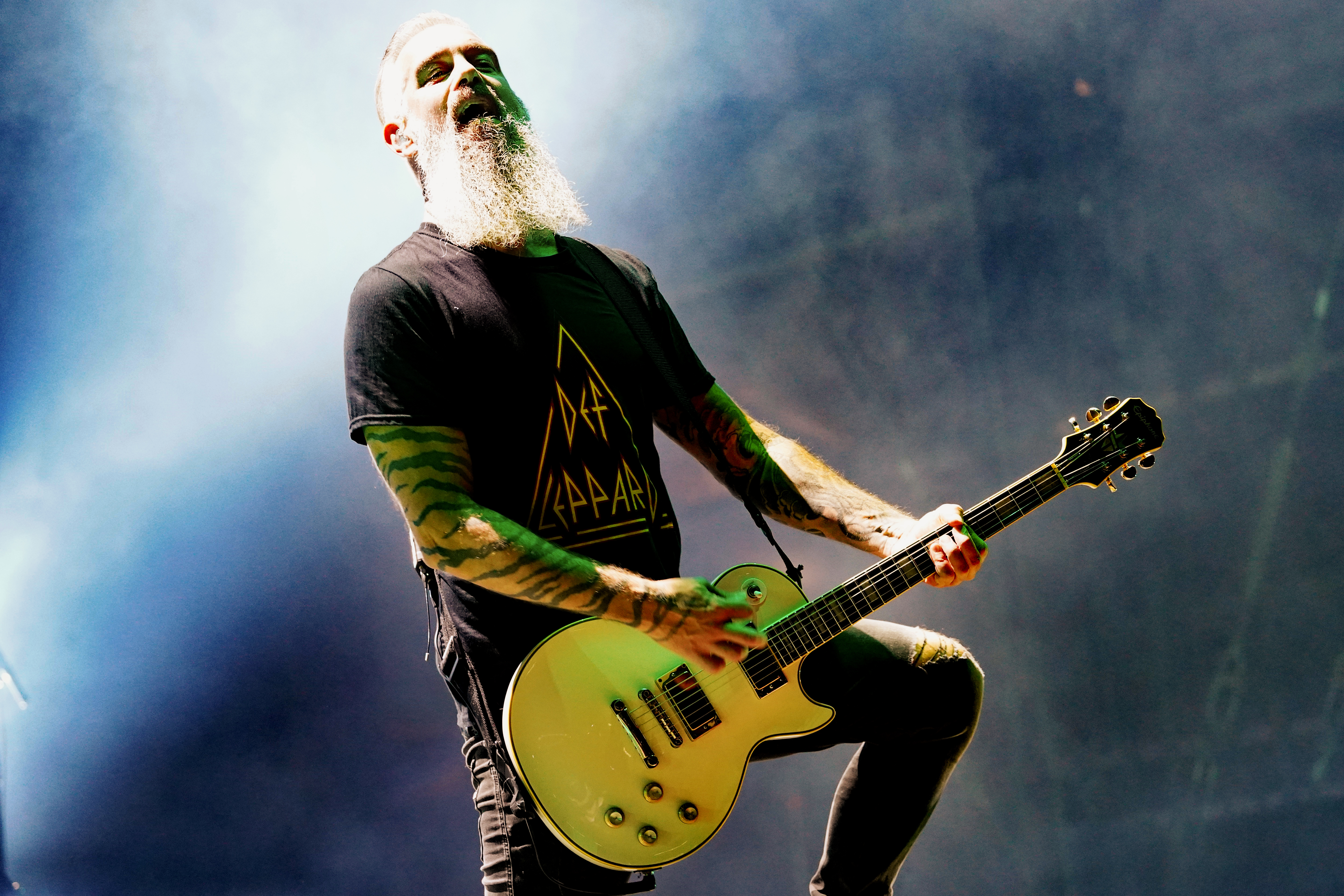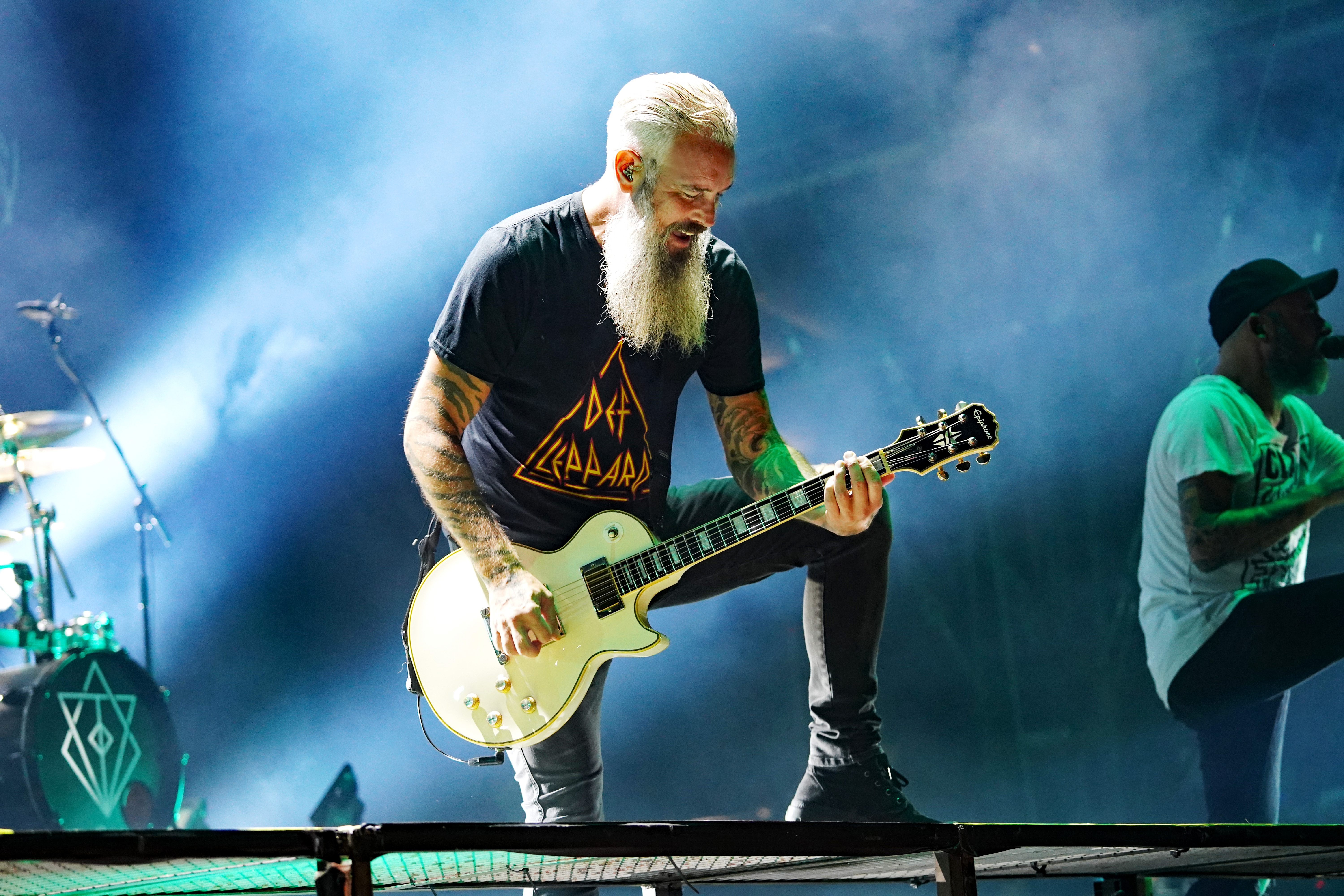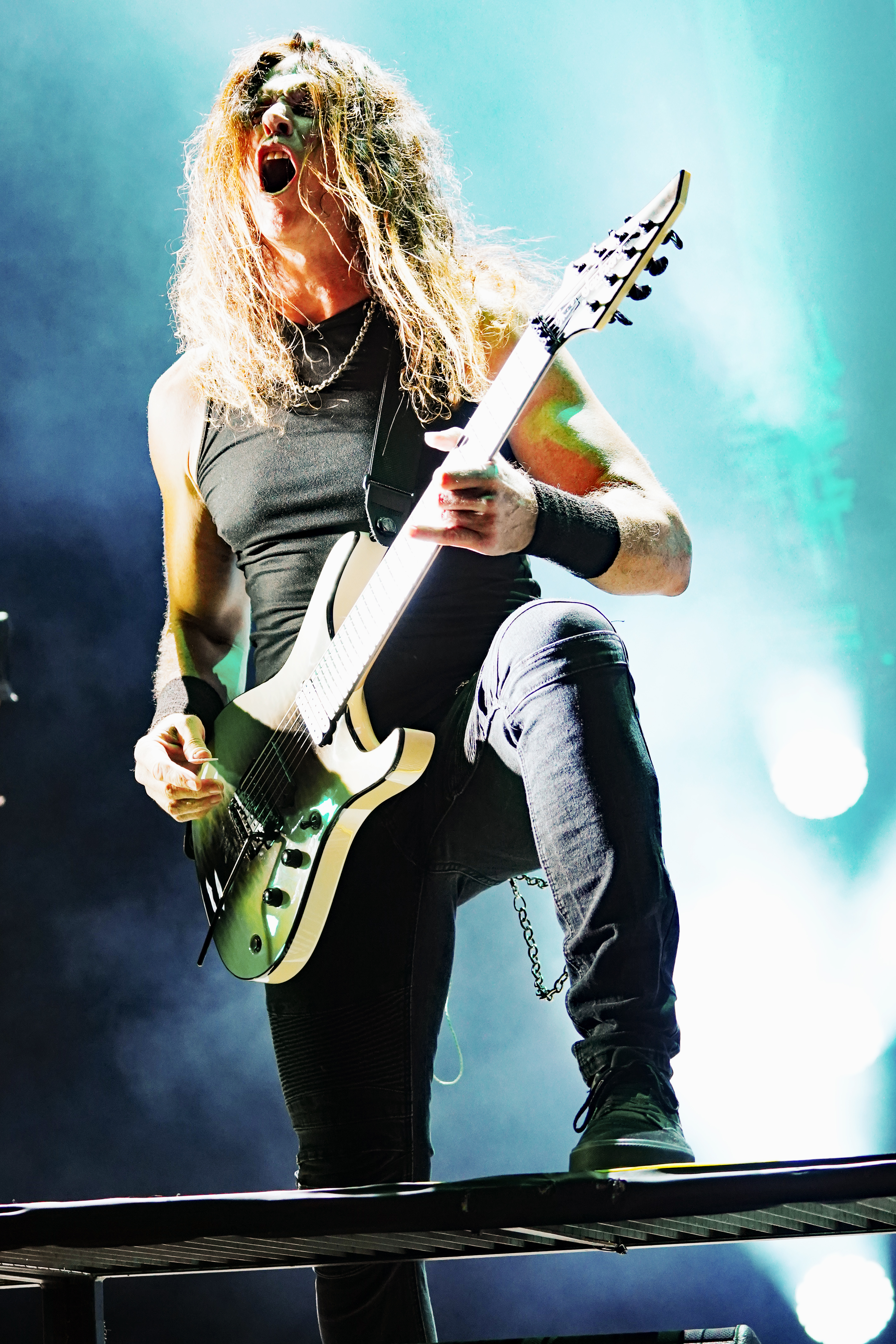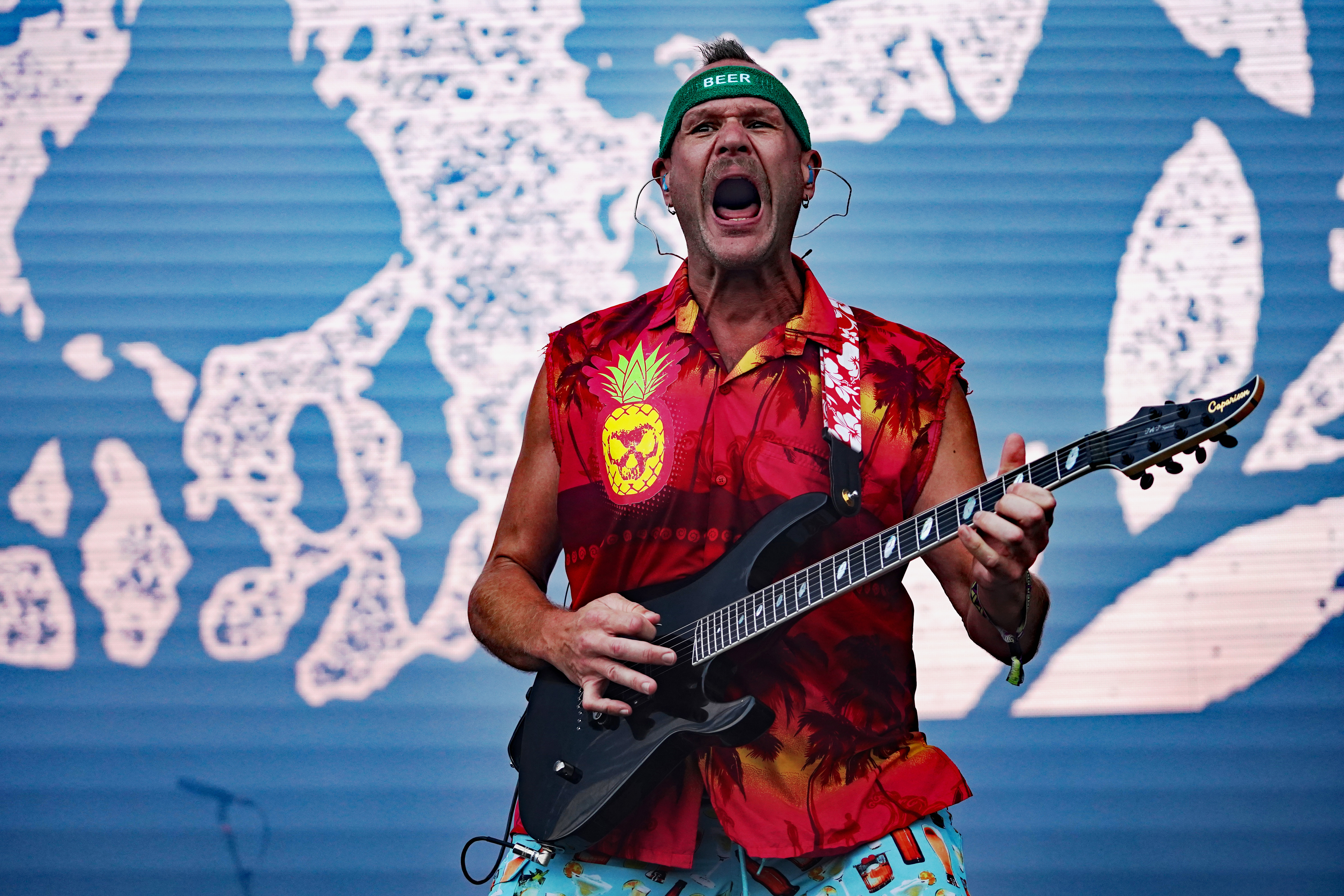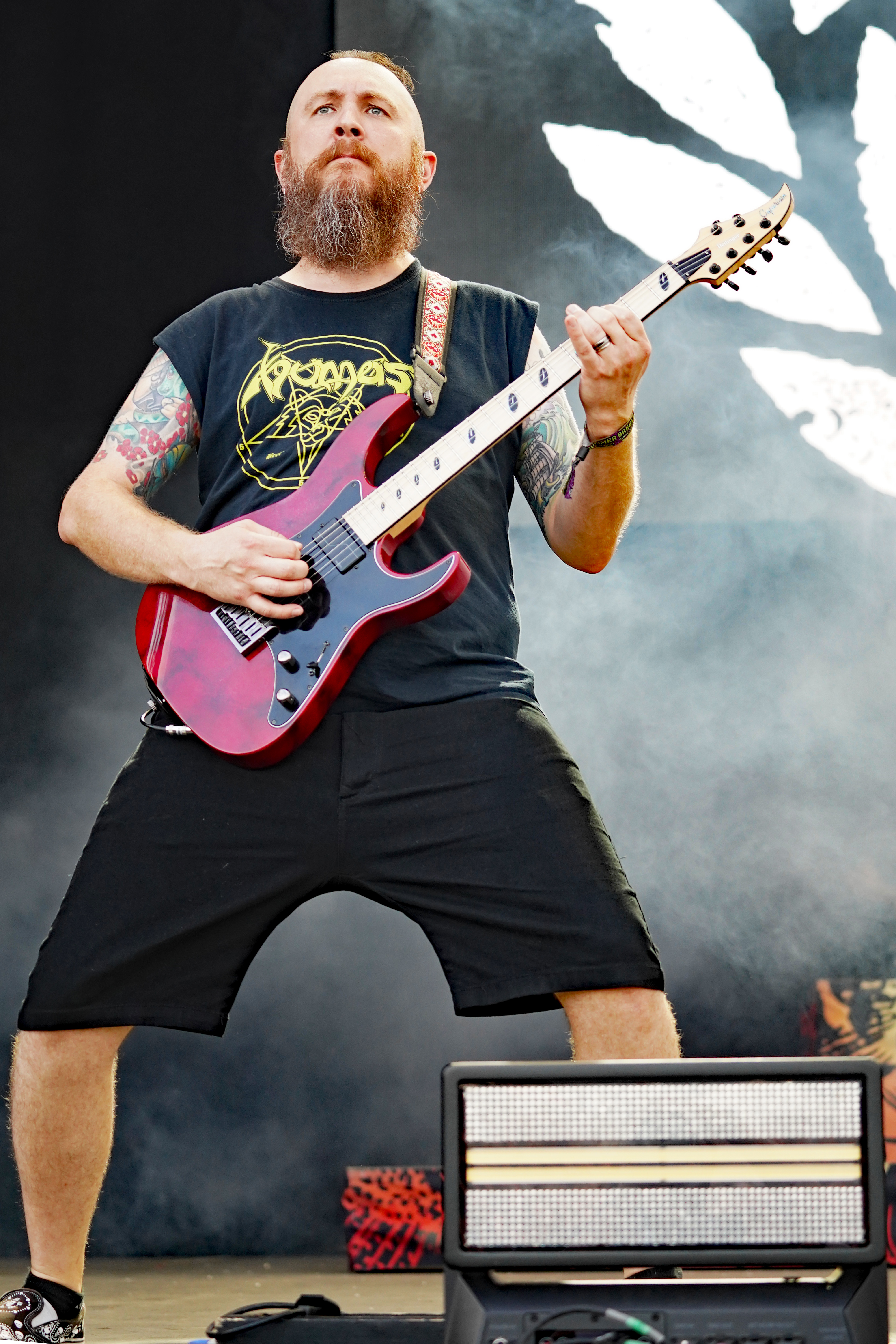 Das musikalische Genie und Produzent Adam Jonathan Dutkiewicz (Gitarre) kommentierte begeistert: „Das ist ein Festival, bei dem die Crowdsurfer auf einem Crowdsurfer surfen, total verrückt!“ Im Hawaiihemd mit Totenkopf und Shorts mit Biergläsern und grünem Stirnband mit „Beer“ Schriftzug drauf, sah er ein bißchen wie Will Farrell mit Irokesenschnitt auf dem Weg zum Bierpong spielen aus. Er stand quasi symbolisch für den unglaublichen Spaß den die Truppe auf der Bühne hatte und verbreitete. Er kommentierte munter ständig die Show, was dazu führte, daß er sich sogar vom Publikum tadeln lassen mußte, weil er sich „...vor Ergriffenheit ob so eines tollen Festivals“, wie er sich rechtfertigte, prompt verspielte. Den optischen Kontrast hierzu bildete der Rest der Band, allen voran der charismatische Jesse Leach mit „I Am Broken Too“ Tattoo am Arm und Joel Sroetzel mit Fake-Venom Shirt, die gleichwohl mit der selben Freude an der Performance agierten.