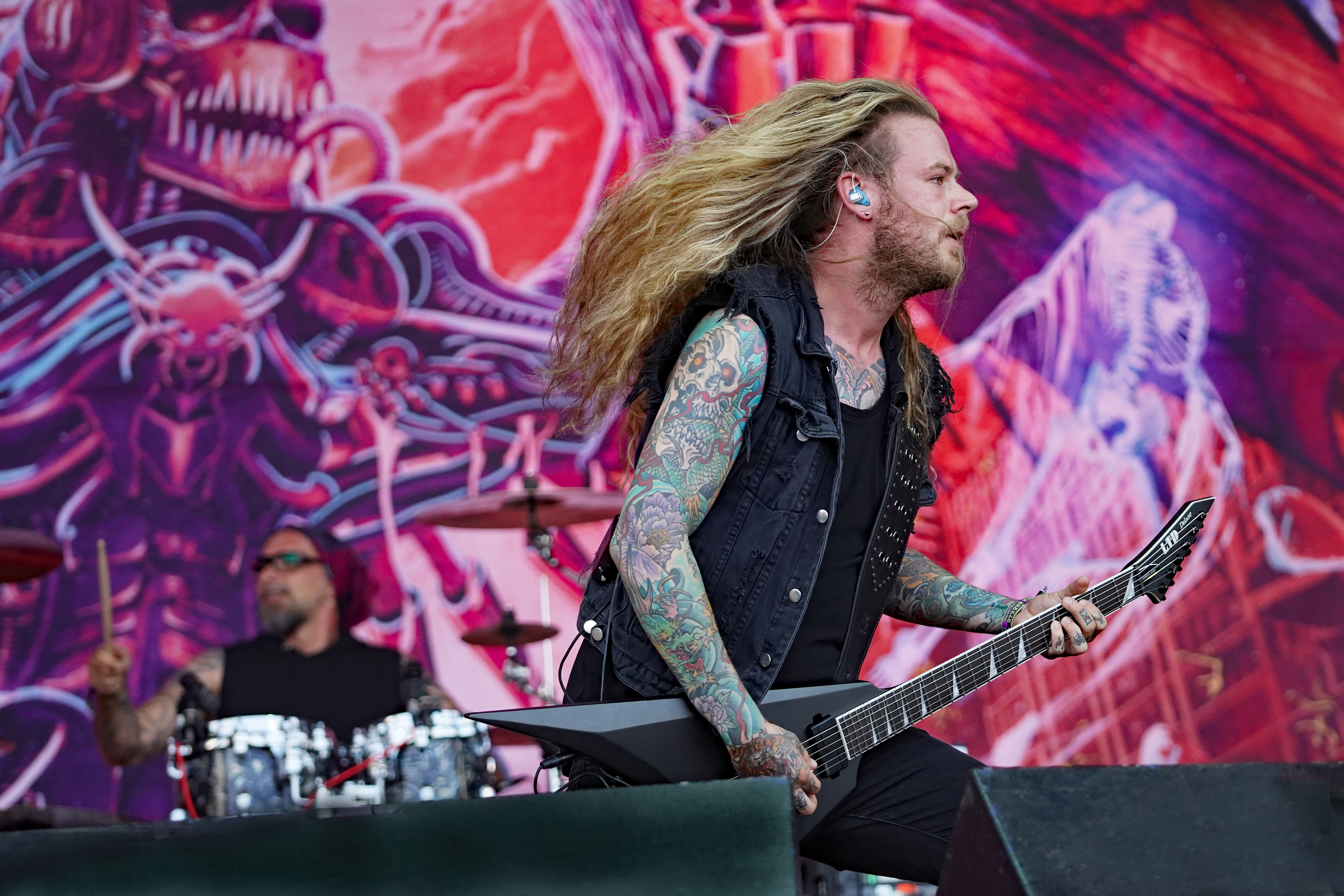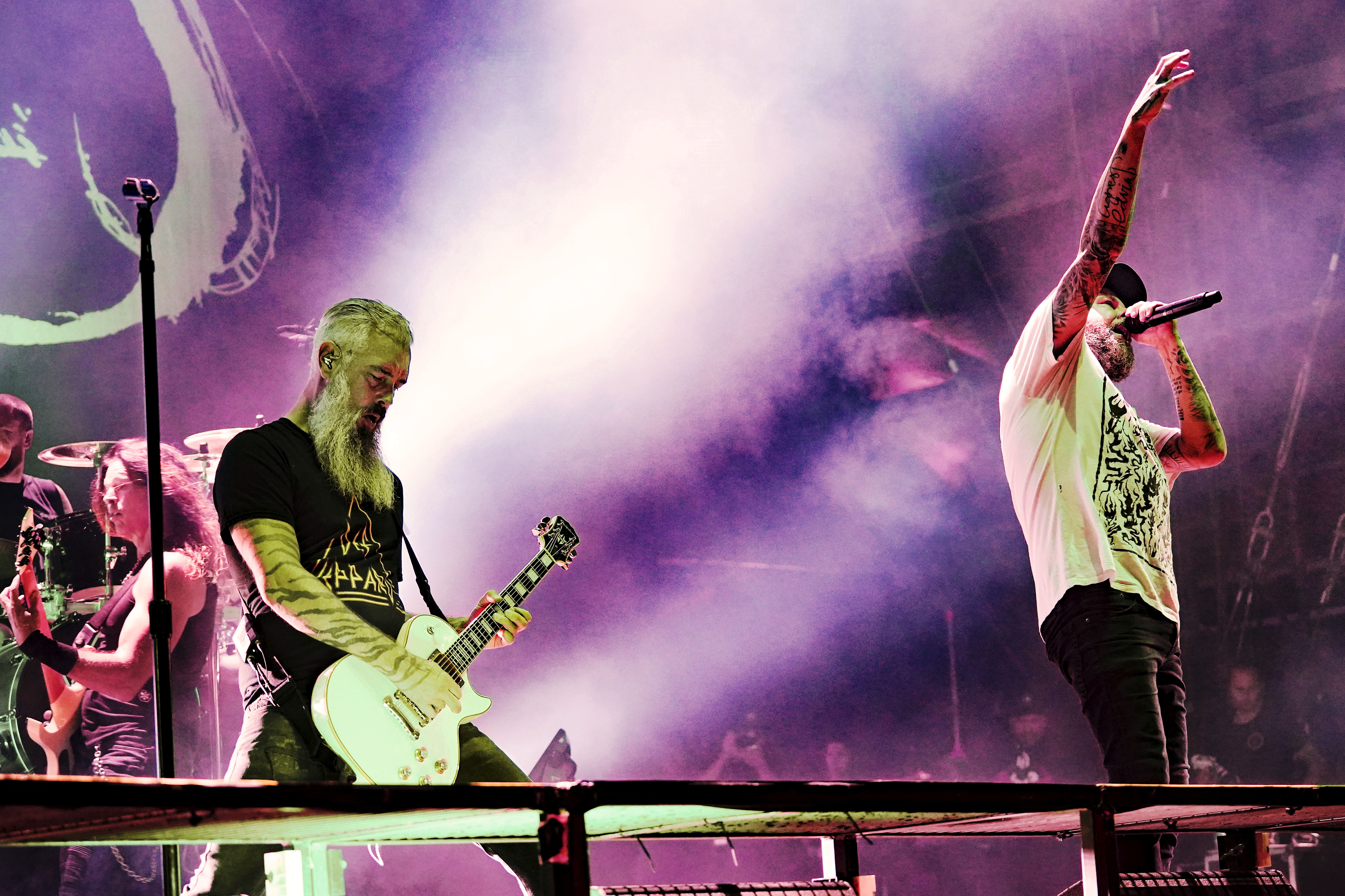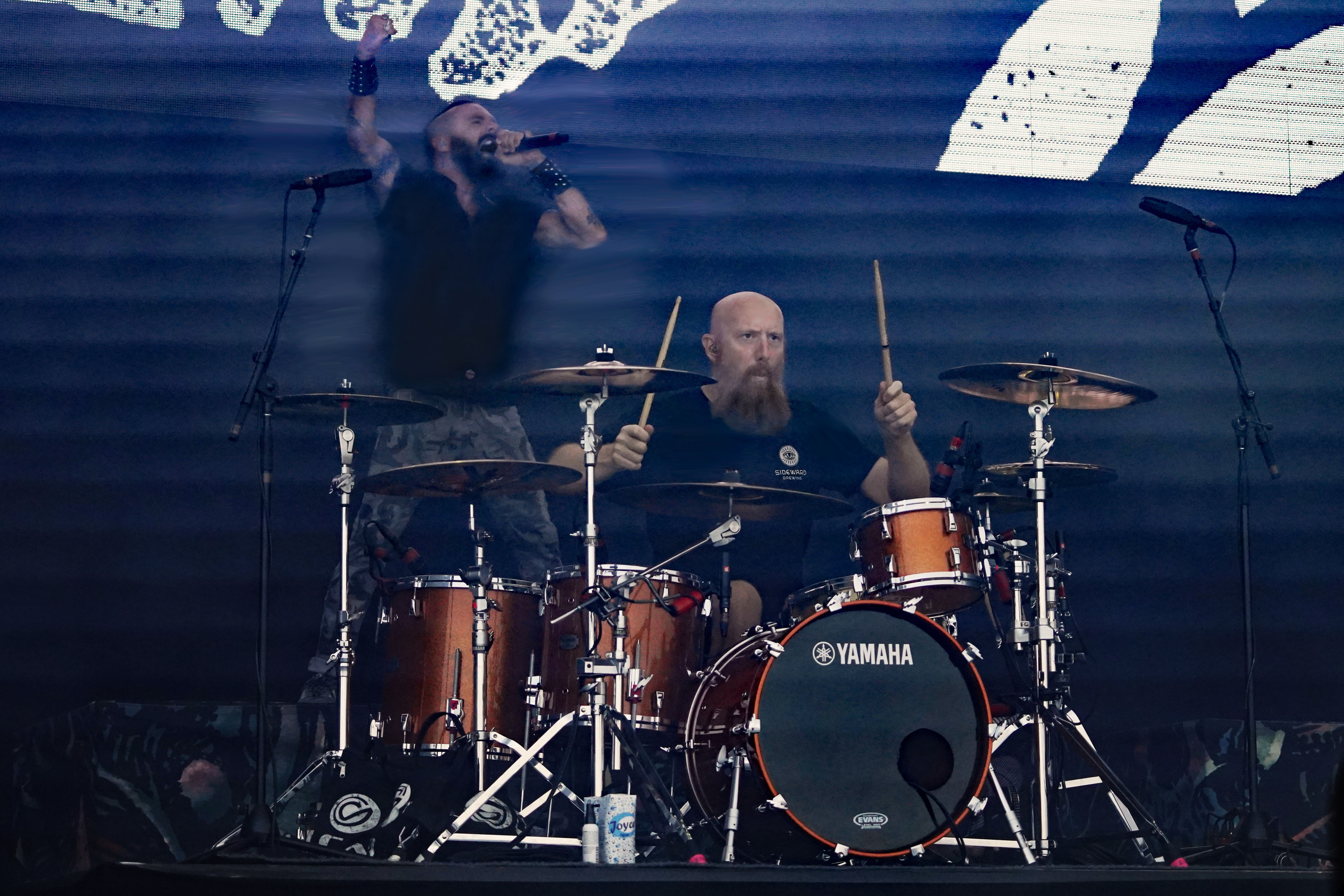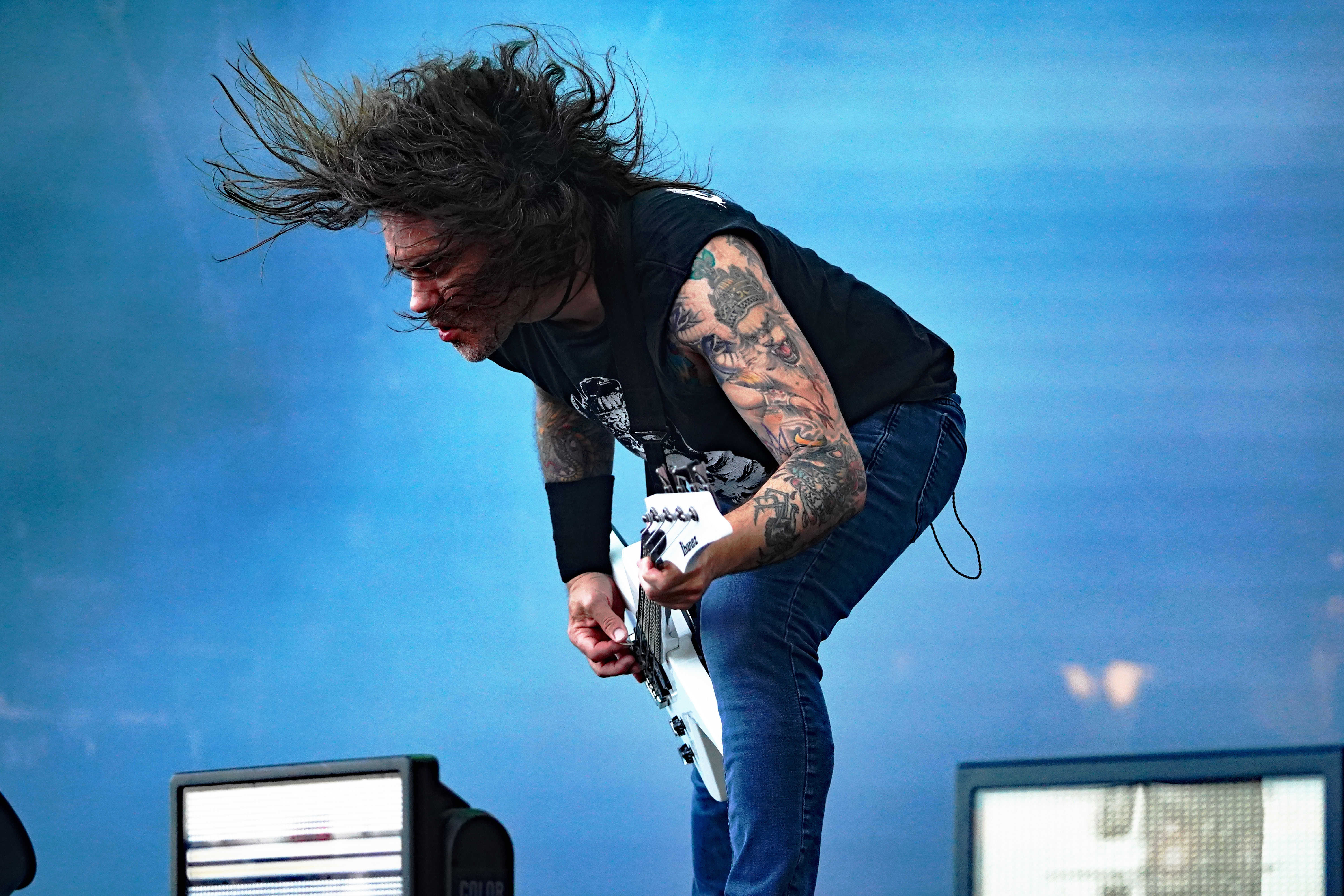 Das musikalische Genie und Produzent Adam Jonathan Dutkiewicz (Gitarre) kommentierte begeistert: „Das ist ein Festival, bei dem die Crowdsurfer auf einem Crowdsurfer surfen, total verrückt!“ Im Hawaiihemd mit Totenkopf und Shorts mit Biergläsern und grünem Stirnband mit „Beer“ Schriftzug drauf, sah er ein bißchen wie Will Farrell mit Irokesenschnitt auf dem Weg zum Bierpong spielen aus. Er stand quasi symbolisch für den unglaublichen Spaß den die Truppe auf der Bühne hatte und verbreitete. Er kommentierte munter ständig die Show, was dazu führte, daß er sich sogar vom Publikum tadeln lassen mußte, weil er sich „...vor Ergriffenheit ob so eines tollen Festivals“, wie er sich rechtfertigte, prompt verspielte. Den optischen Kontrast hierzu bildete der Rest der Band, allen voran der charismatische Jesse Leach mit „I Am Broken Too“ Tattoo am Arm und Joel Sroetzel mit Fake-Venom Shirt, die gleichwohl mit der selben Freude an der Performance agierten.