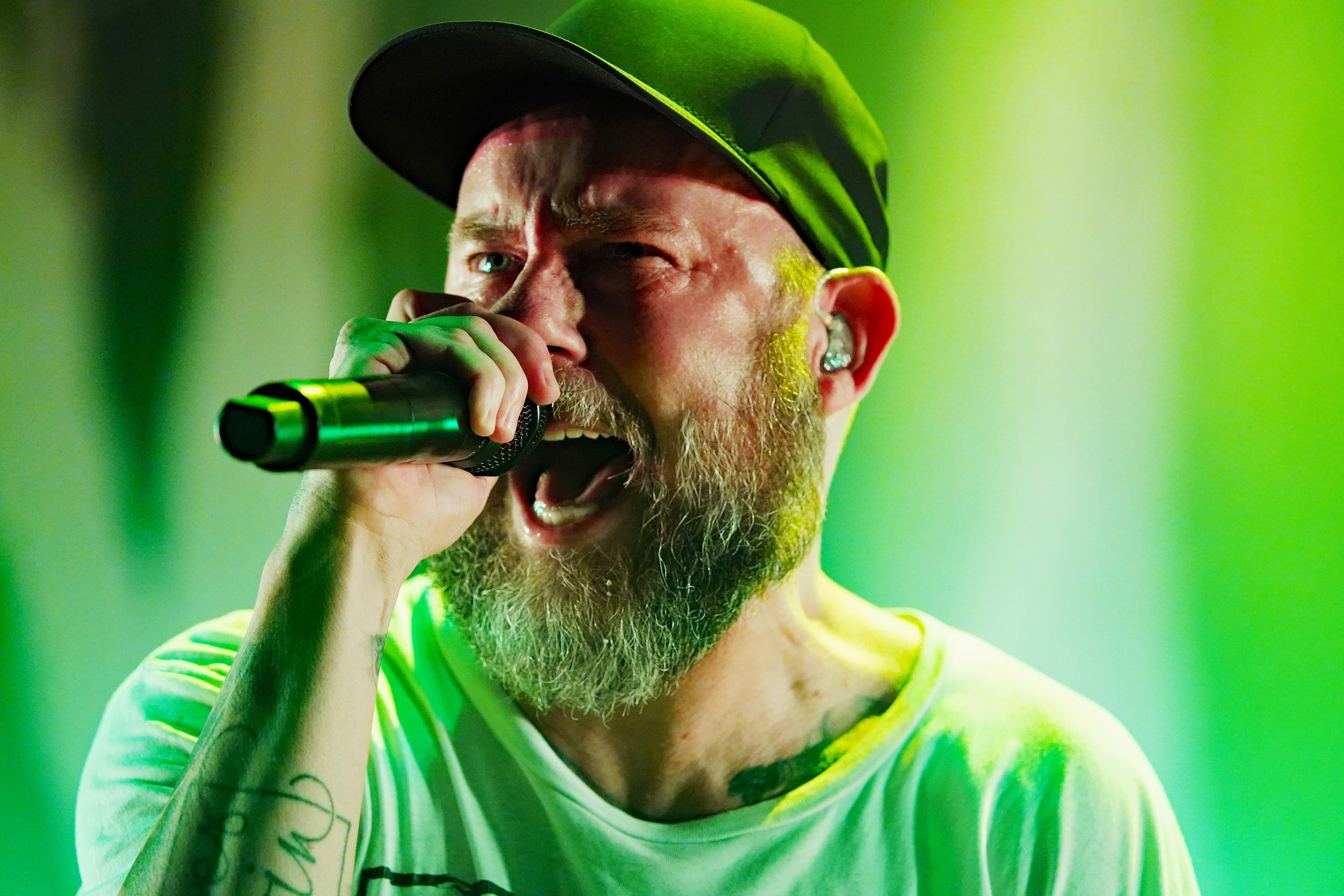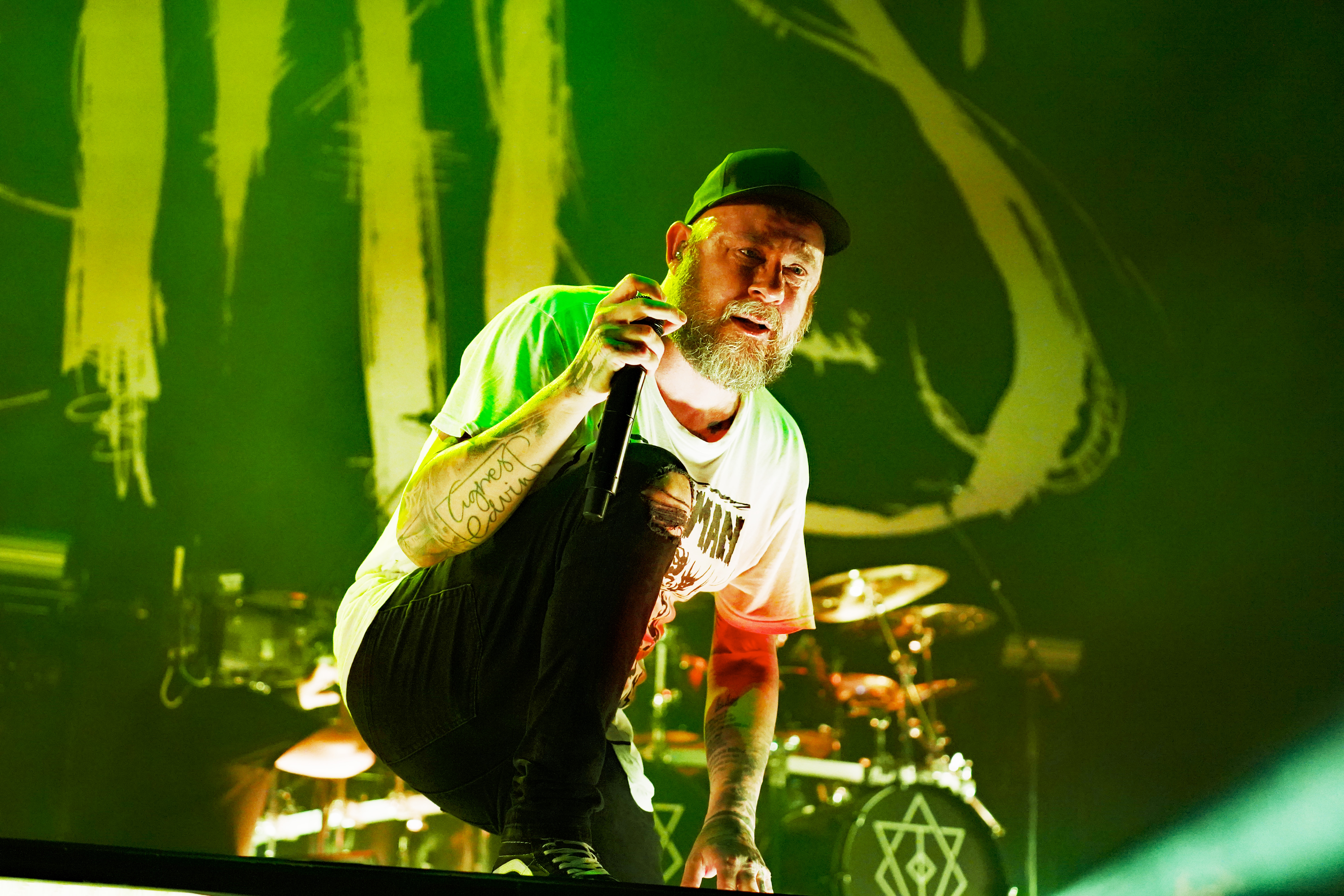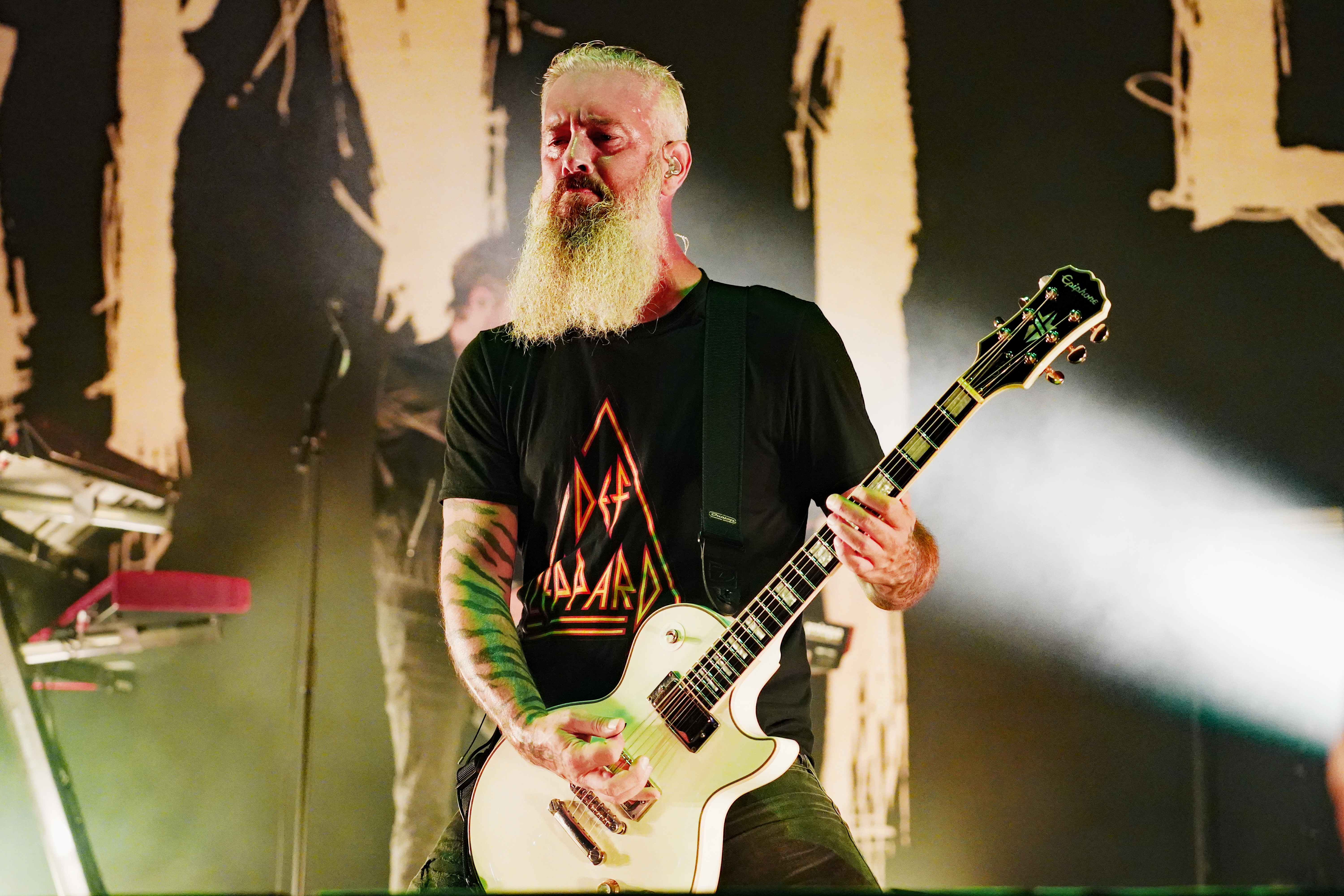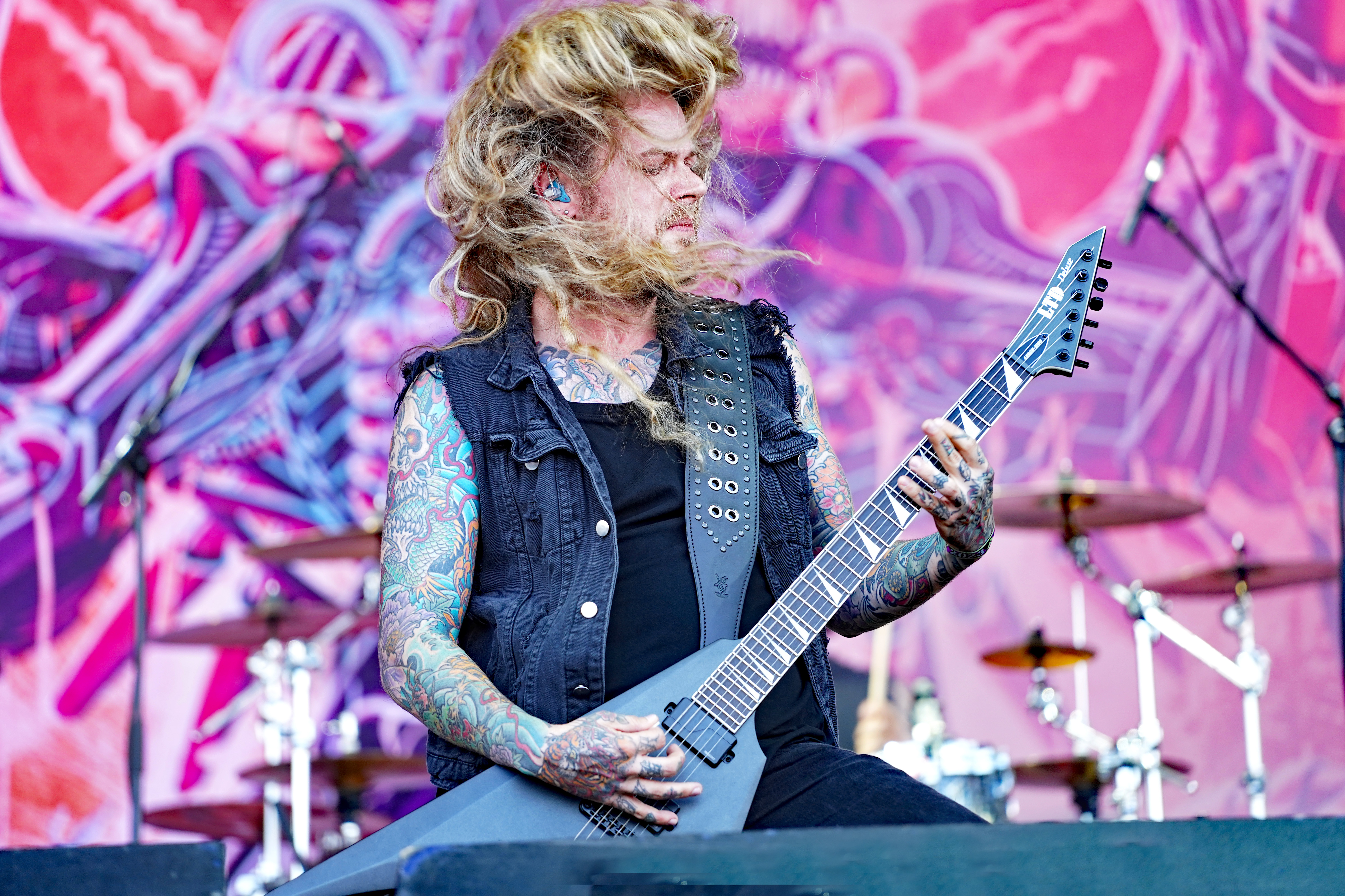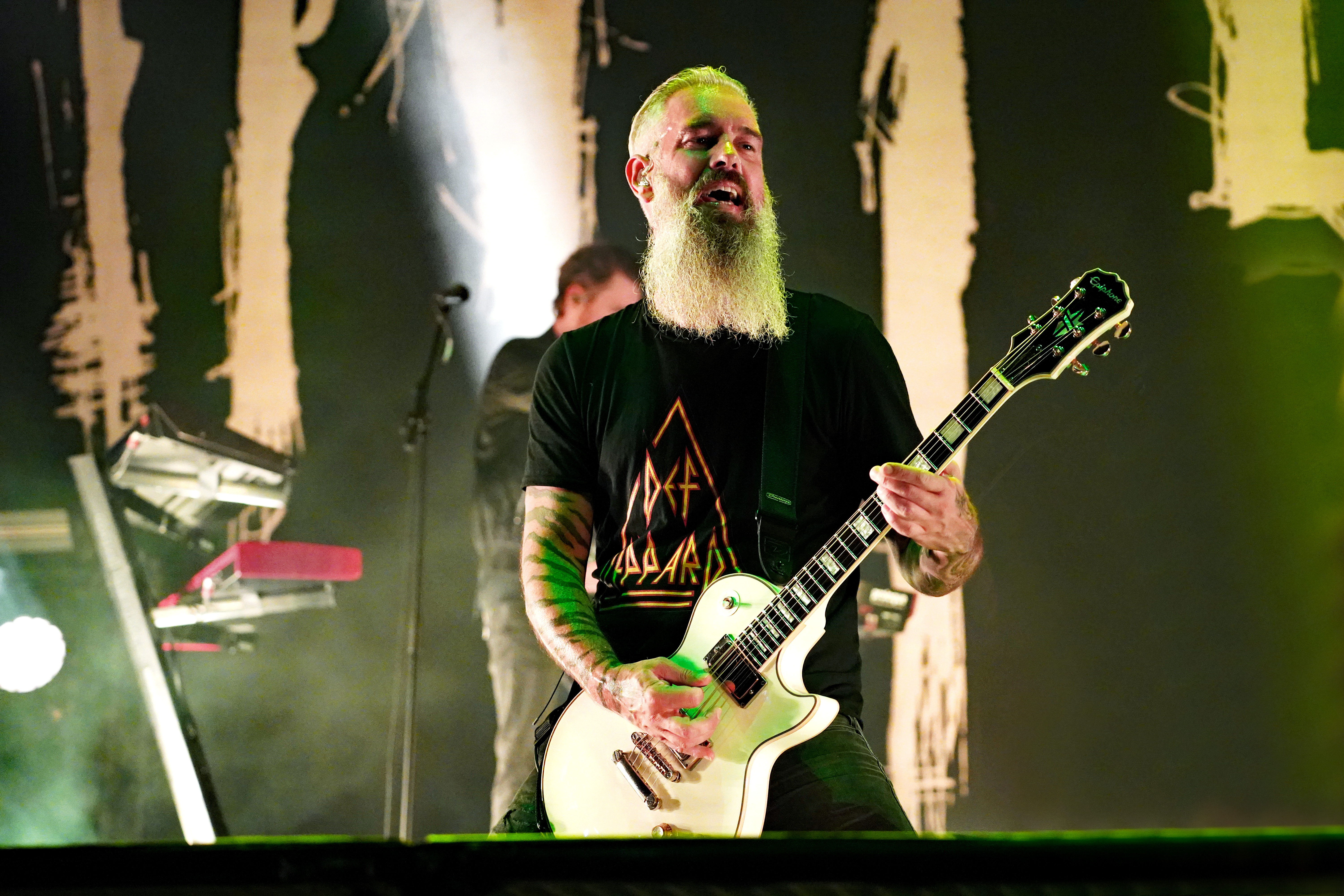 Das musikalische Genie und Produzent Adam Jonathan Dutkiewicz (Gitarre) kommentierte begeistert: „Das ist ein Festival, bei dem die Crowdsurfer auf einem Crowdsurfer surfen, total verrückt!“ Im Hawaiihemd mit Totenkopf und Shorts mit Biergläsern und grünem Stirnband mit „Beer“ Schriftzug drauf, sah er ein bißchen wie Will Farrell mit Irokesenschnitt auf dem Weg zum Bierpong spielen aus. Er stand quasi symbolisch für den unglaublichen Spaß den die Truppe auf der Bühne hatte und verbreitete. Er kommentierte munter ständig die Show, was dazu führte, daß er sich sogar vom Publikum tadeln lassen mußte, weil er sich „...vor Ergriffenheit ob so eines tollen Festivals“, wie er sich rechtfertigte, prompt verspielte. Den optischen Kontrast hierzu bildete der Rest der Band, allen voran der charismatische Jesse Leach mit „I Am Broken Too“ Tattoo am Arm und Joel Sroetzel mit Fake-Venom Shirt, die gleichwohl mit der selben Freude an der Performance agierten.