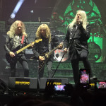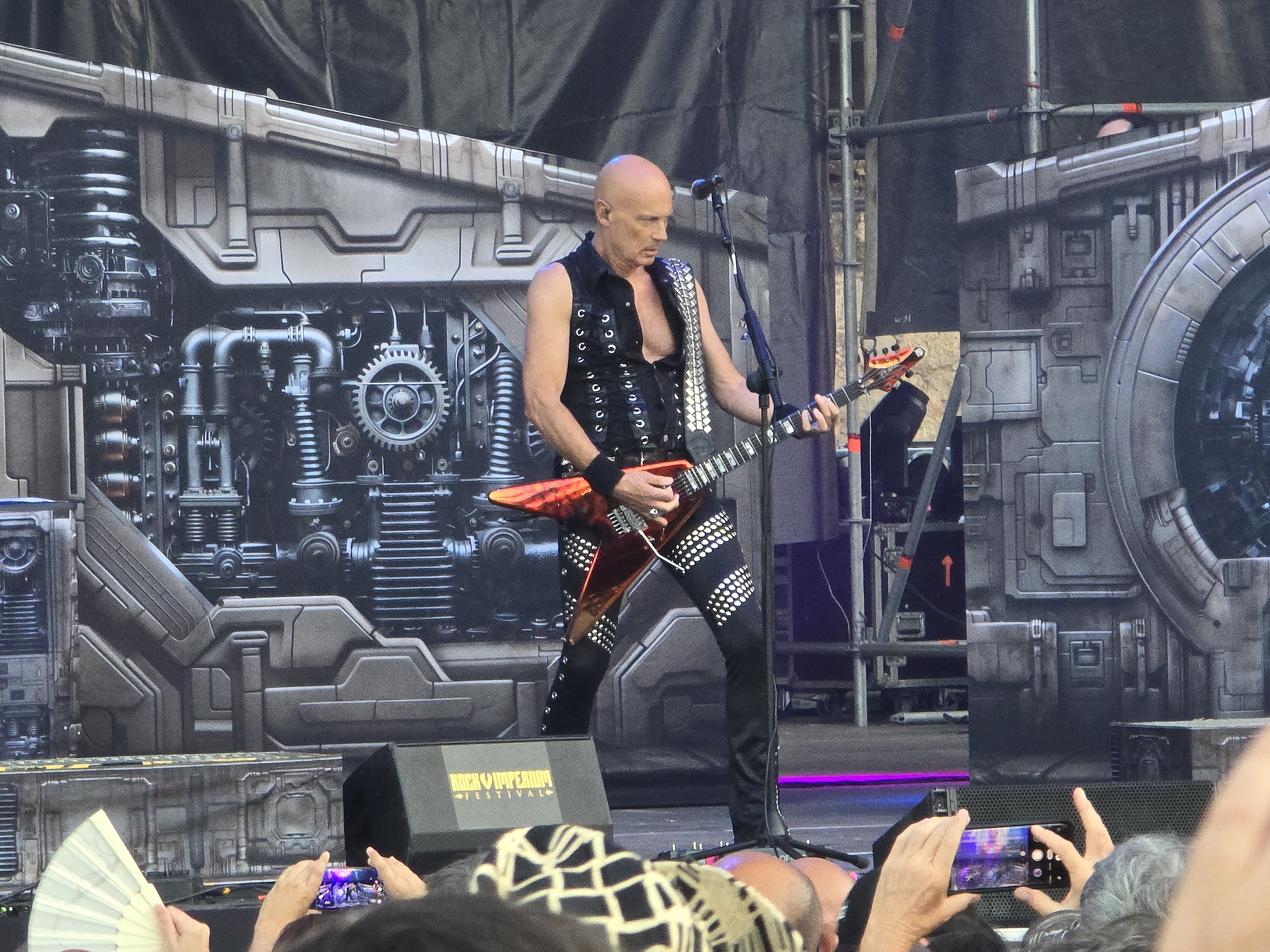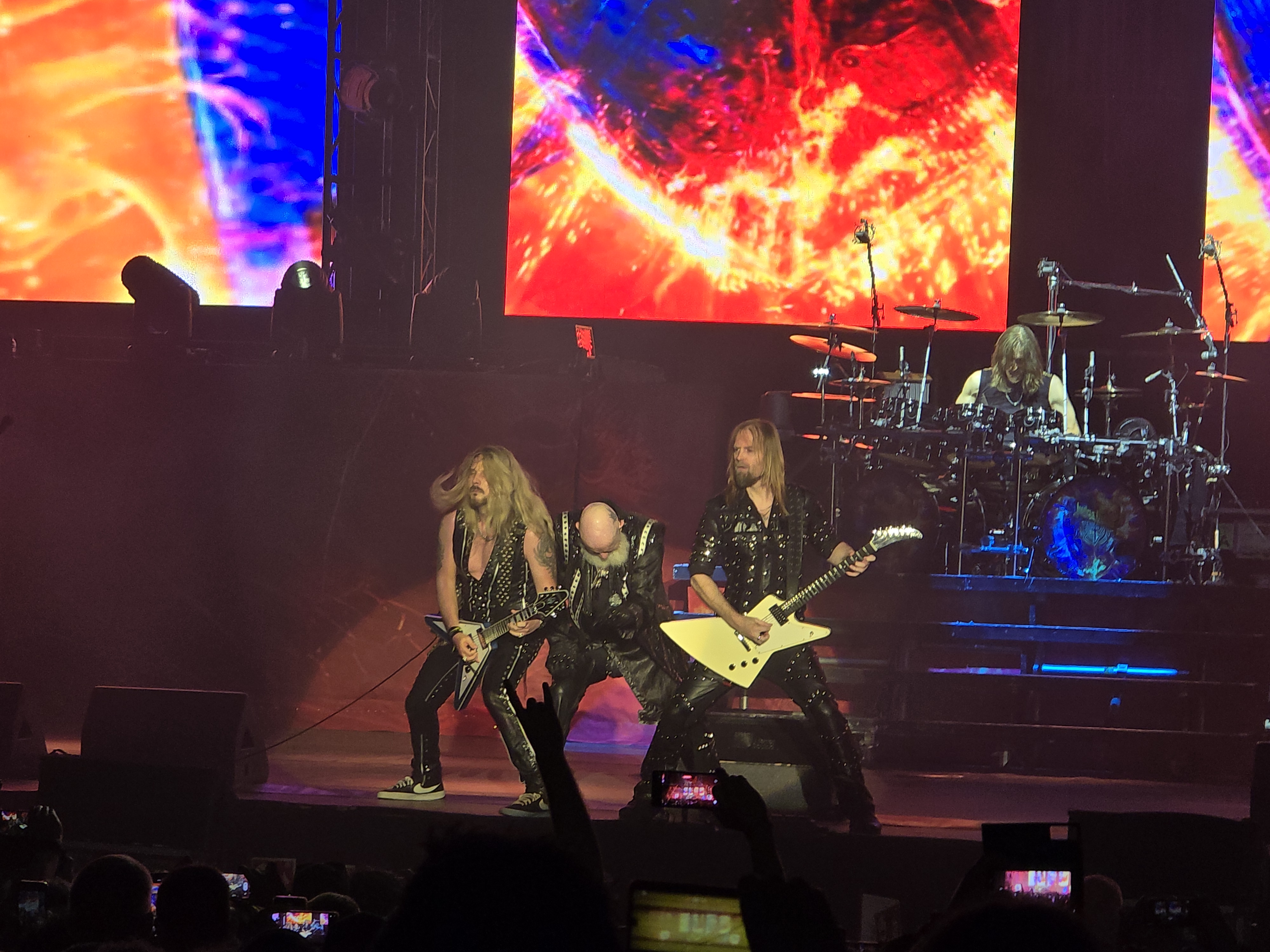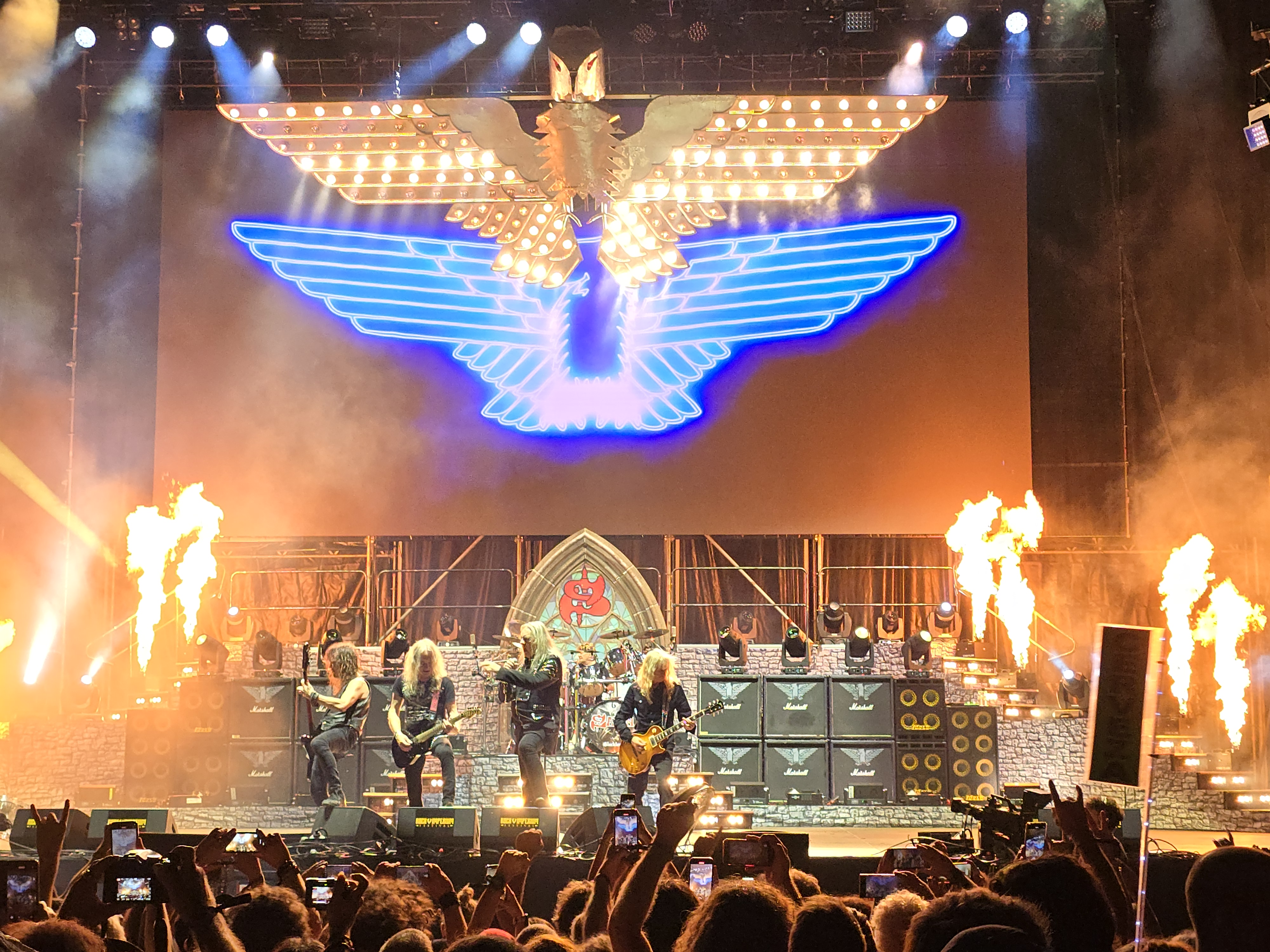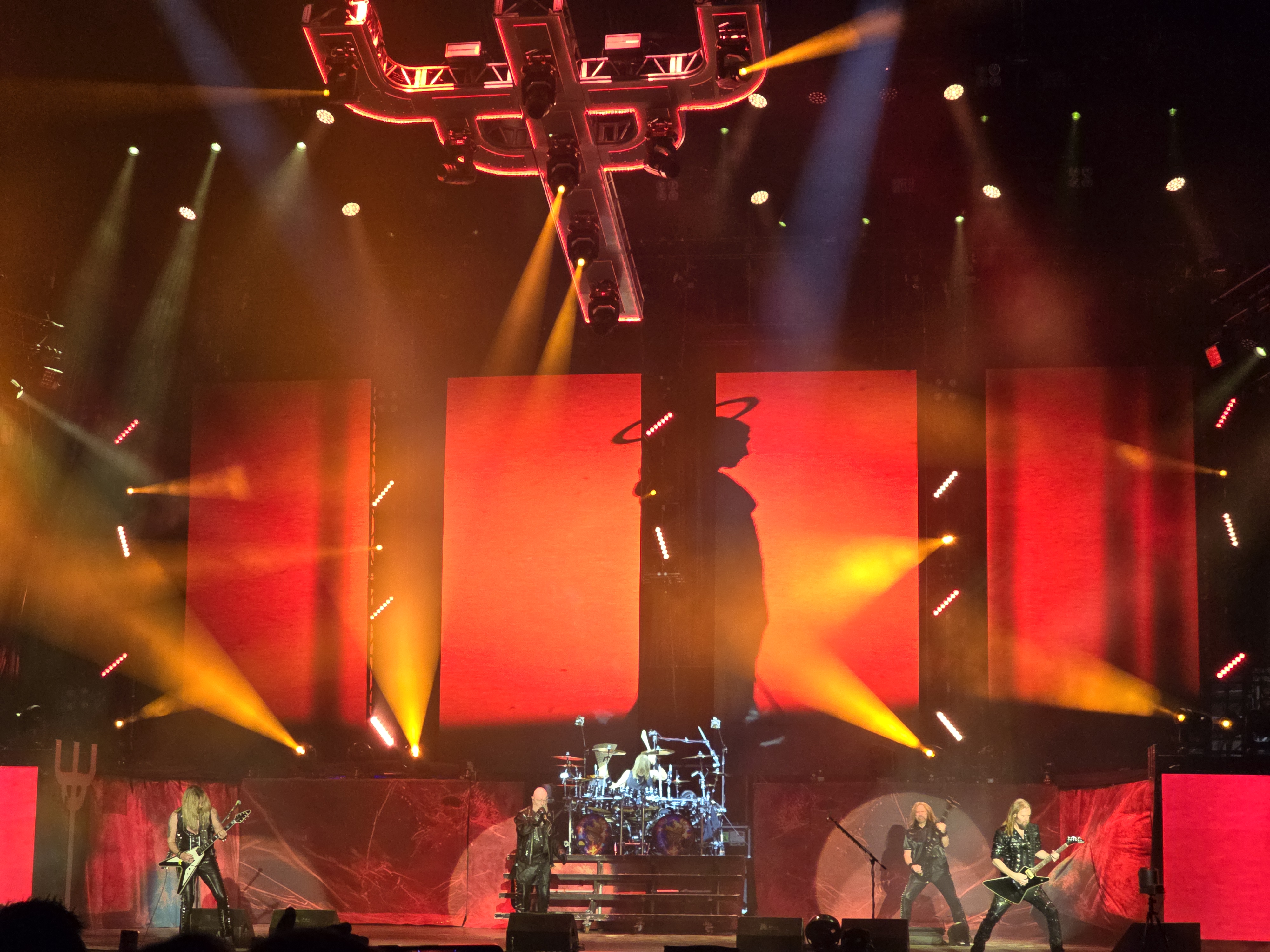 JUDAS PRIEST. Mit „Panic Attack“ starten die Altmeister in einen mitreißenden Set. Rob Halford schont sich nicht und ist agiler als vor 10 Jahren. Auch stimmlich lässt der 72-jährige wenig anbrennen. Natürlich gibt es immer wieder Diskussionen über kleine technische Helferlein auf dem Mikro, dennoch ist das, was Halford hier abliefert aller Ehren wert und so wie es einem Metal God gebührt. Es ist spannend zu sehen, dass JUDAS PRIEST ihren Set auf der laufenden Tour immer mal wieder durcheinander wirbeln und so gibt es für mich auf dieser Tour zum ersten Mal „Devil’s Child“, „Riding On The Wind“ und „Victim Of Changes“ zu hören. Das ist nicht selbstverständlich und zeigt die aktuelle Spielfreude im Priest Camp. Andy Sneap ist seiner Rolle als „Stand-In“ mittlerweile mehr als entwachsen und präsentiert sich als integraler Bestandteil der Band. Auch heute erntet der früher viel gescholtene „Turbo Lover“ mit die besten Reaktionen aber auch der „Painkiller“ wird viel umjubelt. Und so lassen sich JUDAS PRIEST nicht lange bitten und beschließen mit „The Hellion/Electric Eye“, „Hellbent For Leather“ und der Partyhymne „Living After Midnight“ den ersten Tag für mich.