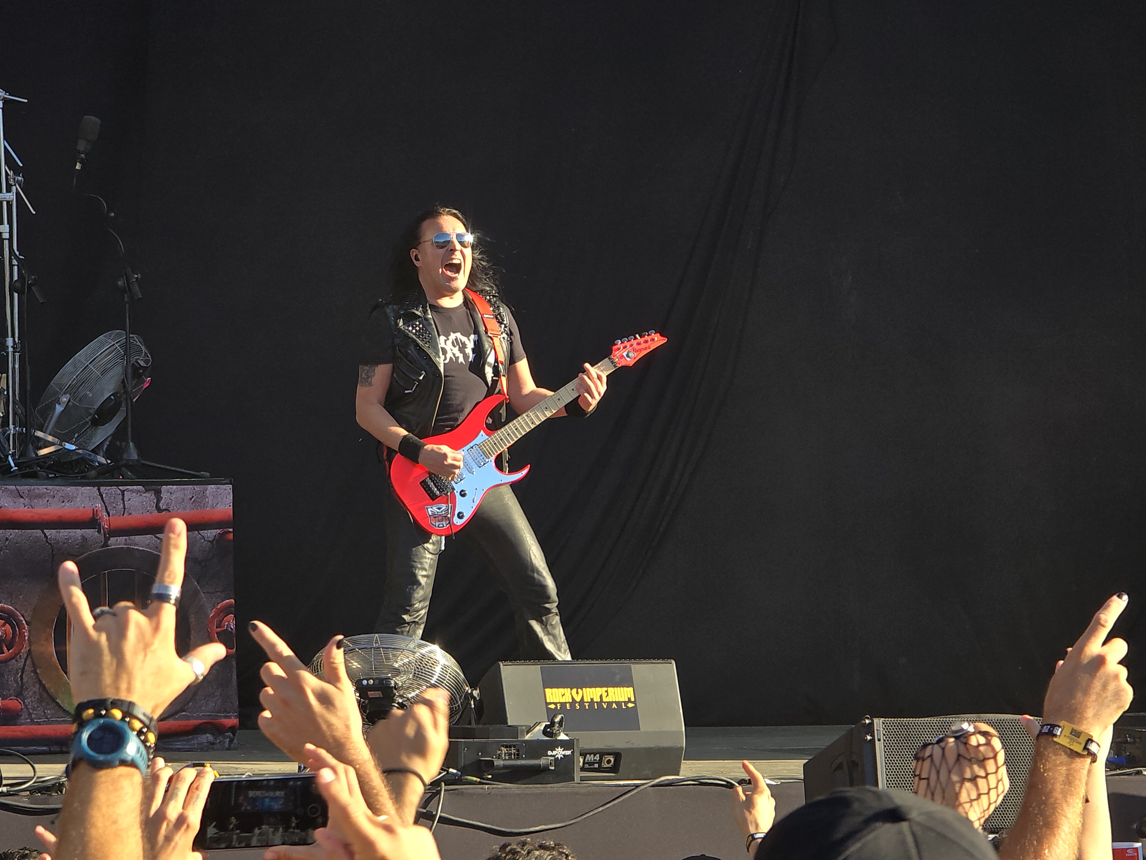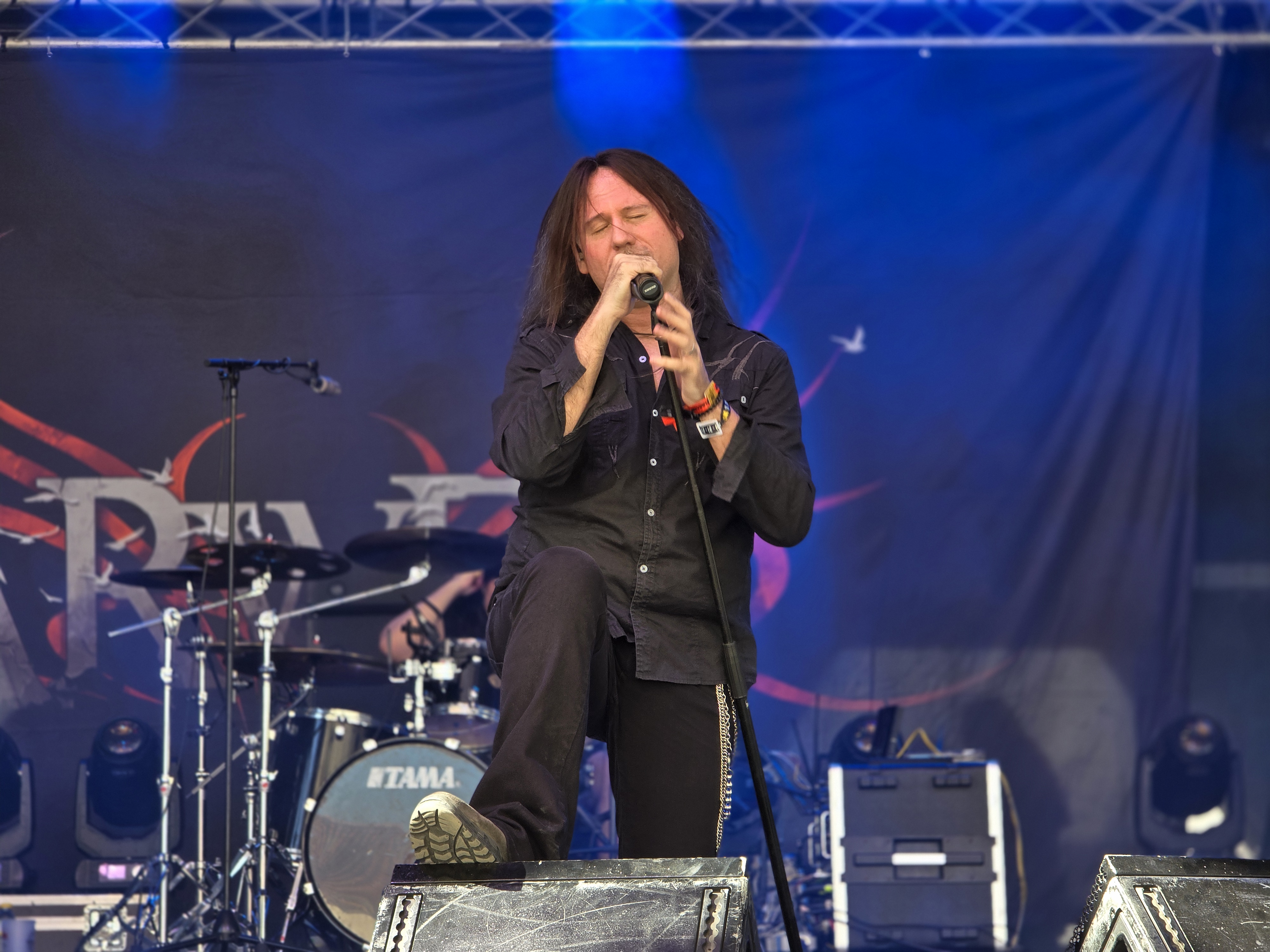 Die chilenische Wunderstimme RONNIE ROMERO ist da schon eine ganz andere Liga. Kraftvoll und sympathisch singt sich Romero durch sein Soloprogramm, welches aus eigenen und zwei FERRYMAN Stücken besteht. Ganz am Ende zeigt er seine ganze Klasse, indem er uns eine formidable Version von DIOs „Rainbow In The Dark“ kredenzt. So langsam komme ich richtig in Festivalstimmung.