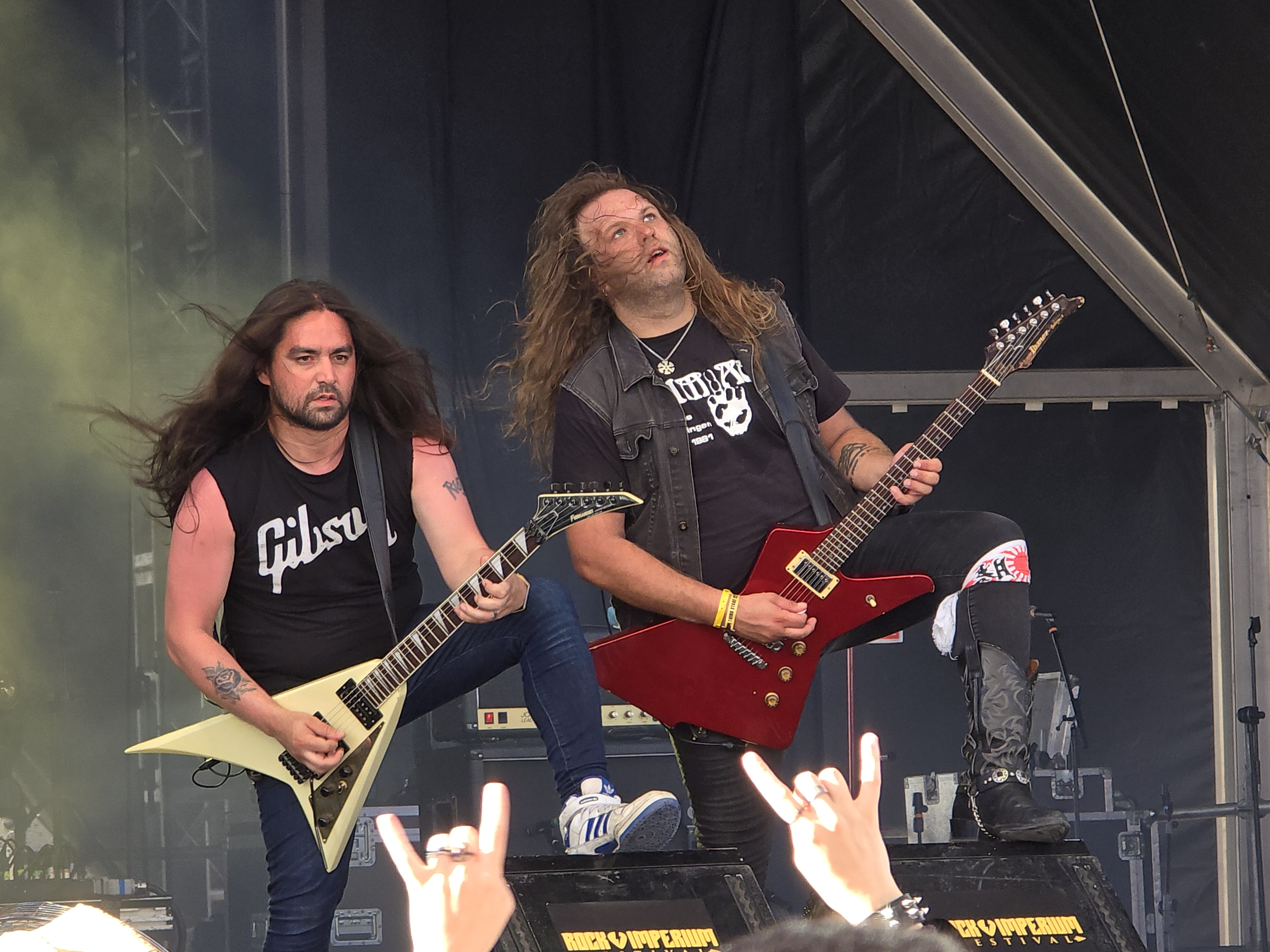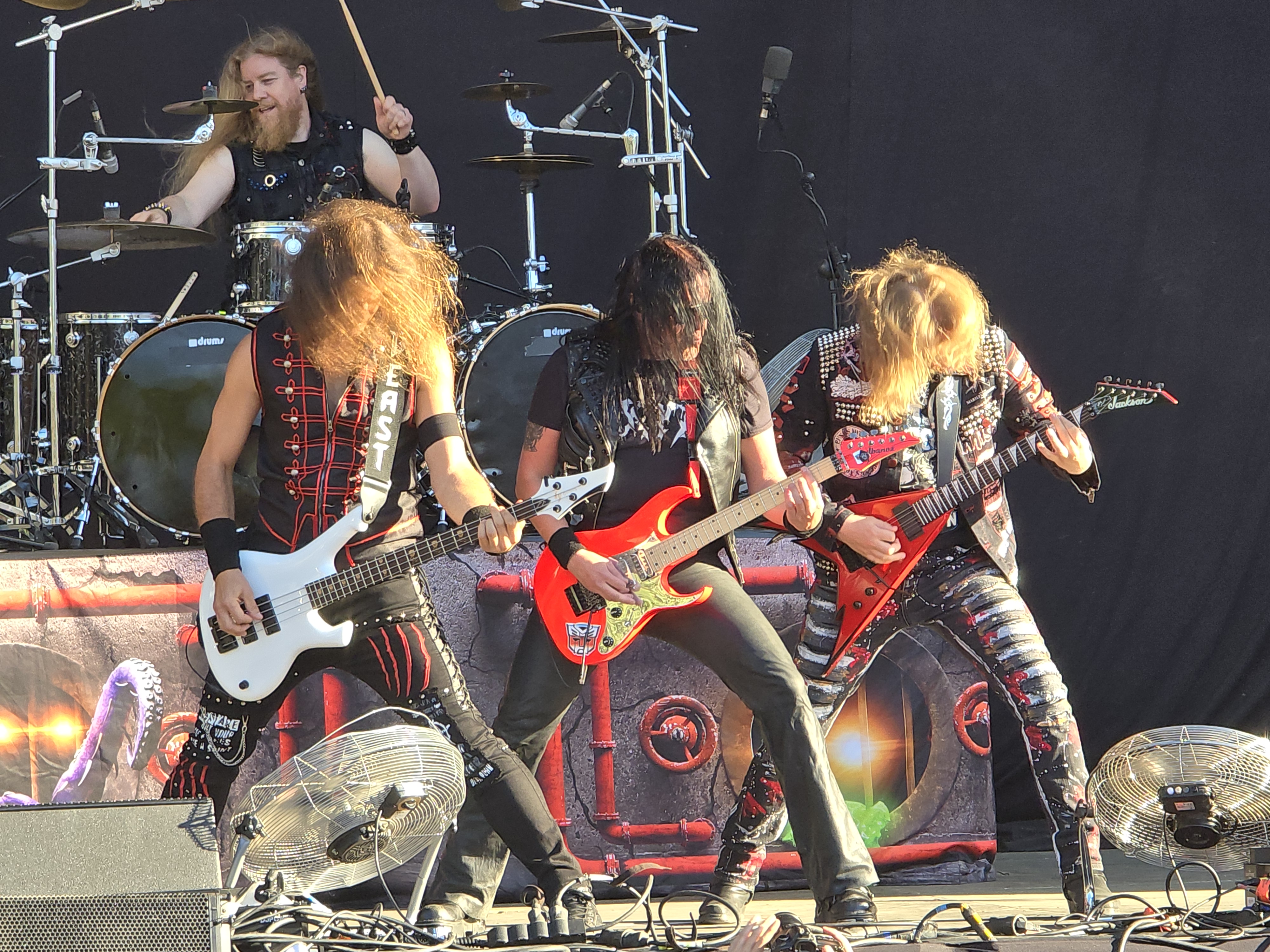 Auf zur letzten Runde. Tag 4 beginnt mit den Ladies von COBRA SPELL. Es freut mich, dass die anfänglichen Widrigkeiten mit den vielen Line-Up Wechseln nun wohl endgültig der Vergangenheit angehören und Sonia mit ihrer Truppe immer enger zusammenwächst. Der partytaugliche Hard Rock an der Grenze zum Meldic Metal ist natürlich wie gemacht für ein Open Air und die Mädels sind ständig in Bewegung und machen viel Alarm. Dass die Texte manchmal ein bisschen Fremdscham hervorrufen, sei an dieser Stelle verziehen, denn live macht das einfach extrem gute Laune. Mit dem EP Hit „Addicted To The Night“ verabschiedet man sich standesgemäß.