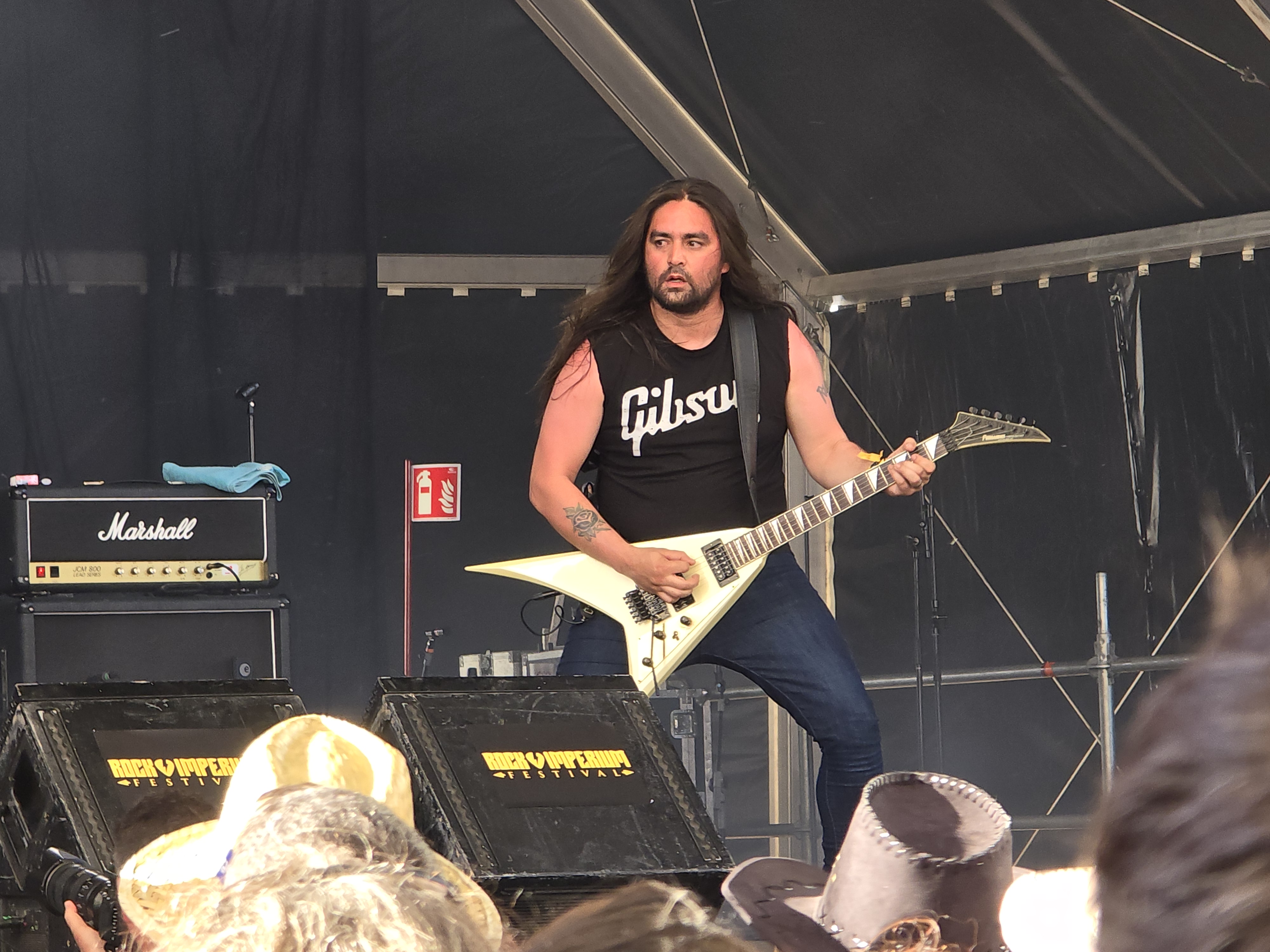 Tag 2 beginne ich mit den Kauz Metallern von CIRITH UNGOL, welche mit meinem Favoriten „I’m Alive“ in einen sehr oldschooligen Set starten. Es ist immer noch sehr ungewohnt mit Tim Baker und Robert Garven nur noch 2 originale CIRITH UNGOL Mitglieder zu sehen, aber die beiden NIGHT DEMON Recken Jarvis Leatherby und Armand Anthony machen natürlich viel Alarm und sind voll bei der Sache. Tim Baker lässt seine unnachahmliche Stimme erschallen und Songs wie „Chaos Descends“, „Master Of The Pit“ oder die heimliche Bandhymne „Join The Legion“ verfehlen ihre Wirkung auch bei hellem Sonnenschein nicht, auch wenn CIRITH UNGOL im Dunkeln noch besser funktionieren.