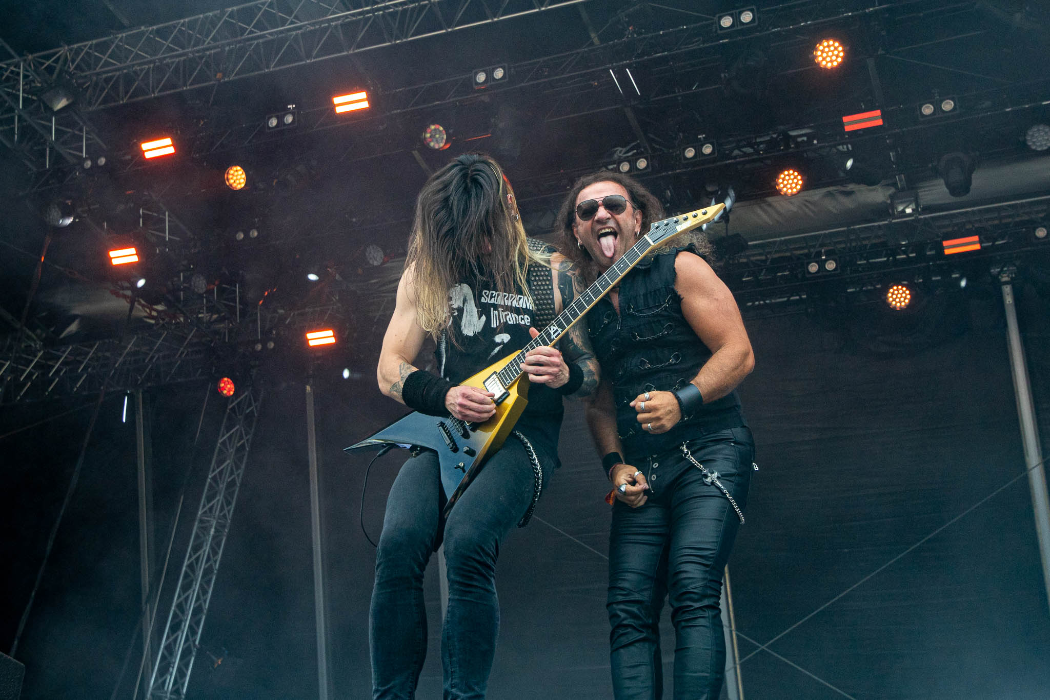 Die Band MYSTIC PROPHECY hat ein Händchen für gutes Timing und konnte ihr Set noch vor dem drohenden Unwetter durchziehen. Die einprägsamen Refrains waren dem Publikum bestens bekannt oder wurden während des Auftritts schnell erlernt – „We kill! You Die“ bietet sich eben an und wurde hymnenhaft mitgesungen. Die Songauswahl traf den Nerv des Publikums und die Band um Frontman Liapakis dürfte einige neue Freunde gefunden haben, was auch zahlreiche Zugabe-Rufe unterstrichen.