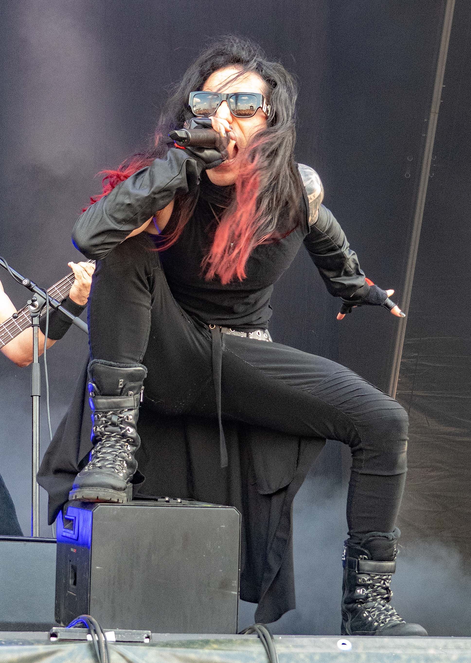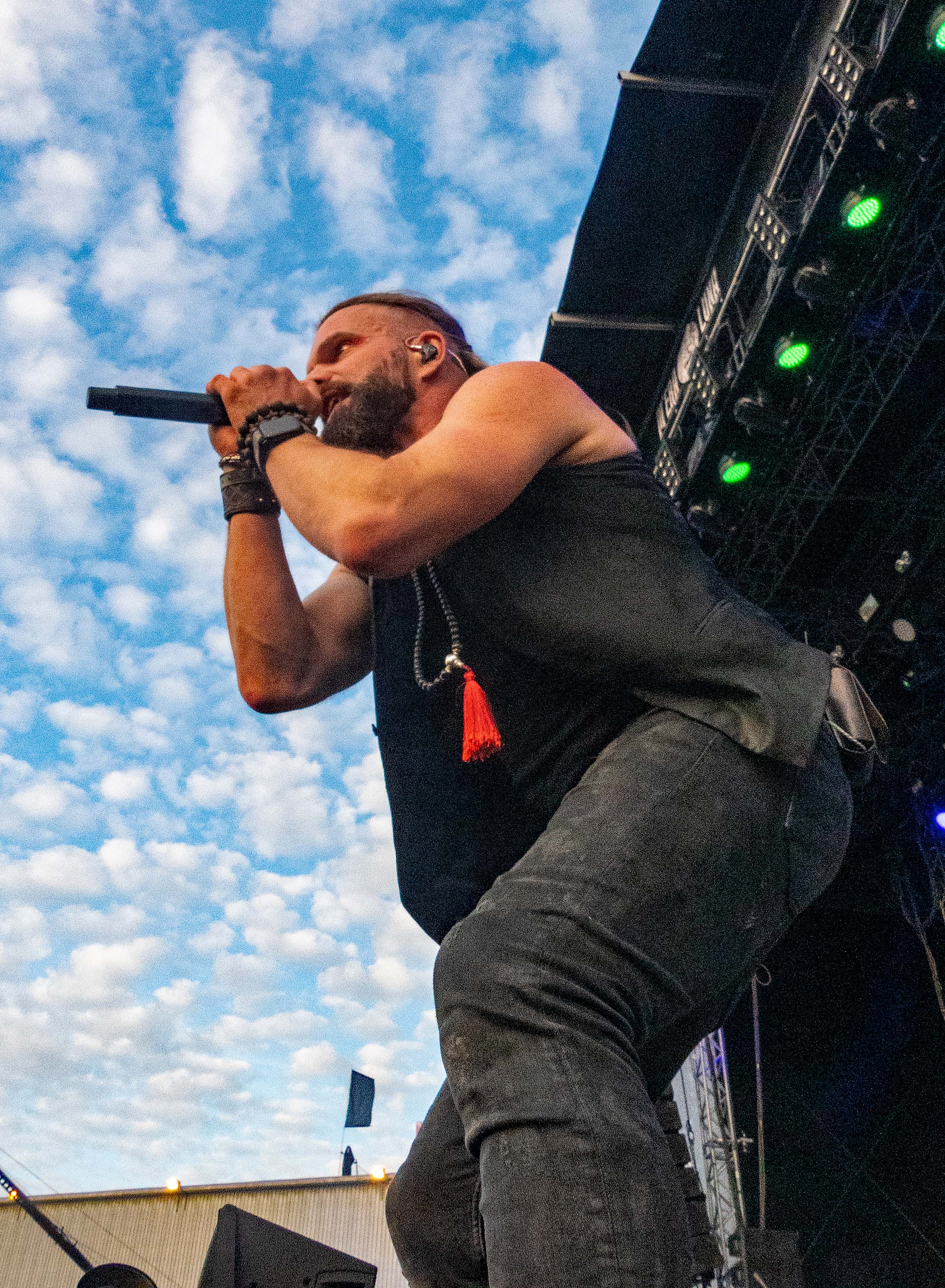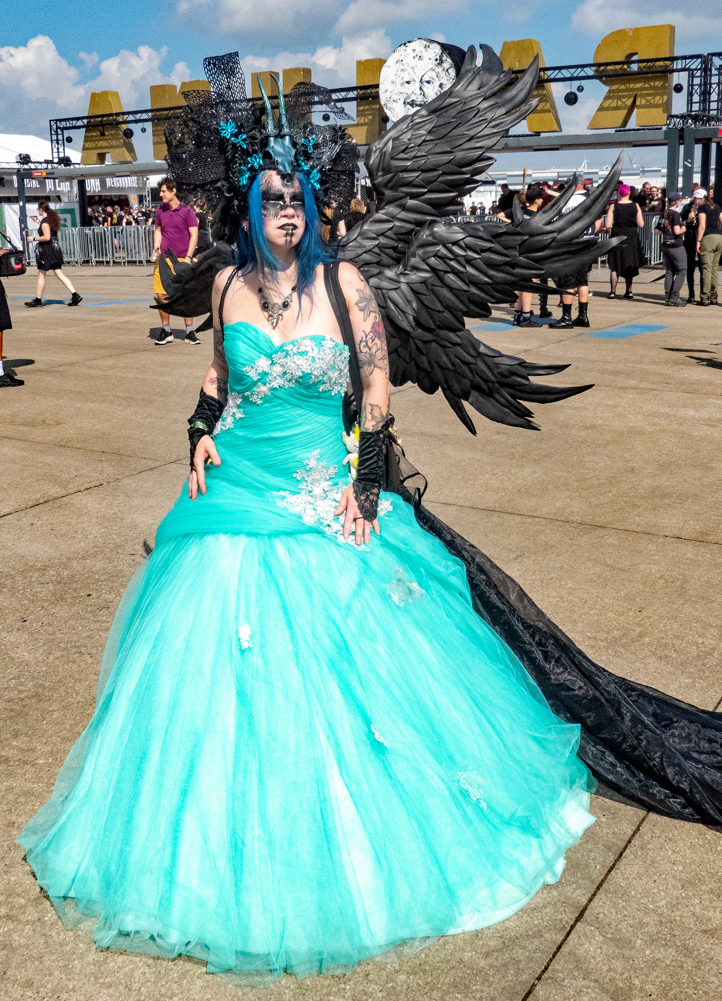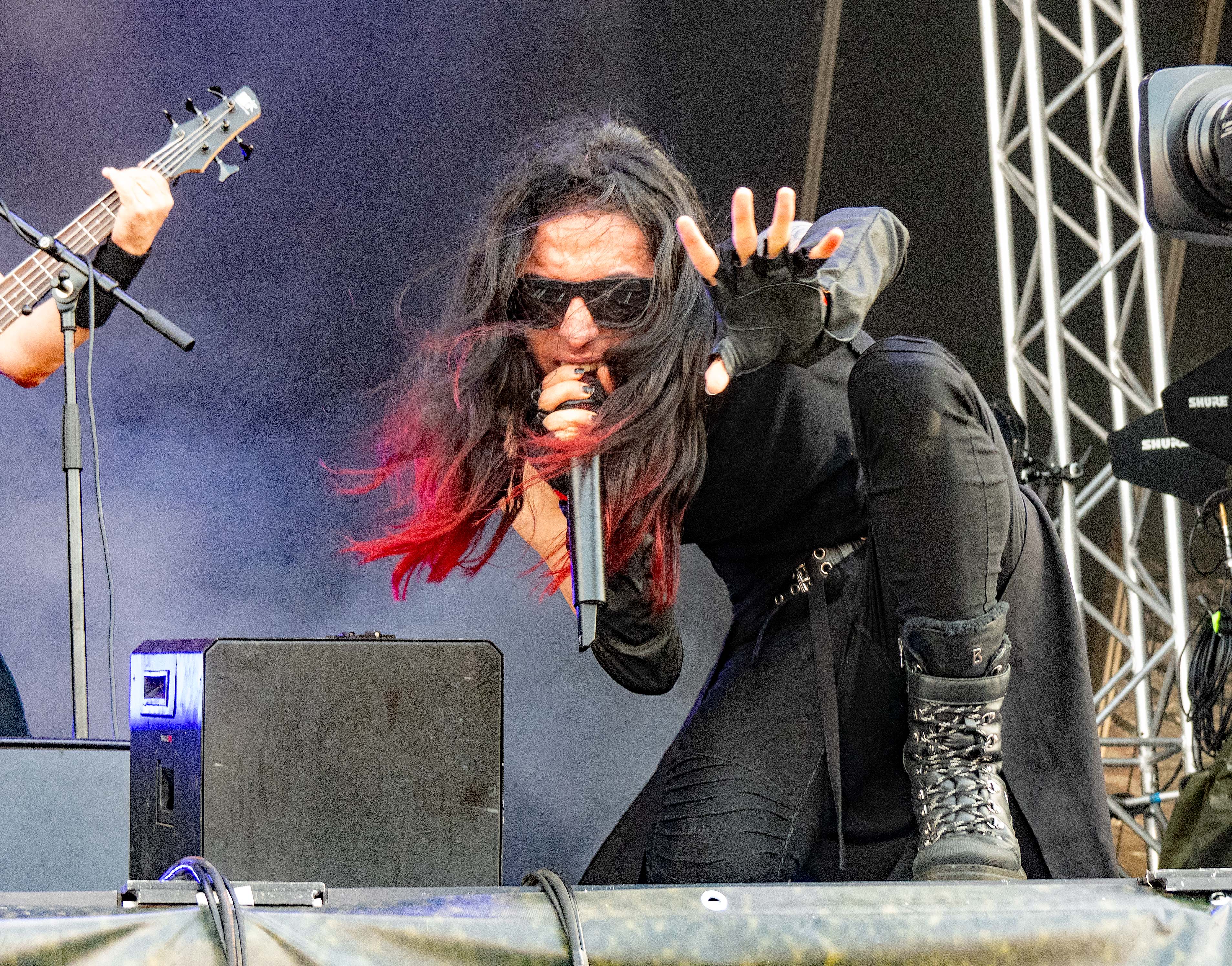 Pünktlich zum offiziellen Beginn am Samstag war das Regengebiet endgültig abgezogen und über dem Hildesheimer Flugplatz lachte die Sonne – so wie sich das gehörte. Denn auch wenn es fast schon ein wenig ironisch anmutet: das M'era Luna, Gipfeltreffen der musikalischen Nachtschattengewächse, darf sich traditionell über relativ gutes bis sehr gutes Wetter freuen. Während man als Festivalgänger andernorts nur gar zu oft im Schlamm versinkt, lacht hier, von wenigen die Regel bestätigenden Ausnahmen abgesehen, regelmäßig die Sonne vom Himmel und droht, manch mühsam kultivierte noble Blässe in feuriges Rot zu verwandeln. Um 11 Uhr ging es offiziell mit dem Bühnenprogramm los und RE.MIND eröffneten auf der Main Stage das Festival. Bei HELL BOULEVARD schwächelte zunächst der Sound etwas, so dass der Gesang eher unterging, doch nachdem gegengesteuert wurde, kam der restliche Auftritt der Dark Rocker mit Songs wie „Dead Valentine“ und „Zera Fucks Given“ dann auch mit sattem Gesamtklang aus den Boxen. Danach hieß es für Freunde des Gothic-Rock /- Metal auch direkt dableiben, da es im Anschluss gleich mit LACRIMAS PROFUNDERE weiterging. Deren Sänger gab alles und erwies sich als wahre Rampensau, die mit schier unerschöpflicher Energie von einem Ende der Bühne zum anderen sprintete und auch nach vorne auf die Boxen kletterte, um die Nähe zum Publikum zu suchen, was dieses mit reichlich Applaus quittierte.