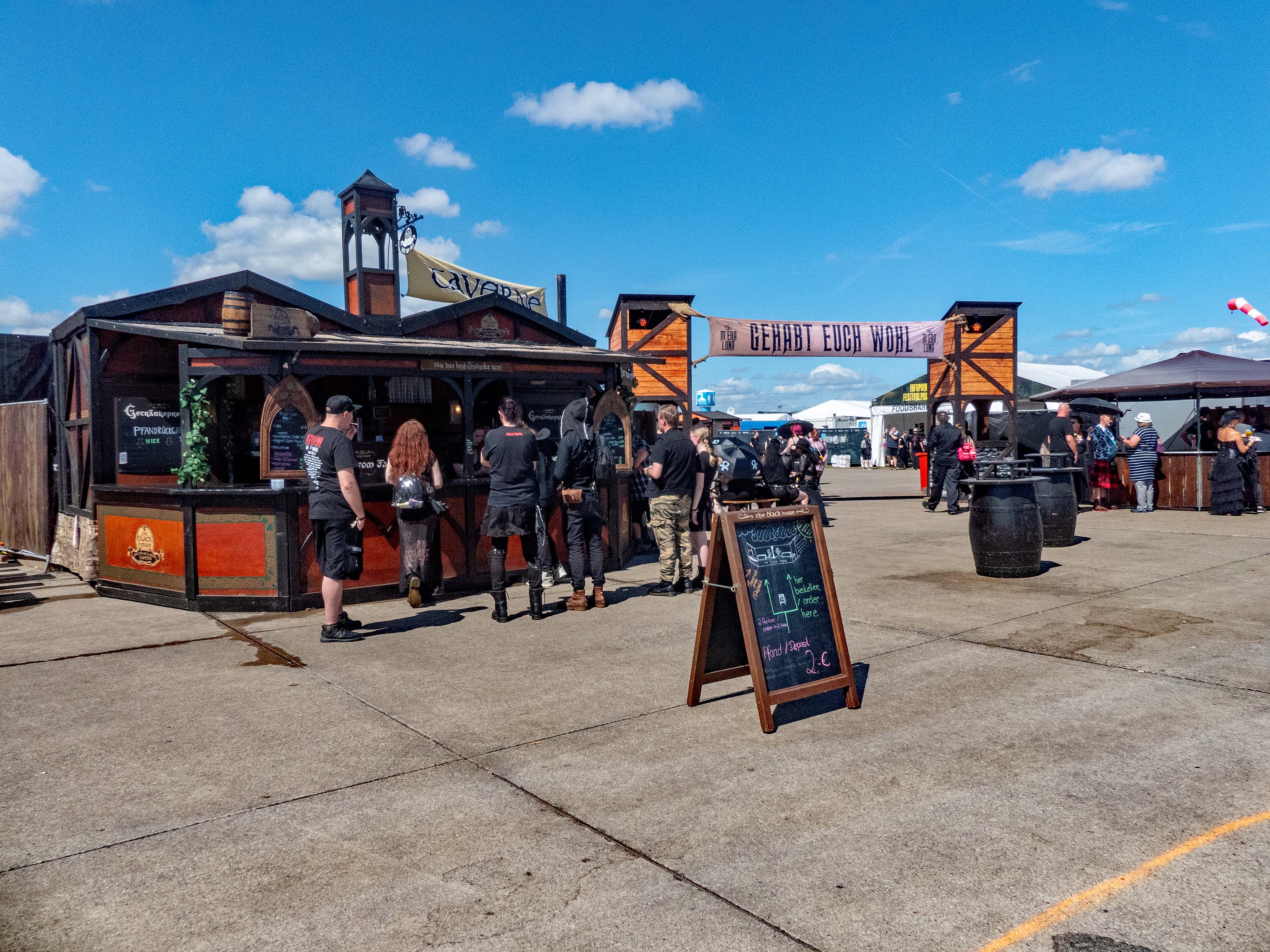 Der zweite Festivaltag startete um 11 Uhr mit JANREVOLUTION auf der Main Stage, gefolgt von EXTIZE auf der Club Stage. Mancher Festivalgänger blinzelte erst noch verschlafen aus seinem Zelt oder klammerte sich übernächtigt an seinem Kaffee fest, die Sonne hingegen lachte schon mit voller Kraft über dem Hildesheimer Flugplatz. Spätestens STAHLMANN dürften mit Neuer Deutscher Härte-Klängen á la „Asche Zu Asche“ und „Der Schmied“ dann auch noch die letzte Schlafmütze aufgeweckt haben, so dass sowohl vor den Bühnen als auch vor den Verkaufständen der Andrang wieder zunahm. ZERAPHINE kredenzten melodiösen Dark Rock und kommentierten ihr Set trocken mit den Worten „Uns gibt es jetzt ja auch schon über 20 Jahre - da geht man dem Publikum nicht mehr mit neuen Songs auf den Geist, sondern spielt hauptsächlich die alten. Und genau das machen wir jetzt auch!" Warum auch nicht, wenn man Material wie „Be My Rain“, „Die Macht In Dir“ und „Ohne Dich“ im Gepäck hat? Das Publikum jedenfalls freute sich über das Wiedersehen mit alten Klassikern. Anschließend folgte mit D'ARTAGNAN ein Ausflug in Mittelalterrock-Gefilde, die Band versprühte sichtbar gute Laune bei Songs wie „Freiheit und Tod", „Mosqueteros“, „Farewell“ und „Ruf Der Freiheit“ und schloss ihr Set namensgetreu mit dem berühmten „Einer für alle"-Schwur und gezücktem Degen.