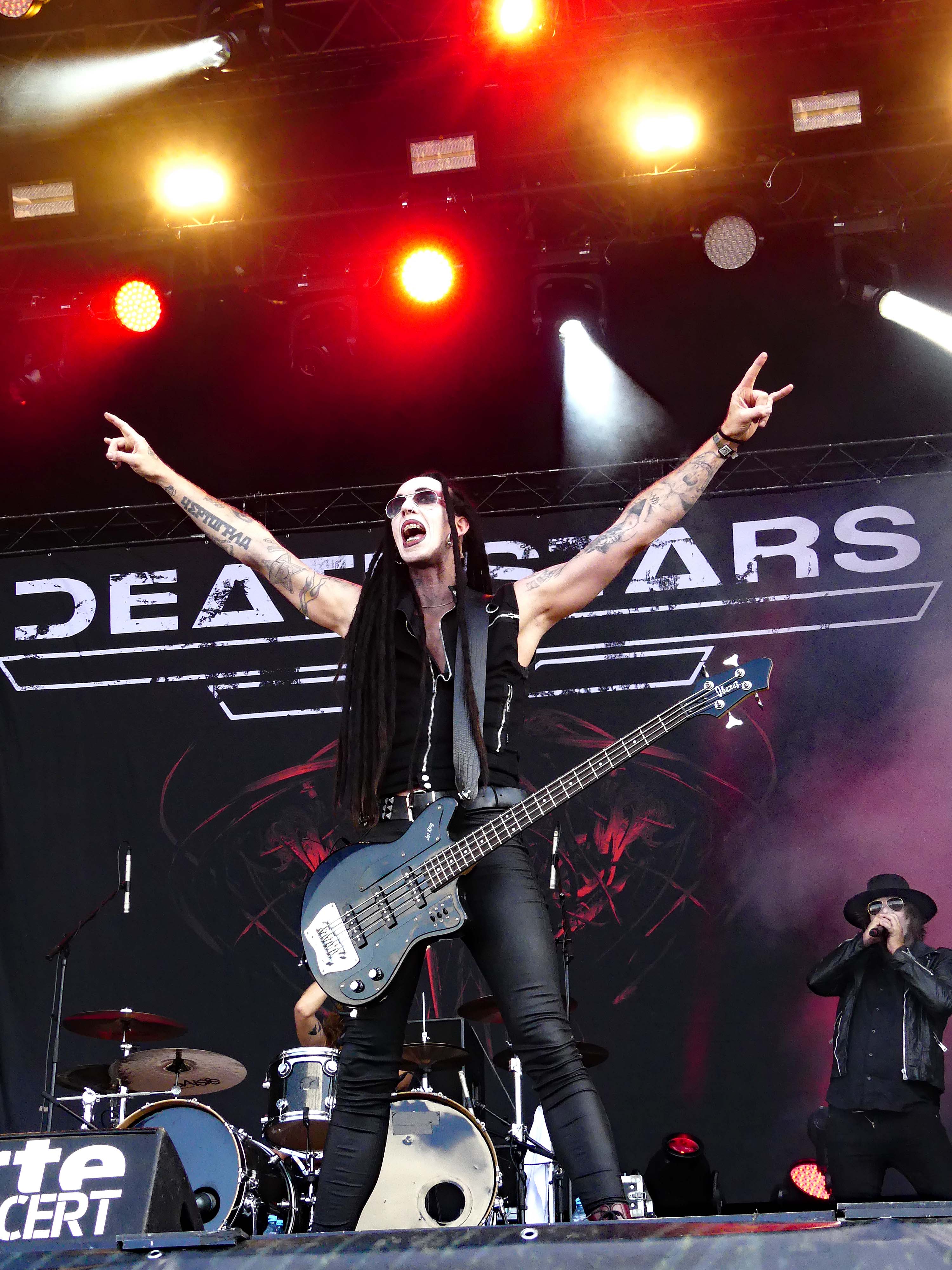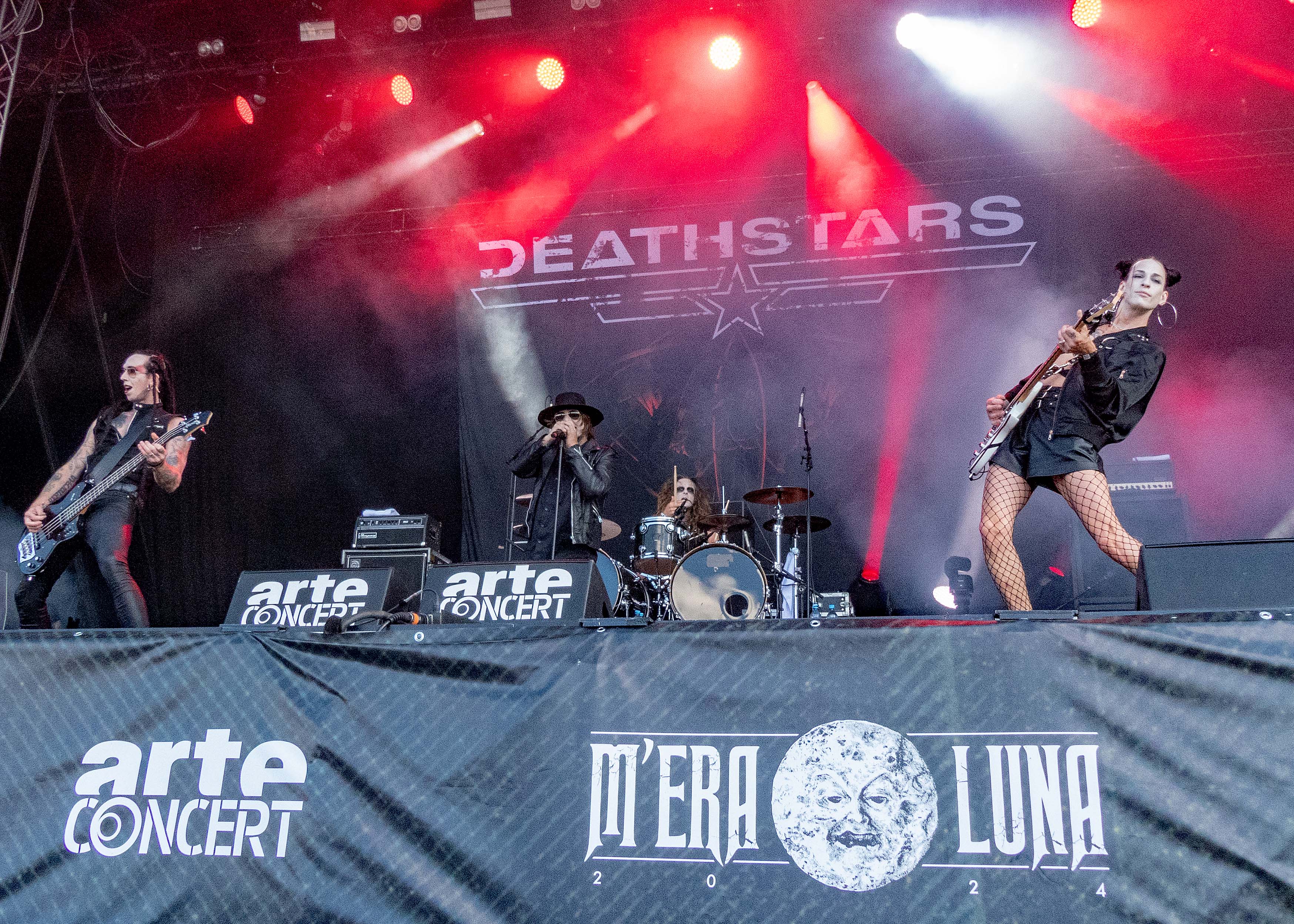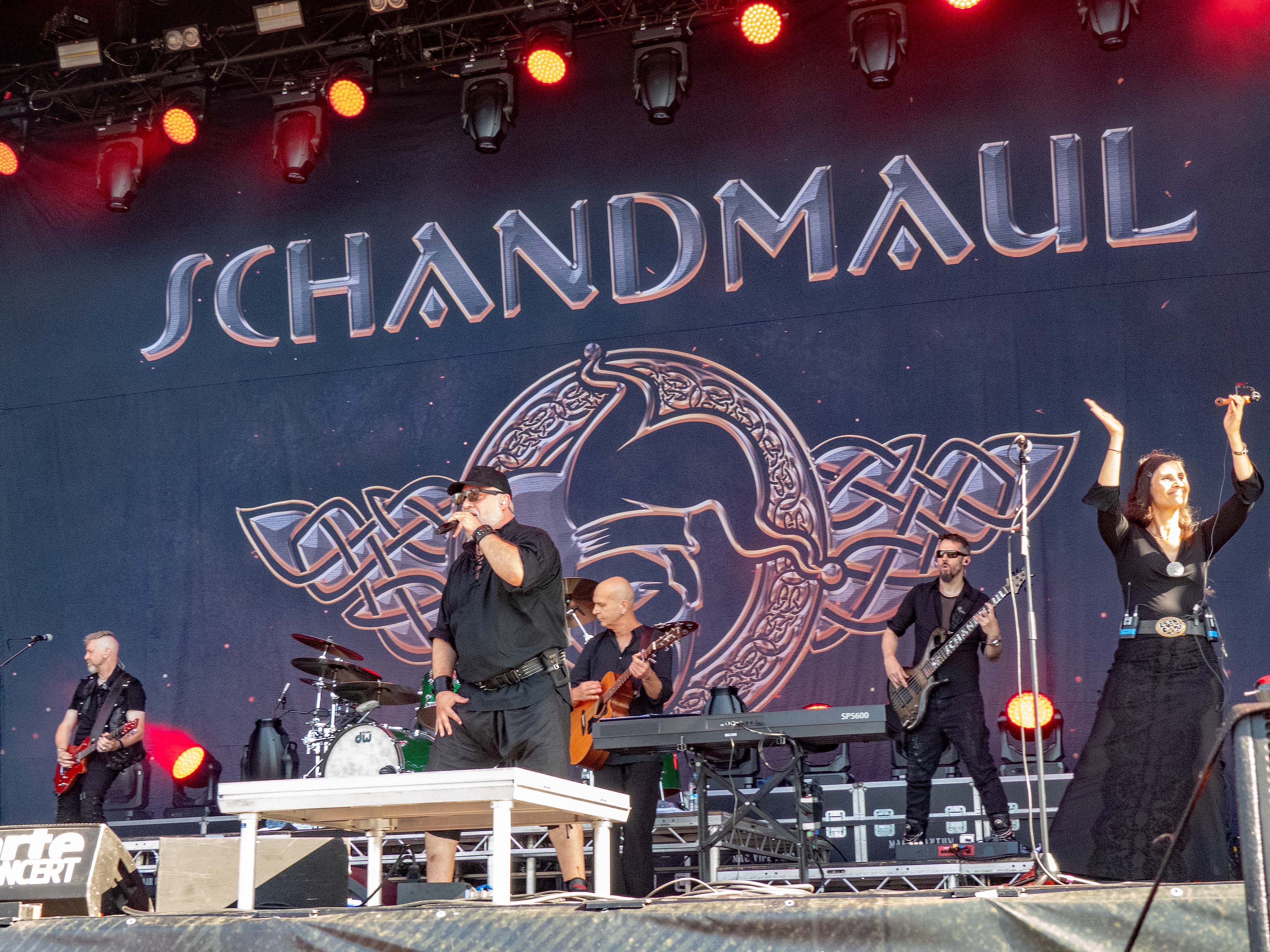 Danach wurde die musikalische Gangart härter: die DEATHSTARS standen auf dem Programm. Die Schweden traten das Gaspedal von Anfang an voll durch und lieferten mit Songs wie „Death Dies Hard", „Tongues", „Everything Destroys You" und „Blitzkrieg" eine druckvolle Show ab. Während auf der Club Stage im Anschluss WELLE:ERDBALL übernahmen, wurden die Töne auf der Main Stage danach zumindest etwas leiser, in der Luft lag gespannte Erwartung auf den Auftritt von SCHANDMAUL. Nachdem die Band letztes Jahr aufgrund der schweren Erkrankung von Thomas Lindner alle noch bestehenden Konzerte hatte absagen müssen, hatte man nun einige erste Auftritte mit Gastsängern absolviert, bei denen Lindner, dessen Stimme noch unter den Folgen seiner Rachenkarzinom-Behandlung leidet, an Keyboard und Gitarre stand, und in die sich nun auch das M'era Luna einreihen sollte. Entsprechend groß war der Applaus, als der von seiner Erkrankung sichtbar gezeichnete Fronter die Bühne betrat. Die Band legte mit Gastsänger Georgij von RUSSKAJA und dem Titel „Krieger“ los, bevor Thomas Lindner kurz ans Mikrofon trat: „Leute, hätte man mich vor einem Jahr gefragt, ob wir uns hier nochmal sehen... Ich hatte kein schönes Jahr. Bin aufgeschnitten worden. Bestrahlt. Aber was soll ich sagen: hier stehe ich, und es scheint soweit OK! Nur eins ist quasi noch ein Kollateralschaden - ihr hört es: meine Stimme. Daher bin umso dankbarer dafür, dass ich so einen tollen Freund hier habe, der das übernimmt: Georgij!" Der Applaus wollte kein Ende nehmen, das Gelände vor der Main Stage war mittlerweile proppevoll - alle wollten dem wiedererstandenen Sänger ihre Aufwartung machen, ein fast schon leiser Moment des Respekts, der Anteilnahme und der Solidarität im bunten und lauten Festivaltrubel, der auch die Band rührte. Und ein Moment, der letztendlich auch bezeichnend ist für das M´era Luna, das wie kein anderes Festival für Rücksichtnahme, Respekt und ein friedliches Miteinander steht. Doch SCHANDMAUL wären nicht SCHANDMAUL, wenn sie bei aller Nachdenklichkeit nicht trotzdem noch für Feierlaune gesorgt und dem Publikum Songs wie „Walpurgisnacht“ und das hymnische „Dein Anblick“ zum Abschluss kredenzt hätten.