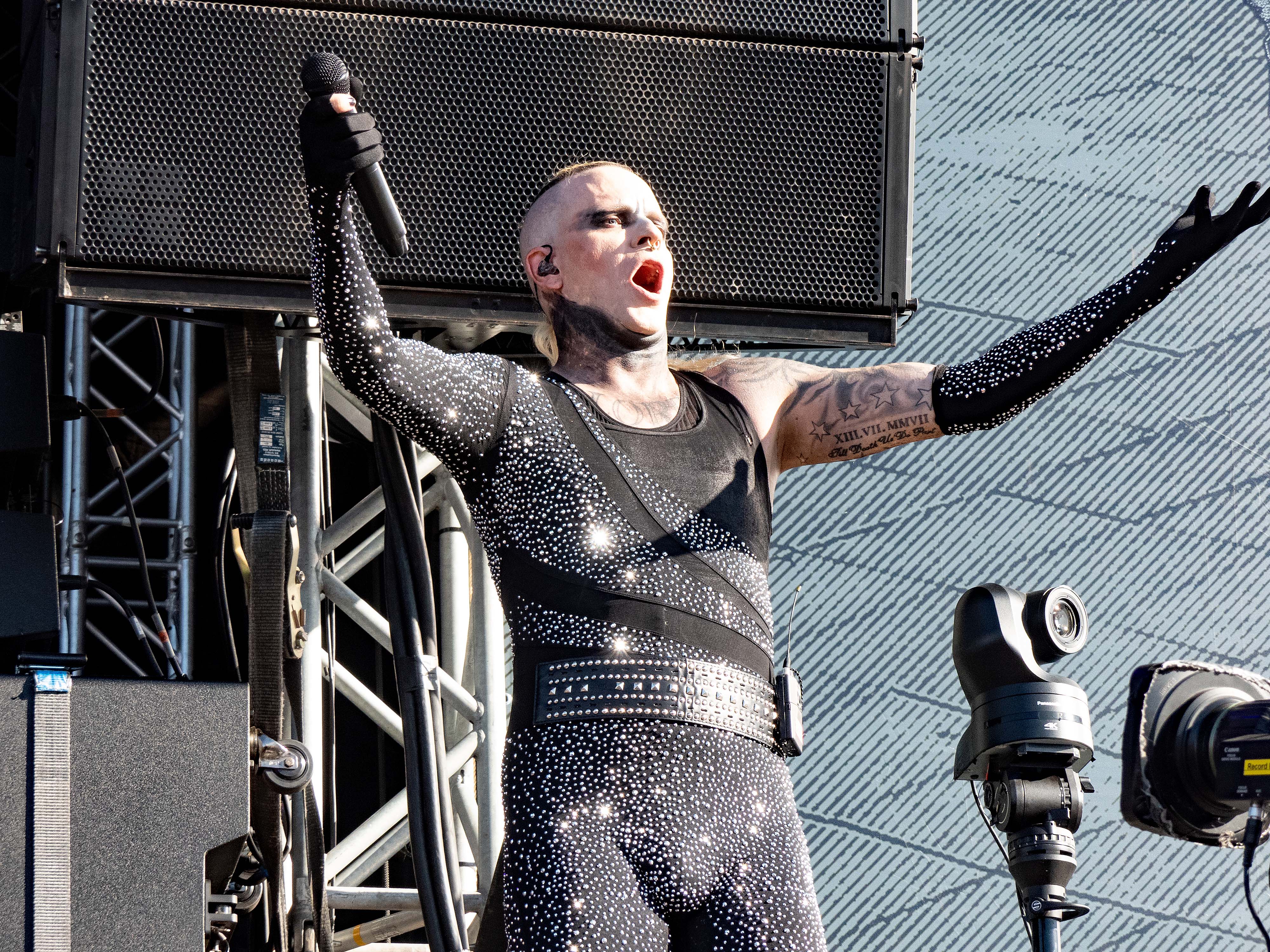 Sehr viel lauter ging es später auf der Club Stage weiter, wo COMBICHRIST mit ihrem Old School Set die Menge zum Tanzen und dadurch noch mehr zum Glühen brachten, als die sommerlichen Temperaturen es ohnehin schon taten. Wohl dem, der eine Kopfbedeckung oder einen (natürlich schwarzen) Schirm sein Eigen nannte, der Rest behalf sich mit wassergetränkten Schals oder Tüchern. Hat eigentlich schon mal ein Sonnencreme-Hersteller darüber nachgedacht, einen Stand auf dem M'era Luna zu eröffnen, vielleicht noch mit einer Limited-Festival-Edition in schwarzen Flaschen? Die Kraft der Sonneneinstrahlung bekamen jedenfalls auch LORD OF THE LOST zu spüren, die sich mit reichlich Pyrotechnik und Bewegung auf der Bühne auch noch zusätzlich selbst einheizten. In eine Art Discokugel zum Anziehen gehüllt und mit einer guten Portion Selbstironie ausgestattet („Mann, ist das heiß hier! Dabei wollte ich doch eigentlich hinterher noch eine Runde Eiskunstlauf machen - deshalb sehe ich auch so aus!") führte Sänger Chris Harms durchs Programm und angesichts der jubelnden Menge war die (ungerechtfertigte) Klatsche beim letztjährigen ESC für die Band sicherlich gut zu verschmerzen. Der zugehörige Song „Blood And Glitter“ durfte natürlich auch nicht fehlen.