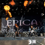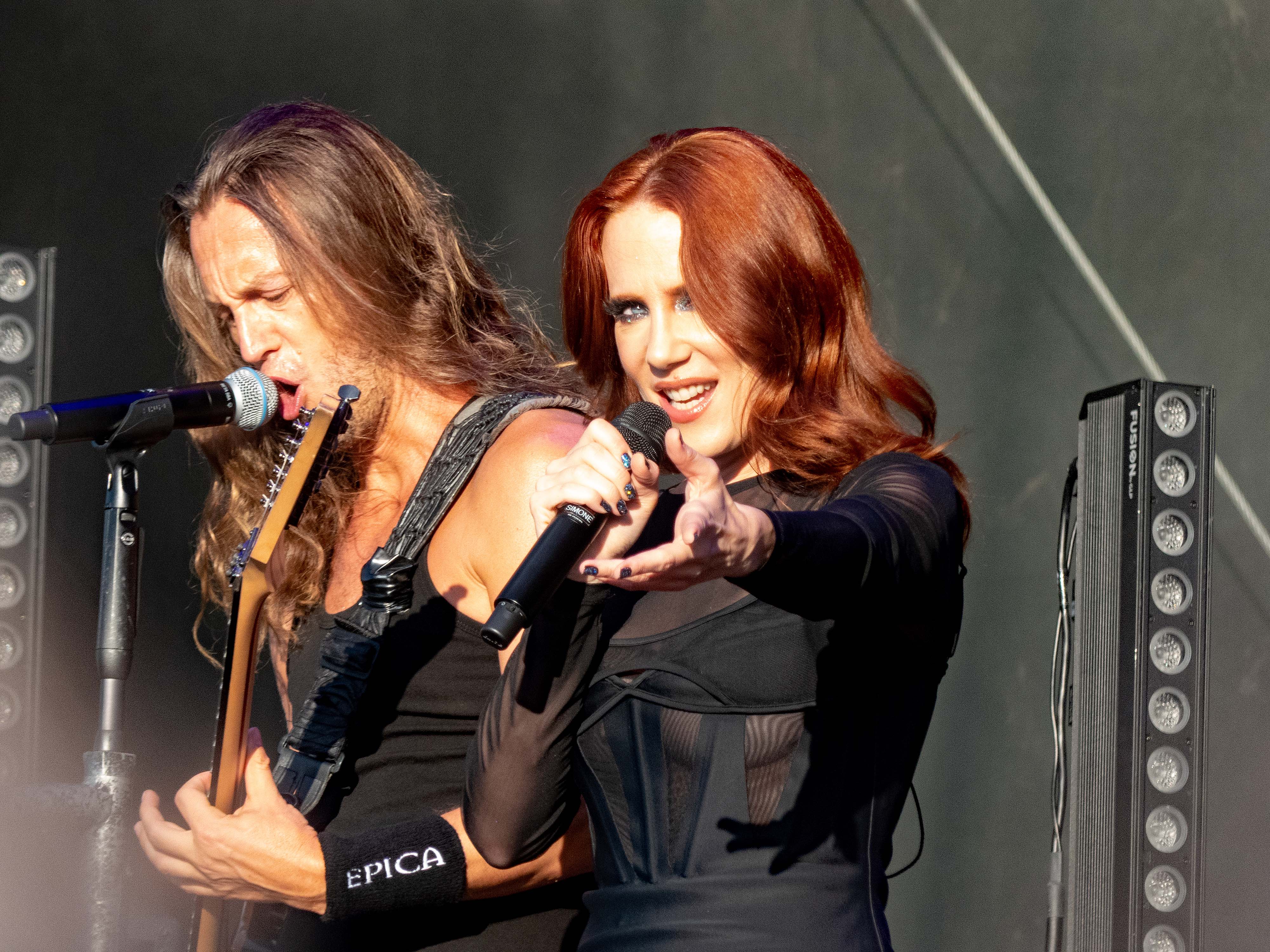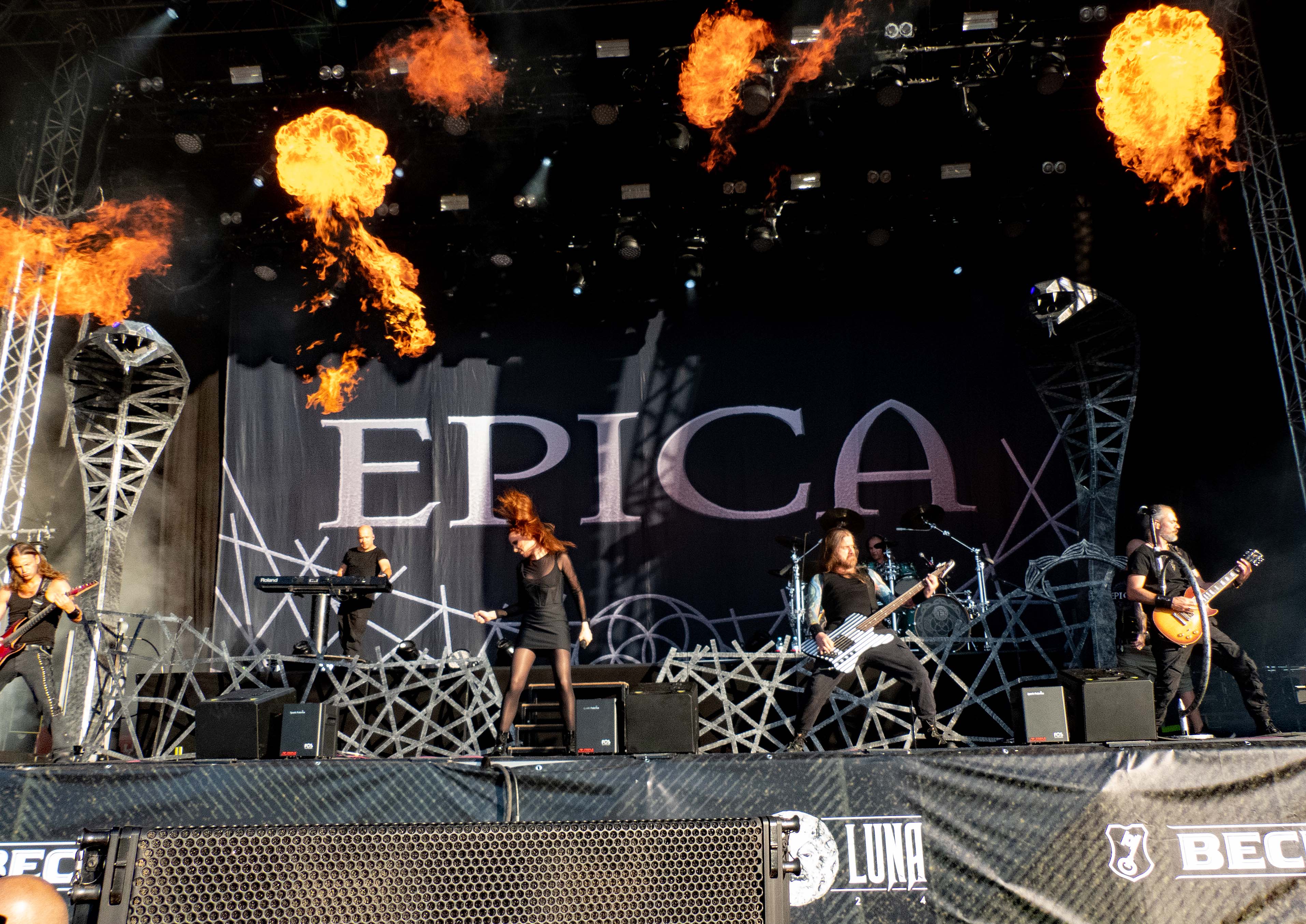 Das M'era Luna bezeichnet sich nicht umsonst als großes Familientreffen der Schwarzen Szene: man kennt sich, mag sich und selbst wenn die Sympathien mal nicht gar zu groß ausfallen, sieht man höflich über die gefühlten Unzulänglichkeiten des anderen hinweg. All das macht das Ganze zu so einer angenehmen und friedlichen Veranstaltung, die trotz der Menge an Leuten so ruhig vonstattengeht, dass selbst die Polizei es sich erlauben kann, den einen oder anderen Verkaufsstand genauer in Augenschein zu nehmen, während sie entspannt über das Gelände patrouilliert. Entsprechend verflog auch die Zeit wie im Flug, der Sonntagabend nahte heran und mit ihm die letzten Bands. Um 19 Uhr waren EPICA dran, mit denen das Programm des zweiten Tages langsam auf seinen Höhepunkt zusteuerte. Die Niederländer um Sängerin Simone Simons starteten mit „Abyss of Time – Countdown To Singularity“ und legten einen energiegeladenen Auftritt hin, bei dem geheadbangt wurde, was das Zeug hielt. Neben der Präsentation von Songs wie „Victims Of Contingency“ und „Cry For The Moon“ kündigten sie auch gleich ihr neues Album an und luden alle Anwesenden zur zugehörigen bevorstehenden Tour ein. Aber auch das Publikum wurde in die Pflicht genommen: eine „big wall of death“ solle man beim letzten Song doch bitte bilden und diesem Wunsch wurde auch auf durchaus beeindruckende Weise entsprochen.
