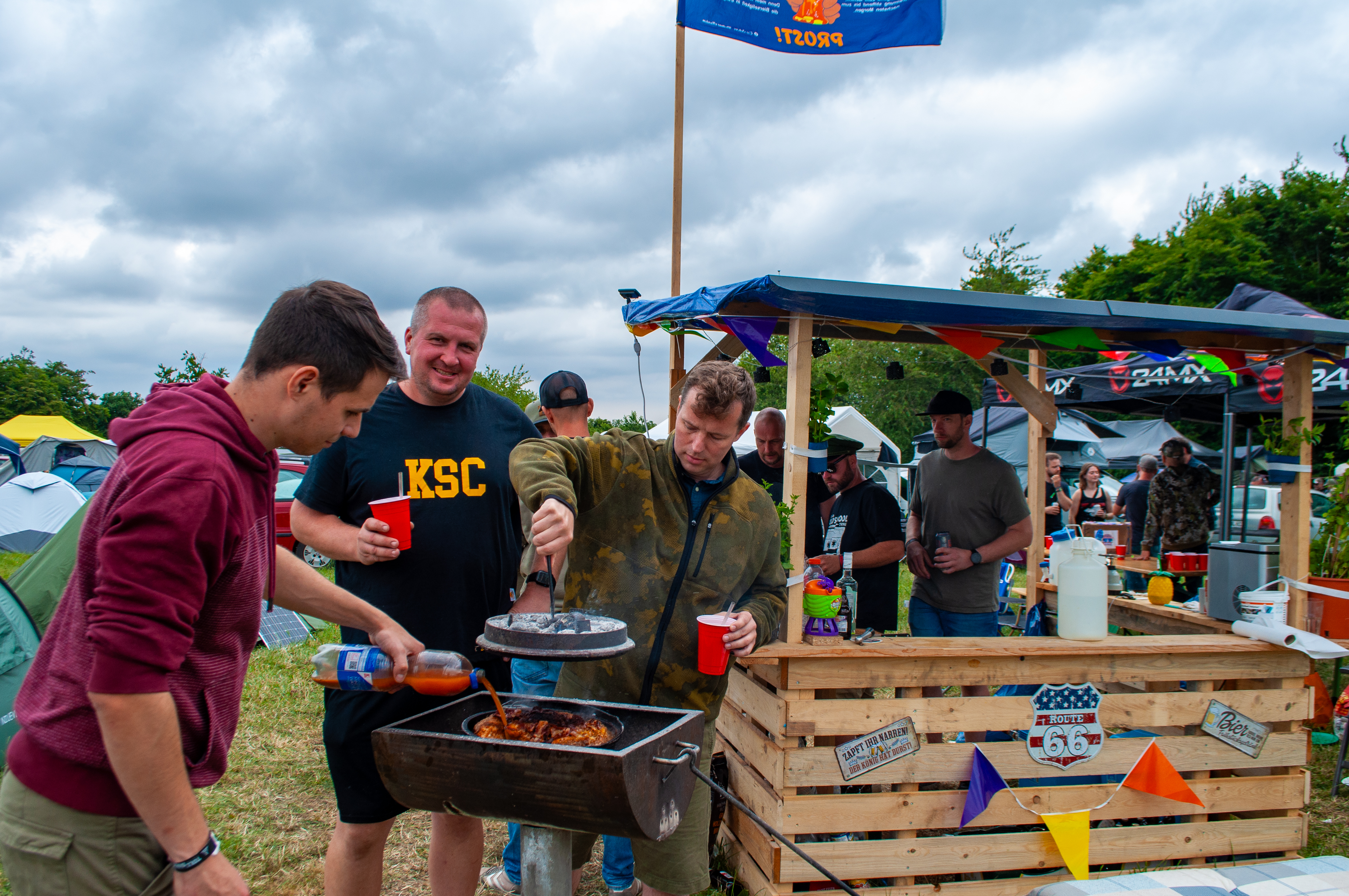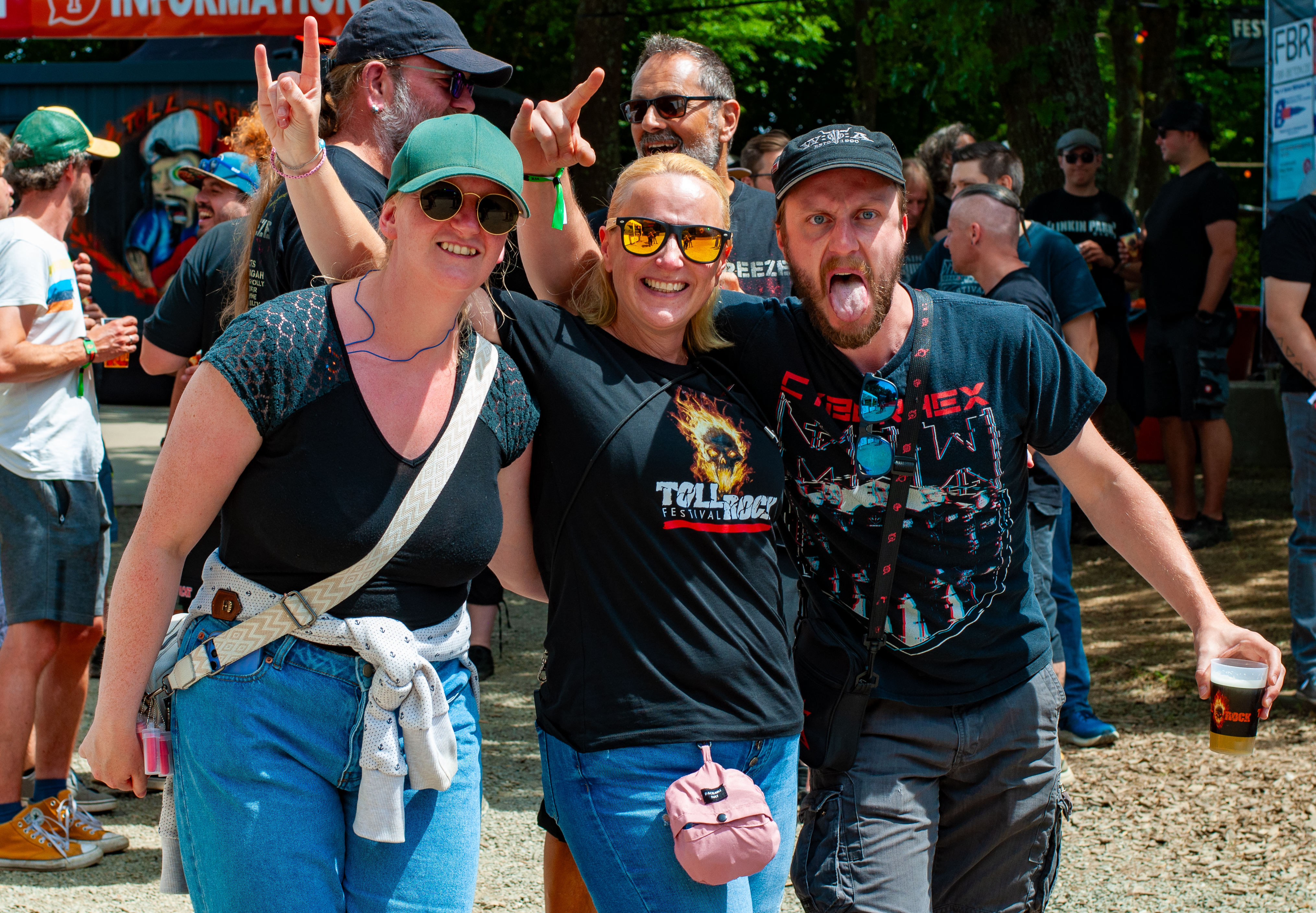 Zeit für ein Kaltgetränk. Das TOLLROCK wird vom Engagement der Menschen im Ort getragen. Das ist sehr sympathisch und sorgt für ein gutes Miteinander. Am Bierstand zapfen der Karnevalsverein, sowie der Turn- und Sportverein mit vereinten Kräften. Zum ersten Mal dabei sind die „Landfrauen-Freundinnen Schmidt“, sie sind für die Weinbar zuständig. Also möge der Wein immer fließen und die Gläser nie leer sein! Im Publikum sind alle Altersstufen vertreten und auch viele Kinder recken auf Papas Schulter, mit Gehörschutz ausgestattet, die Pommesgabel empor.