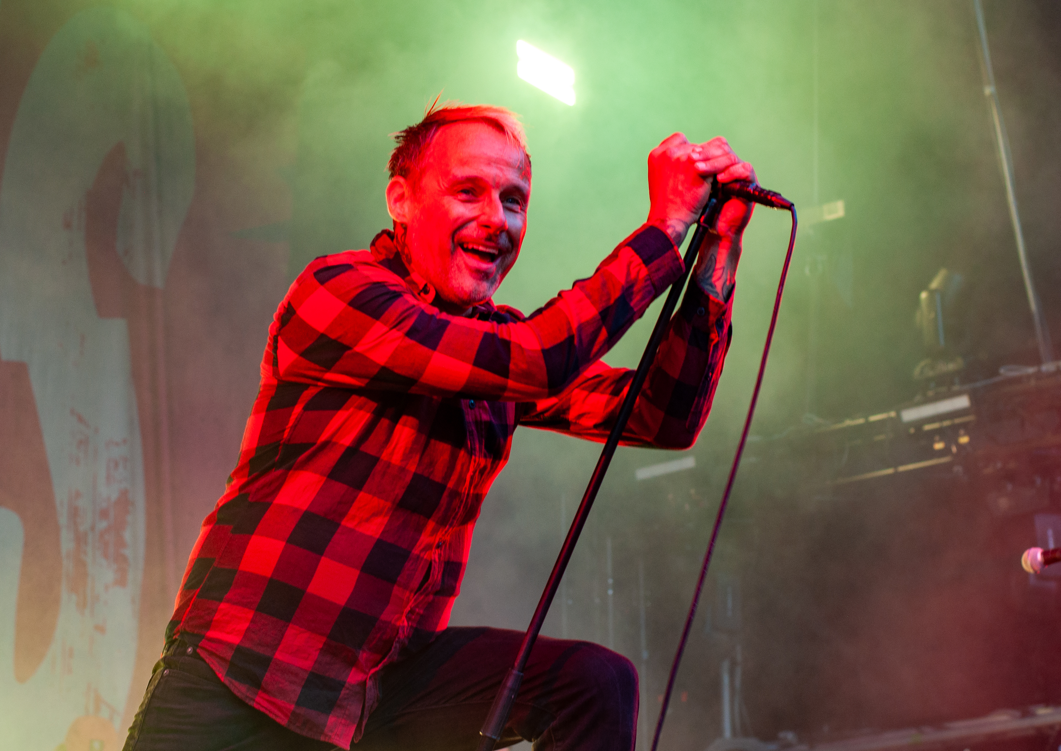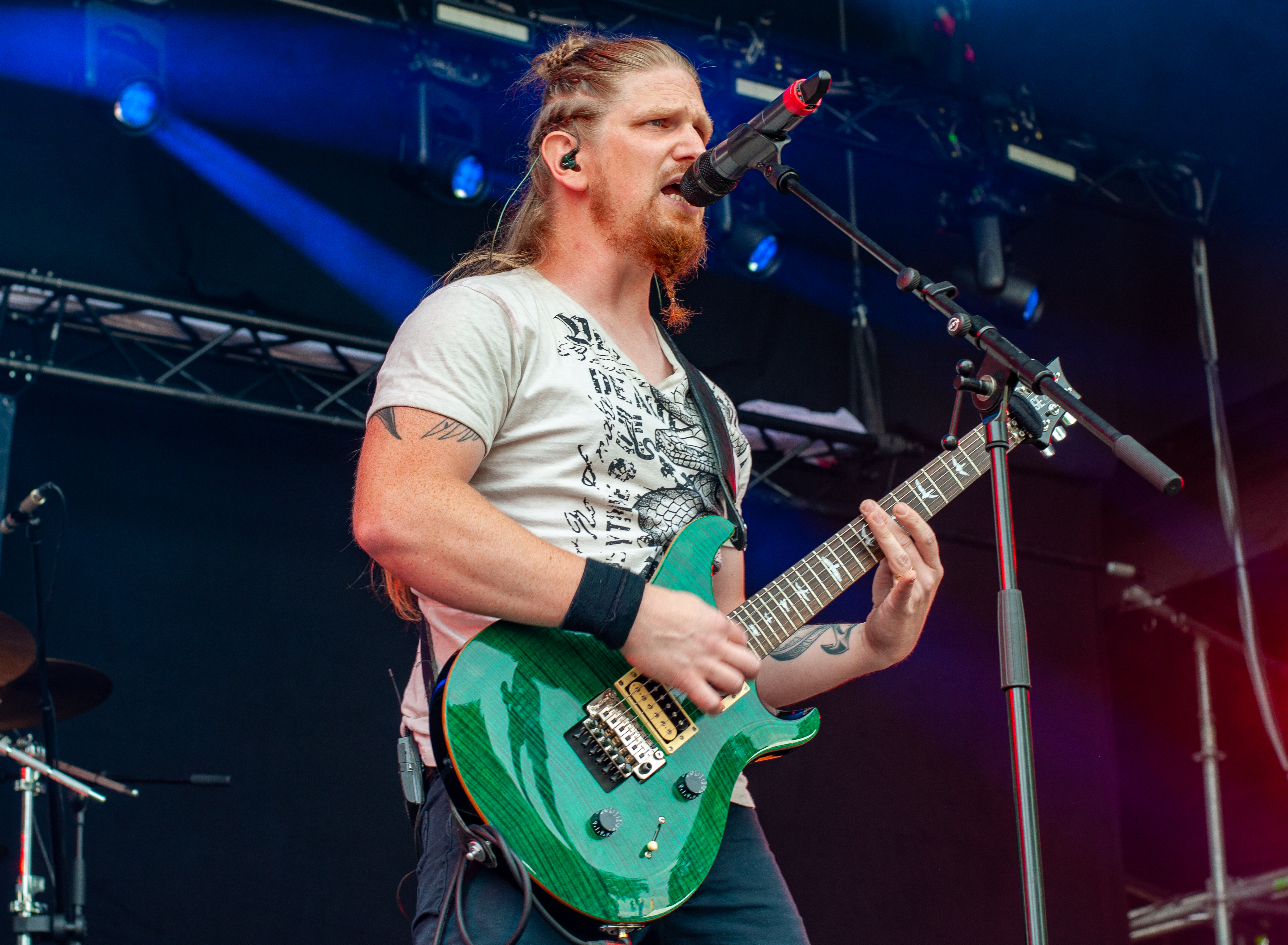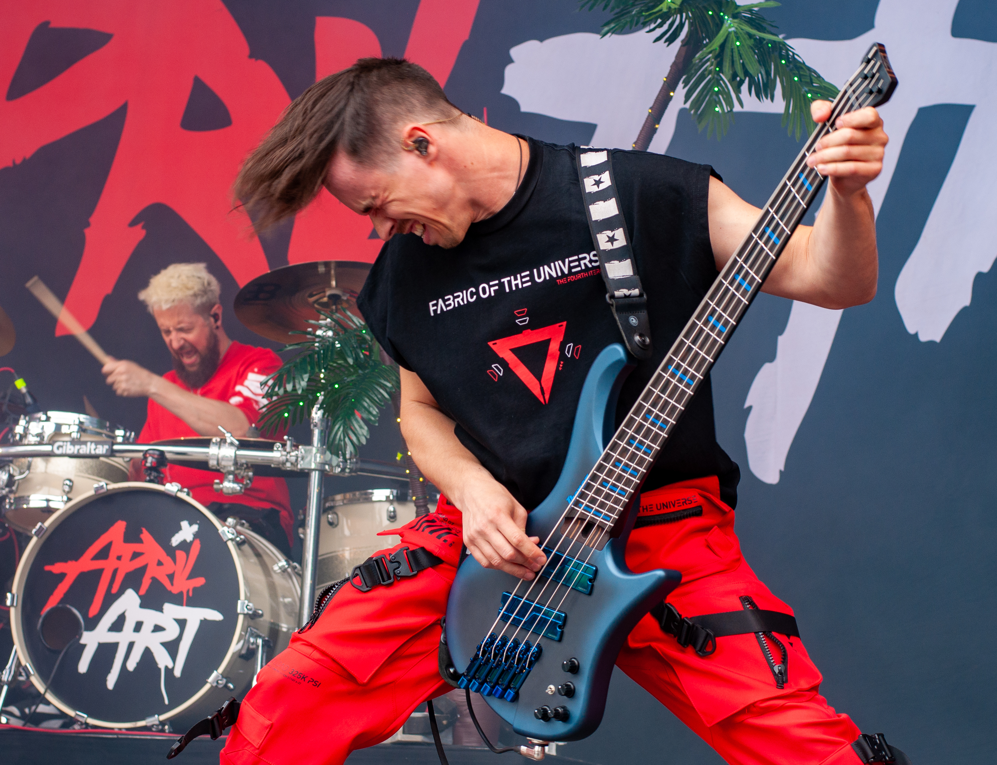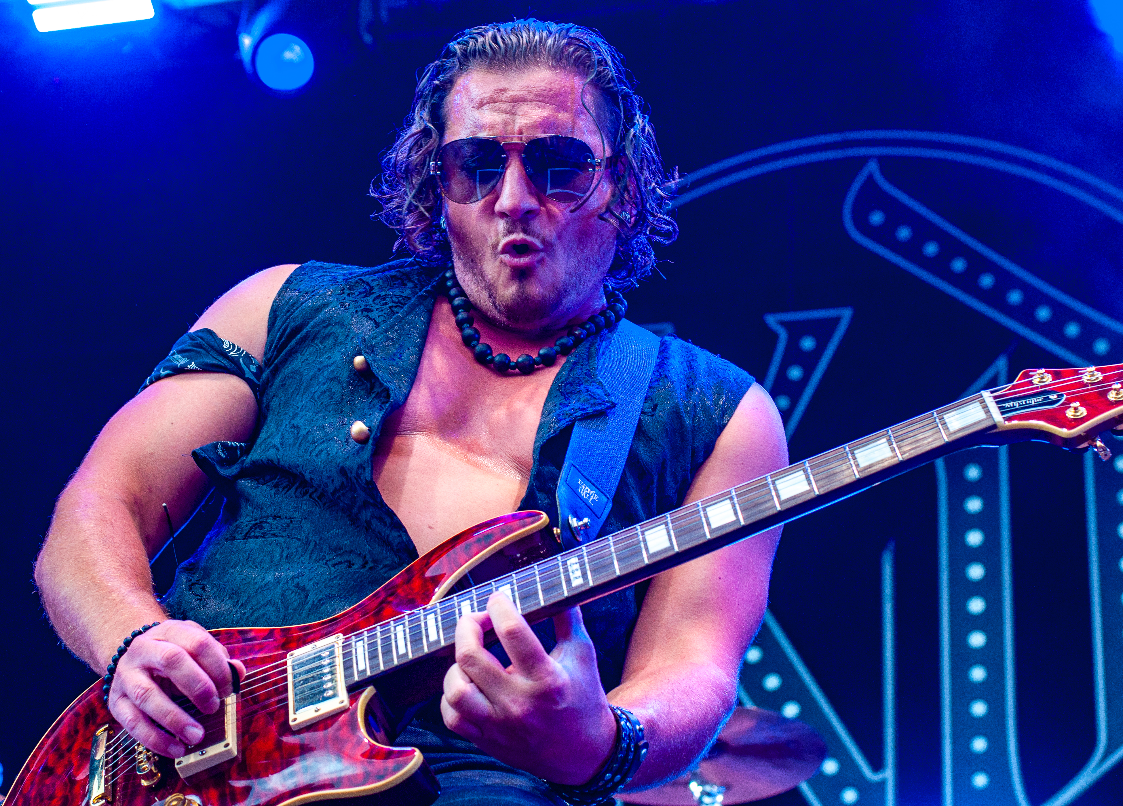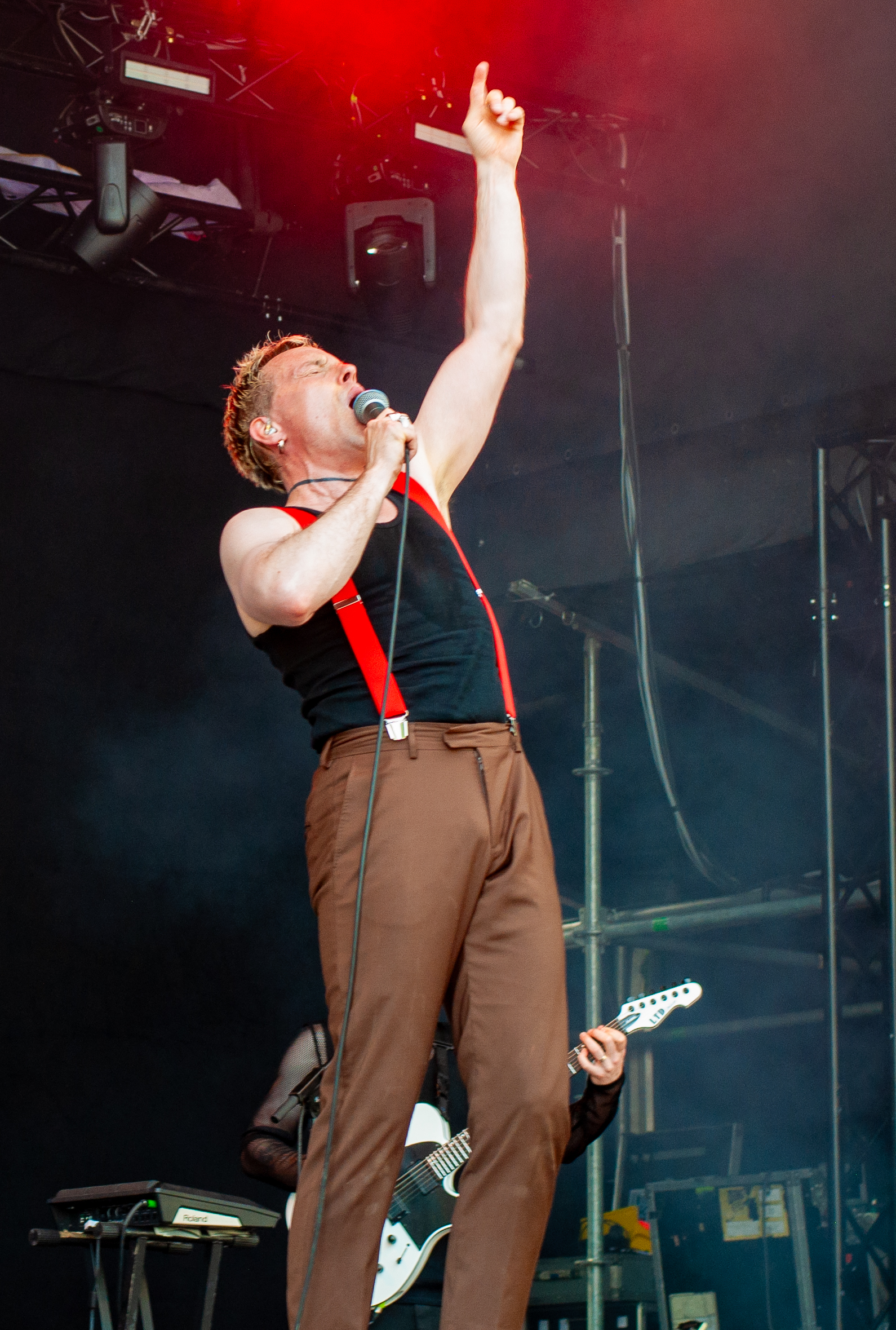 Der Abend bricht an und weiteres Festival-Highlight kündigt sich an: KISSIN’ DYNAMITE. Die Schwaben fahren mächtig auf, die Bühne wird mit beleuchteten Treppenstufen und dem glitzernden Bandemblem bestückt und gleich zu Beginn gibt es Konfetti-Regen: Breitbeiniger Glam Metal mit Stadionrock- und 80er-Jahre-Attitüde. Das Publikum feiert die Songs und die Truppe um die Brüder Hannes und Ande Braun sind gut aufgelegt. KISSIN`DYNAMITE karikieren den Glamrock nicht nur, sie nehmen ihn auch ernst. Voller Party-Pathos und schillernder Power werden „I've Got the Fire“, „The Devil Is a Woman“ und der 2012er Hit “Six Feet Under” dargeboten. Zu "You're Not Alone" lässt sich Sänger Hannes, der die blonden Haare in schönster Welle geföhnt hat, im Schlauchboot über die Köpfe der Zuschauer treiben. Im Fotograben macht das Ablichten dieser Kapelle besonderen Spaß: Es wird gepost was das Zeug hält. Mit eindringlicher Vitalität entern die DONOTS mit „Auf sie mit Gebrüll“ die Bühne. Und den Titel nimmt die Punkband wörtlich: explosiv mit großer Energie und Leidenschaft spielen sie auf. Ingo Knollmann und Co sorgen mit Gassenhauern wie “Stop the Clocks“ und „Calling“ für so manch einen wüsten Circle Pit. Das Moshpit wirbelt ordentlich Staub auf. Guido Knollmann schrammelt wild auf seine Gitarre ein. Das Publikum grölt “Whatever Happened to the 80s” so laut, dass sich der Wolf im Wald sicherlich am lecker Rothirsch verschluckt. Nach “We´re Not Gonna Take It” und “So long” ist Schicht im Schacht. Sänger Ingo ist hoch des Lobes für das Festival und den gemeinnützigen Verein, der es organisiert. Dem möchte ich mich gerne anschließen: Chapeau! Den Rausschmeißer machen die FIVE FINGER SKULL CRUSHERS, die FIVE FINGER DEATH PUNCH-Coverband aus Italien. Ein tolltes Festivalwochenende endet mit hart groovenden Gitarrenriffs.