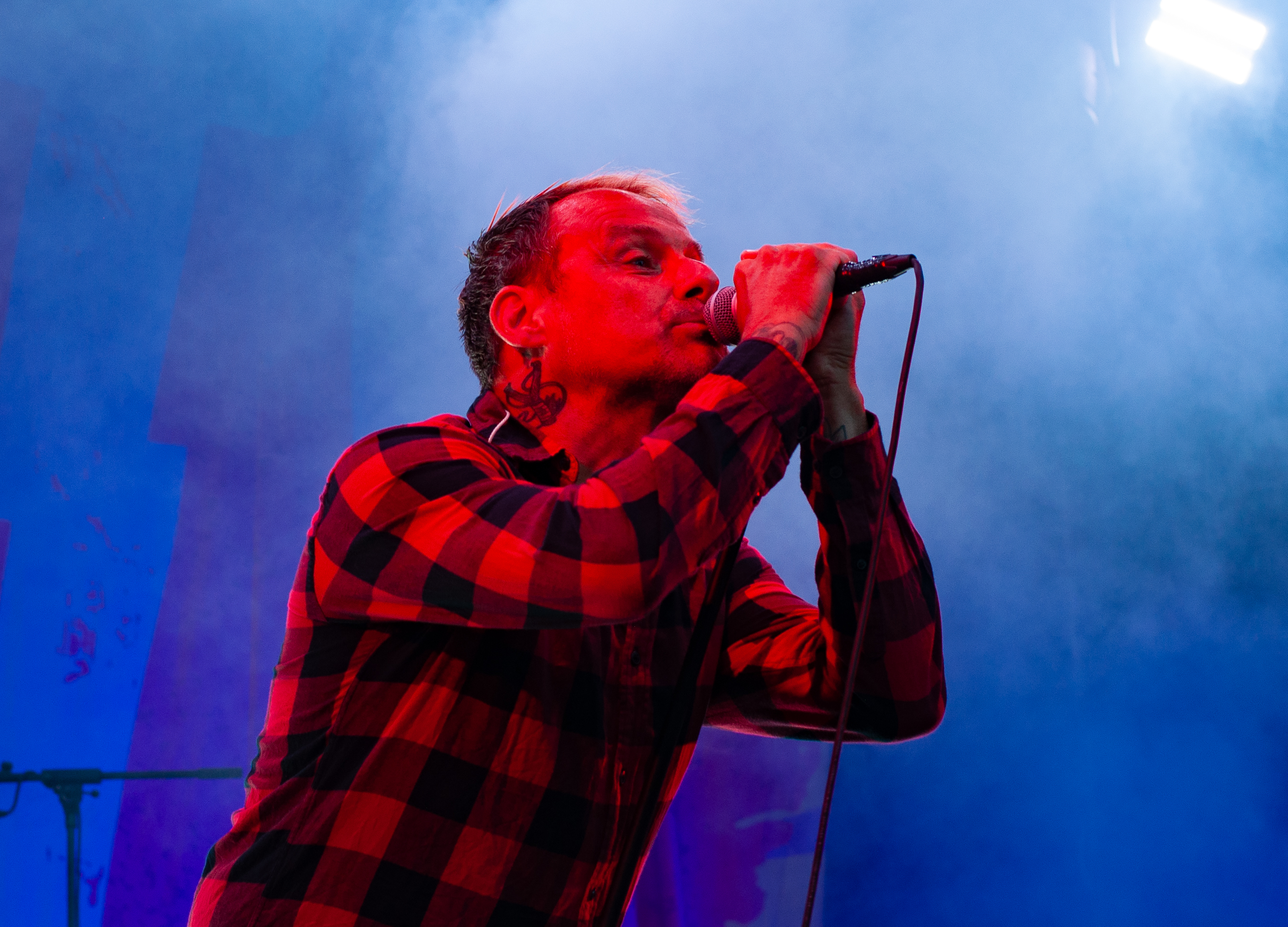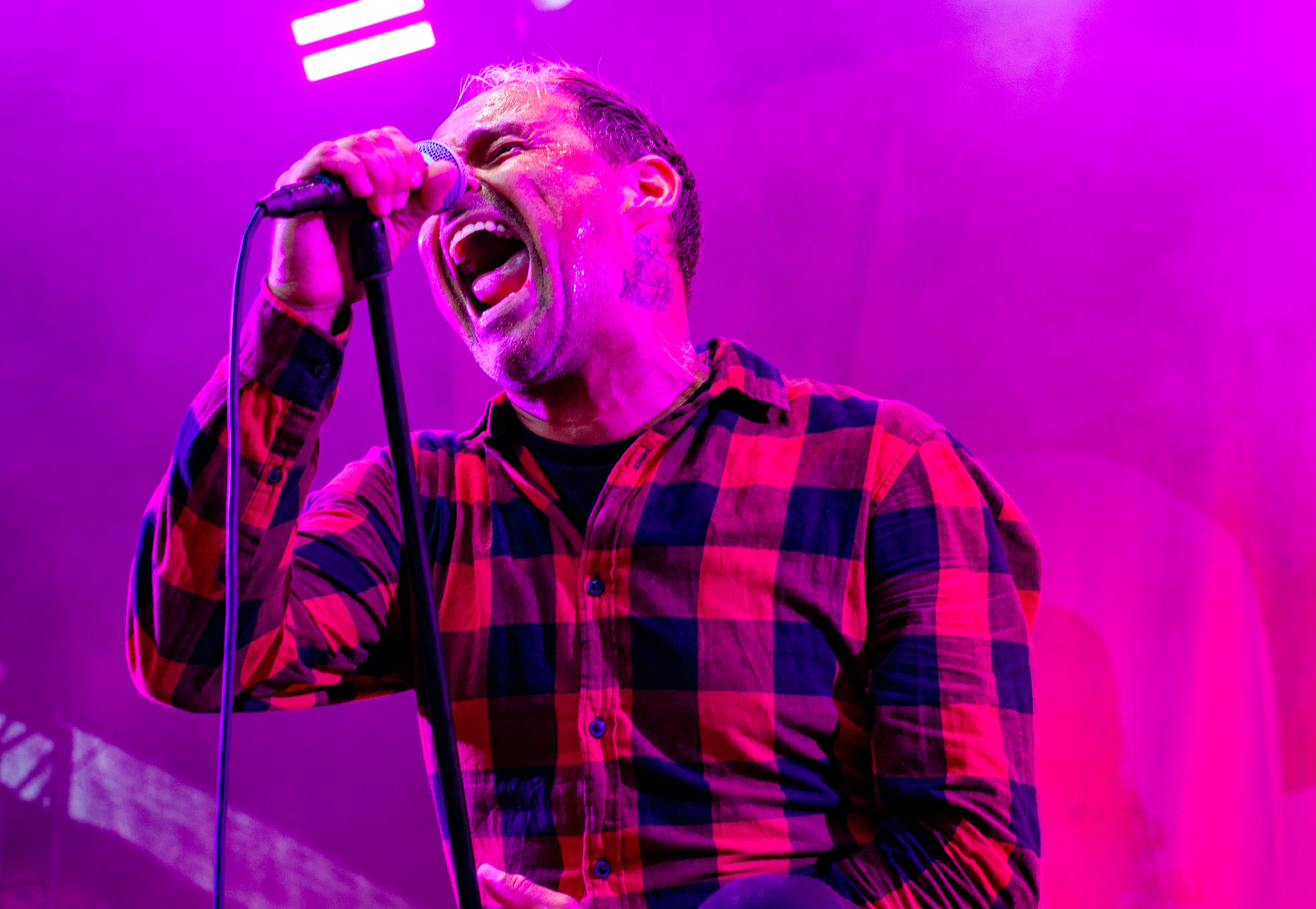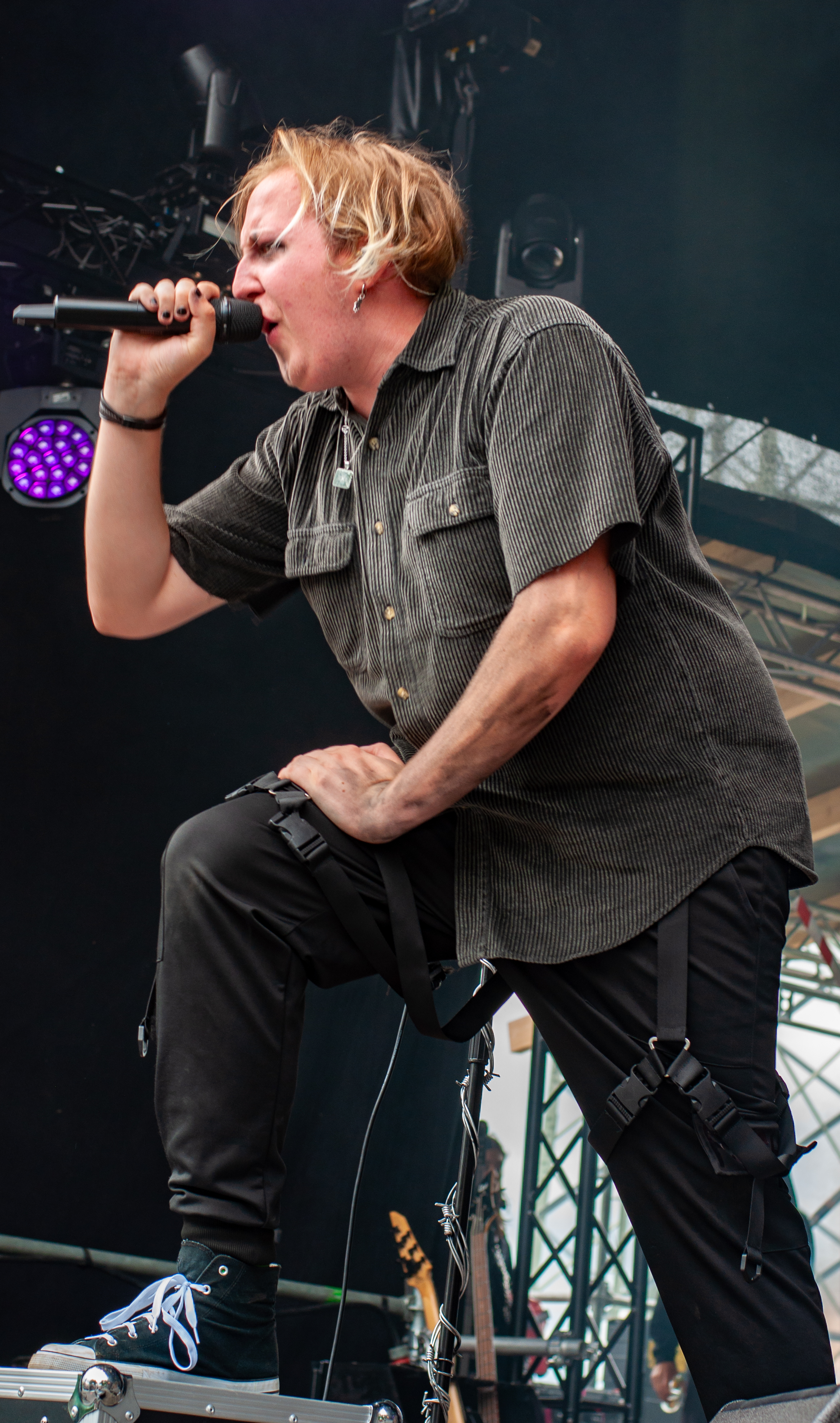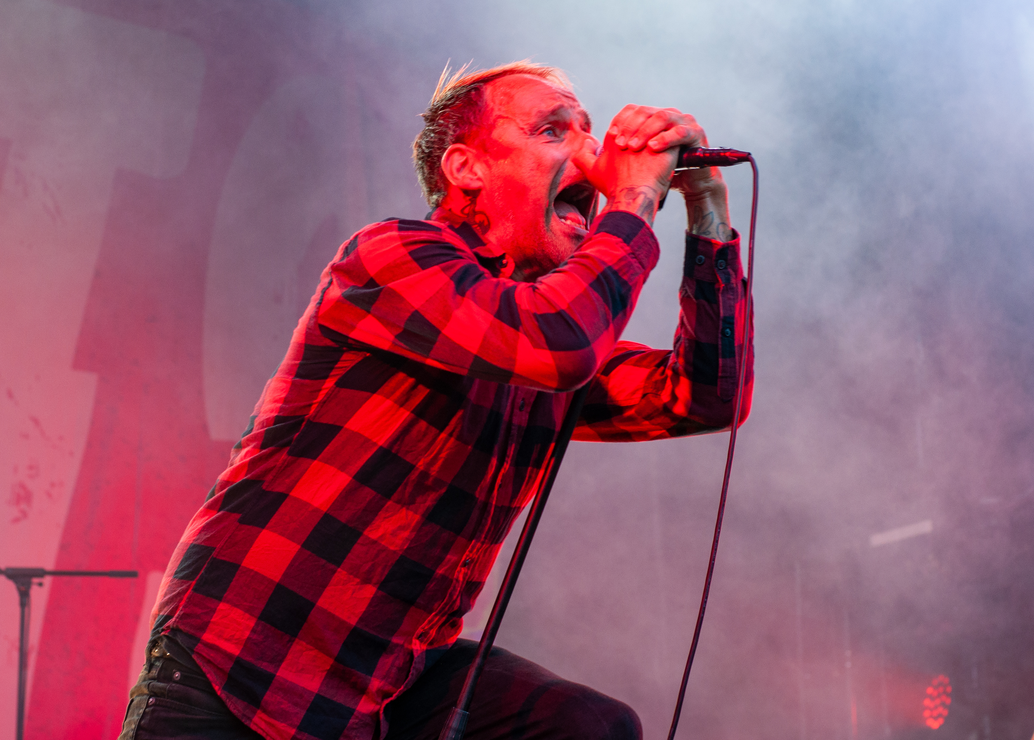 Der Abend bricht an und weiteres Festival-Highlight kündigt sich an: KISSIN’ DYNAMITE. Die Schwaben fahren mächtig auf, die Bühne wird mit beleuchteten Treppenstufen und dem glitzernden Bandemblem bestückt und gleich zu Beginn gibt es Konfetti-Regen: Breitbeiniger Glam Metal mit Stadionrock- und 80er-Jahre-Attitüde. Das Publikum feiert die Songs und die Truppe um die Brüder Hannes und Ande Braun sind gut aufgelegt. KISSIN`DYNAMITE karikieren den Glamrock nicht nur, sie nehmen ihn auch ernst. Voller Party-Pathos und schillernder Power werden „I've Got the Fire“, „The Devil Is a Woman“ und der 2012er Hit “Six Feet Under” dargeboten. Zu "You're Not Alone" lässt sich Sänger Hannes, der die blonden Haare in schönster Welle geföhnt hat, im Schlauchboot über die Köpfe der Zuschauer treiben. Im Fotograben macht das Ablichten dieser Kapelle besonderen Spaß: Es wird gepost was das Zeug hält. Mit eindringlicher Vitalität entern die DONOTS mit „Auf sie mit Gebrüll“ die Bühne. Und den Titel nimmt die Punkband wörtlich: explosiv mit großer Energie und Leidenschaft spielen sie auf. Ingo Knollmann und Co sorgen mit Gassenhauern wie “Stop the Clocks“ und „Calling“ für so manch einen wüsten Circle Pit. Das Moshpit wirbelt ordentlich Staub auf. Guido Knollmann schrammelt wild auf seine Gitarre ein. Das Publikum grölt “Whatever Happened to the 80s” so laut, dass sich der Wolf im Wald sicherlich am lecker Rothirsch verschluckt. Nach “We´re Not Gonna Take It” und “So long” ist Schicht im Schacht. Sänger Ingo ist hoch des Lobes für das Festival und den gemeinnützigen Verein, der es organisiert. Dem möchte ich mich gerne anschließen: Chapeau! Den Rausschmeißer machen die FIVE FINGER SKULL CRUSHERS, die FIVE FINGER DEATH PUNCH-Coverband aus Italien. Ein tolltes Festivalwochenende endet mit hart groovenden Gitarrenriffs.