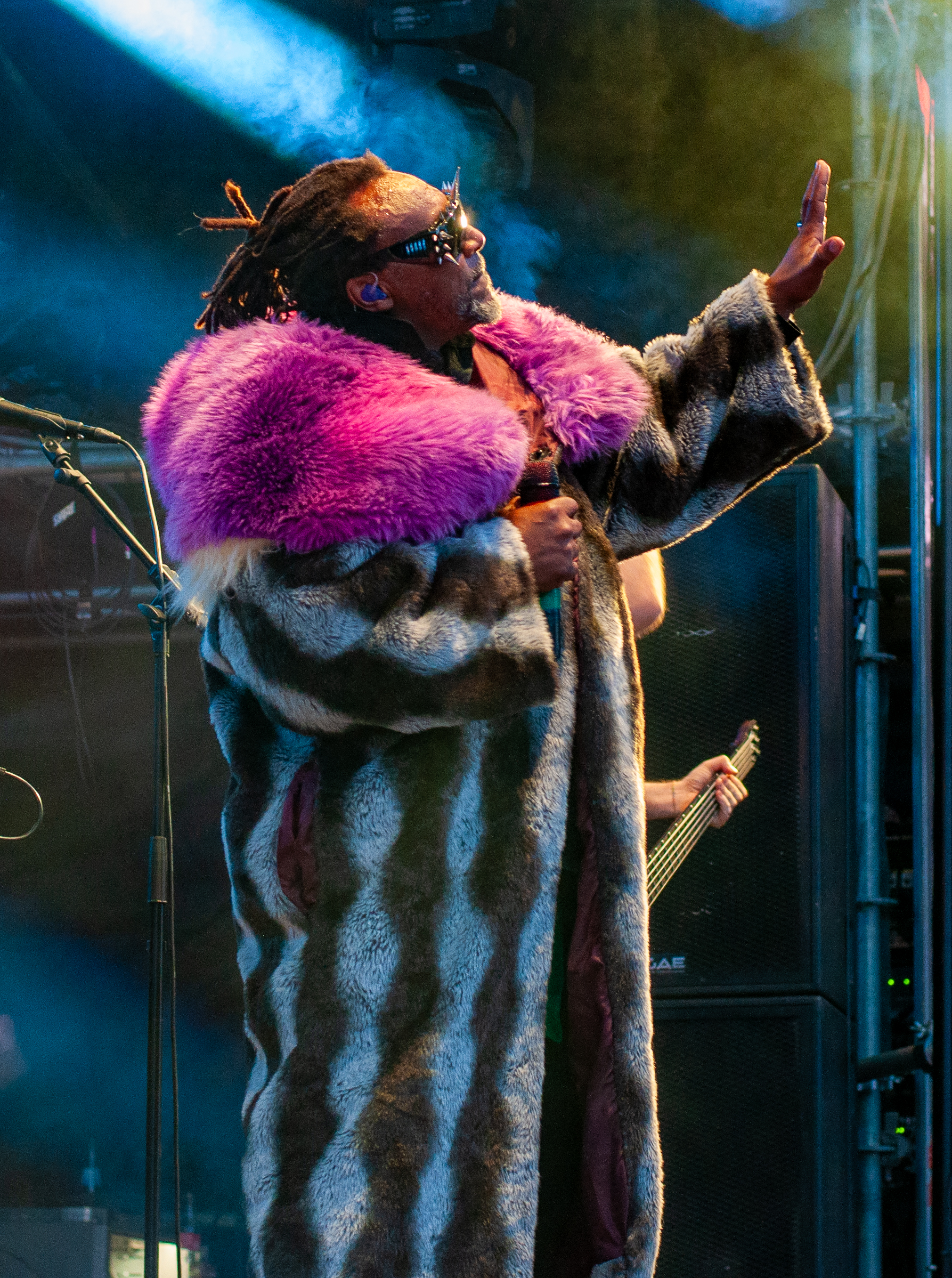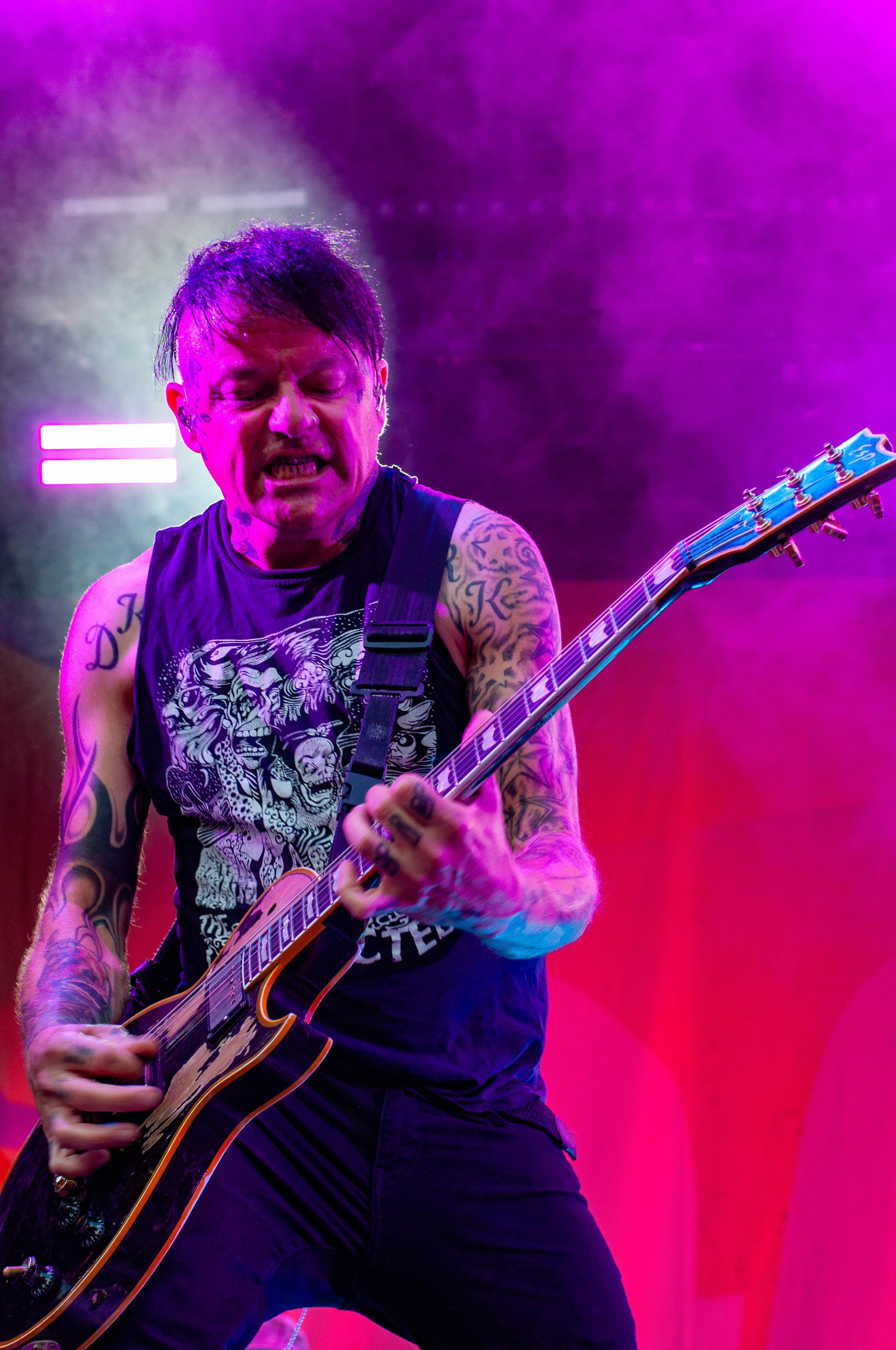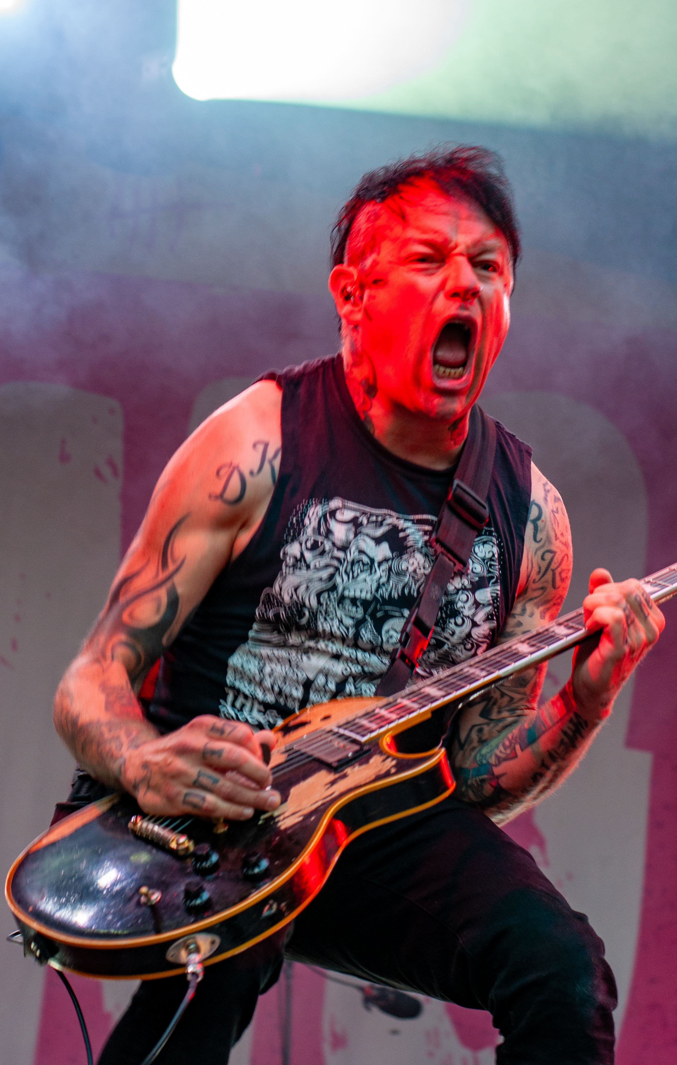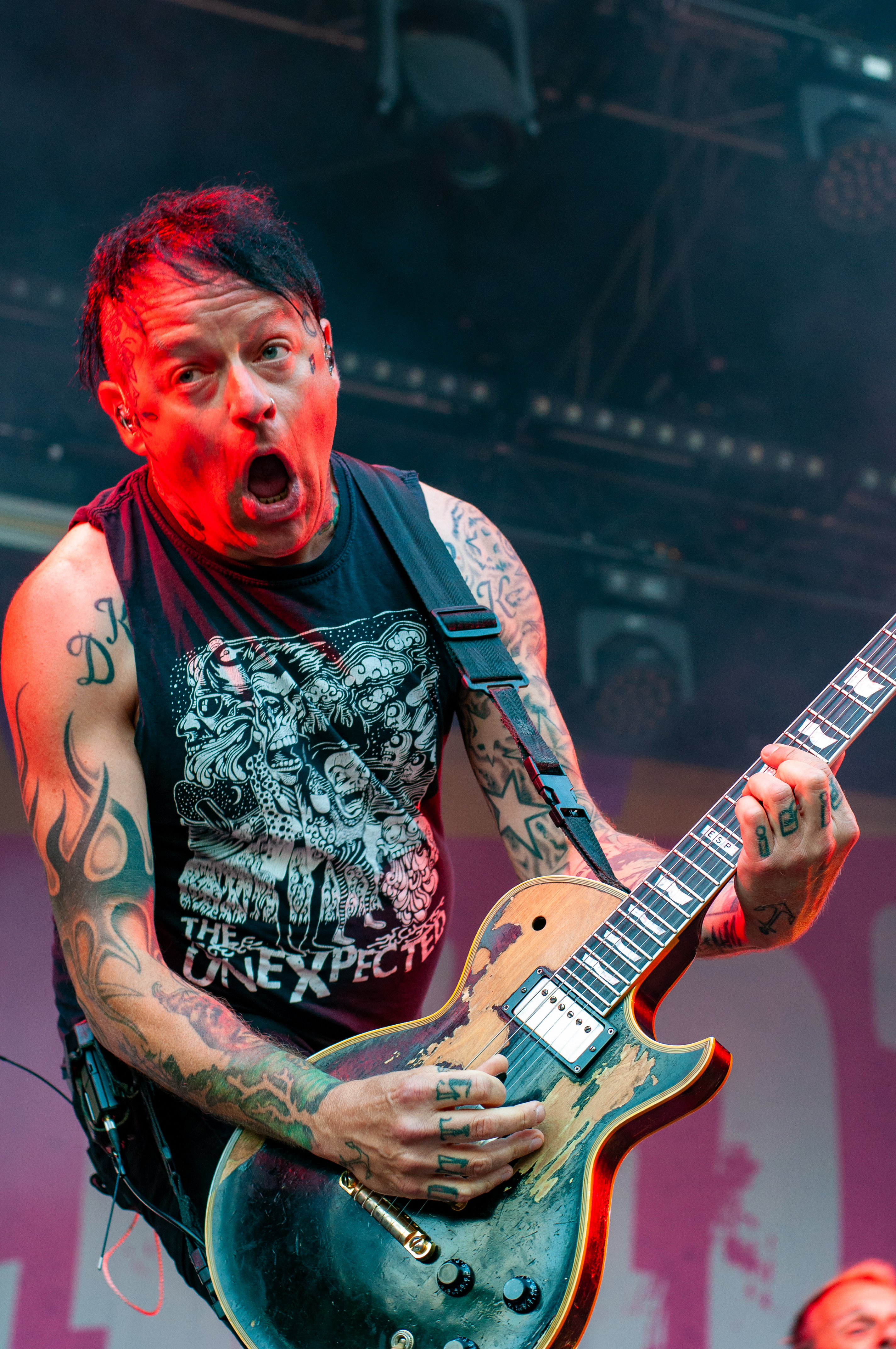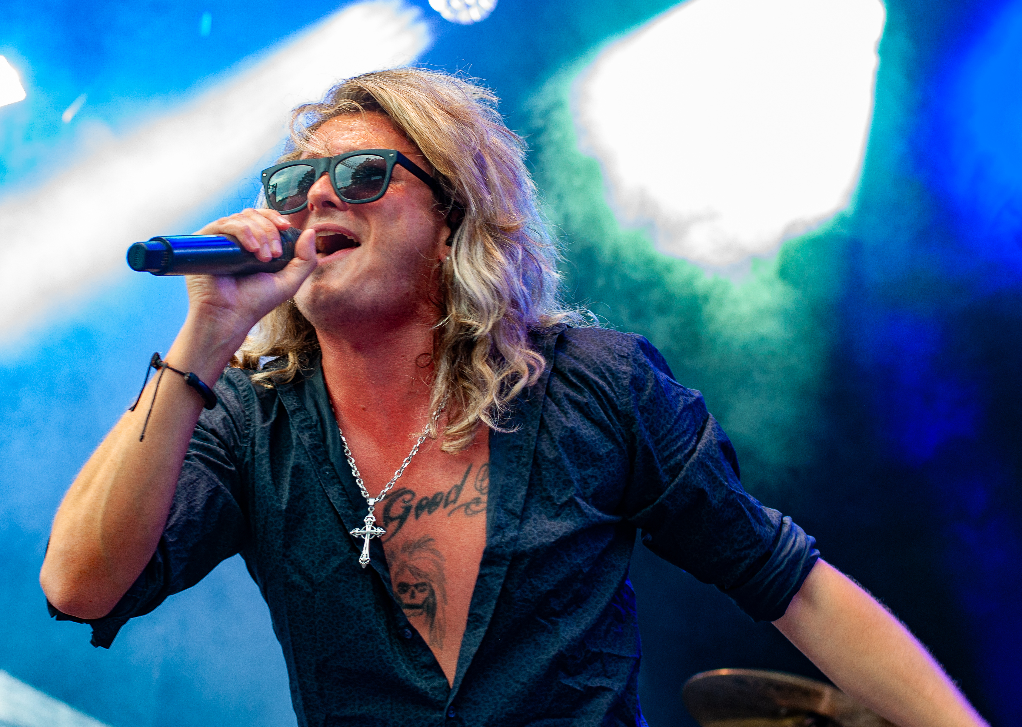 „Set Fazers“, „That's My Jam“: Die Menge springt und groovt. Webbe äußert gute Botschaften, spricht sich gegen Rassismus und für mehr Liebe aus und ermutigt die Leute Musik zu machen. Es folgen Songs wie „If i could”, „Kill the Power“ und selbstredend „Gimme That Boom“. Ich hab SKINDREAD schon mehrfach auf großer Bühne gesehen, aber hier vor circa 4000 Leuten in Schmidt funktioniert es besonders gut. Immer wieder werden Klassiker wie „Walk“ von PANTERA, „Thunderstruck“ von AC/DC oder „Out of Space“ von PRODIGY angespielt, gefolgt von elektronischen Alarm-Geräuschen und Hip Hop-Beats: das schafft eine angenehme Verwirrung. Ein würdiger Headliner! Um 23:30 Uhr gibt’s bei ROCK RISING Rockhymnen von Bands wie QUEEN, AC/DC, TOTO und PINK FLOYD auf die Ohren. Die vielen Coverbands führten in der Vergangenheit dazu, dass mich das TOLLROCK nicht so sehr interessierte. Inzwischen ist das anders und es spielen Bands verschiedener Rock- und Metal-Genres hier. Aber eine Cover-Band am späten Abend geht natürlich klar und nehm ich gerne mit! Jetzt aber ab in die Koje.
