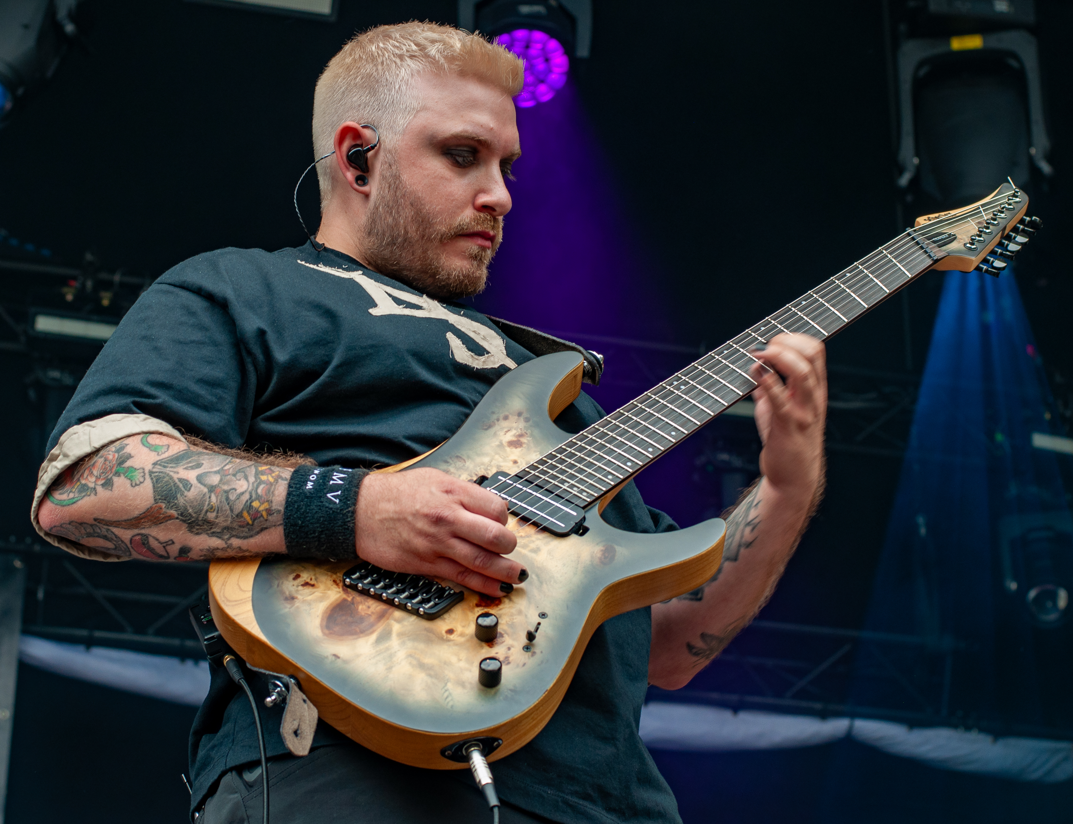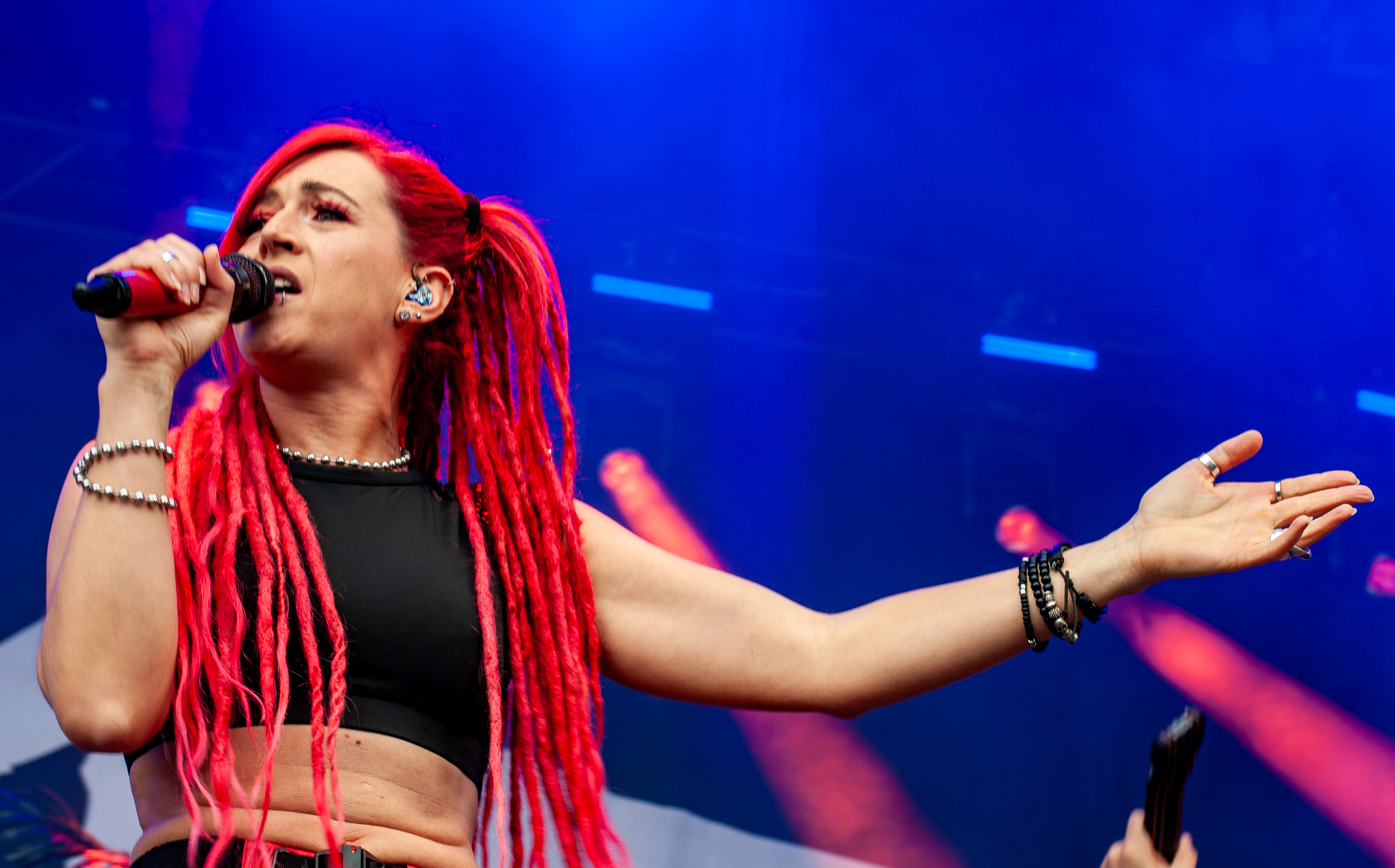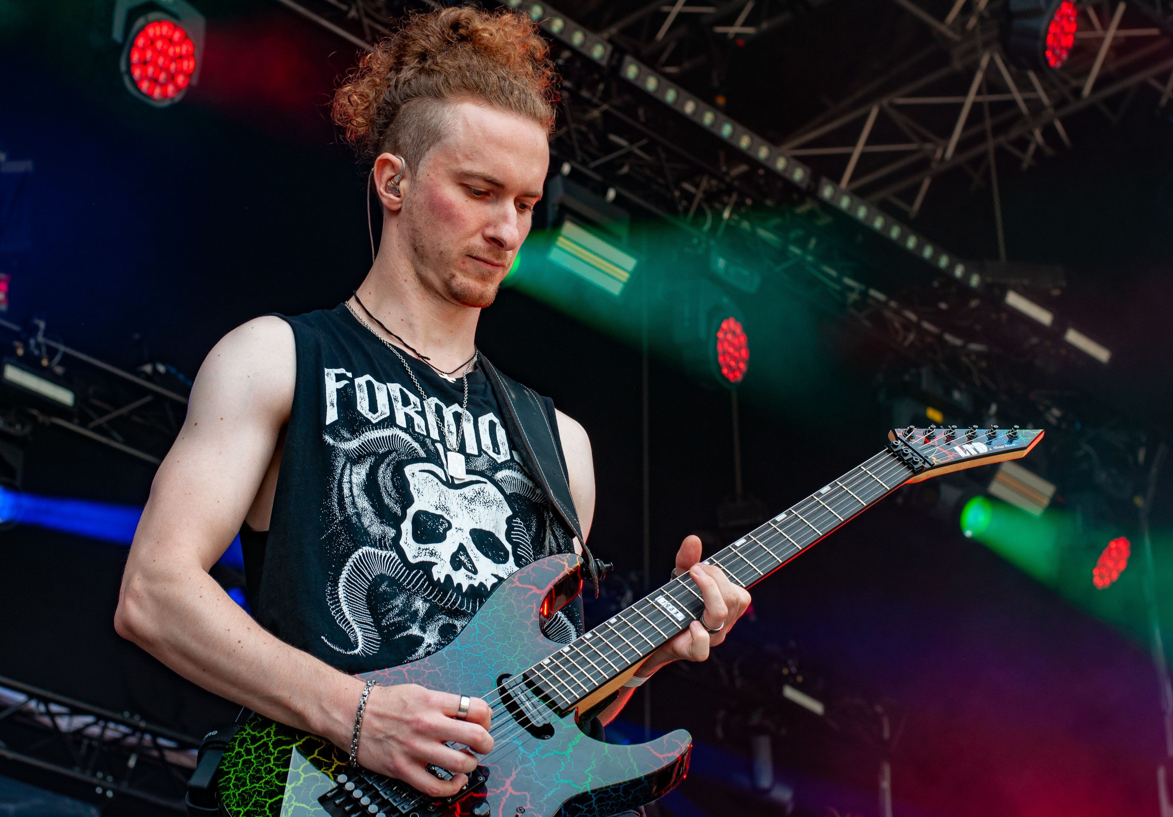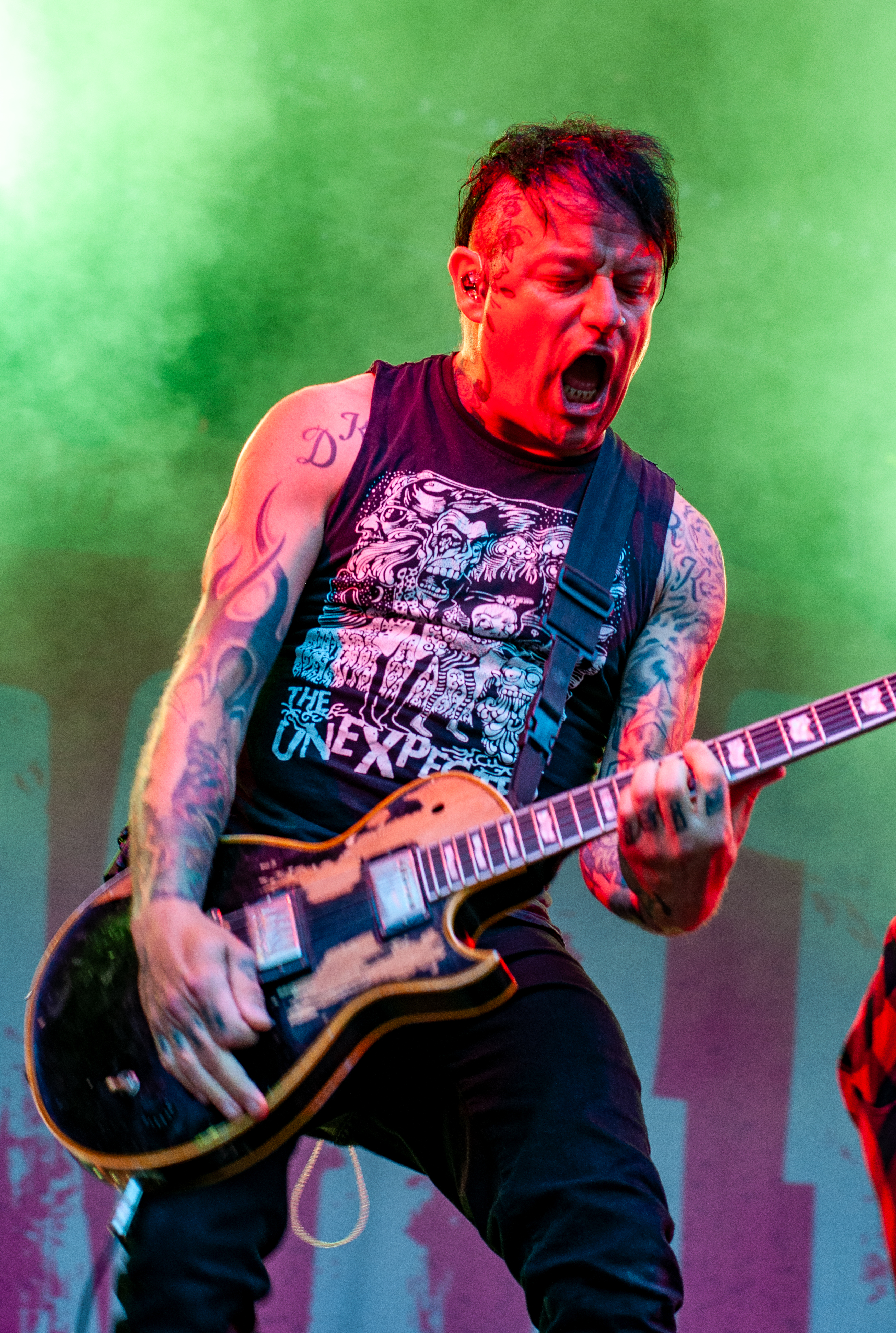 „Set Fazers“, „That's My Jam“: Die Menge springt und groovt. Webbe äußert gute Botschaften, spricht sich gegen Rassismus und für mehr Liebe aus und ermutigt die Leute Musik zu machen. Es folgen Songs wie „If i could”, „Kill the Power“ und selbstredend „Gimme That Boom“. Ich hab SKINDREAD schon mehrfach auf großer Bühne gesehen, aber hier vor circa 4000 Leuten in Schmidt funktioniert es besonders gut. Immer wieder werden Klassiker wie „Walk“ von PANTERA, „Thunderstruck“ von AC/DC oder „Out of Space“ von PRODIGY angespielt, gefolgt von elektronischen Alarm-Geräuschen und Hip Hop-Beats: das schafft eine angenehme Verwirrung. Ein würdiger Headliner! Um 23:30 Uhr gibt’s bei ROCK RISING Rockhymnen von Bands wie QUEEN, AC/DC, TOTO und PINK FLOYD auf die Ohren. Die vielen Coverbands führten in der Vergangenheit dazu, dass mich das TOLLROCK nicht so sehr interessierte. Inzwischen ist das anders und es spielen Bands verschiedener Rock- und Metal-Genres hier. Aber eine Cover-Band am späten Abend geht natürlich klar und nehm ich gerne mit! Jetzt aber ab in die Koje.