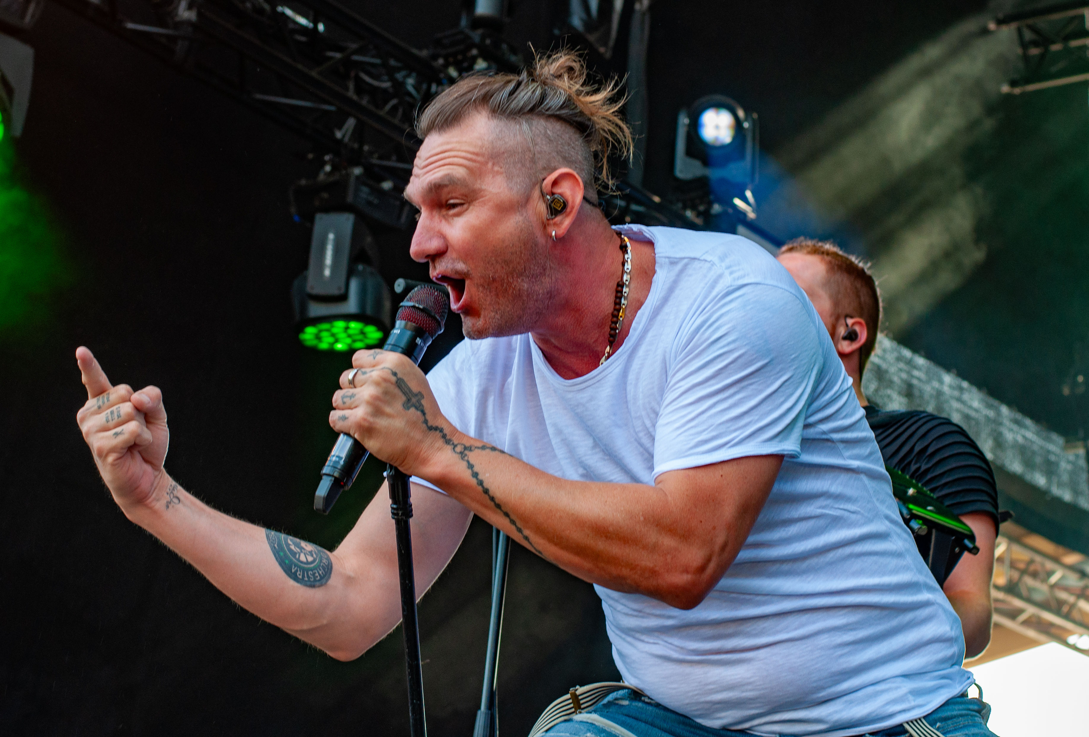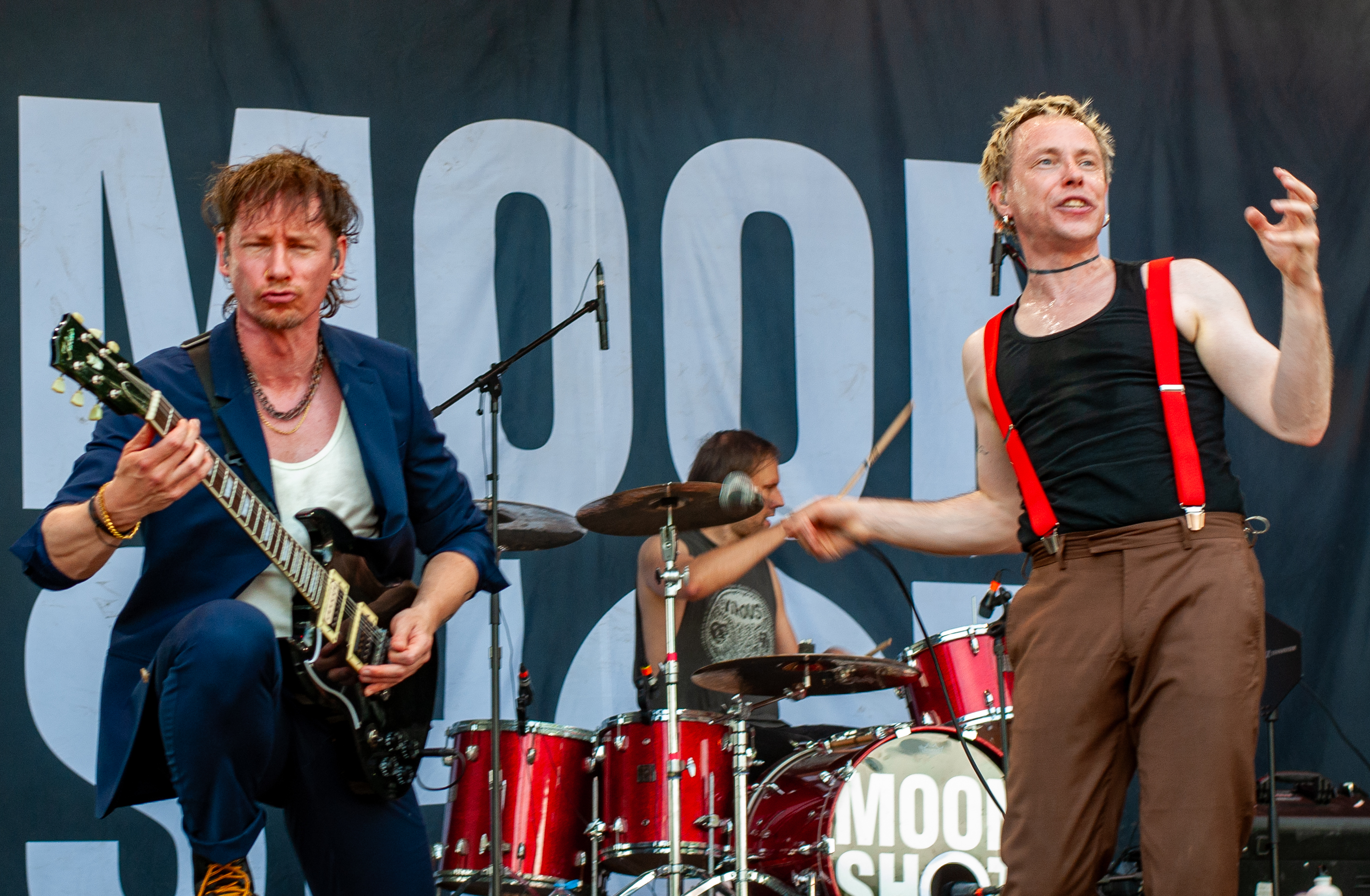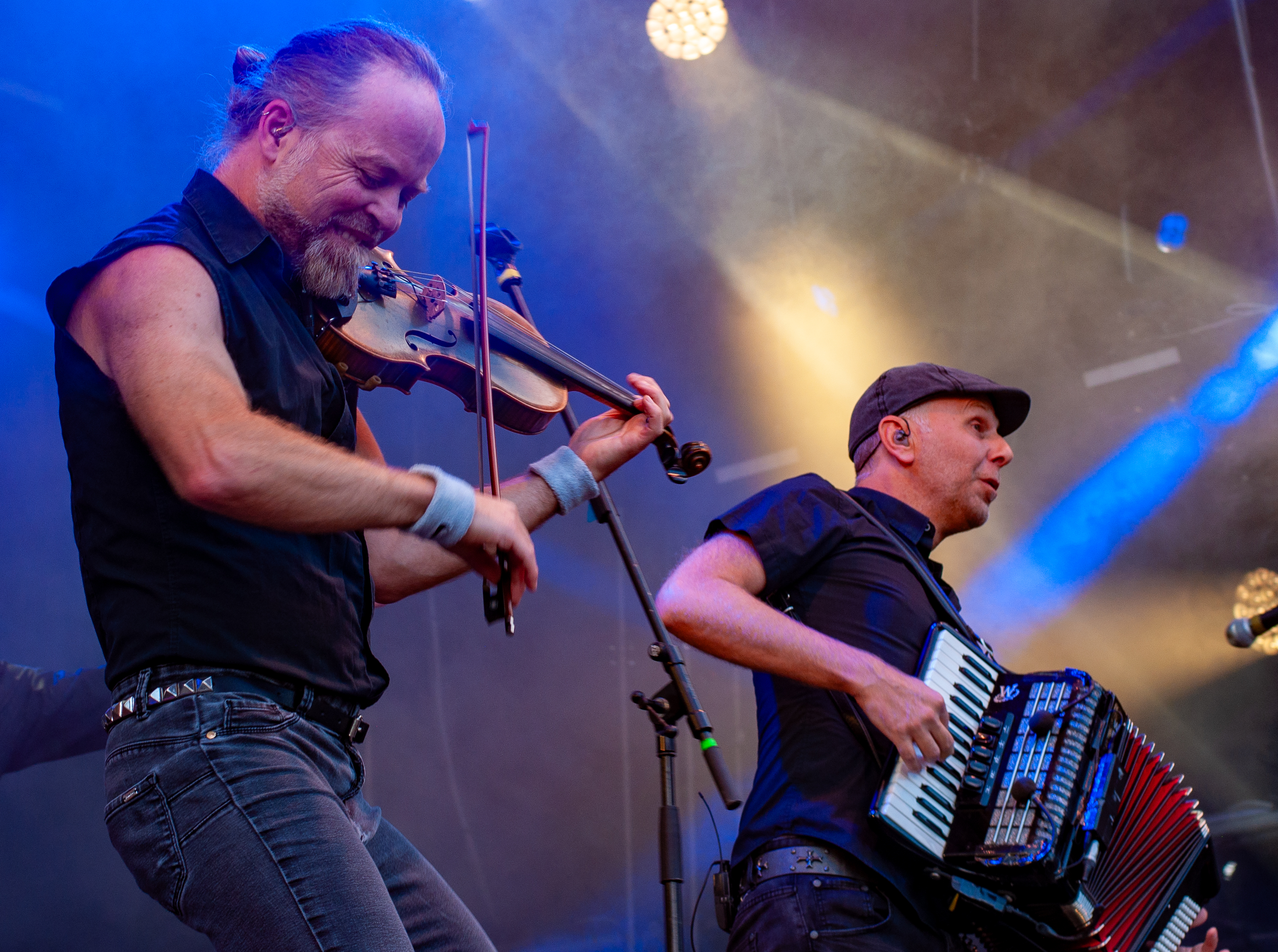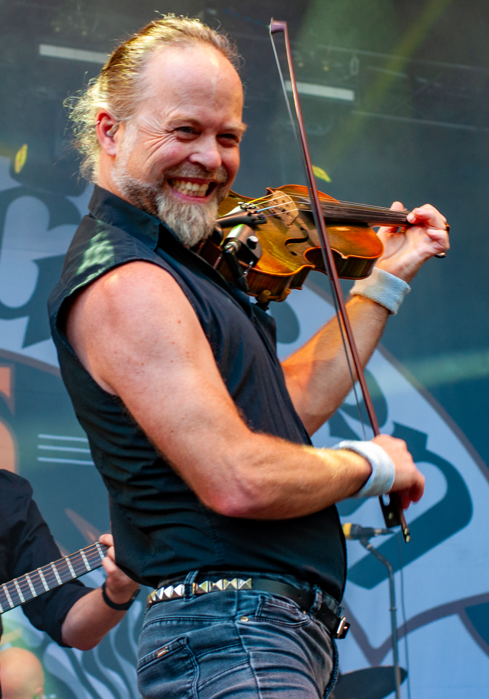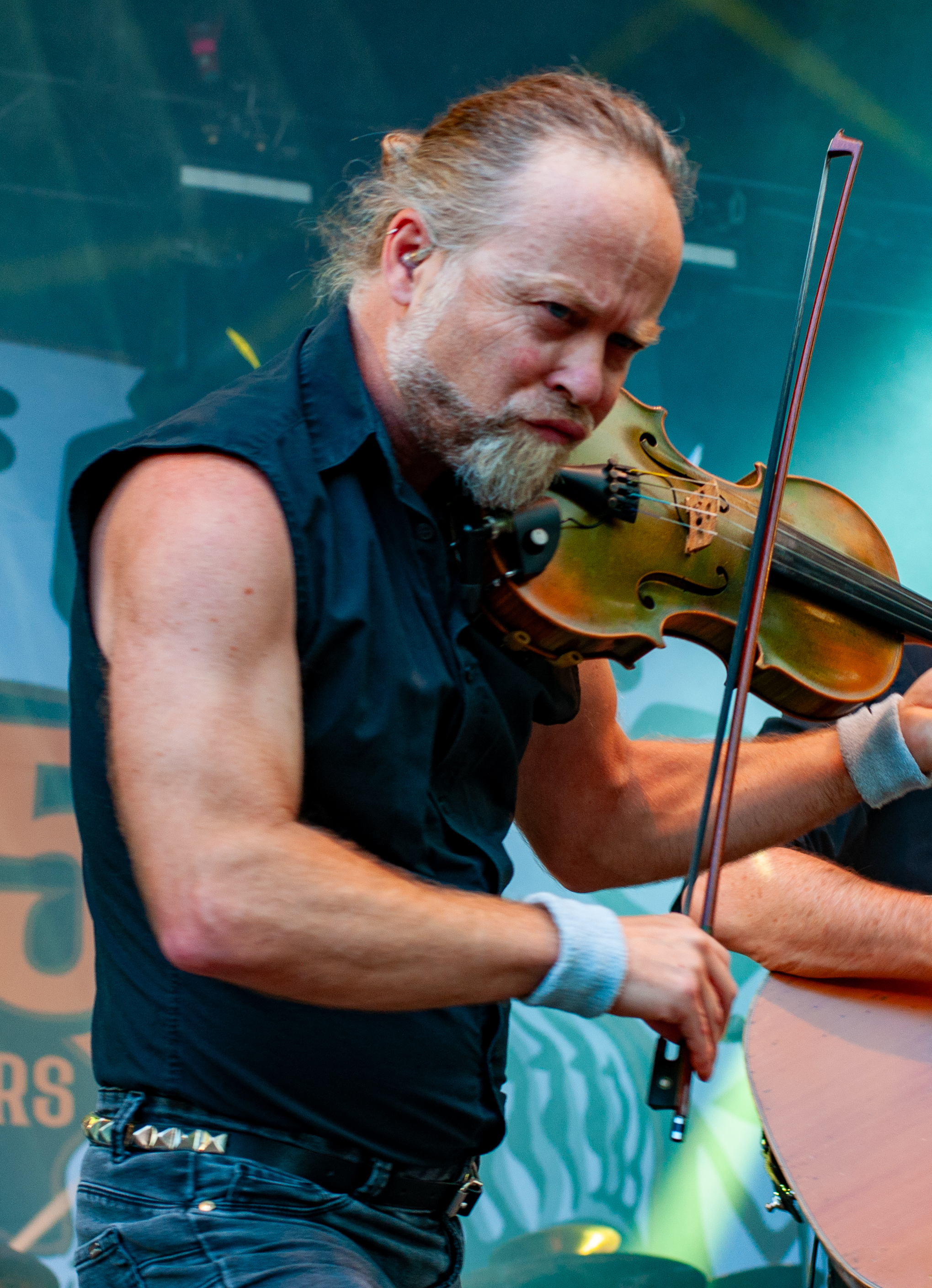 Der zweite Festivaltag startet verhältnismäßig früh und schon mittags kann man am Meet&Greet-Bereich die DONOTS treffen, bevor die Band am See eine Runde joggen geht.. Um 12:30 Uhr ist Zeit für den TOLLROCK-Bandcontest. Über 100 Bands haben sich beworben und heute spielen drei auserwählte Kapellen. Den Auftakt macht die 5-köpfige Punkrockband THE TASTY TRASHPANDAS aus Aachen und bietet melodischen Punk für die Skatehalle. Vor kurzem erschien ihr erster Longplayer „Hope for better“. Weiter geht’s mit BLACK REMAINS. Die rifflastige Rockmusik des Trios überzeugt; die Band kann mit Songs wie „Hey Now“ und „Rock`n`Roll Dancers“ den Contest für sich entscheiden. Die dritte Formation im Wettbewerb heißt UNCROOK und zockt Hard Rock. 2019 haben sie das Album „Years gone by“ rausgebracht. MOON SHOT aus Finnland machen treibenden Alternative Rock mit guten Melodien. Der Bassist Henkka Seppälä war übrigens bei CHILDREN OF BODOM. Die Mucke hat allerdings rein gar nichts mit CIB zu tun, erinnert eher an BIFFY CLYRO oder MUSE. Mich können die Jungs durchaus überzeugen, Songs wie „Yes“ oder "The Power" bleiben echt im Ohr und Sänger Ville Malja agiert auf der Bühne durchaus ausdrucksstark. Obwohl die Mucke ansich gar nicht meinem Beuteschema entsprechen dürfte, läuft seit dem Auftritt MOON SHOTs aktuelle Scheibe nonstop in meinem Auto. Auch die Bands, die am Nachmittag spielen, erhalten auf dem TOLLROCK eine amtliche Spielzeit; die Kvenen spielen beispielsweise grob 70 Minuten. Nervöse 25 Minuten-Slots großer Festivals gibt’s hier nicht. Das SAINT CITY ORCHETRA spielen punkigen Irish Folk und haben gute Laune, eigene Lieder und Cover-Songs wie „Rose Tattoo“ von den DROPKICK MURPHYS im Gepäck. Musikalisch ist die Band aus der Schweiz also ähnlich ausgerichtet, wie FIDDLERS GREEN ab Vortag. Ich will nicht meckern, aber vielleicht wäre bezüglich des Billings eher eine Metal Band passend gewesen (gern auch Death Metal). Aber was solls: SAINT CITY ORCHESTRA, insbesondere die Geigerin Mélodie und Akkordeon-Spieler Gabriel, geben Gas und sind viel in Bewegung. Die Zuhörerschaft schwingt fleißig das Tanzbein.