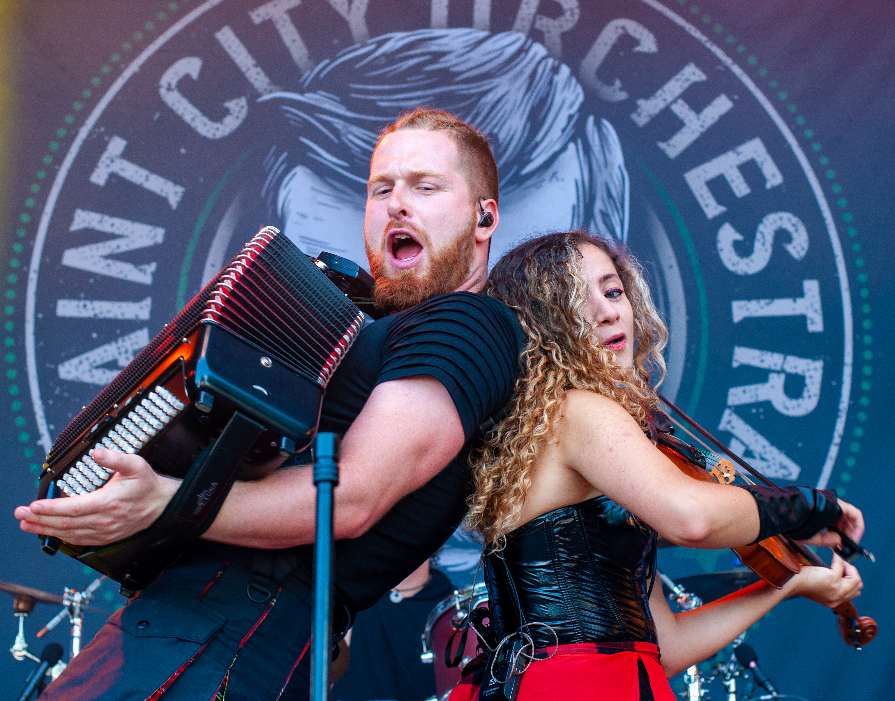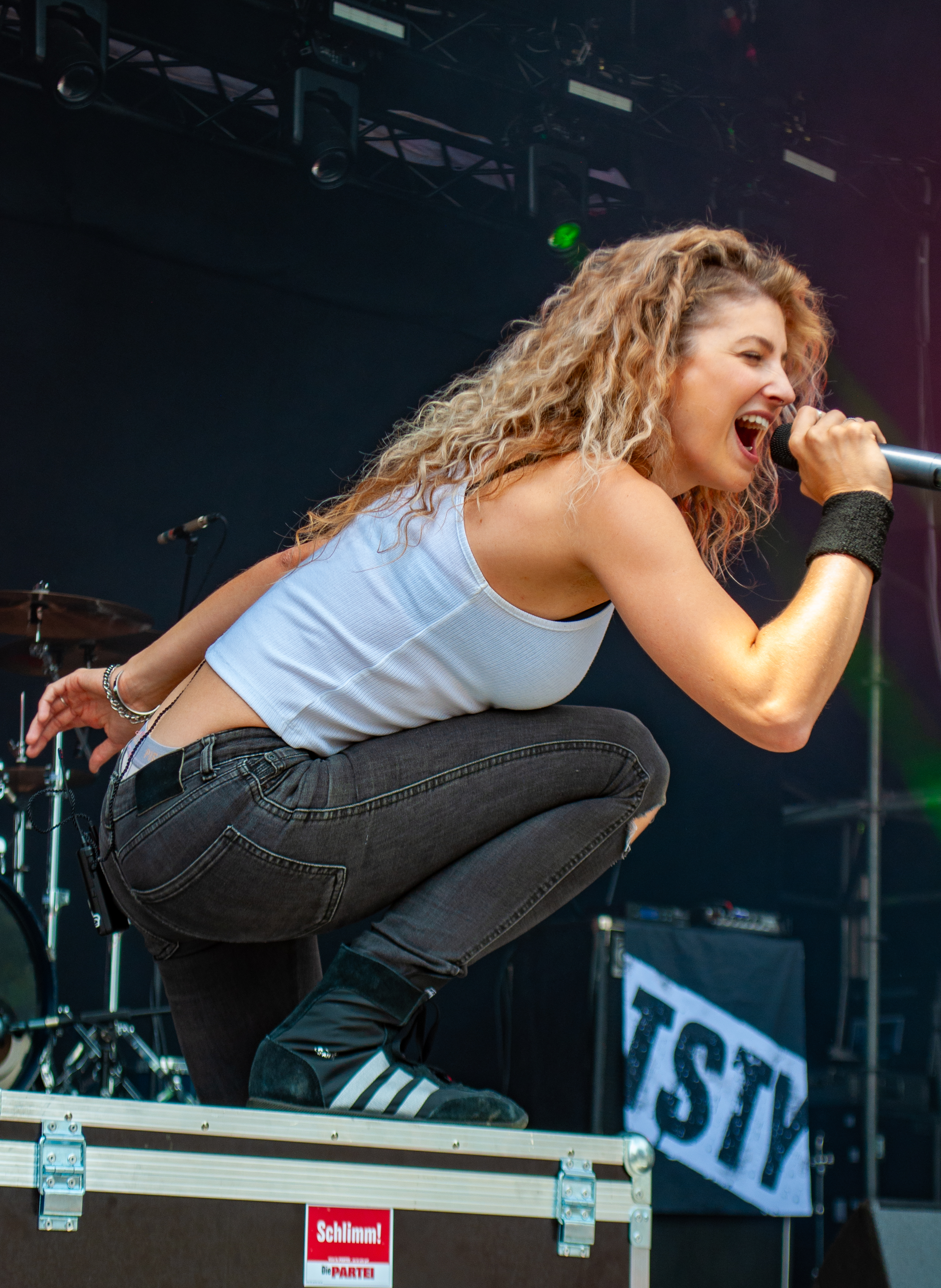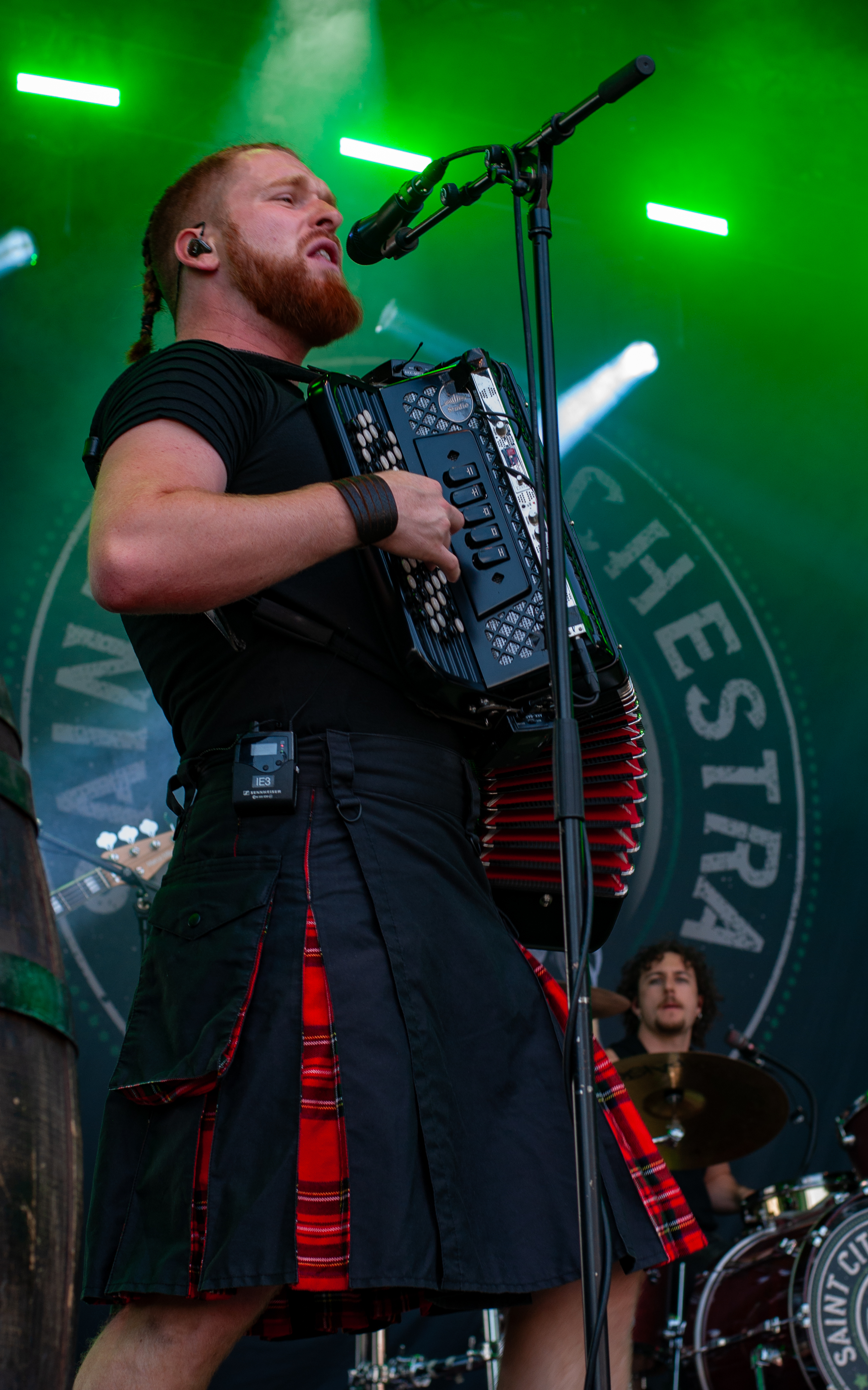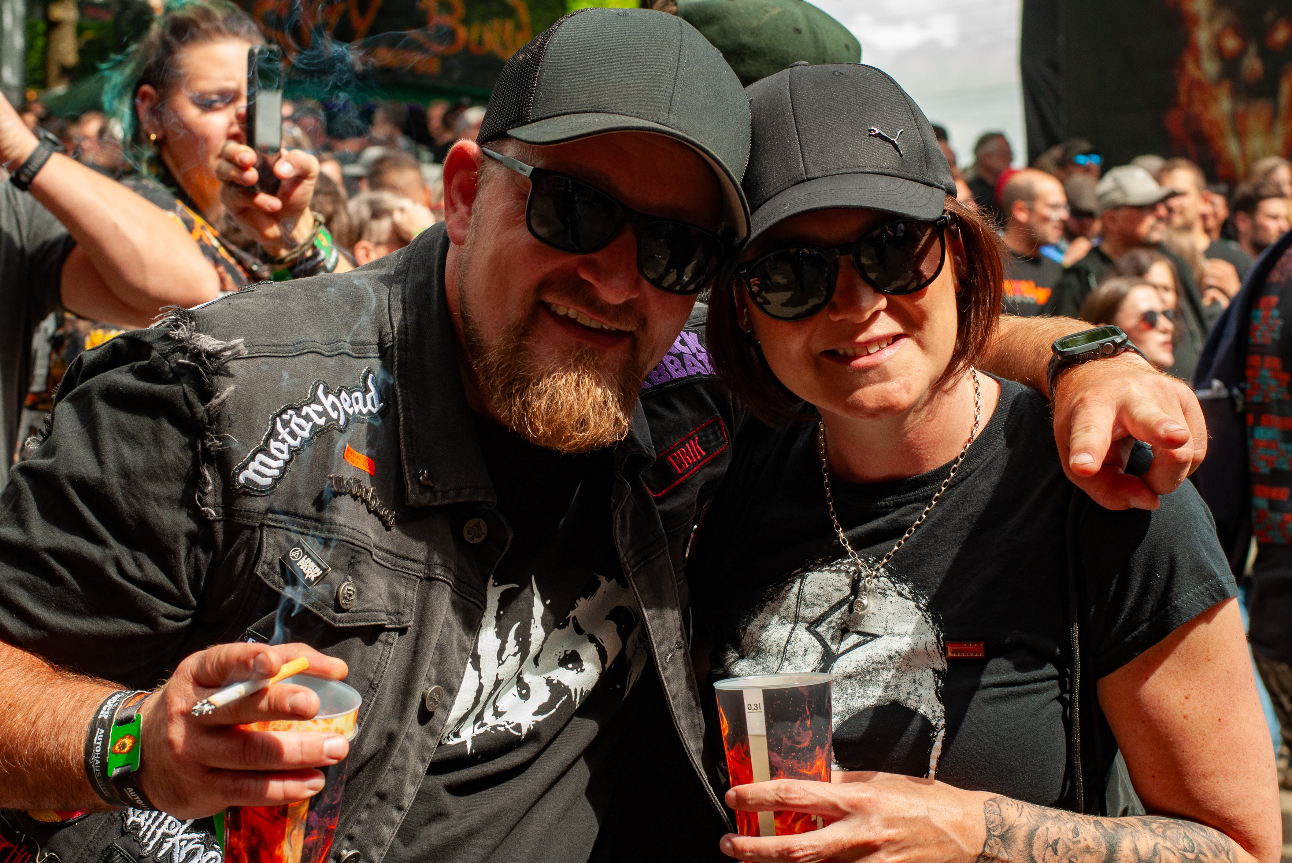 Der zweite Festivaltag startet verhältnismäßig früh und schon mittags kann man am Meet&Greet-Bereich die DONOTS treffen, bevor die Band am See eine Runde joggen geht.. Um 12:30 Uhr ist Zeit für den TOLLROCK-Bandcontest. Über 100 Bands haben sich beworben und heute spielen drei auserwählte Kapellen. Den Auftakt macht die 5-köpfige Punkrockband THE TASTY TRASHPANDAS aus Aachen und bietet melodischen Punk für die Skatehalle. Vor kurzem erschien ihr erster Longplayer „Hope for better“. Weiter geht’s mit BLACK REMAINS. Die rifflastige Rockmusik des Trios überzeugt; die Band kann mit Songs wie „Hey Now“ und „Rock`n`Roll Dancers“ den Contest für sich entscheiden. Die dritte Formation im Wettbewerb heißt UNCROOK und zockt Hard Rock. 2019 haben sie das Album „Years gone by“ rausgebracht. MOON SHOT aus Finnland machen treibenden Alternative Rock mit guten Melodien. Der Bassist Henkka Seppälä war übrigens bei CHILDREN OF BODOM. Die Mucke hat allerdings rein gar nichts mit CIB zu tun, erinnert eher an BIFFY CLYRO oder MUSE. Mich können die Jungs durchaus überzeugen, Songs wie „Yes“ oder "The Power" bleiben echt im Ohr und Sänger Ville Malja agiert auf der Bühne durchaus ausdrucksstark. Obwohl die Mucke ansich gar nicht meinem Beuteschema entsprechen dürfte, läuft seit dem Auftritt MOON SHOTs aktuelle Scheibe nonstop in meinem Auto. Auch die Bands, die am Nachmittag spielen, erhalten auf dem TOLLROCK eine amtliche Spielzeit; die Kvenen spielen beispielsweise grob 70 Minuten. Nervöse 25 Minuten-Slots großer Festivals gibt’s hier nicht. Das SAINT CITY ORCHETRA spielen punkigen Irish Folk und haben gute Laune, eigene Lieder und Cover-Songs wie „Rose Tattoo“ von den DROPKICK MURPHYS im Gepäck. Musikalisch ist die Band aus der Schweiz also ähnlich ausgerichtet, wie FIDDLERS GREEN ab Vortag. Ich will nicht meckern, aber vielleicht wäre bezüglich des Billings eher eine Metal Band passend gewesen (gern auch Death Metal). Aber was solls: SAINT CITY ORCHESTRA, insbesondere die Geigerin Mélodie und Akkordeon-Spieler Gabriel, geben Gas und sind viel in Bewegung. Die Zuhörerschaft schwingt fleißig das Tanzbein.