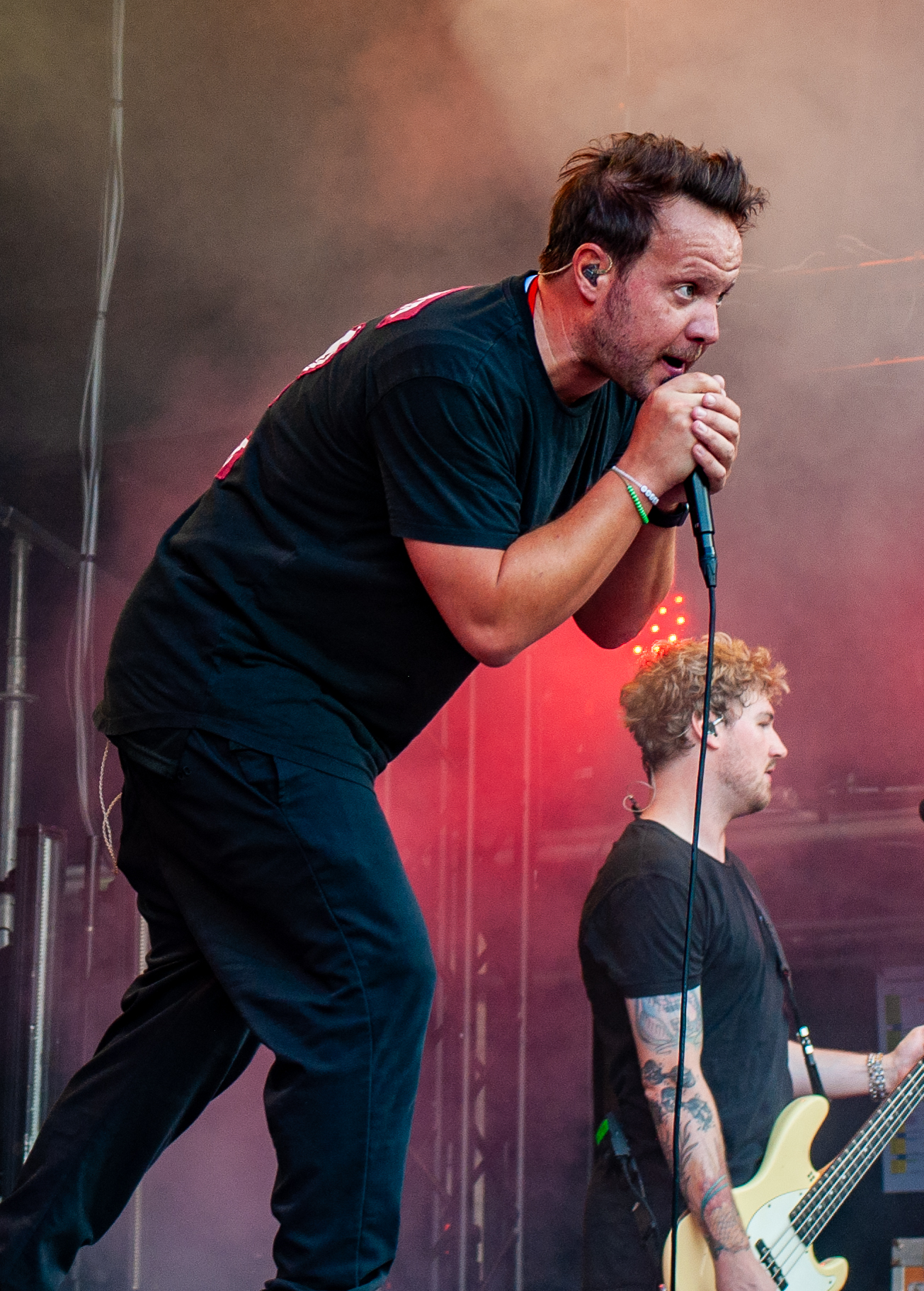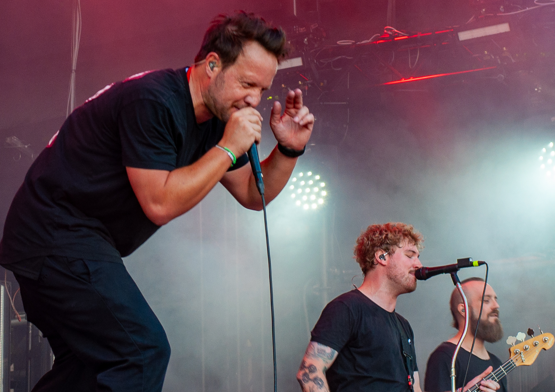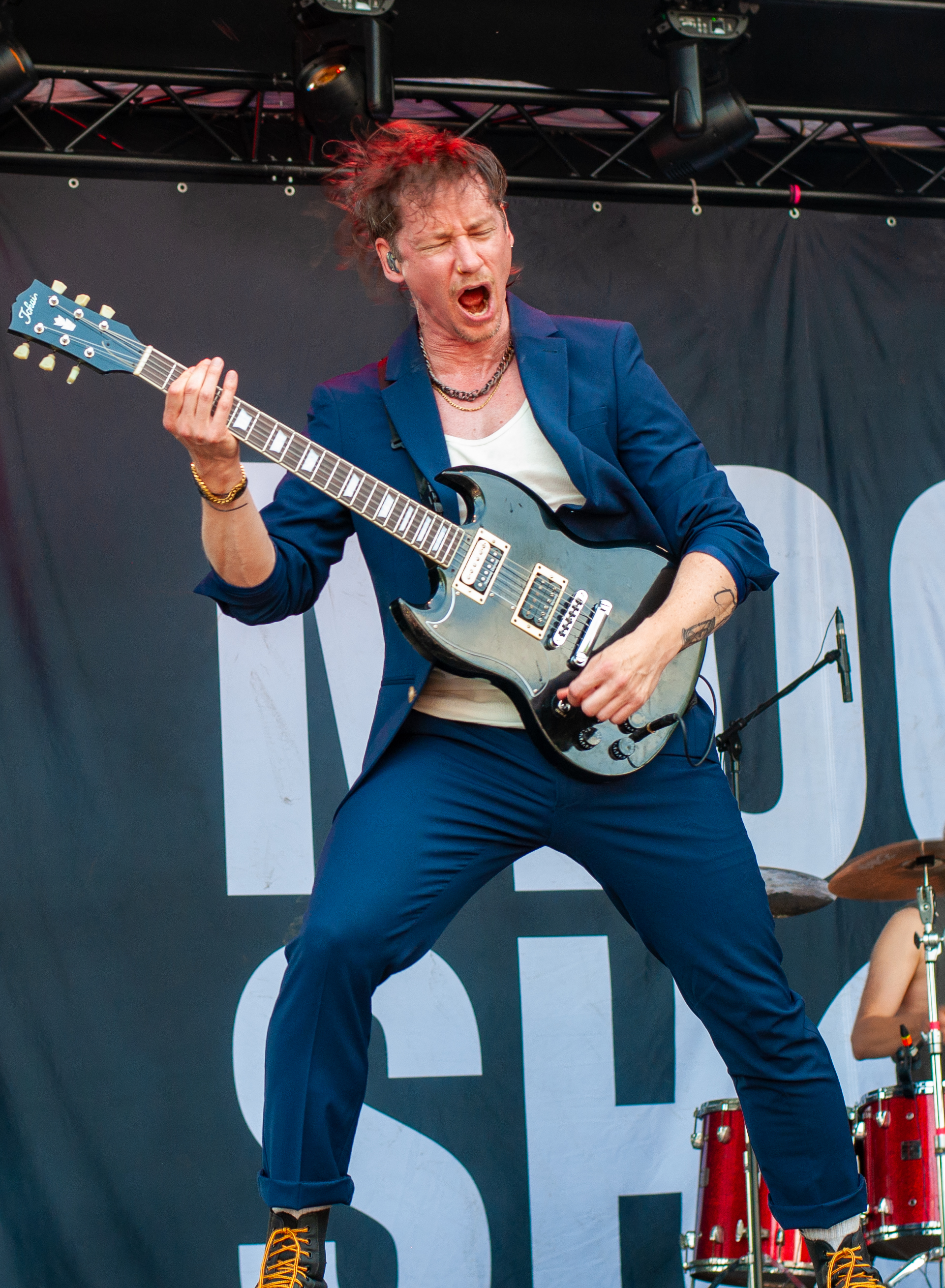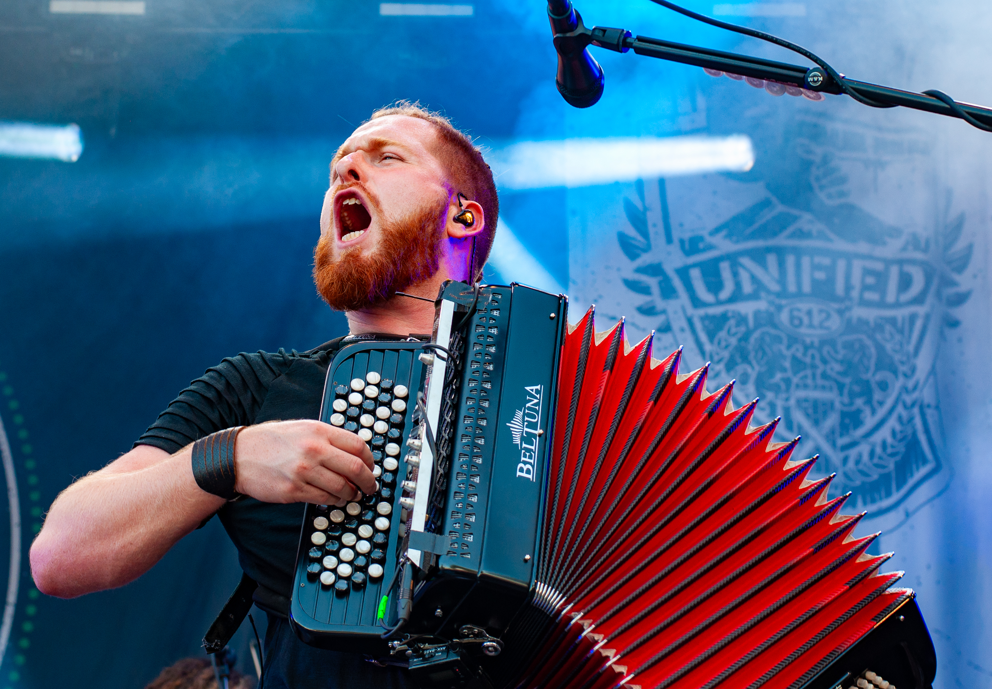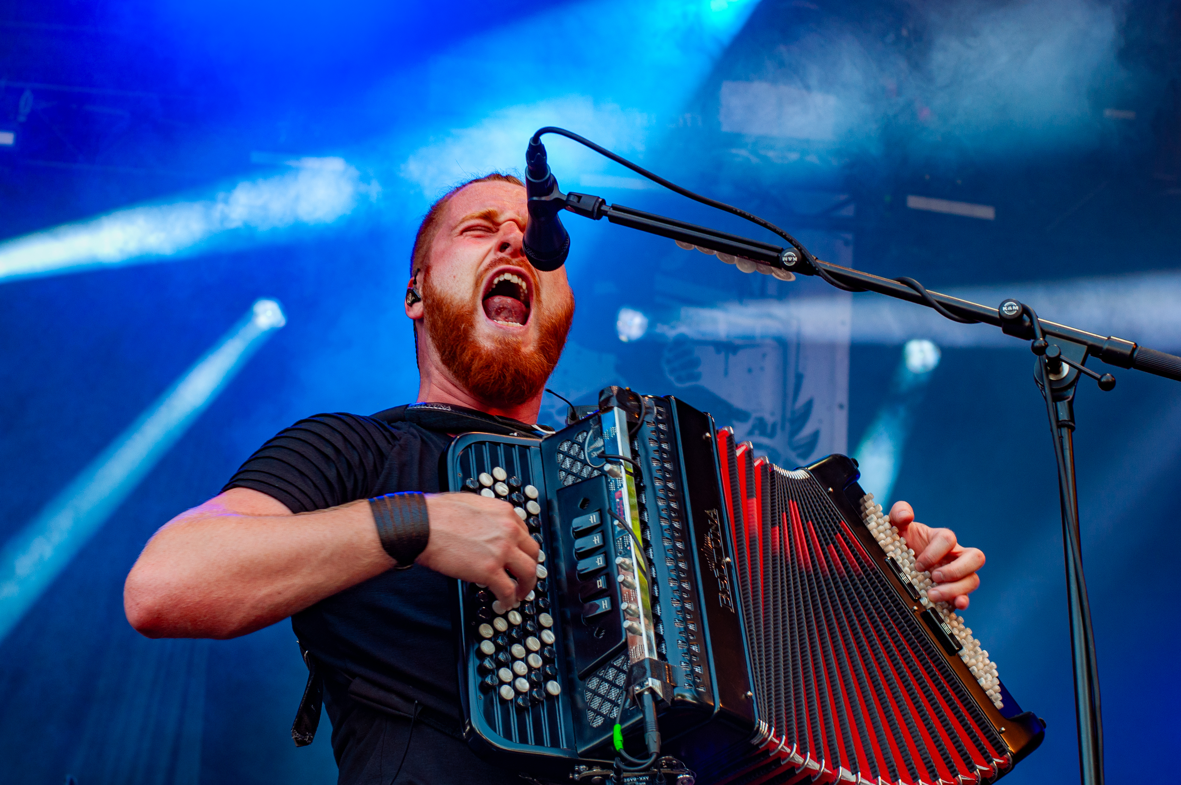 Der zweite Festivaltag startet verhältnismäßig früh und schon mittags kann man am Meet&Greet-Bereich die DONOTS treffen, bevor die Band am See eine Runde joggen geht.. Um 12:30 Uhr ist Zeit für den TOLLROCK-Bandcontest. Über 100 Bands haben sich beworben und heute spielen drei auserwählte Kapellen. Den Auftakt macht die 5-köpfige Punkrockband THE TASTY TRASHPANDAS aus Aachen und bietet melodischen Punk für die Skatehalle. Vor kurzem erschien ihr erster Longplayer „Hope for better“. Weiter geht’s mit BLACK REMAINS. Die rifflastige Rockmusik des Trios überzeugt; die Band kann mit Songs wie „Hey Now“ und „Rock`n`Roll Dancers“ den Contest für sich entscheiden. Die dritte Formation im Wettbewerb heißt UNCROOK und zockt Hard Rock. 2019 haben sie das Album „Years gone by“ rausgebracht. MOON SHOT aus Finnland machen treibenden Alternative Rock mit guten Melodien. Der Bassist Henkka Seppälä war übrigens bei CHILDREN OF BODOM. Die Mucke hat allerdings rein gar nichts mit CIB zu tun, erinnert eher an BIFFY CLYRO oder MUSE. Mich können die Jungs durchaus überzeugen, Songs wie „Yes“ oder "The Power" bleiben echt im Ohr und Sänger Ville Malja agiert auf der Bühne durchaus ausdrucksstark. Obwohl die Mucke ansich gar nicht meinem Beuteschema entsprechen dürfte, läuft seit dem Auftritt MOON SHOTs aktuelle Scheibe nonstop in meinem Auto. Auch die Bands, die am Nachmittag spielen, erhalten auf dem TOLLROCK eine amtliche Spielzeit; die Kvenen spielen beispielsweise grob 70 Minuten. Nervöse 25 Minuten-Slots großer Festivals gibt’s hier nicht. Das SAINT CITY ORCHETRA spielen punkigen Irish Folk und haben gute Laune, eigene Lieder und Cover-Songs wie „Rose Tattoo“ von den DROPKICK MURPHYS im Gepäck. Musikalisch ist die Band aus der Schweiz also ähnlich ausgerichtet, wie FIDDLERS GREEN ab Vortag. Ich will nicht meckern, aber vielleicht wäre bezüglich des Billings eher eine Metal Band passend gewesen (gern auch Death Metal). Aber was solls: SAINT CITY ORCHESTRA, insbesondere die Geigerin Mélodie und Akkordeon-Spieler Gabriel, geben Gas und sind viel in Bewegung. Die Zuhörerschaft schwingt fleißig das Tanzbein.