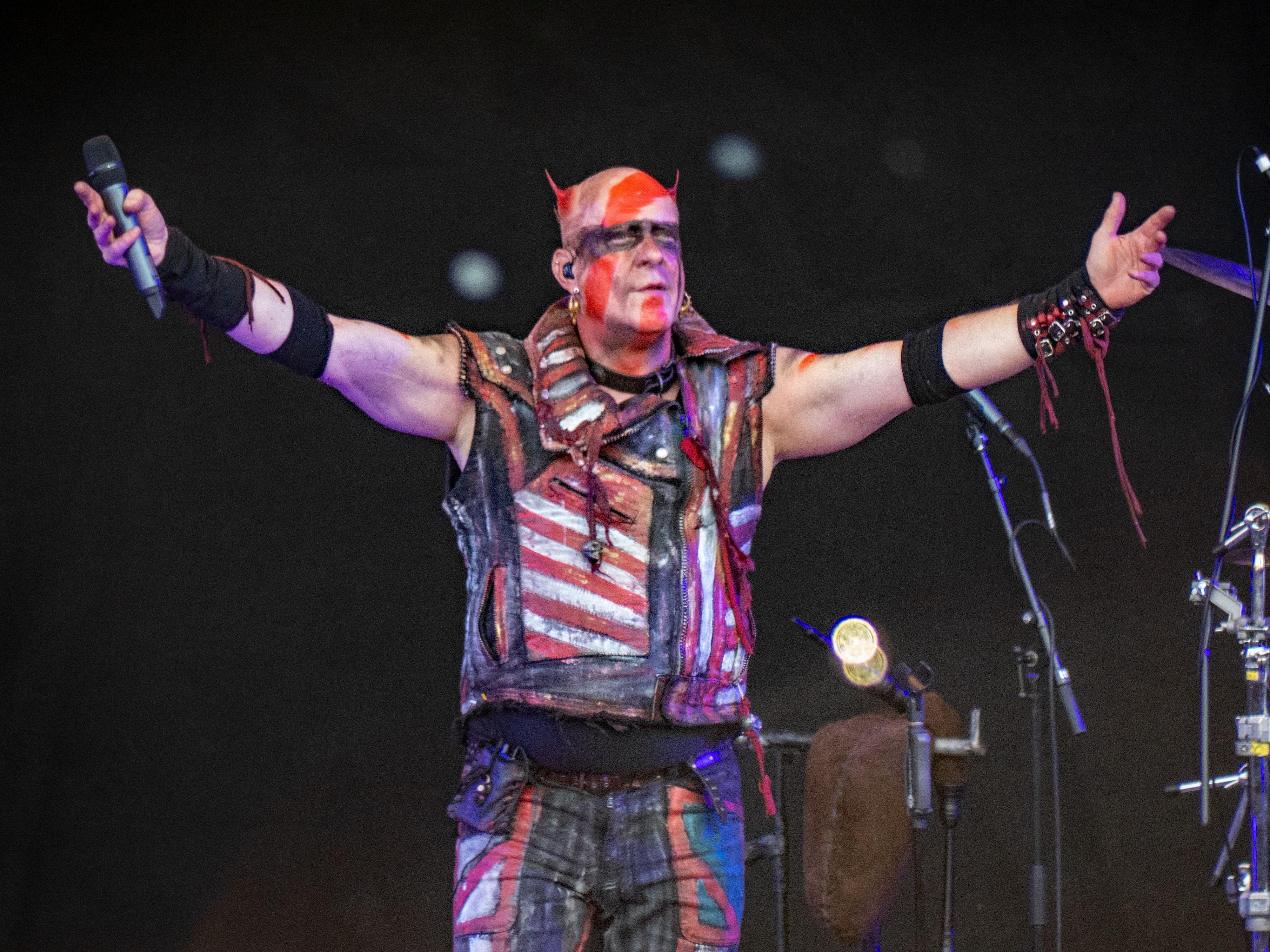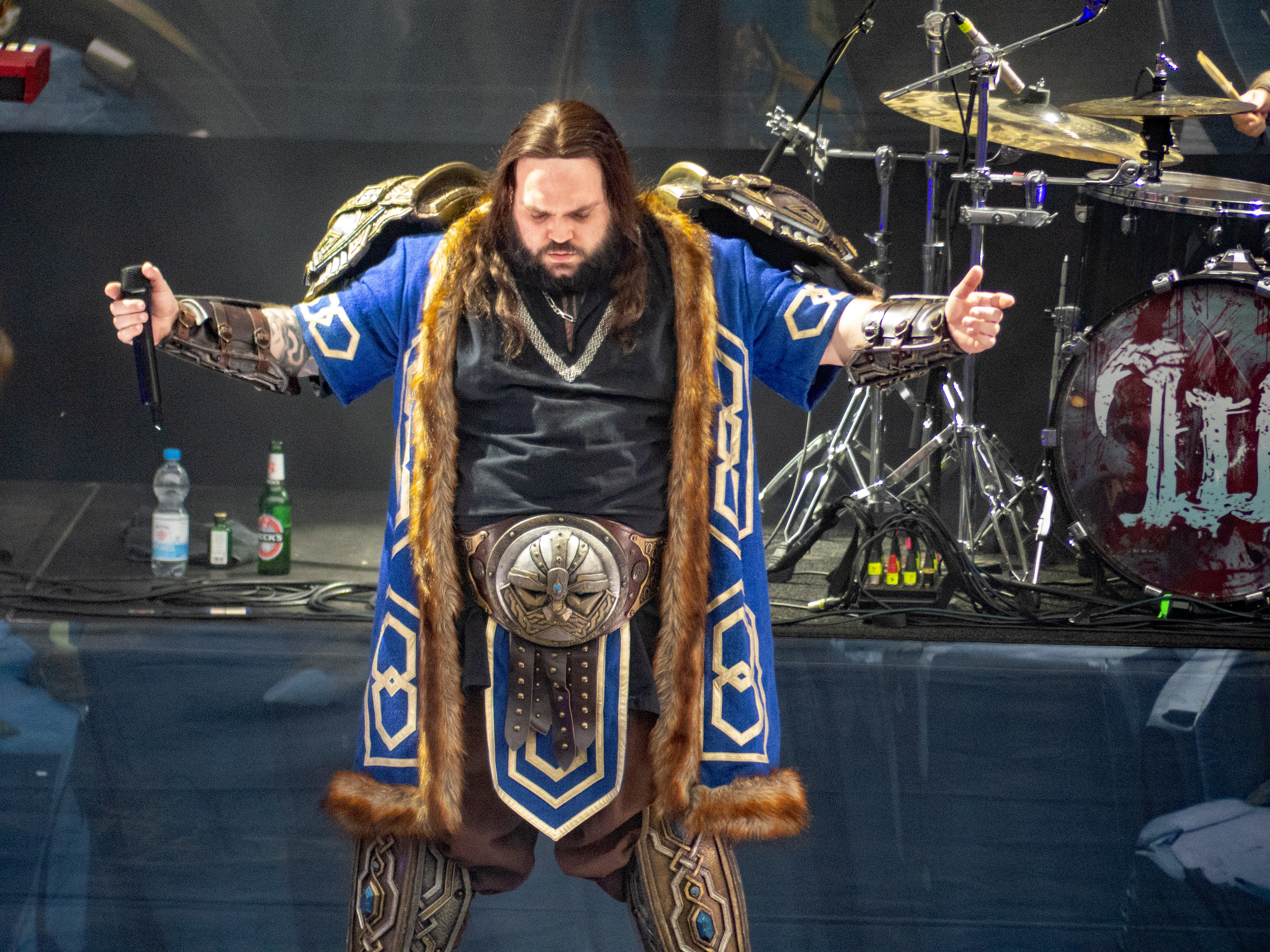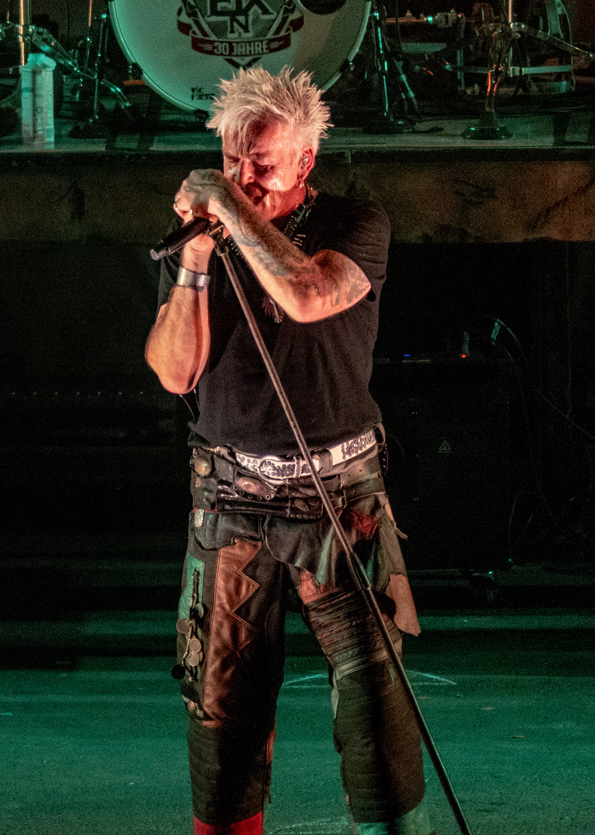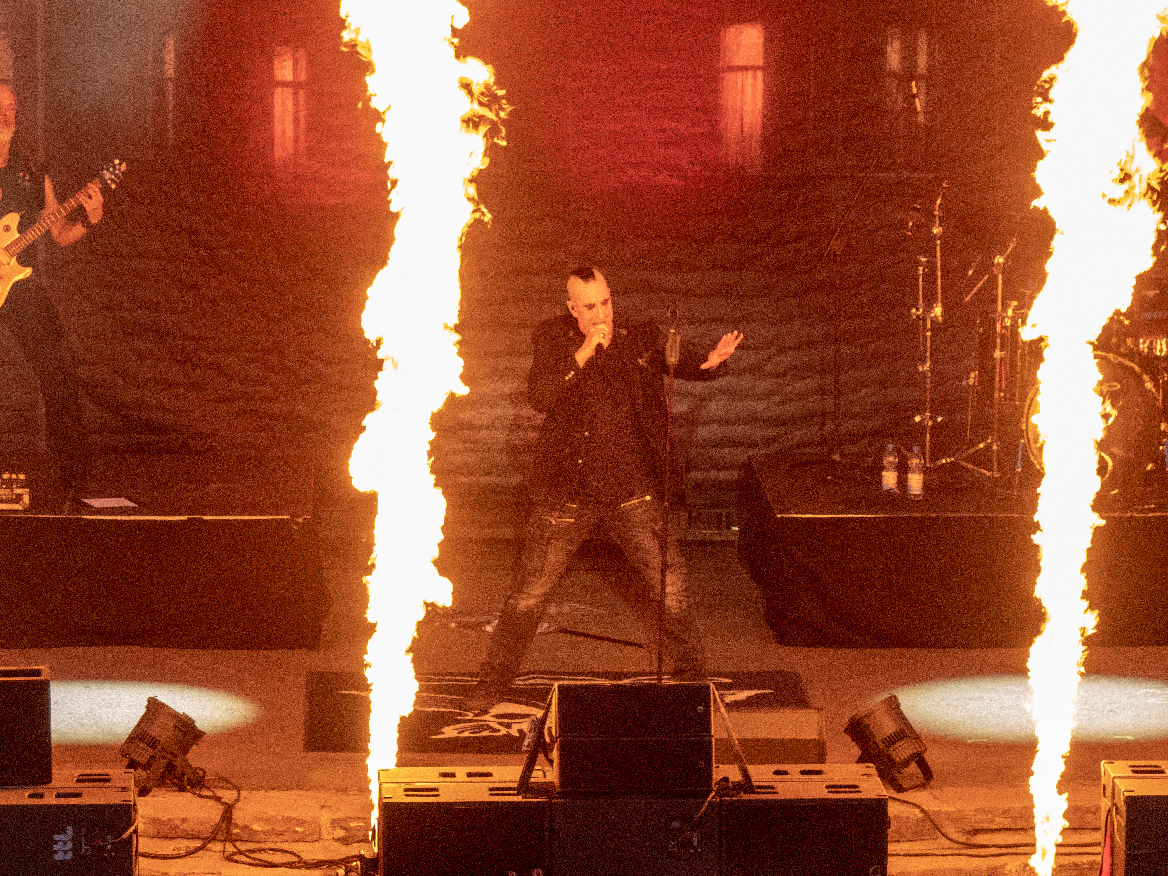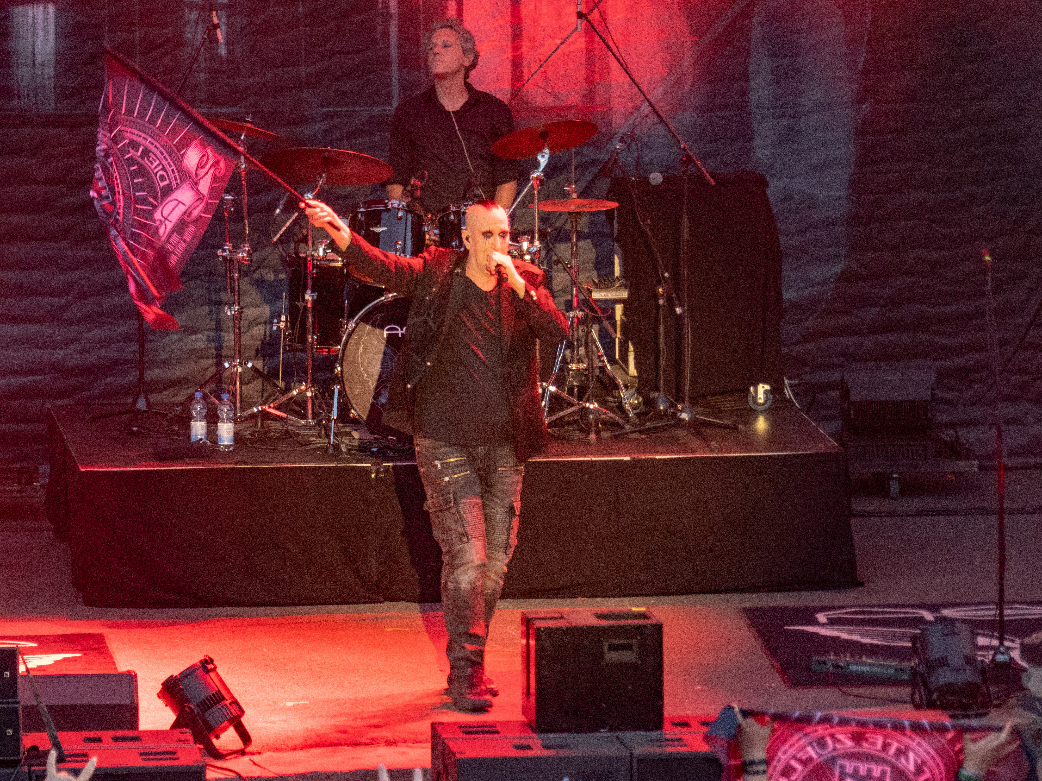 Mit ASP schließlich wurde es musikalisch etwas dunkler auf der Bühne. Die Band startete mit „Raise Some Hell Now” – ein Wunsch, dem das Publikum nur gar zu gerne entsprach. Sänger Alexander Spreng, der agiler denn je wirkte, nutze die Gelegenheit, Danksagung und Songankündigung zu verbinden: „Schön, dass wir eingeladen wurden, vielen Dank dafür! Schön, dass hier auch Platz ist für mich… den `Fürst der Finsternis´!“ – der dann auch prompt musikalisch folgte. Das Set war garniert mit Pyrotechnik und umfasste etliche Klassiker wie „Schwarzes Blut“, „Ich Bin Ein Wahrer Satan“, „Denn Ich Bin Der Meister“ und natürlich „Ich Will Brennen“, die vom Publikum gebührend gefeiert wurden. Weniger feiertauglich, aus offensichtlichen Gründen aber geradezu verpflichtend war obendrein das ruhige „Loreley“ – wo, wenn nicht hier, hätte es besser gepasst?