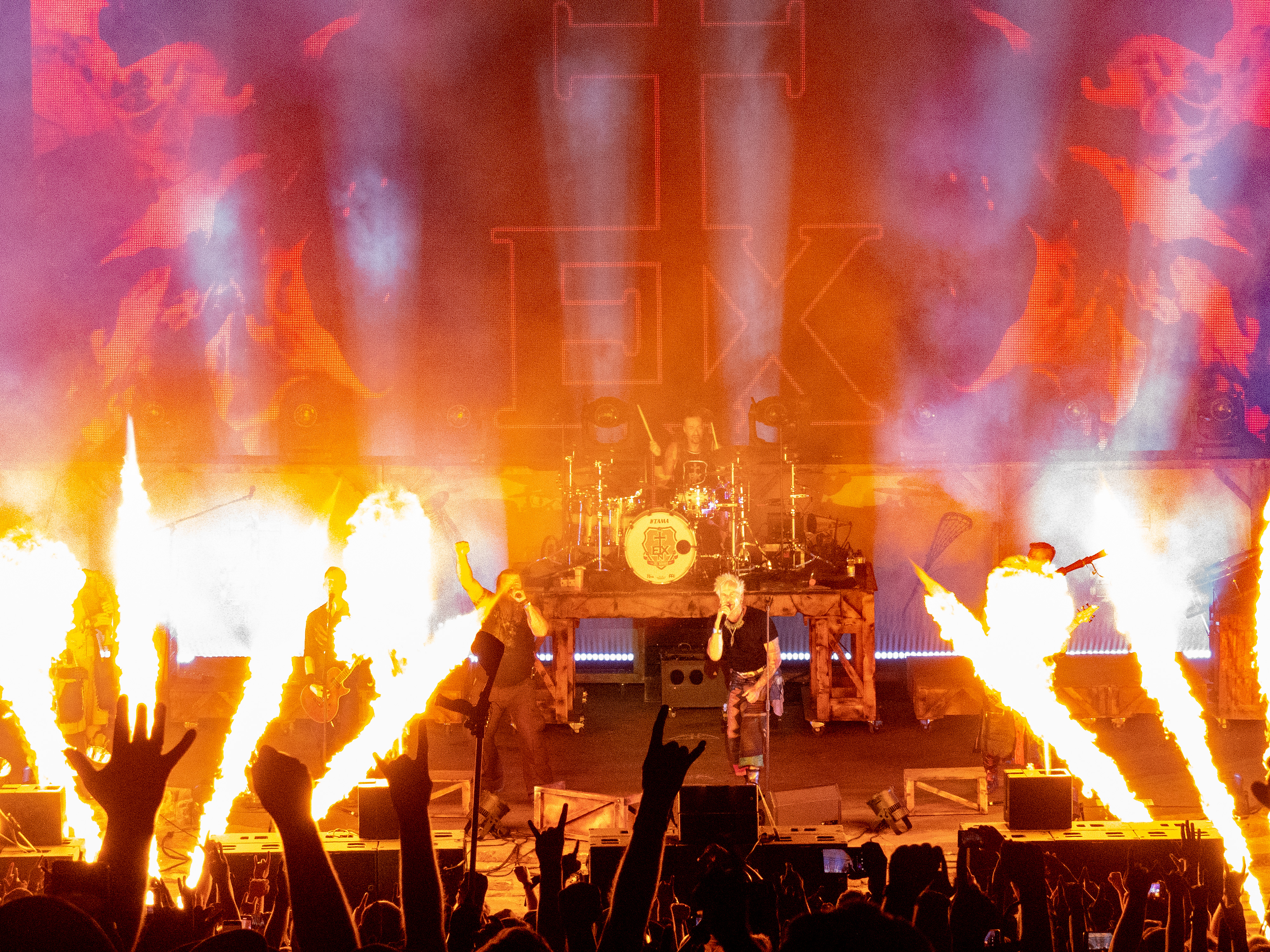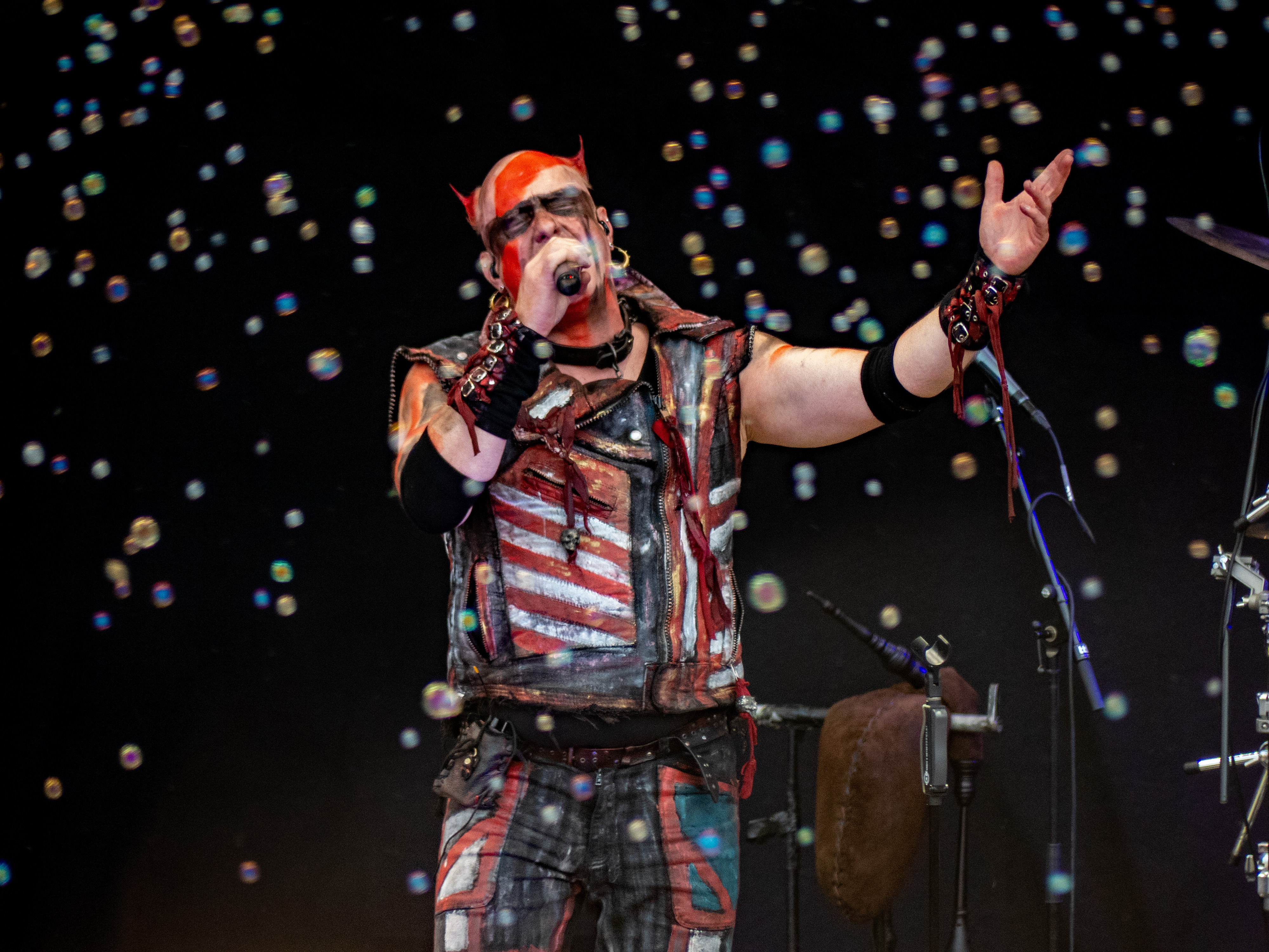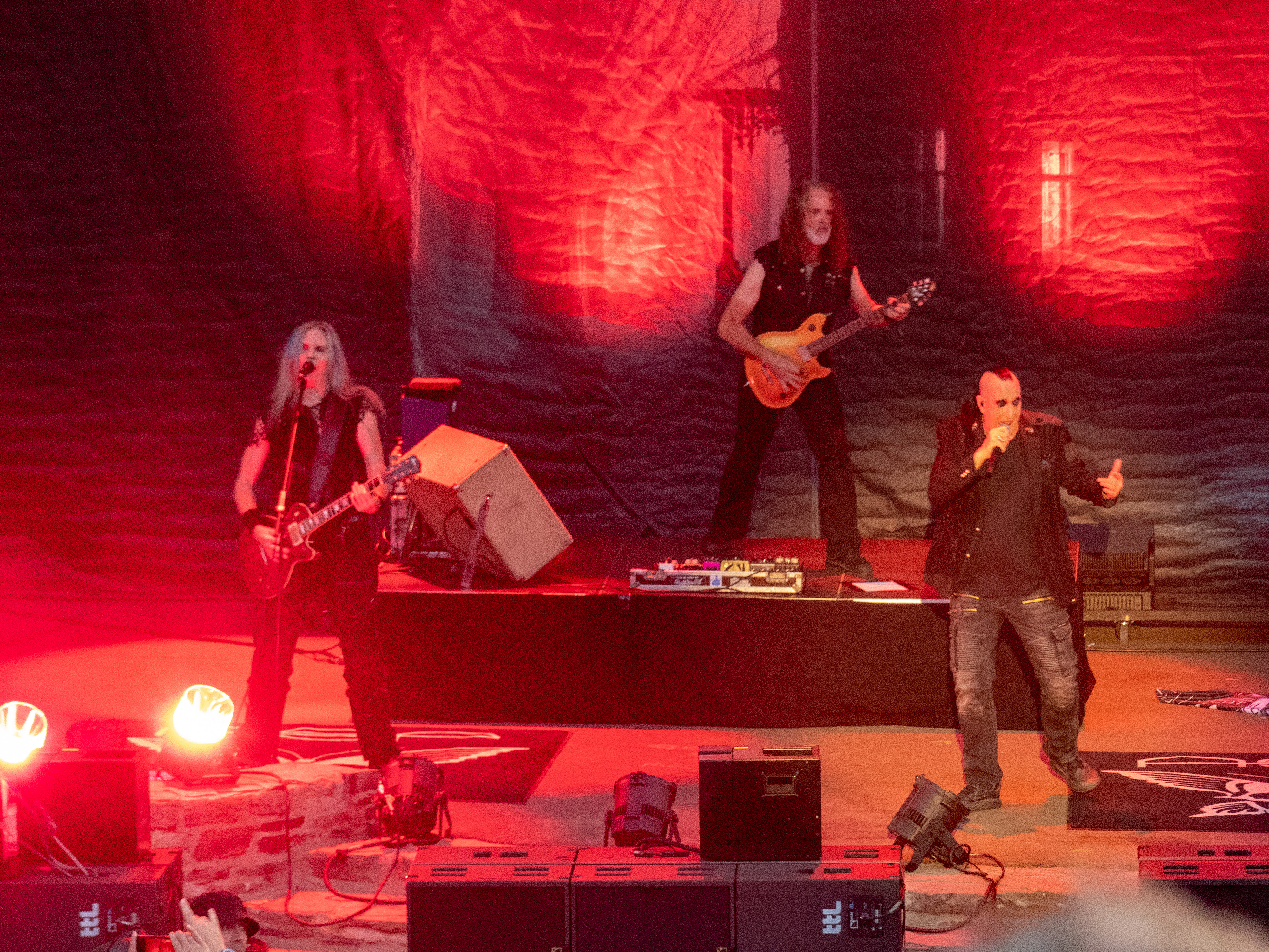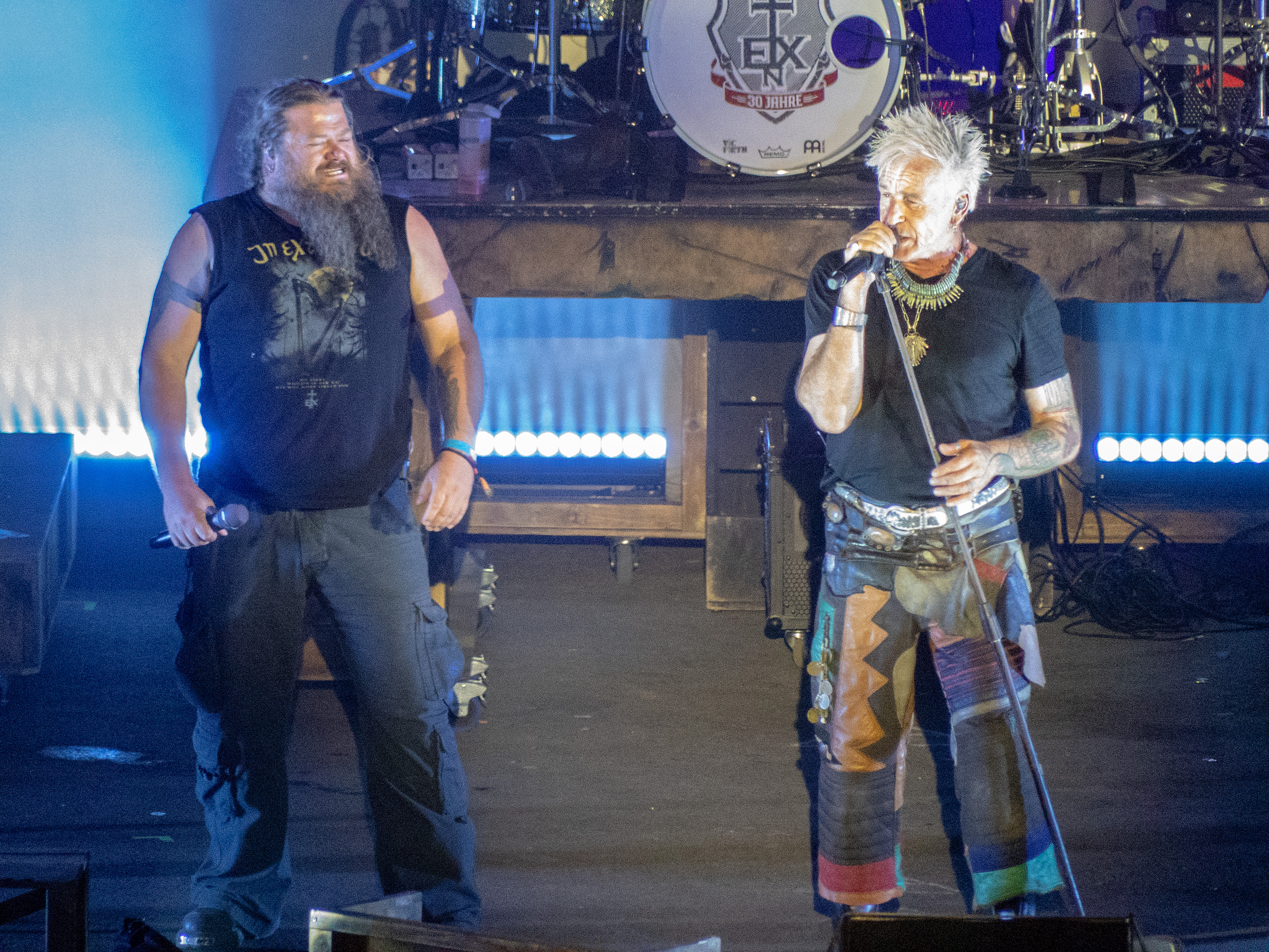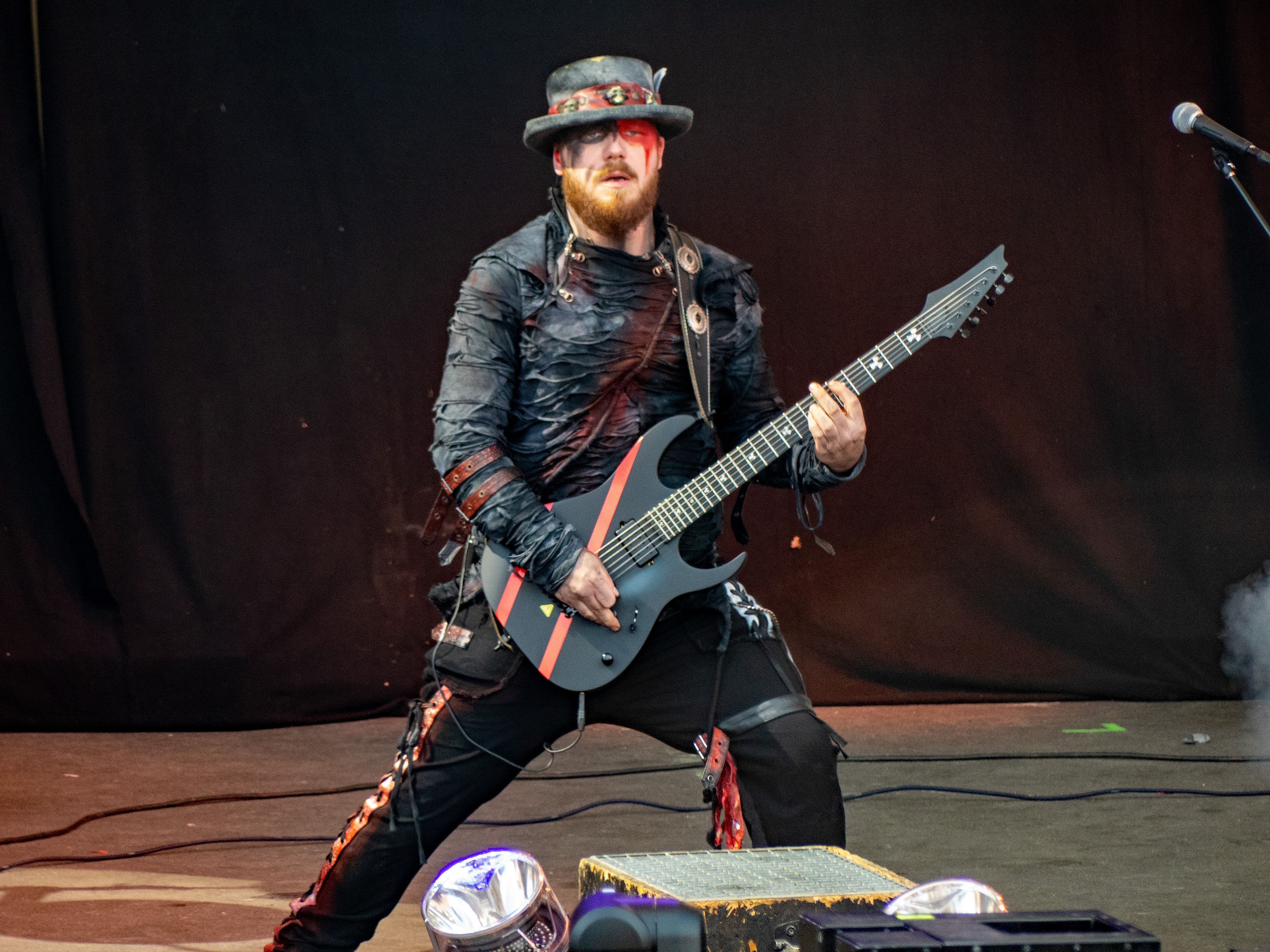 Mit ASP schließlich wurde es musikalisch etwas dunkler auf der Bühne. Die Band startete mit „Raise Some Hell Now” – ein Wunsch, dem das Publikum nur gar zu gerne entsprach. Sänger Alexander Spreng, der agiler denn je wirkte, nutze die Gelegenheit, Danksagung und Songankündigung zu verbinden: „Schön, dass wir eingeladen wurden, vielen Dank dafür! Schön, dass hier auch Platz ist für mich… den `Fürst der Finsternis´!“ – der dann auch prompt musikalisch folgte. Das Set war garniert mit Pyrotechnik und umfasste etliche Klassiker wie „Schwarzes Blut“, „Ich Bin Ein Wahrer Satan“, „Denn Ich Bin Der Meister“ und natürlich „Ich Will Brennen“, die vom Publikum gebührend gefeiert wurden. Weniger feiertauglich, aus offensichtlichen Gründen aber geradezu verpflichtend war obendrein das ruhige „Loreley“ – wo, wenn nicht hier, hätte es besser gepasst?