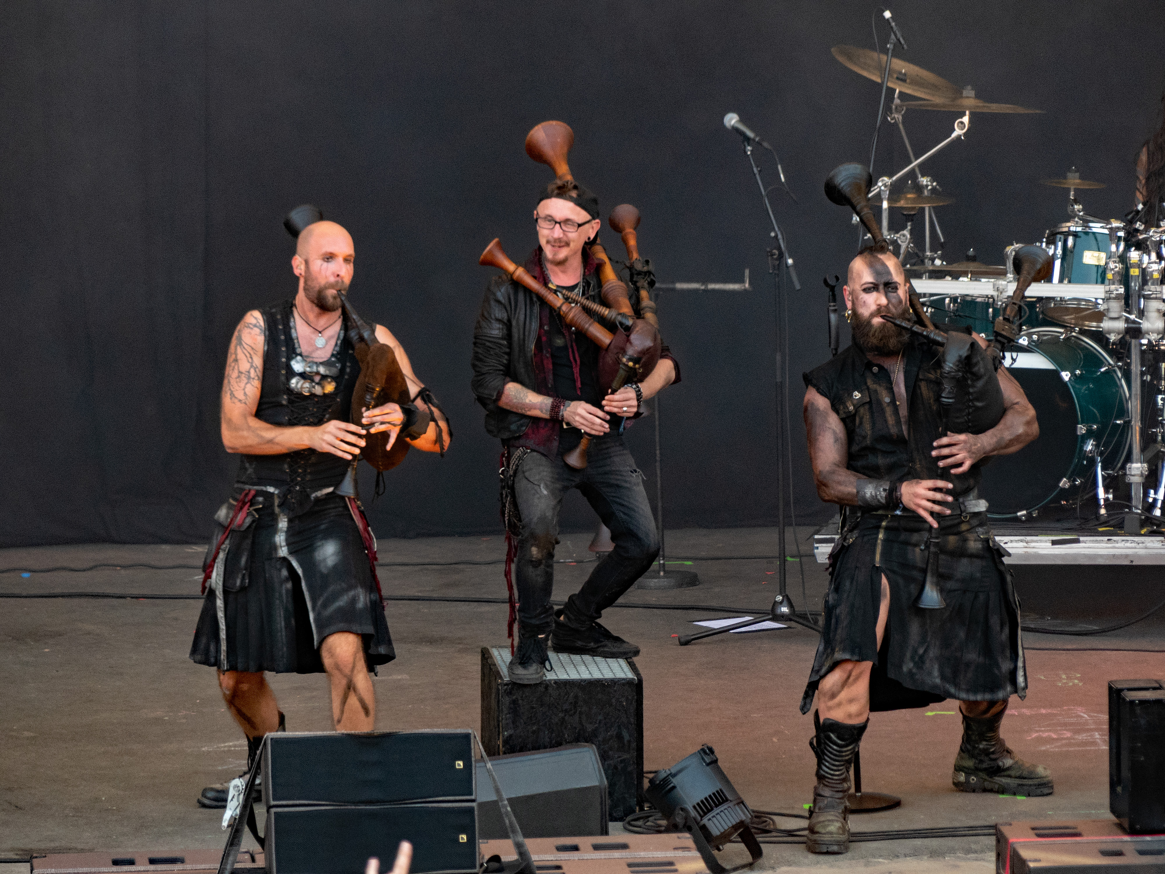 Es folgte die erste Umbaupause und damit die erste Gelegenheit zur Stärkung oder zum Shopping, ohne in der Zwischenzeit etwas zu verpassen, bevor es um 14:50 Uhr weiterging mit TANZWUT. Die starteten mit „Feuer In Der Nacht“, brachten ihre Freude darüber zum Ausdruck, schon so lange und immer mal wieder mit den Kollegen von IN EXTREMO die Bühnen der Welt unsicher machen zu dürfen und heizten dem Publikum mit einigen Klassikern ein, bei denen natürlich auch „Bis Zum Meer“, „Freitag der 13.“ und „Pack“ nicht fehlen durften. Bei „Pack“ hatten die Spielleute zudem einen Überraschungsgast im Gepäck: Luzi das L (Ex-SALTATIO MORTIS) am Dudelsack war hier mit von der Partie, bevor man die Bühne an das Umbauteam und anschließend an DRITTE WAHL übergab, die um 15:55 Uhr loslegten. Mit diesen wechselten die Klänge vom Mittelalter in punkrockigere Gefilde, was beim Publikum aber gleichermaßen gut ankam: Songs wie „Wo Ist Mein Preis?“, „Zeit Bleib Stehen!“, „Zusammen“ und ganz besonders „Fliegen“ wurden von der inzwischen deutlich angewachsenen Menge vor der Bühne lautstark mitskandiert.