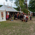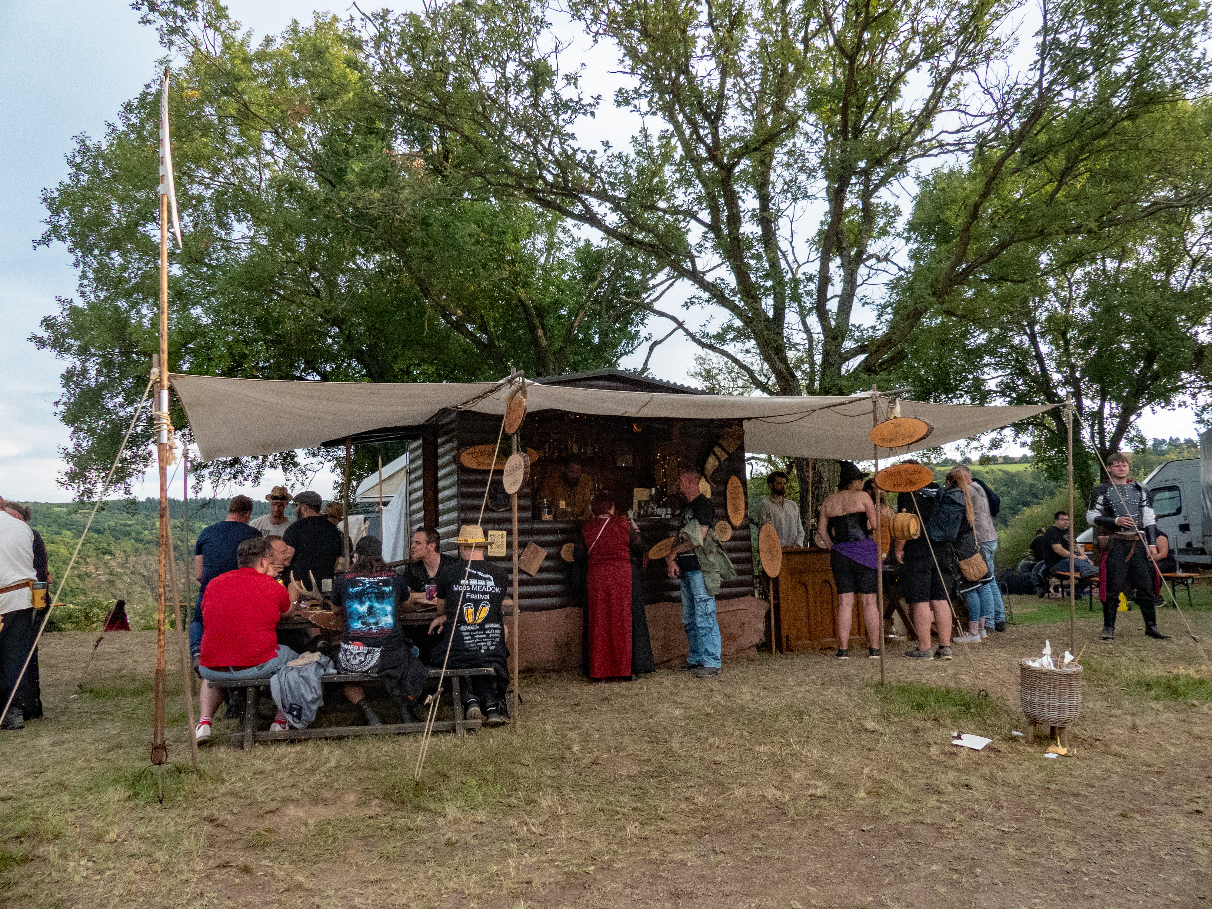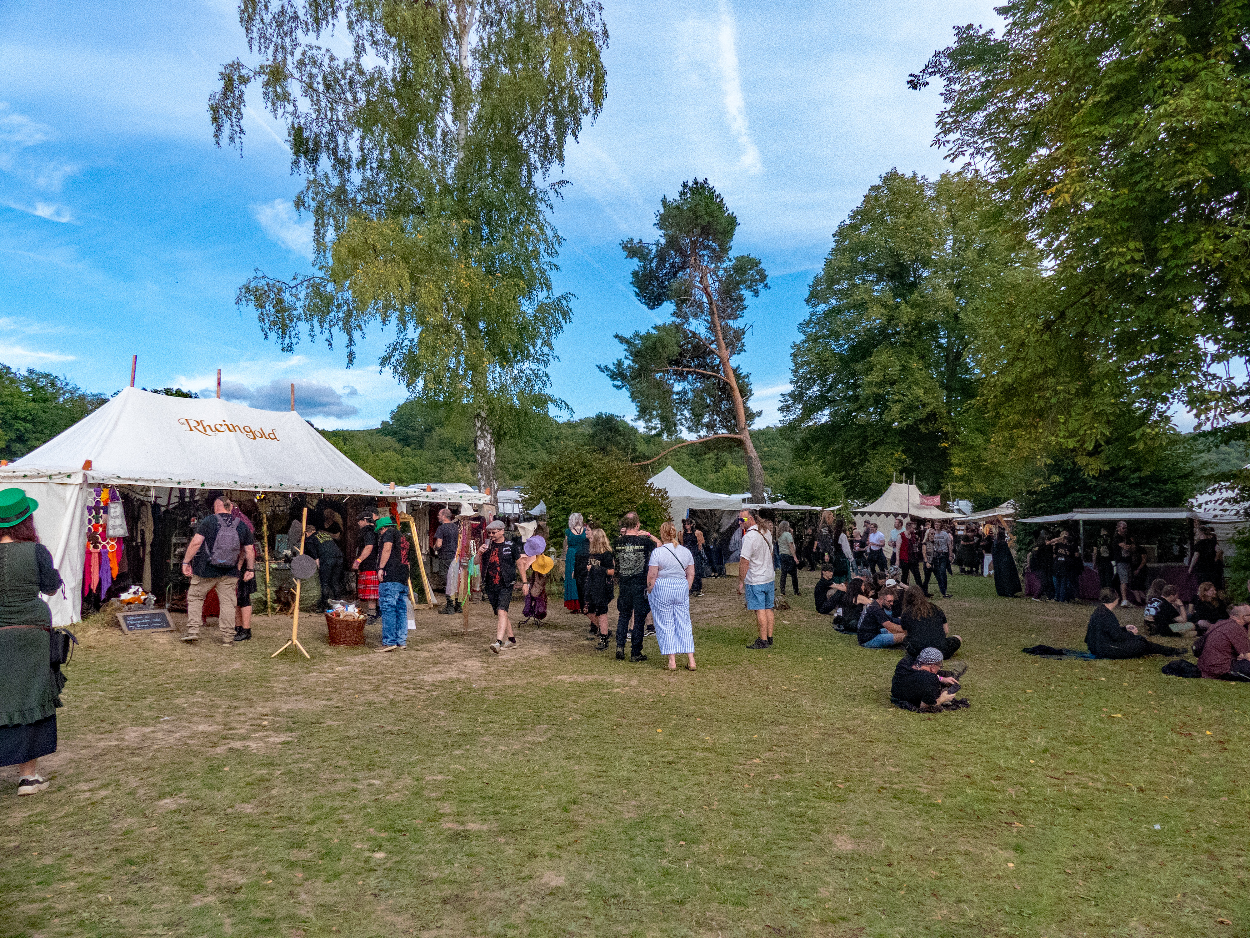 Wer zwischen den einzelnen Konzerten etwas Ruhe oder auch schlicht etwas Stärkung brauchte, suchte den ein Stück abseits des Konzertgeländes gelegenen Mittelaltermarkt und die dortigen Tavernen auf. Für musikalische Unterhaltung war auch dort gesorgt, denn am zentralen Platz, um den sich die Essens- und Getränkestände scharten, befand sich die Marktbühne, auf der am Samstag FABULA gastierten. Nebenan luden die Mittelaltermarktstände mit allerlei Gewandung, Schmuck, Waffen, Geschenkartikeln oder praktischen Dingen wie Seifen zum Flanieren ein. Selbst für Bildung gab es auf dem Gelände Platz, denn sogar ein Museum war hier zu finden: 30 Jahre Bandgeschichte wollen schließlich dokumentiert werden, weswegen die Loreley zu diesem Zwecke drei Festivaltage lang das „In Extremo-Museum“ beherbergte.