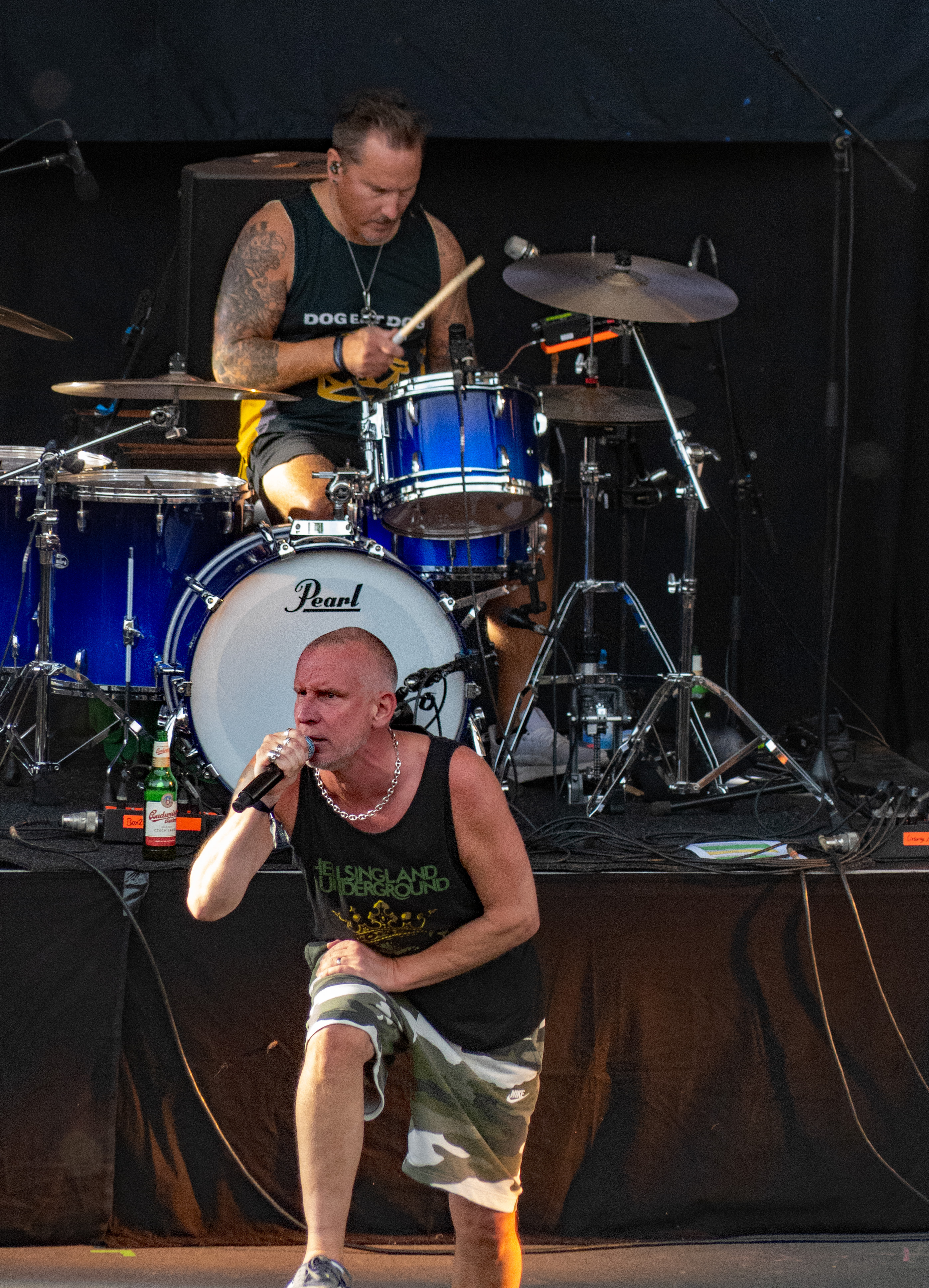Nachdem an den ersten beiden Tagen das Wetter eher durchwachsen gewesen war, startete der Festivalsamstag als herrlicher Spätsommertag bei strahlendem Sonnenschein um 11:30 Uhr, als die ersten Besucher aufs Gelände zu strömen begannen, erst mal gemütlich umherbummelten oder bereits vor der Bühne Aufstellung nahmen, um sich die besten Plätze zu sichern. Los ging es um 13:45 Uhr mit RAUHBEIN, die mit dem selbstbetitelten „Rauhbein“ den Festivaltag eröffneten. Mit „Adrenalin“ ließ man den Pegel desselben beim Publikum rasch ansteigen und sorgten mit Songs wie dem feuchtfröhlichen „Laute Und Schnelle Musikkapelle“ und „Auf die Freundschaft“ für Stimmung.