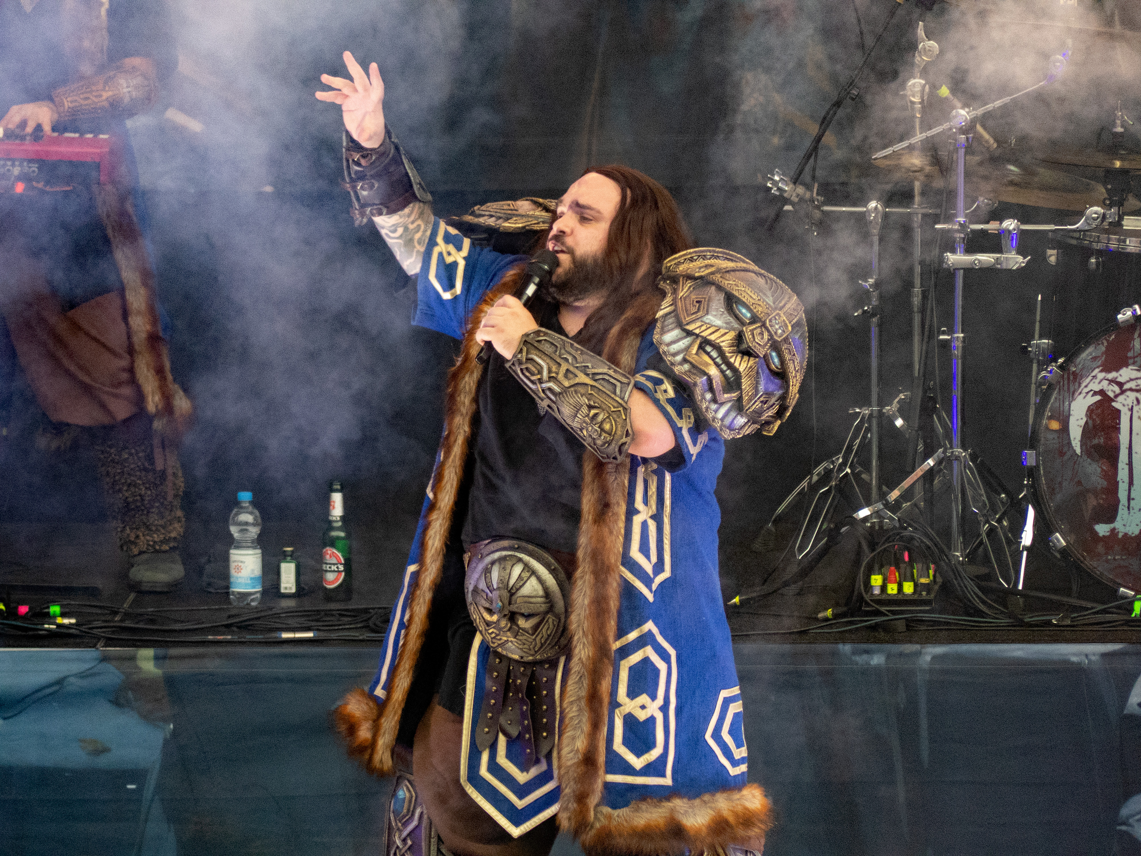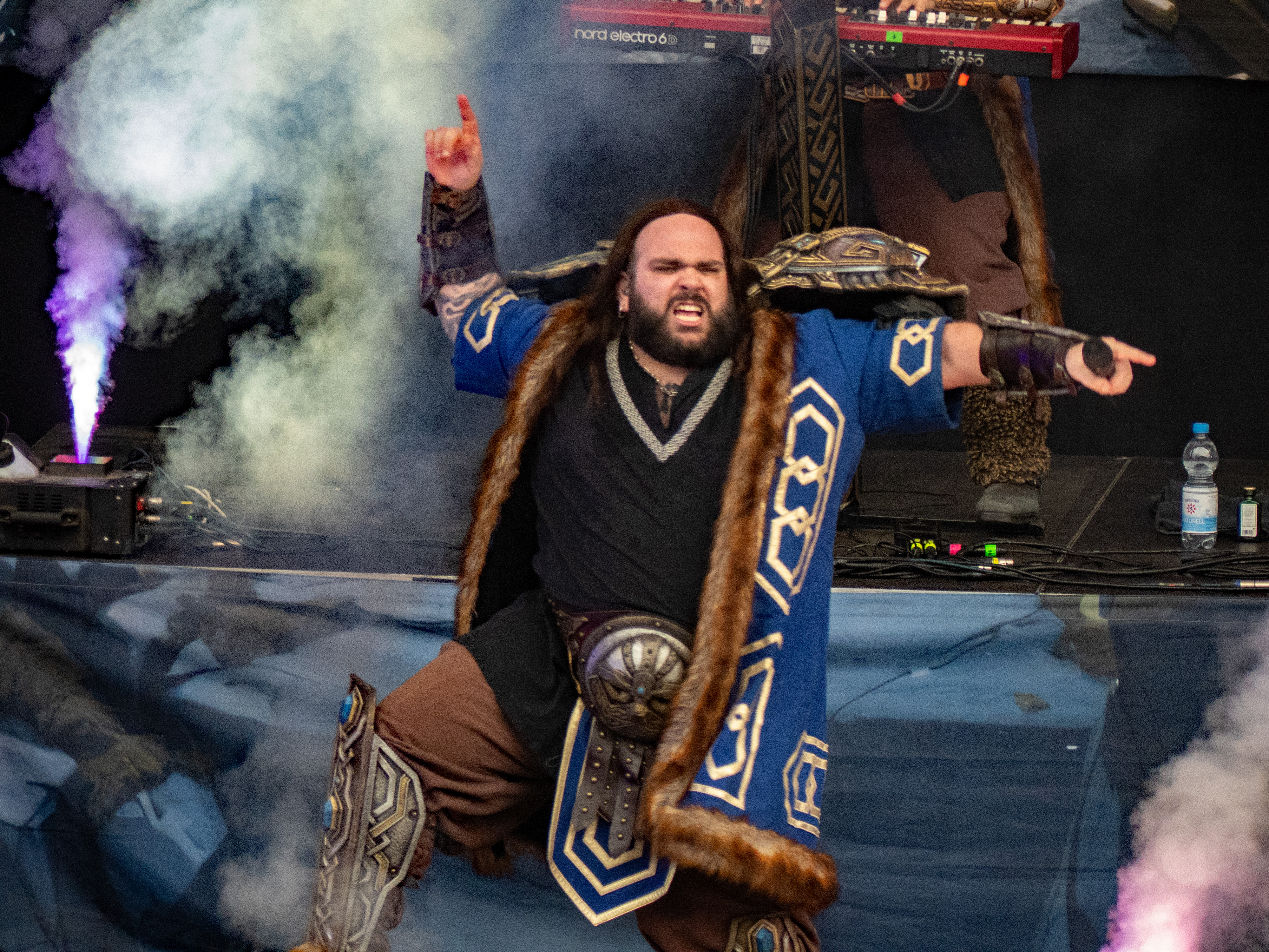 Wer weniger an Historischem als an harten Klängen interessiert war, den zog es dagegen vor die Bühne zu CLAWFINGER. Die Crossover-Pioniere aus Skandinavien brachten mit Songs wie „The Price We Pay“, „Biggest & The Best“, „The Truth” und „Do What I Say” das härteste Programm des Tages auf die Loreley und das Publikum zum Headbangen. Um 18:25 Uhr schließlich war es Zeit für die Zwergen-Metaller von WIND ROSE. Die Italiener haben sich mit ihrer Fantasy-Ästhetik mittlerweile eine beträchtliche Anhängerschaft erspielt, gastierten unter anderem auf dem diesjährigen Summer Breeze und bei Wacken. Das machte sich bemerkbar: „Diggy Diggy Hole“, das bislang bekannteste Lied der Band, wurde geradezu frenetisch gefeiert und den größeren Teil des Auftritts über wurden in der Menge vor der Bühne zu Songs wie „Rock and Stone“, „Drunken Dwarves“ und „Mine Mine Mine!“ fröhlich Plastikspitzhacken geschwenkt – wie sich das für ein aufmerksames Zwergenheer gehört. Nur am Ende des Sets wurde es kurz etwas ernster, als Sänger Francesco Cavalieri erklärte, im nachfolgenden „I Am The Mountain“ gehe es um Depressionen, an denen er auch selber leide. Die Stimmung im Publikum jedoch blieb dessen ungeachtet bestens und auch Cavalieri selbst schien an diesem Nachmittag blendender Laune.