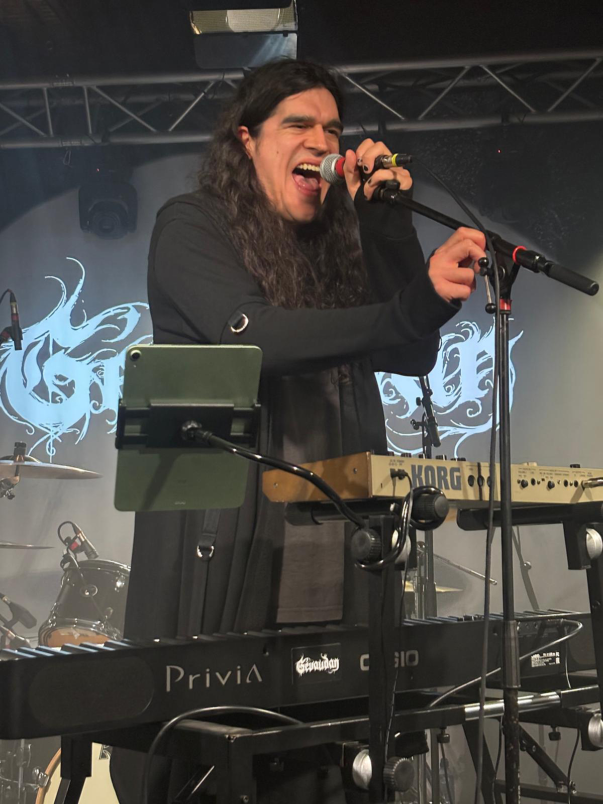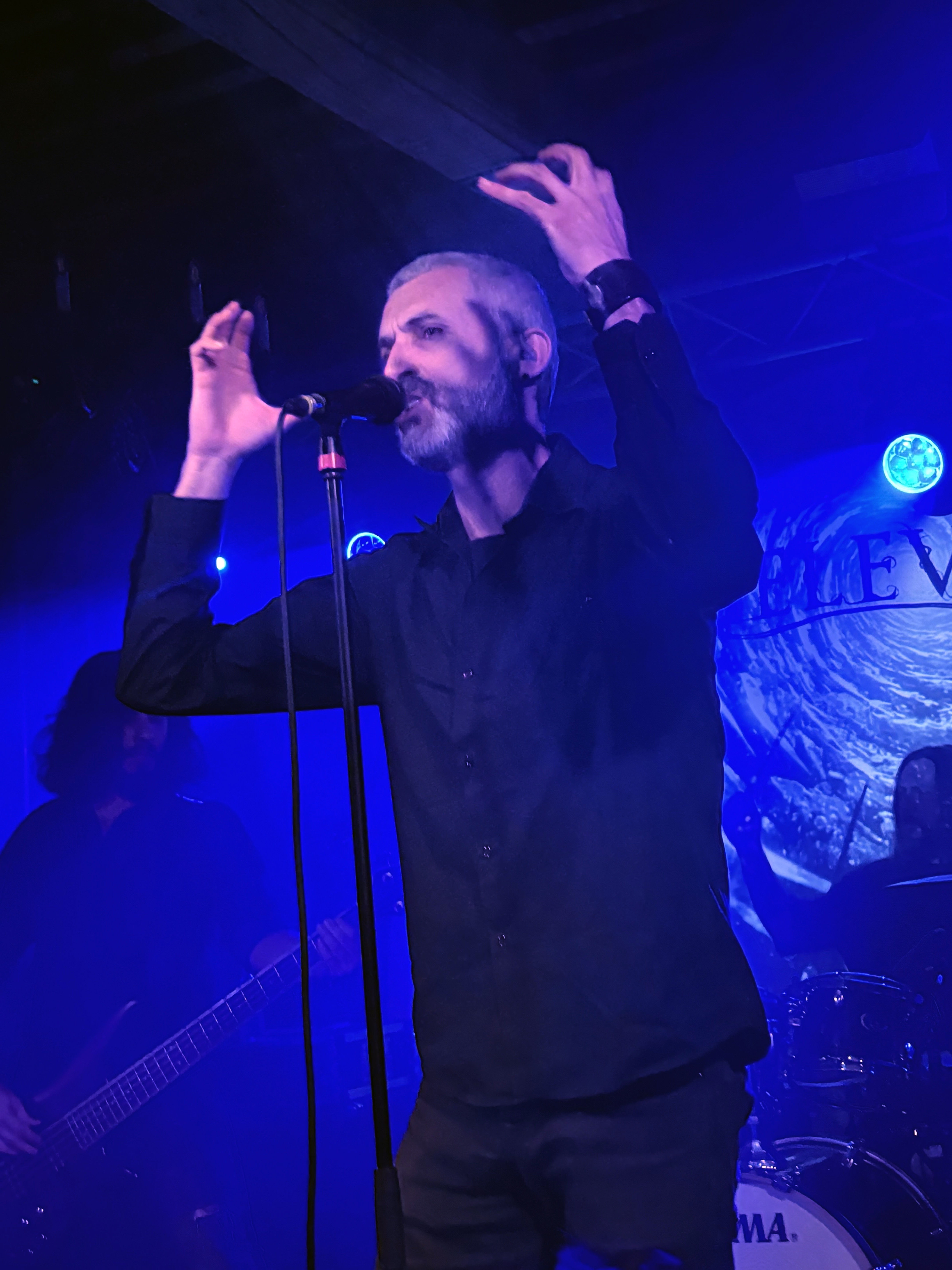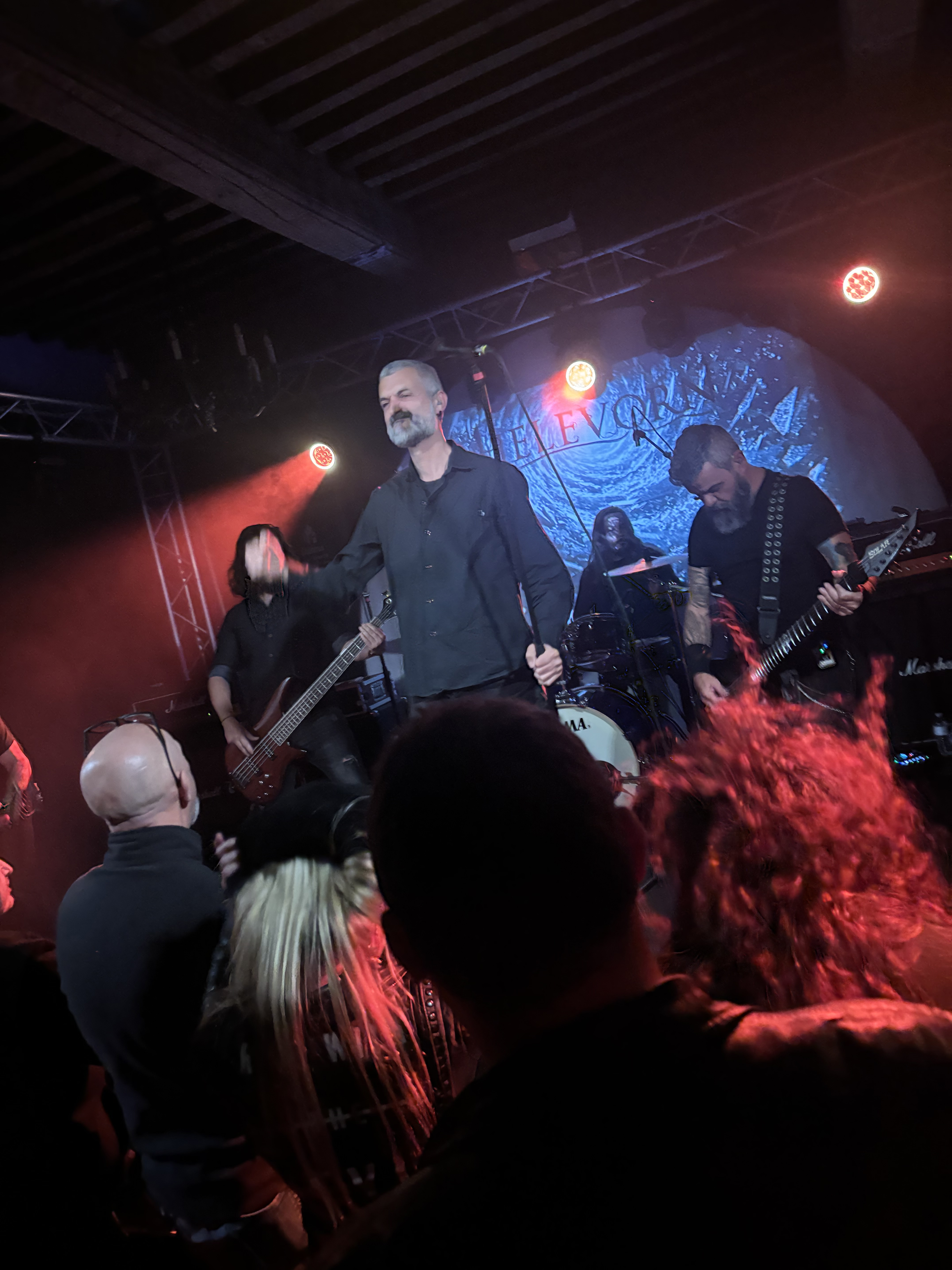 Ähnlich krass liefern die Mallorquiner HELEVORN ab. Nur in eine ganz andere Richtung. Sie als die „HIM des Dooms“ zwischen ENNUI und MOURNFUL CONGREGATION zu parken, ist eine absolute Meisterleistung der Orga. Die Spanier laden Gastsängerin Ines auf die Zinnen, appellieren an das Mitgefühl für die Opfer von Kriegen wie in Gaza und tauchen den Saal mit Übersongs wie „A Sail To Sanity“ oder „When Nothing Shudders" quasi in pinkes Licht. Selbst die härtesten Funeral Doomer tanzen da mit. Über das neue Album „Espectres“ frohlocken Sie zurück bis „Compassion Forlorn“. Hach, machen HELEVORN stets einen Spaß. Mitsingen, tanzen, klatschen, fröhlich sein – auch das kann Doom. Mal.