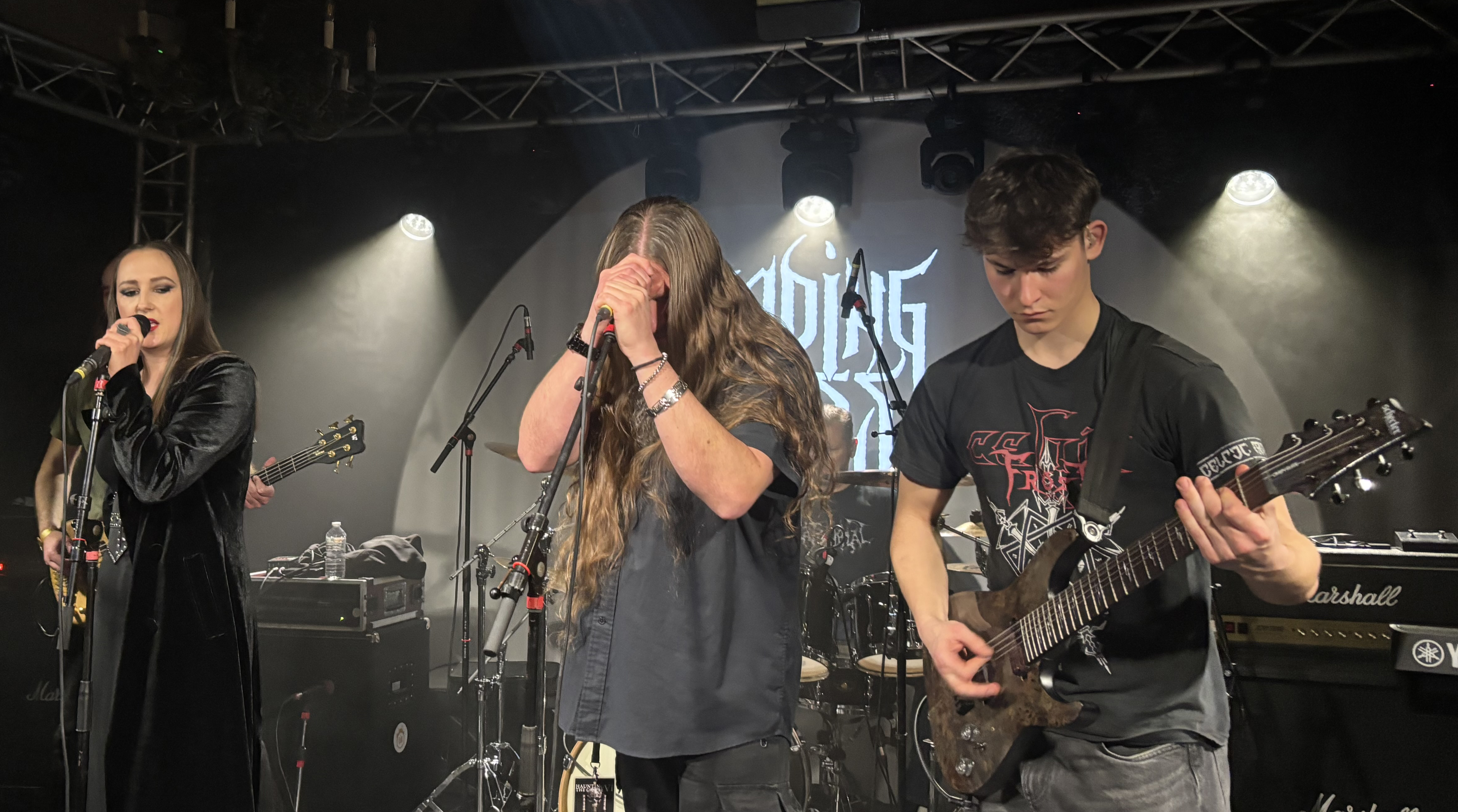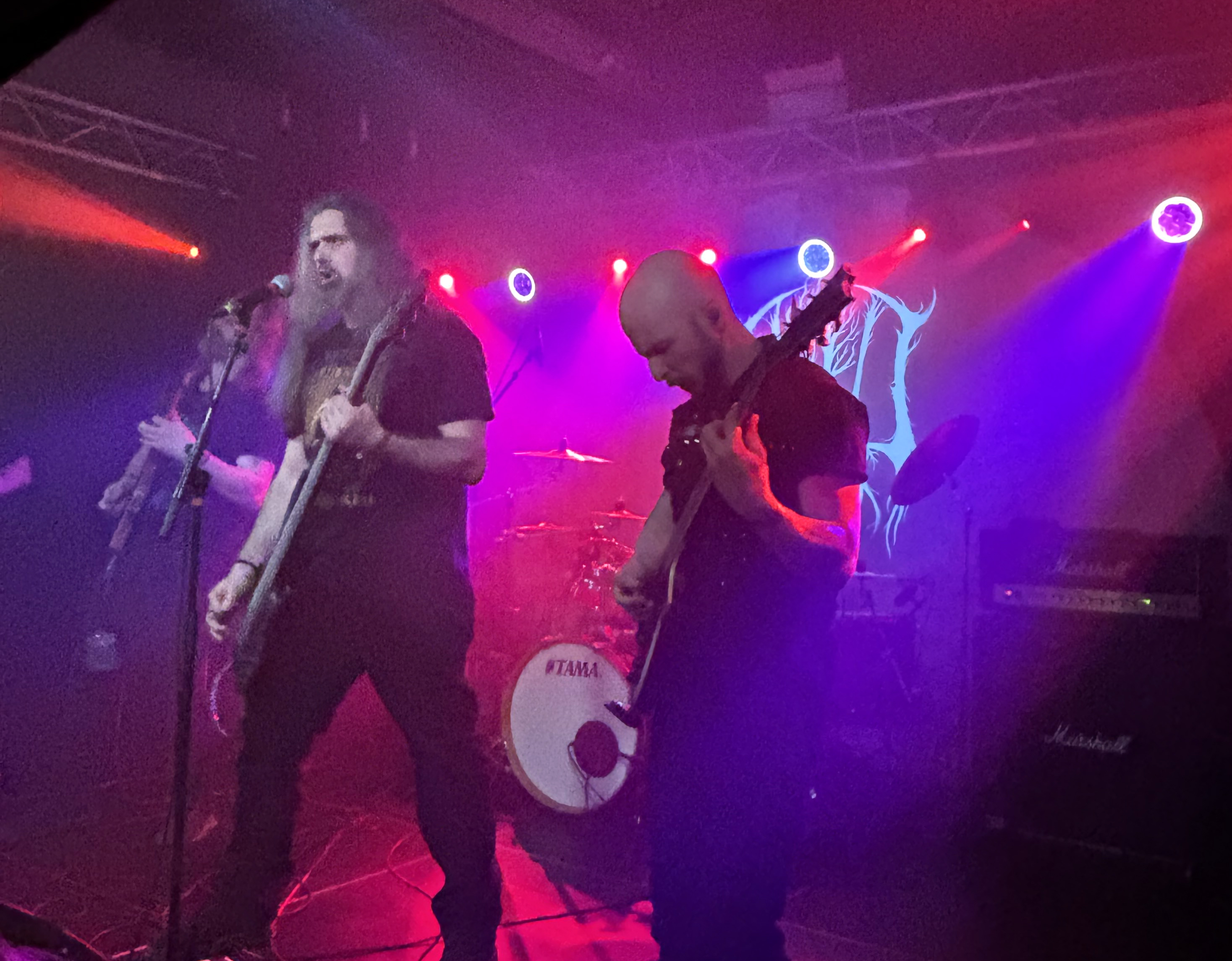 Mit FADING BLISS um Veranstalter Denis betritt die erste Truppe mit klaren Vocals und einer holden Maid am Mikro das Parkett – in diesem Line-up fast schon ein Alleinstellungsmerkmal. Diesen Gothic Doom muss man natürlich mögen. Keine Sorge, die belgische Formation driftet nicht in Richtung Trällerelsen-Metal Marke Nightwish ab, aber für das auf Doom-Death getrimmte Ohr sind die klaren Vox trotzdem eine Challenge. Sei es wie es sei: Der Sound ist fett und die Meute feiert das bunte Treiben. Auch wenn am Ende keiner vor Begeisterung auf die Knie fällt, lassen sich die Fans bereitwillig auf eine Reise über Ozeane, Gebirge und Ruinen bis ins tiefe Leid entführen. Souverän abgeliefert.