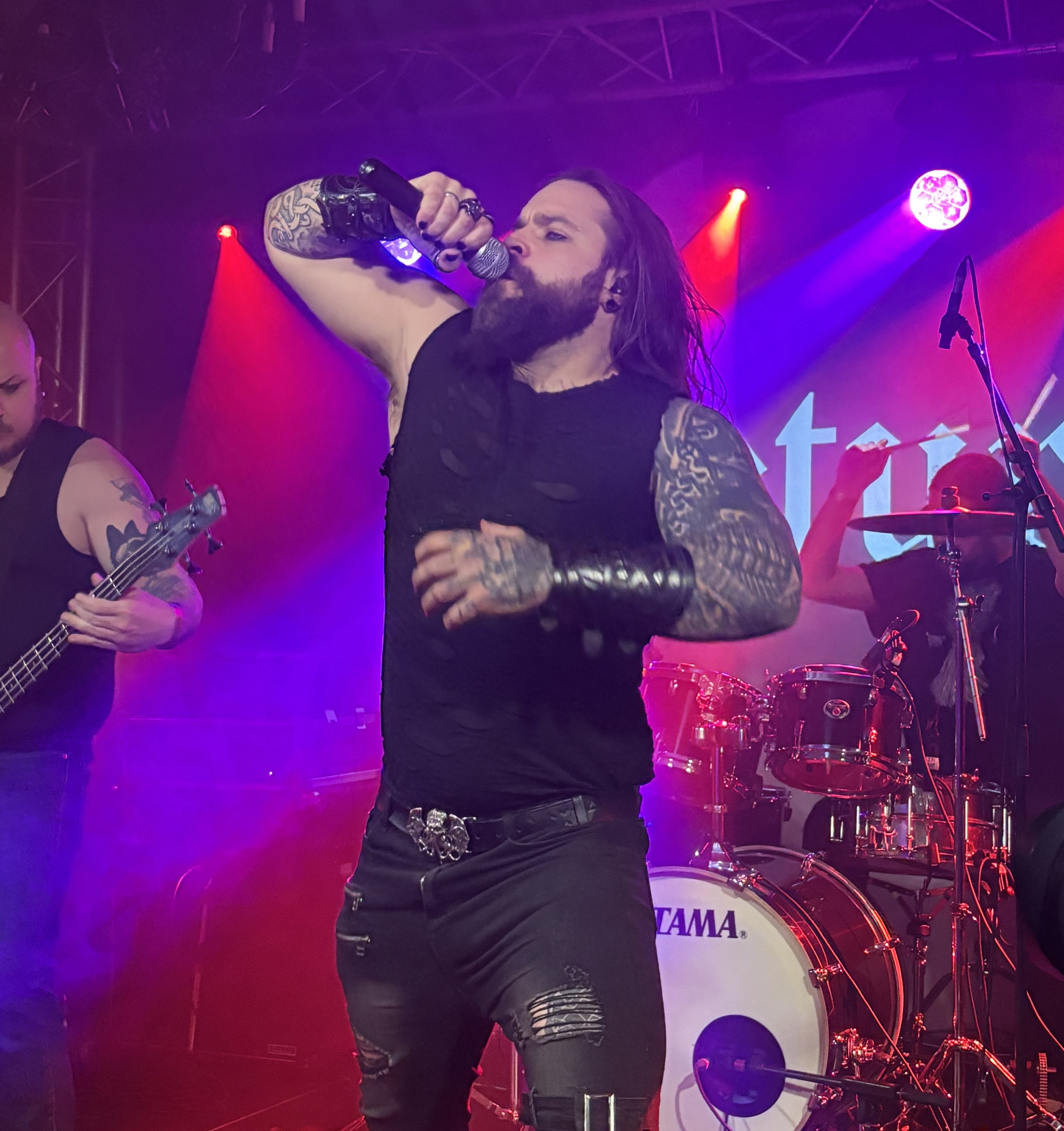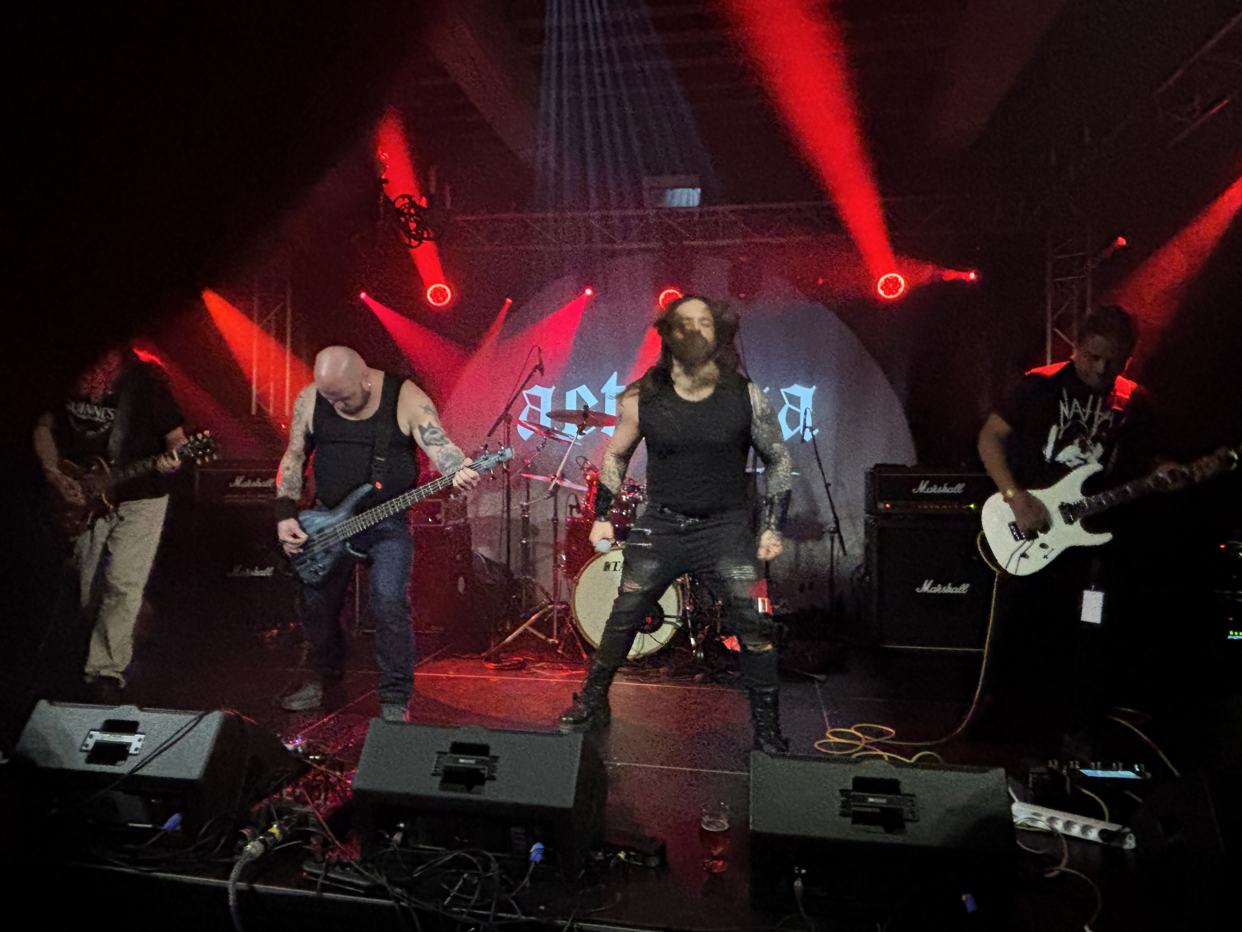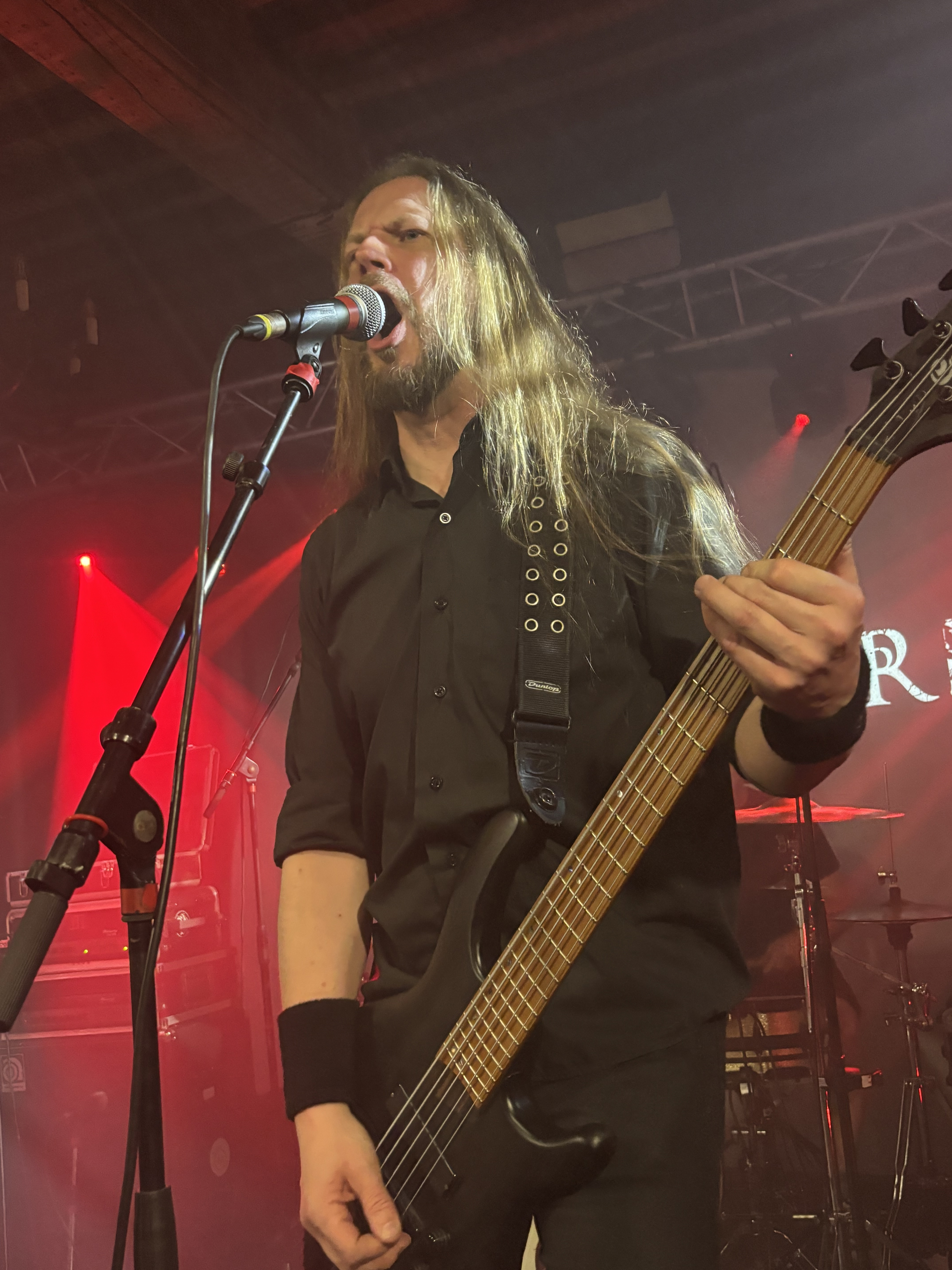 Zur Musik: Die niederländischen Opener servieren dann eher traditionellen Doom Death. Nach dem Verlust ihres Sängers William steht jetzt Matt an der Front – ein Brite, der seine dunkel-melancholischen Hymnen zwar etwas eigenwillig-ungelenk, aber verdammt gekonnt rausschmettert. Das Castle ist schon gut gefüllt, typisch für dieses Fest: Hier wird keine Band missachtet. Für die HTC-Veteranen fühlt sich der Gig sowieso wie „Nach Hause kommen“ an. Also: Seid gegrüßt, HTC!