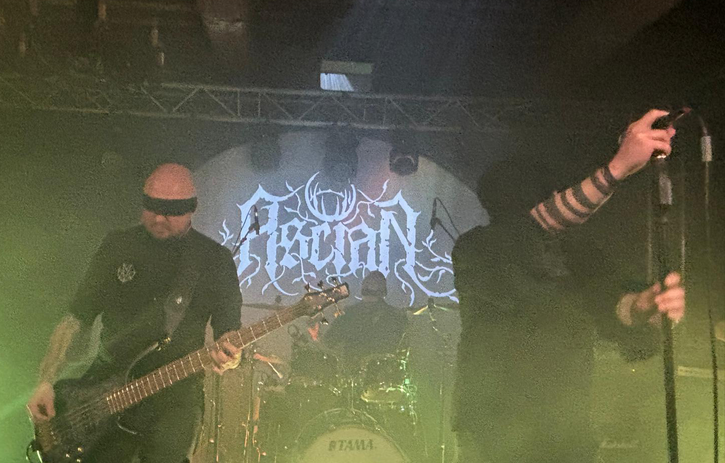 Der nächste Morgen graut (entgegen der 17 Grad am Tag zuvor) und die norddeutsche Doom-Armee ASCIAN entert die Zinnen. Optisch gehen sie als die „Turtles des Doom-Metal“ durch – mit schwarzen Augenbinden und Sänger S., der die Kapuze tief ins Gesicht gezogen hat. Aber von wegen Blindflug: Der Kerl brüllt alles in Grund und Boden oder zieht die Meute mit seinen abwechslungsreichen, klaren Vocals in den Bann. Im schicken schwarzen Zwirn präsentieren sie Songs von „Sing to Me, Sweet Void“ und „Elysion“. „Cold Sun“ knallt richtig gut rein, das Bier ist ooch kalt – so lässt es sich standesgemäß in den Tag starten. Nix mit „Augen zu und durch“!