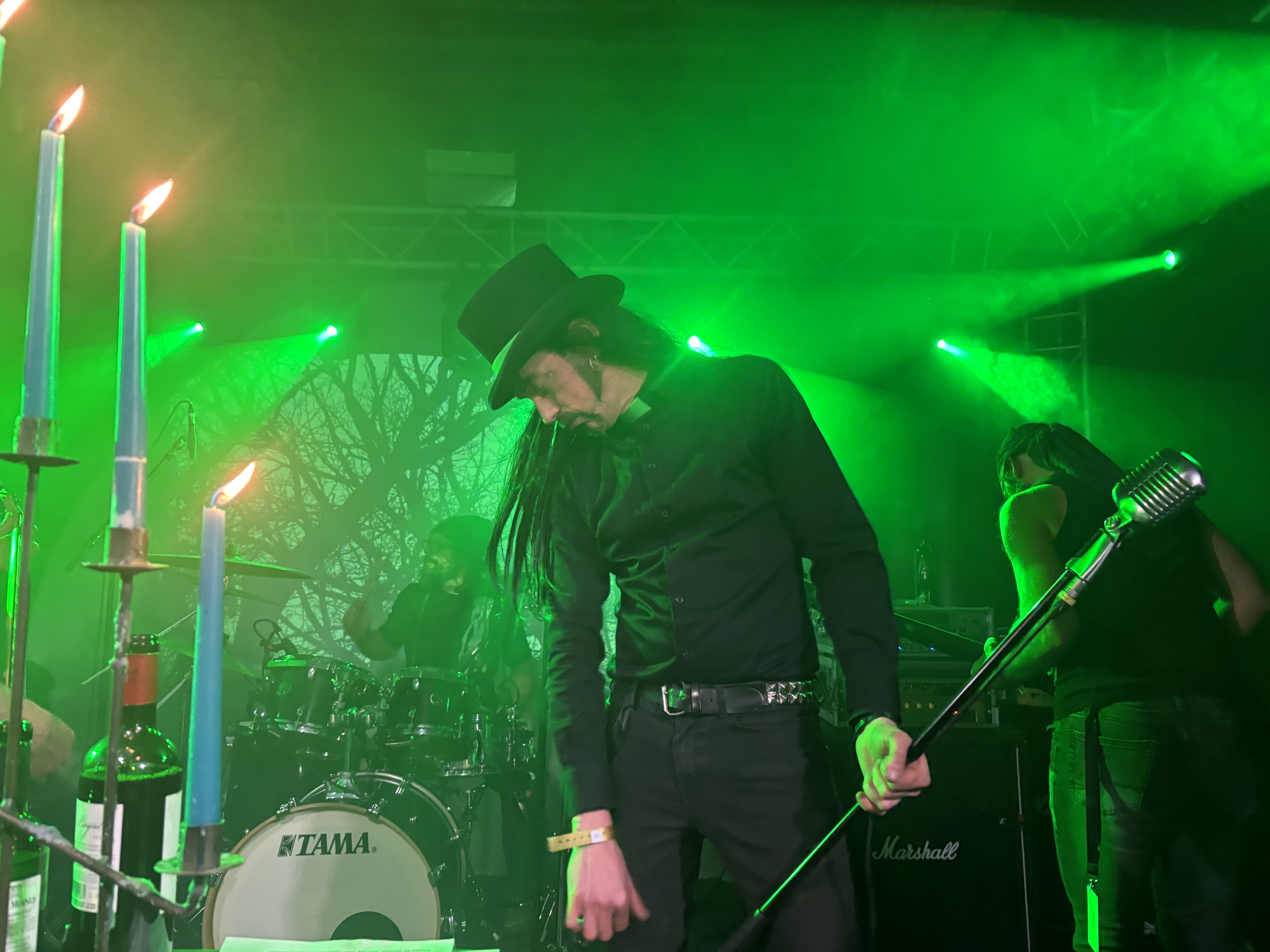 Dass der Stahl-Peter noch lebt beweisen OCTOBER RUST, die zum Abschluss des ersten Tages in die Schlacht ziehen. Die Belgier haben sich voll und ganz dem Erbe von Type O Negative verschrieben. Ihr Barde an der Front, stilecht mit Perücke und Zylinder, beschwört den Geist vom Steel-Pete höchstselbst. Auch wenn die ganz harten Die-Hard-Recken vielleicht die Nase rümpfen, liefern die Jungs aus Gent – der Stadt der drei Türme – eine verdammt ehrenvolle Hommage ab. Mal ehrlich: Das Original war damals auf dem Dynamo zwar Legende, aber oft genug auch schlechter drauf als diese Truppe hier. Als sie dann stilecht den „grünen Hit“ „Black No. 1“ raushauen, ist die Messe gelesen. Ein perfektes Aufwärmprogramm für das, was am Samstag noch über die Burg hereinbrechen soll.
