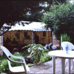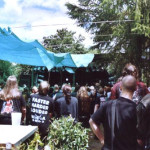 Auf dem Hofgelände waren die Bühne und Stände mit wirklich fairen Preisen aufgebaut. So kostete ein Nackensteak im Brötchen 2,50 Euro und ein 0.3 l Bier 1,80 Euro, was mich sehr positiv überrascht hat. Die umliegenden Felder wurden als Park- und Campingground umfunktioniert und es entstand wirklich eine Atmosphäre einer netten Gartenparty, nur mit geschätzten über 1000 Besuchern. Trotz sehr gemischter Wettervorhersagen und meiner Befürchtung, wieder so nass zu werden wie beim Axxis-Gig in Balingen, hielt sich die Sonne bis auf eine klitzekleine Ausnahme die ganzen Tage tapfer, hurra. (tennessee)