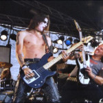 Dann stieg also meine DESASTER-Live-Premiere. Und musikalisch sollte es sich lohnen. Sie posten wie die Weltmeister, allen voran Sataniac, Häuptling aufgepumpter Oberarm. Als Meister großer Gesten guckte er böse in die Crowd und vergaß seine originäre Aufgabe, das Singen, natürlich auch nicht. Infernal und Odin ließen sich ebenfalls nicht lumpen, kreuzten die Gitarren und spielten ganz gestenreich mit dem Publikum. Über allem stand aber die geniale Mischung aus Black-, Death- und Thrash-Metal. Ob nun Songs vom neuen Album "Divine Blasphemies" (das Titelstück regelt so was von ohne Ende!) oder aber Klassiker in der Tradition der Bandhymne "Metalized Blood", die Fans feierten DESASTER ab wie die Hamburger ihren HSV bei einem Sieg über die Seppel. Wirklich schwer geile Mucke.